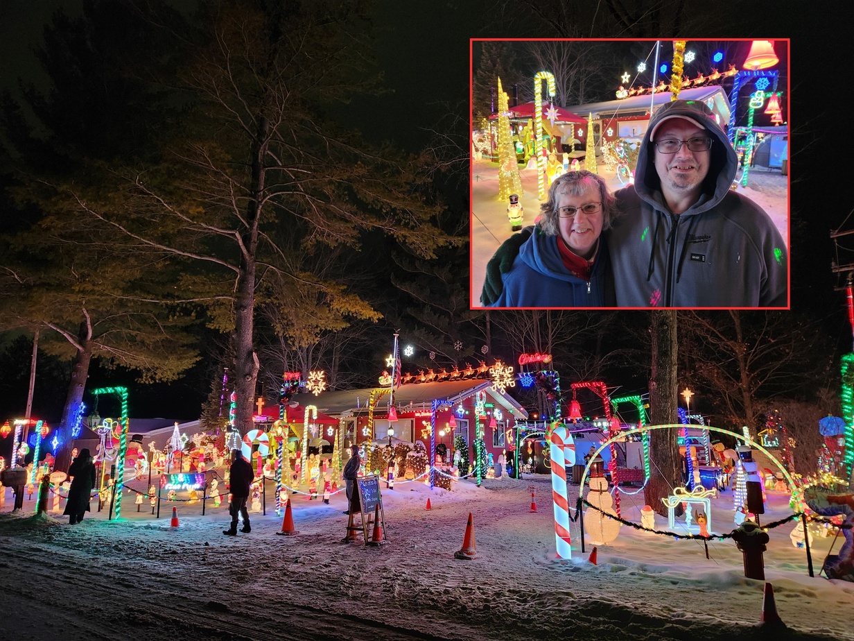 Paul has been building the display for decades, a tradition that began when he was a child. His grandmother lived a street over, and he convinced her to decorate the outside of her house. This tradition later spilled over to his own house, and he and Jenny (acquaintances since 7th grade, married in their twenties) have been growing the display ever since. Two angels at the front and center of their house came from Paul's grandmother.