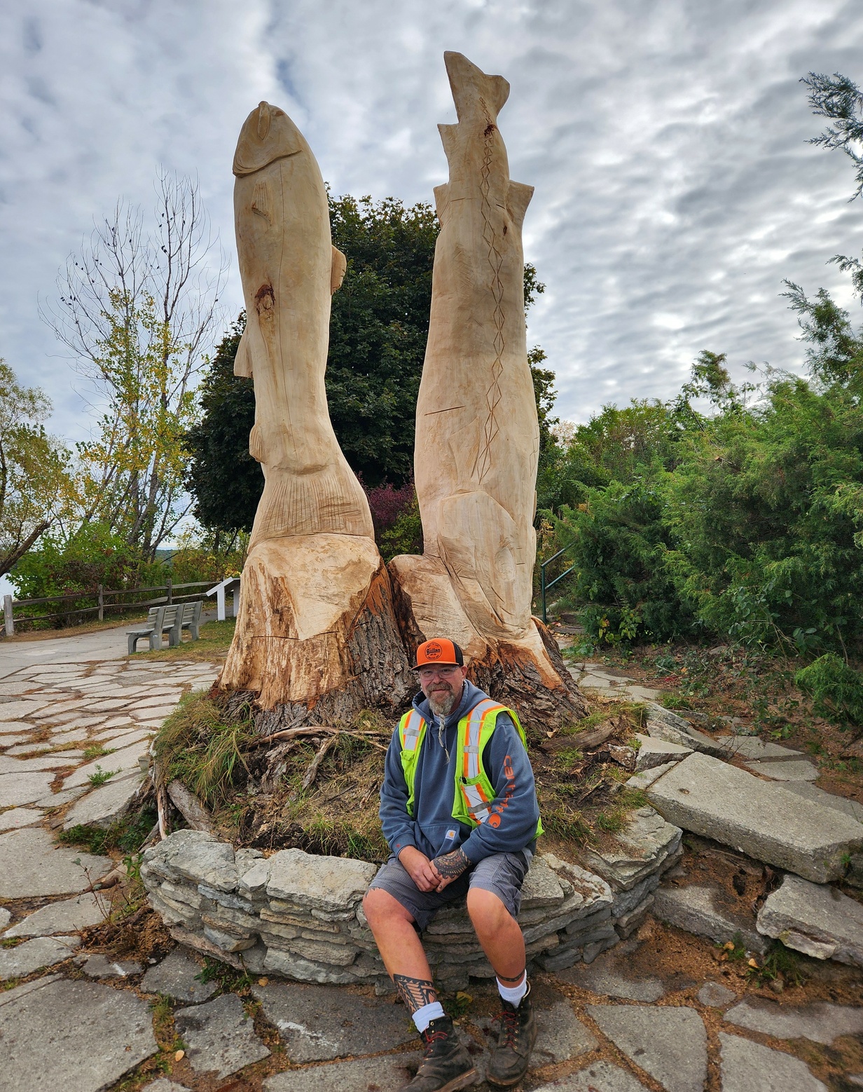 Now Chupp, who spent more than two weeks carving a lake trout and sturgeon into the stumps, beams with pride about bringing new life to the old tree. His carving work is now finished; all that’s left is application of a protective coating.