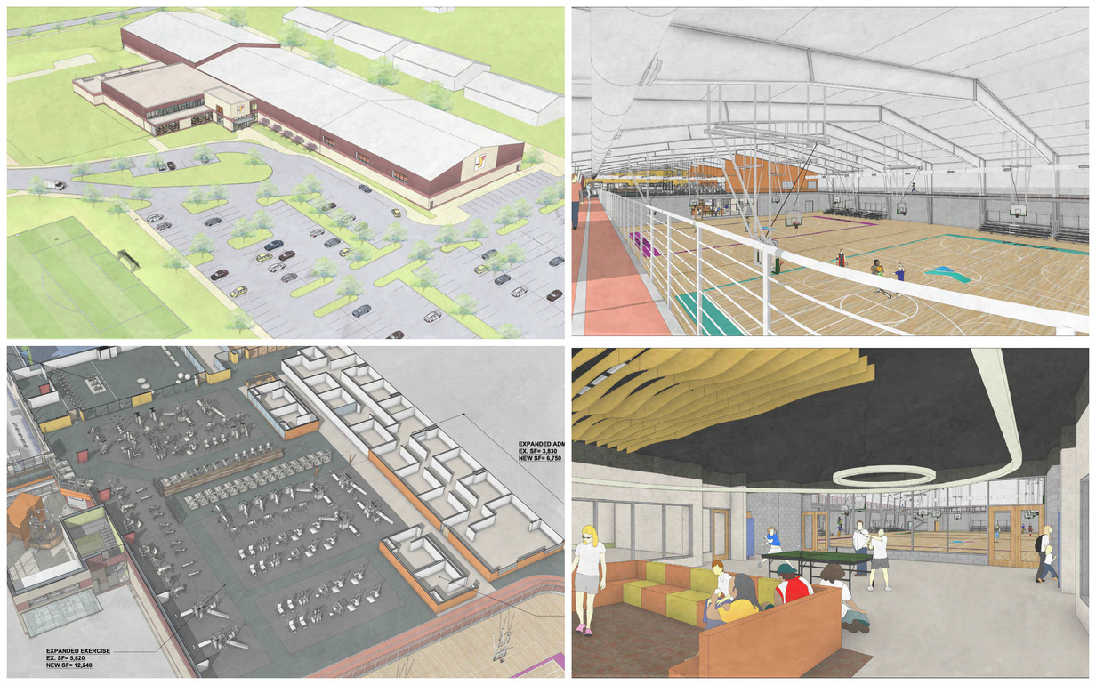 The planning commission held a public hearing on the $12.5 million expansion – a project that will build a 20,384-square-foot addition featuring two gymnasiums with full-size basketball courts and bleachers, an elevated walking track, expanded Child Watch space, wellness studios, multi-purpose classrooms, and adjacent parking (pictured, renderings). The YMCA, which is in the final fundraising phase of the project, hopes to break ground this April or May with a targeted spring 2027 completion date. A separate future phase of work could add a $7-$8 million fieldhouse with indoor turf to the site.