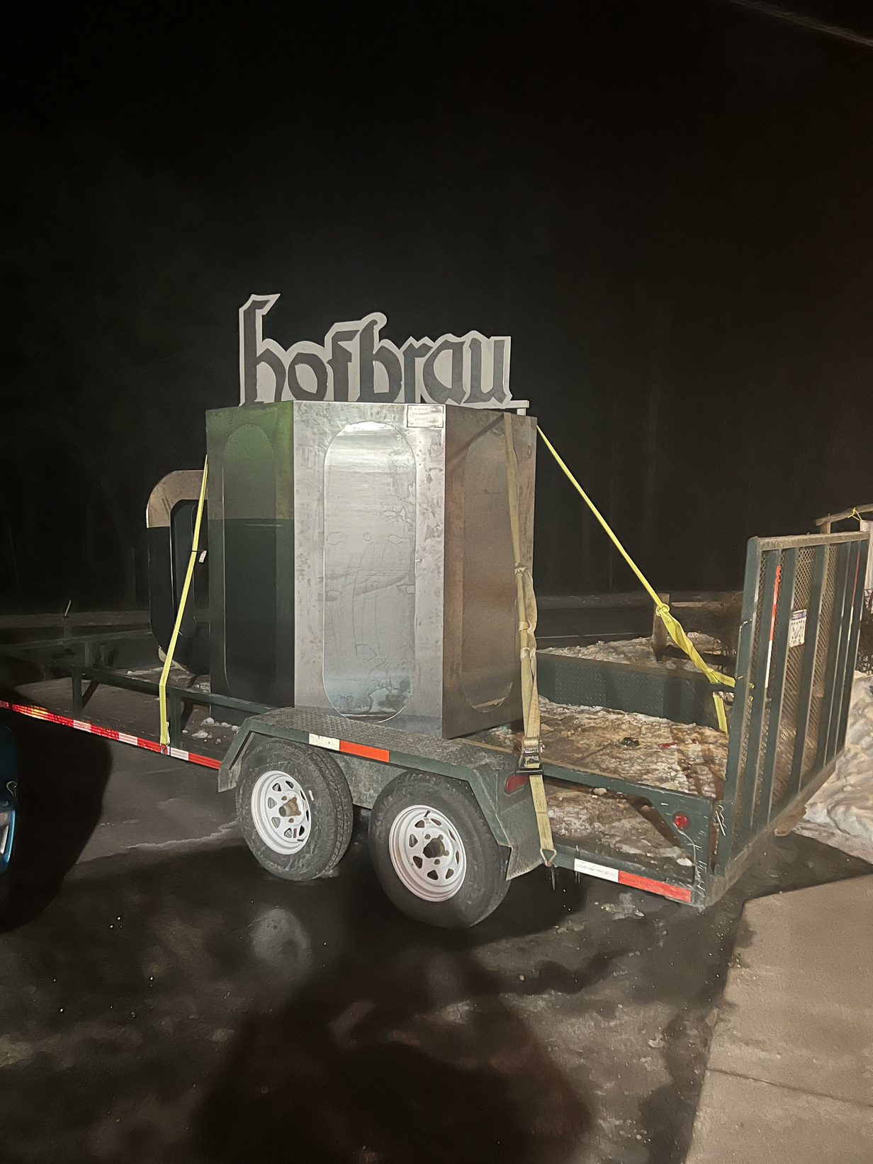 According to owner Brian McAllister, the current world record for the largest Irish coffee is 350 gallons. "We are building one that is 550 gallons," he says. "We filled out our application for the Guinness World Book of Records." Hofbrau's coffee cup (pictured) is seven feet tall and measures six-and-a-half feet across. Hofbrau is partnering with local coffee roaster Higher Grounds Trading Company on the attempt. McAllister says the beverage will contain 412 gallons of coffee, 69.8 gallons of Tullamore Dew Irish Whiskey, 69.8 gallons of cream, and 190 pounds of brown sugar.