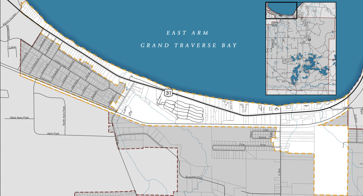 Trustees voted in October to establish a CIA, or a type of TIF district, along US-31 from roughly Avenue B to the eastern township limits (pictured). Like a downtown development authority (DDA), a CIA is a tool in Michigan used to pay for public infrastructure projects. A CIA has a defined time period and a TIF plan describing the projects that would be funded by tax capture. A TIF isn’t a new tax, nor does it raise property taxes; it instead sets a base year for taxable values on properties within the CIA and captures the difference as those values increase over time to fund public improvements.