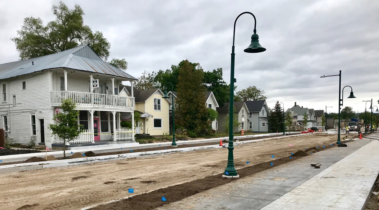 Tonya Wildfong of Team Elmer’s, the Traverse City firm hired to complete the reconstruction, says the project is “going well, all things considered.” Crews encountered several challenges this summer, including weeks of rainy weather, a centuries-old underground water main that had to be excavated, and higher-than-anticipated underground water tables. Eighth Street’s timeline and price tag – more than $4.7 million – reflect the fact that underground water and sewer pipes had to be replaced along the entire length of the corridor, in addition to above-ground road and sidewalk work. “Anytime you undercut roads, you always find some surprises,” says Wildfong. Despite the obstacles, Wildfong says crews are working hard and “doing as much as we can to stay on schedule.”