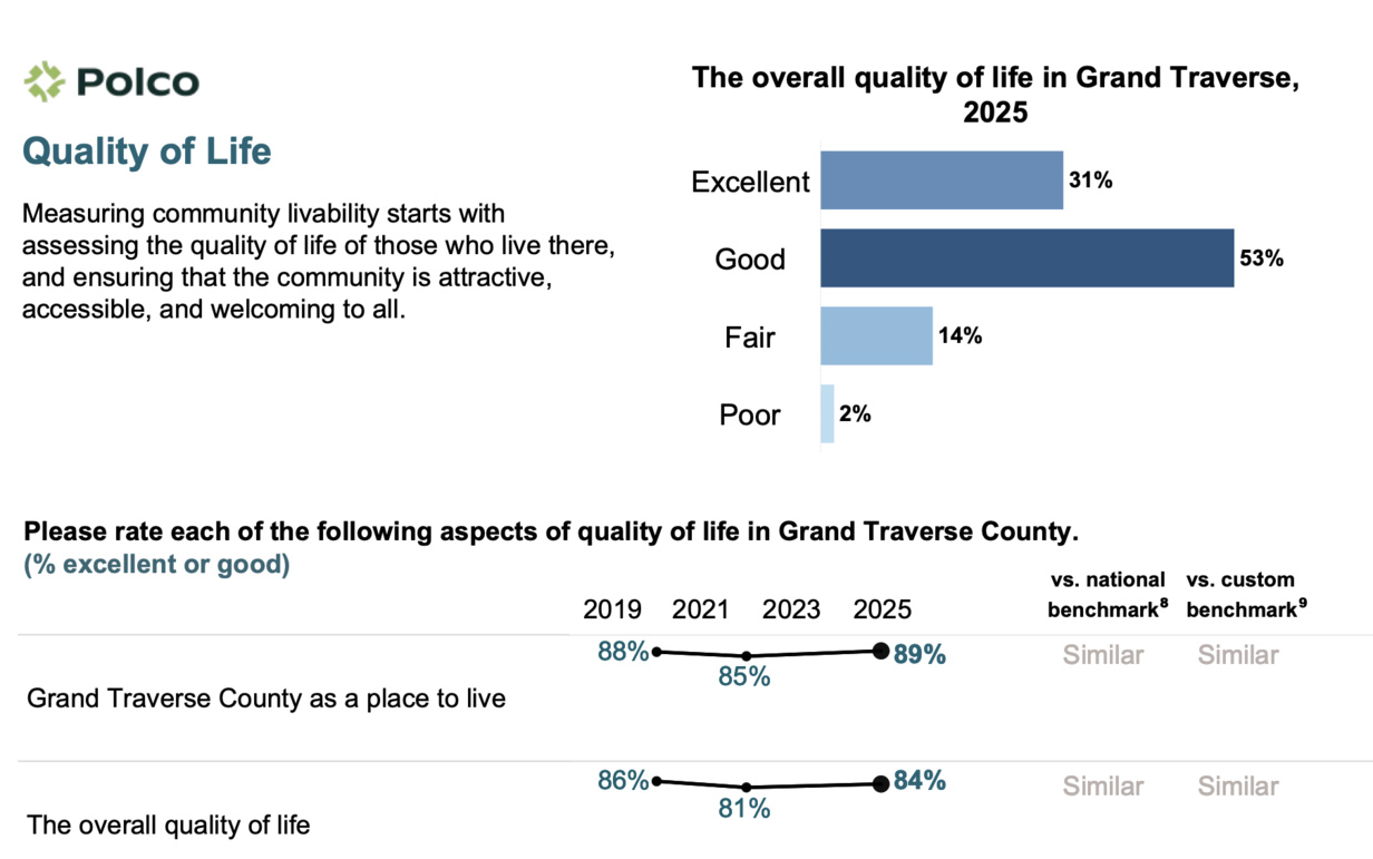 Repeating the same kind of National Community Survey it undertook in 2020 and 2022 – developed by the National Research Center to gauge the “livability” of communities through metrics ranging from the economy to public safety to the natural environment – Grand Traverse County has once again taken the pulse of residents in 2025.
