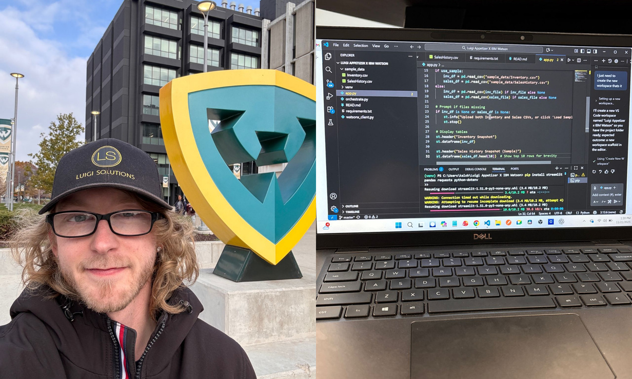 Hagen spent hackathon day developing an restaurant app that “simulates IBM’s Watson and Orchestrate tools” to streamline inventory management. After realizing that most of his clients for Luigi Solutions were restaurants, Hagen launched a side venture called Luigi Appetizer that specializes in tech solutions for food service businesses.