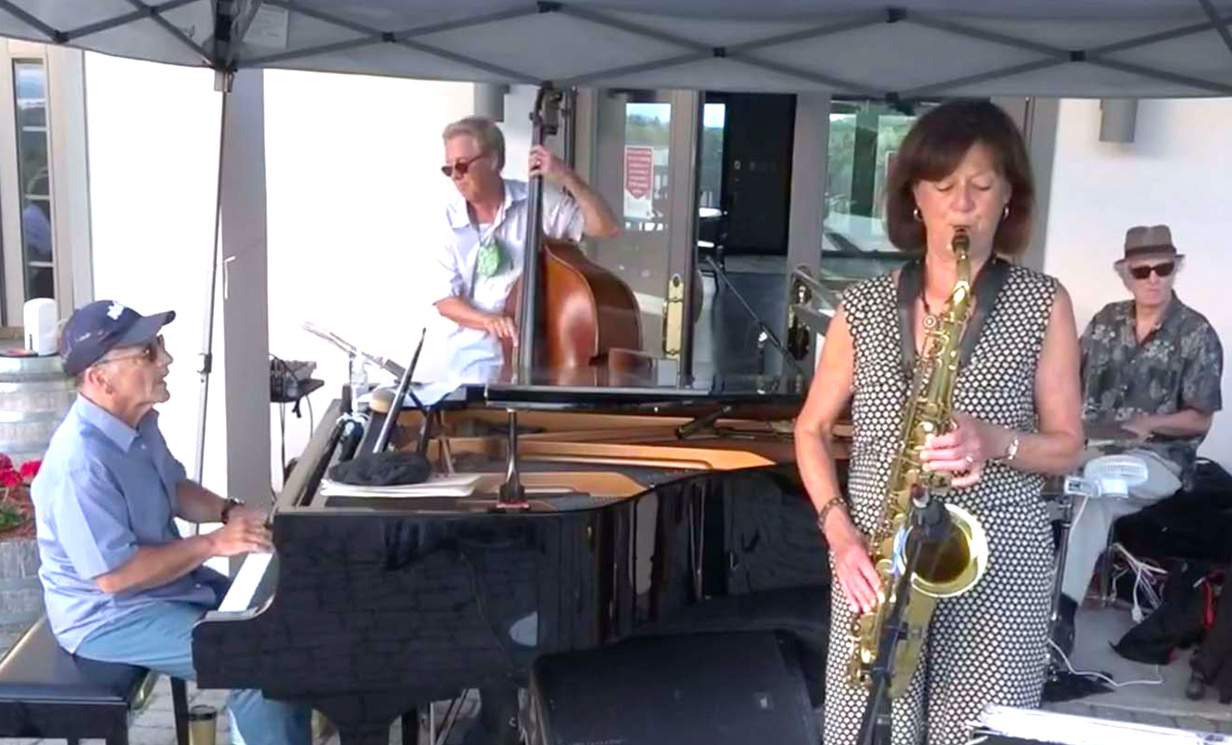 At Chateau Chantal, Jazz at Sunset took on a new dimension for its 27th year. Performances by Jeff Haas and his band were moved outside. What used to be a very casual, admission-free show morphed into a ticketed event with socially distanced seating on the lawn, rather than patrons being packed next to one another indoors.