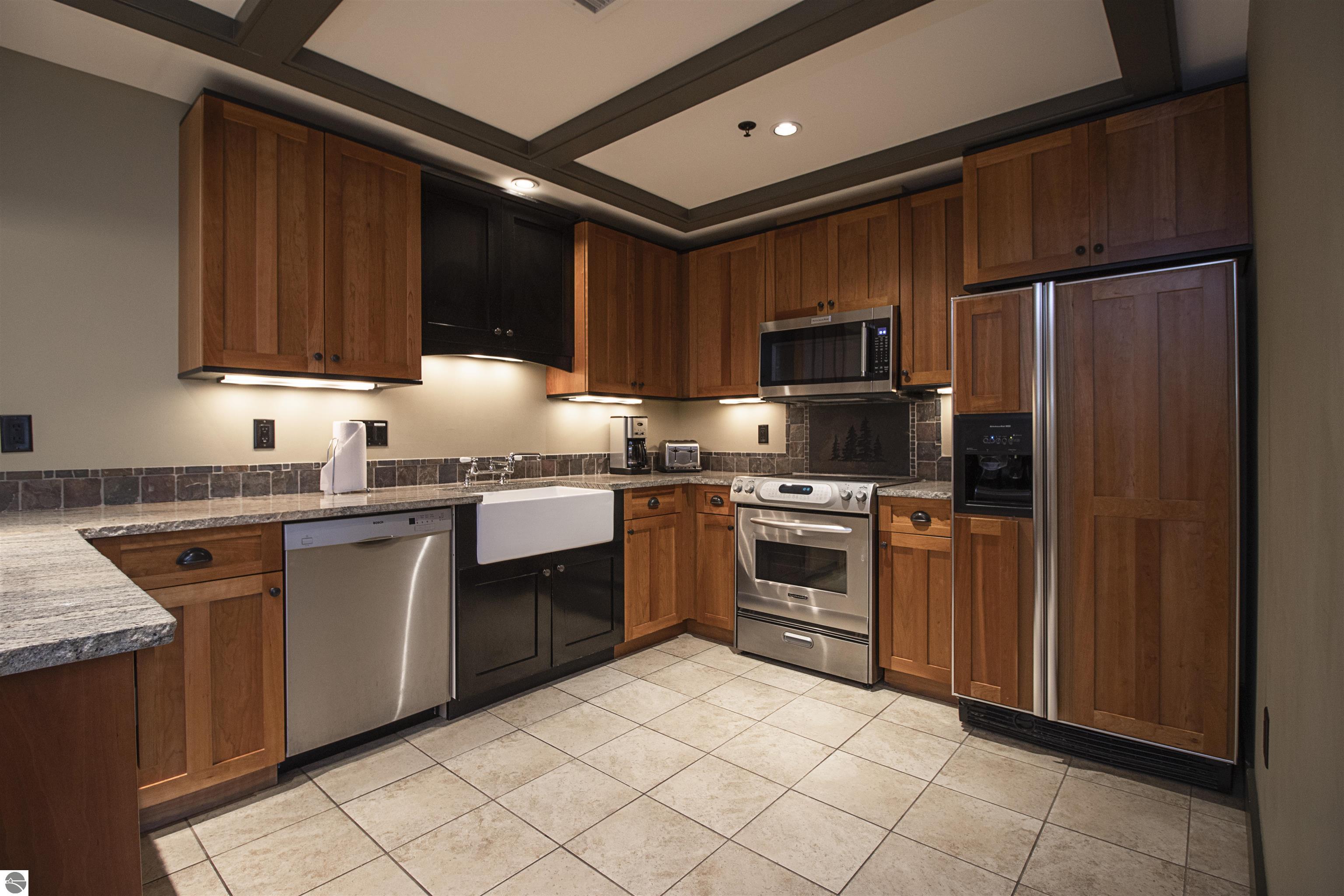 Tamarack Lodge! Blue Room 2106 is a 1,521 sq ft, 2br, 2ba ground floor unit. One of the bedrooms is a "Lock-off" with its own private entrance. Absolutely outstanding water views and the best sugar sand beach imaginable from this waterfront condo in Traverse City on Lake Michigan's East Grand Traverse Bay. This is a fixed week unit (week 38). $73 per month association dues cover pretty much everything except for room cleaning and property taxes. All furnishings and linens included, even the fully stocked kitchen (appliances, pots, pans, silverware, etc).