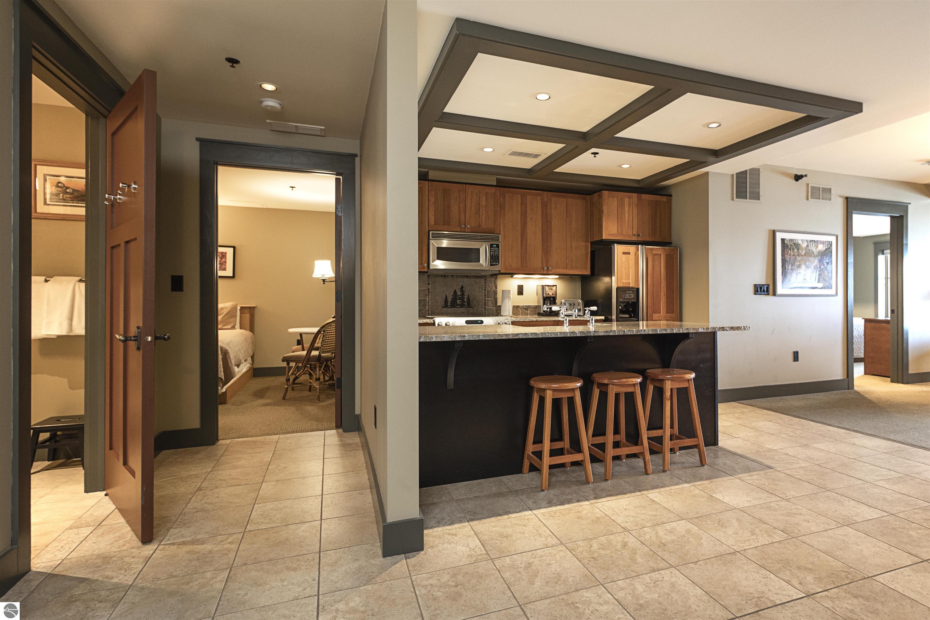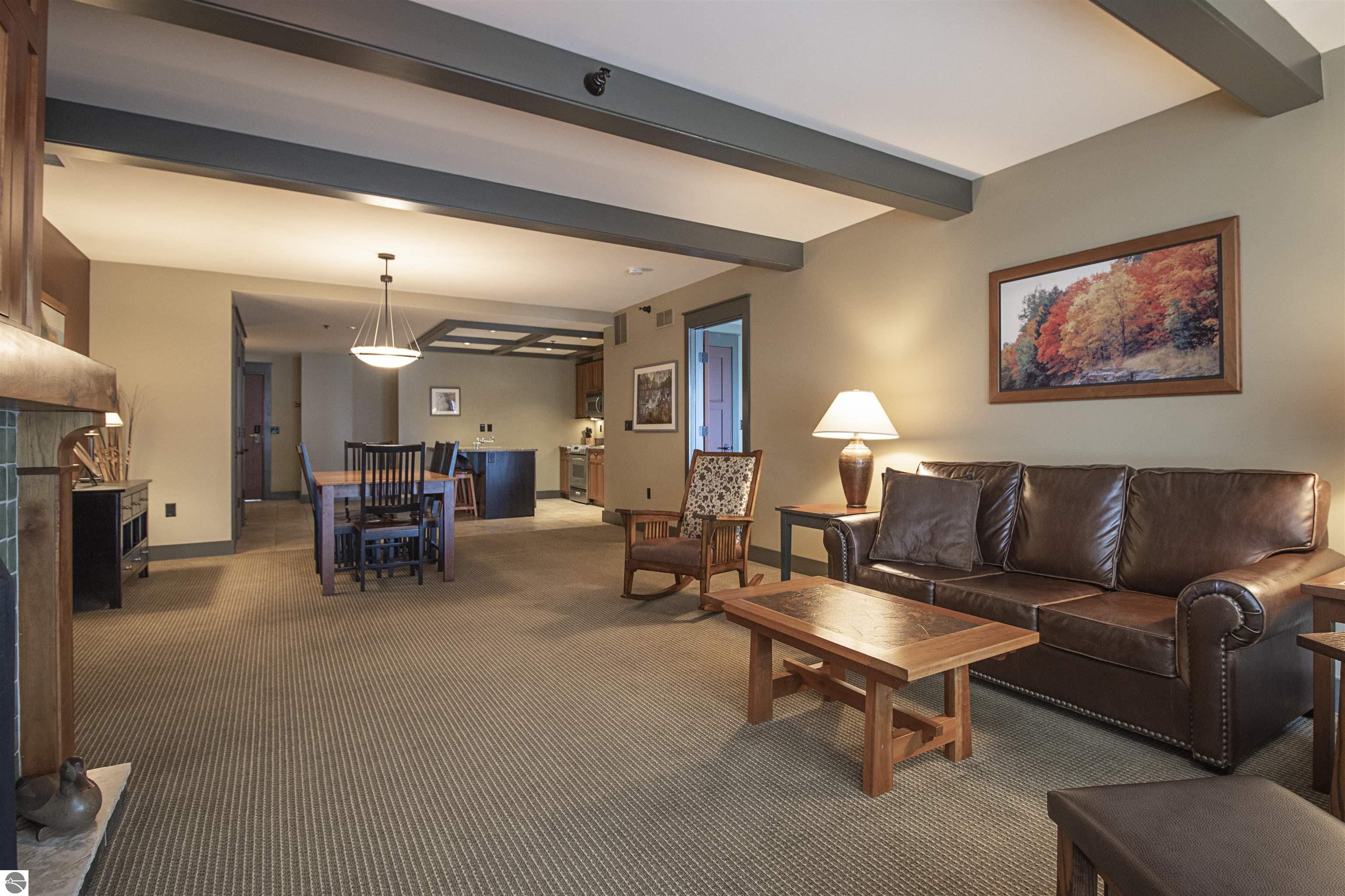 Tamarack Lodge! Similar to a timeshare, White Birch room 2304 is a 1,420 sq ft, 2br 2ba third floor unit. Absolutely outstanding water views and the best sugar sand beach imaginable from this waterfront condo in Traverse City on Lake Michigan's East Grand Traverse Bay. 1/8 fractional ownership, similar to a timeshare. 6 weeks per year. $406 per month association dues cover pretty much everything except for room cleaning and property taxes. All furnishings and linens included, even the fully stocked kitchen (appliances, pots, pans, silverware, etc). The purchase price is a one time fee guaranteeing your weeks year after year as long as you pay the monthly HOA, annual property taxes and cleaning fee. Get your piece of the North today!