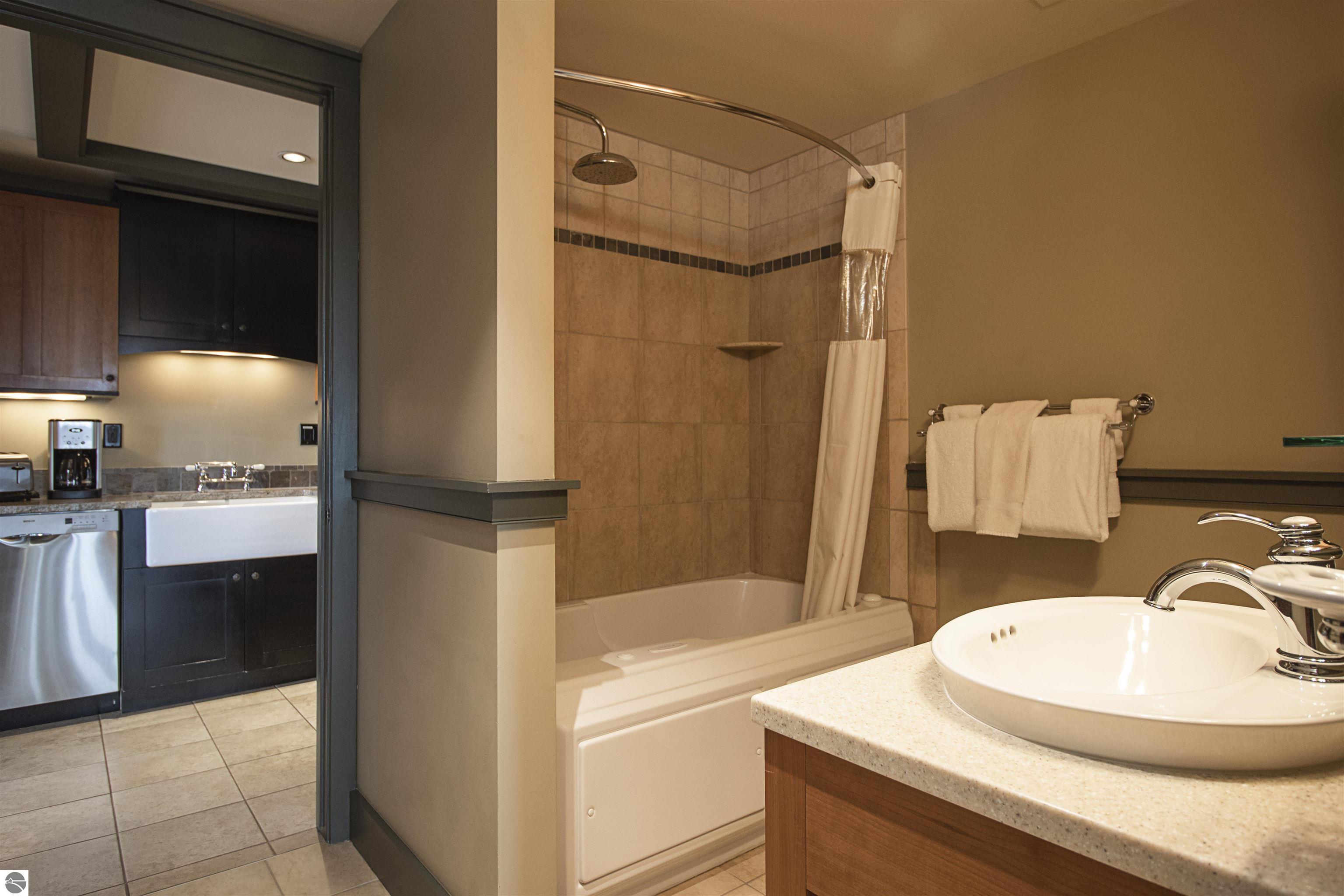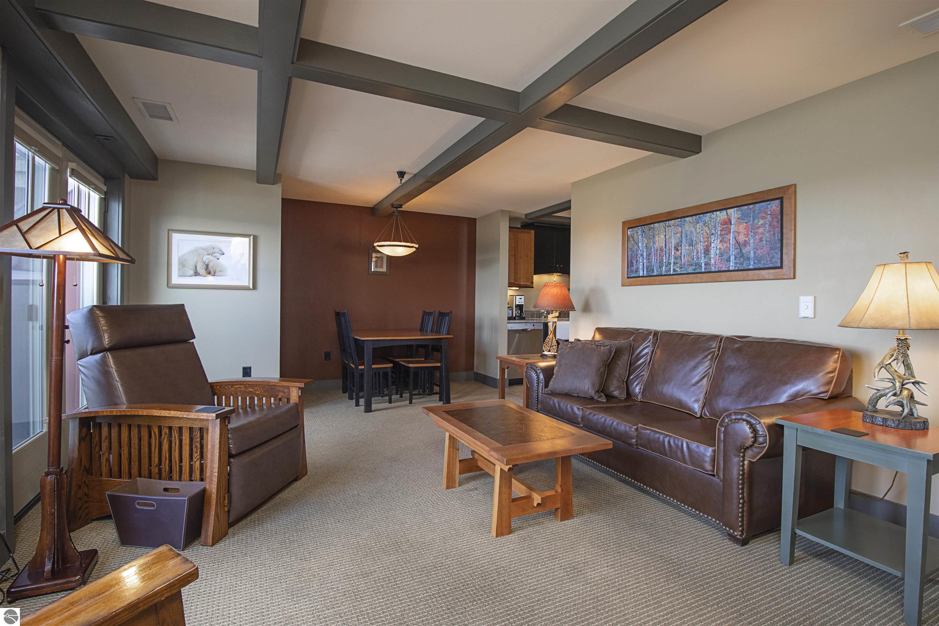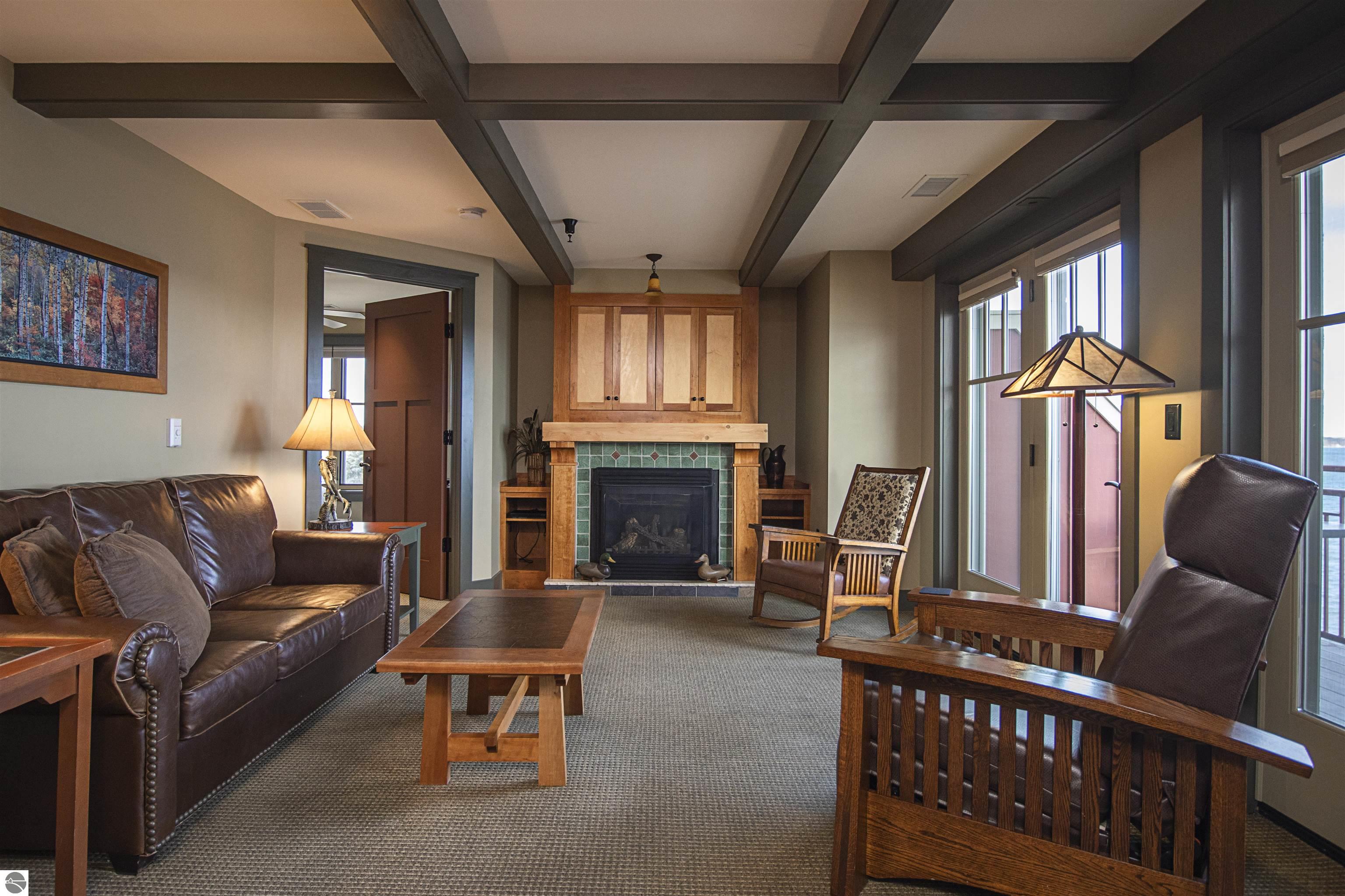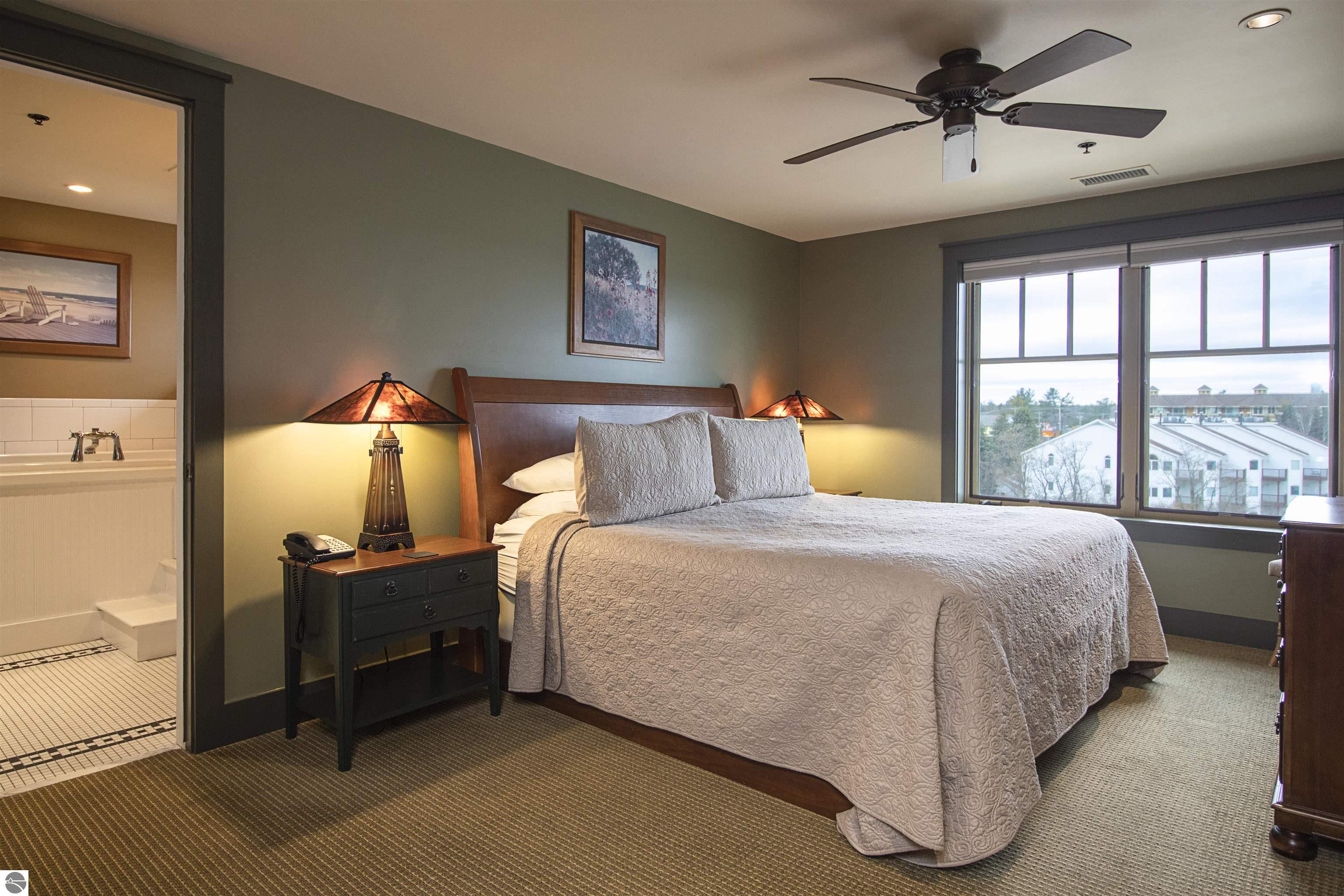 Tamarack Lodge! Aspen room 2500, an end unit on the NW corner of the top floor of a 5 story building that has an elevator. Absolutely outstanding water views and the best sugar sand beach imaginable from this 1/8th fractional ownership waterfront condo in Traverse City on Lake Michigan's East Grand Traverse Bay. See rotation D schedule for the 6 weeks that are included for the coming years (weeks change slightly each year). $287 per month association dues cover pretty much everything except for room cleaning and property taxes. Financing available (this is not a timeshare) through TBACU. All furnishings and linens included, even the fully stocked kitchen (appliances, pots, pans, silverware, etc).