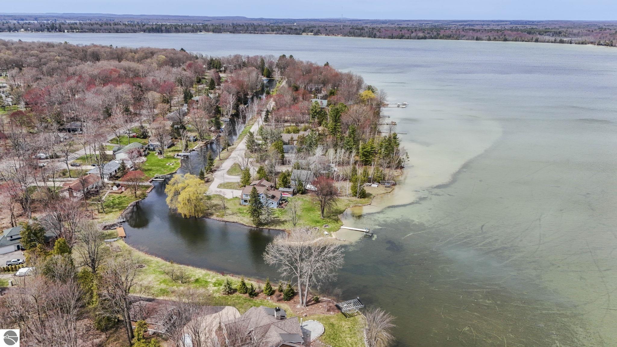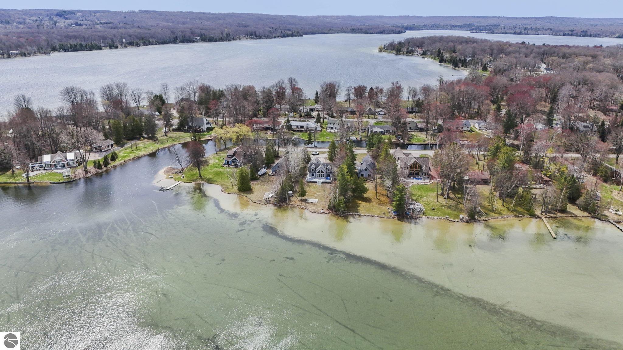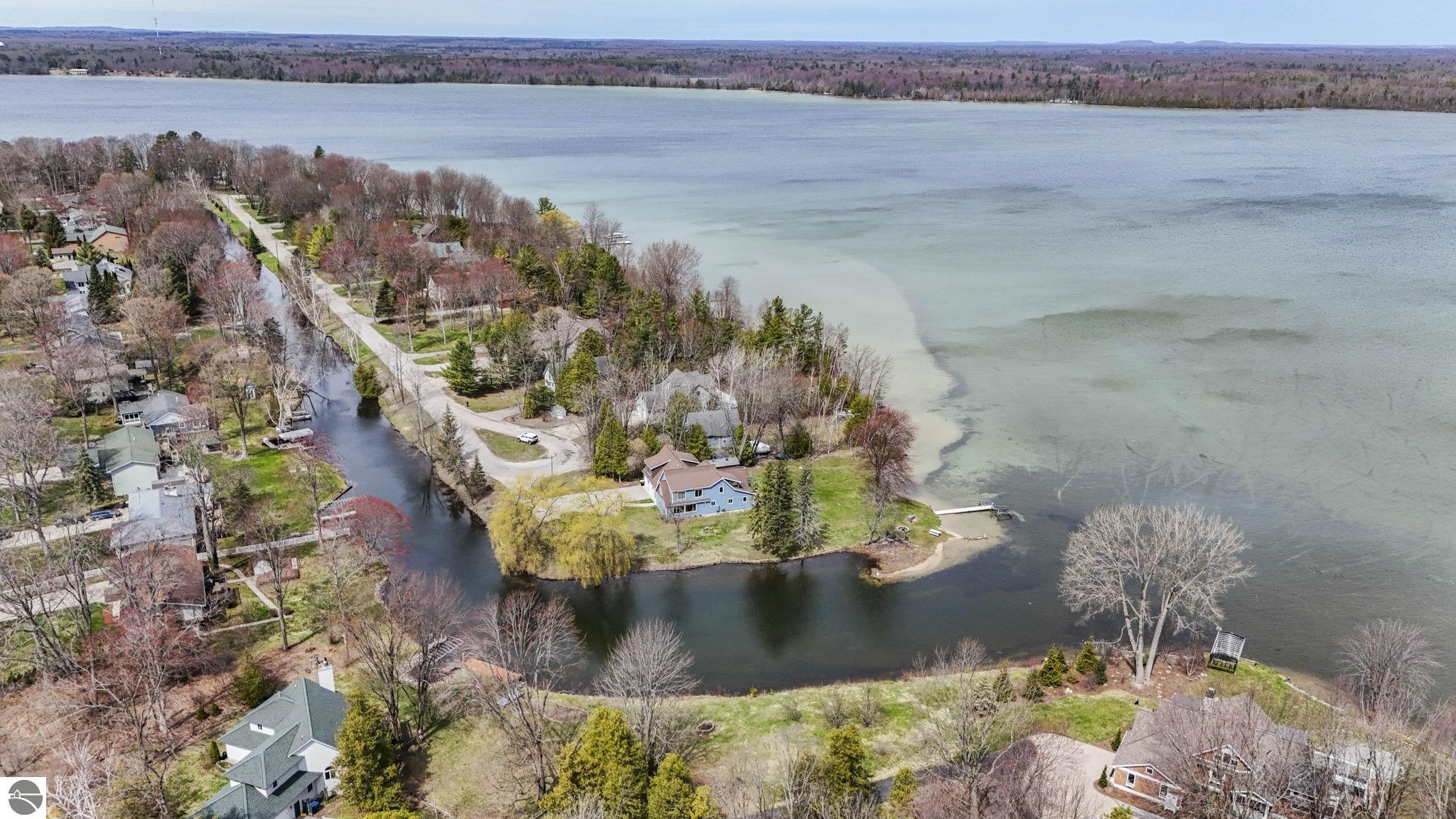 Experience the Tranquility of Northern Michigan at Its Finest. This substantially furnished, move in and enjoy summer, tucked into the natural splendor of the Duck Lake Peninsula—just minutes from downtown Traverse City and the world-renowned Interlochen Center for the Arts—this exquisite lakefront retreat offers a rare blend of serenity, sophistication, and scenery. Surrounded by water and wrapped in privacy, the home commands 110 feet of private Duck Lake frontage, with additional shared canal access and exclusive use of a park with tennis courts and nearby boat launches. 3 D floor plan can be accessed at : https://www.zillow.com/view-imx/63dd9ccf-7e47-40df-8ed4-bf9a1afb80e7/?utm_source=captureapp Step inside to floor-to-ceiling windows that frame captivating water views from nearly every room. The main living area showcases soaring two-story tongue-and-groove ceilings, a dramatic stone fireplace, and an open-concept island kitchen that flows effortlessly onto a spacious entertaining deck—perfect for summer gatherings or morning coffee with the loons. With three bedrooms and three baths, including a main floor primary suite, the home also offers a flexible upper-level family room or executive office with inspiring views. Duck Lake is one of the region’s most beloved all-sports lakes—spanning over 1,900 acres with an average depth of 22 feet and known for its healthy populations of walleye, bass, perch, and northern pike. Whether you crave the thrill of boating, the quiet joy of paddling at sunrise, or the meditative cast of a fishing line, you’ll find it here. This is the Northern Michigan you’ve been dreaming of—where the air is clean, the loons call at dusk, and life unfolds at a gentler pace. Come here to disconnect, to connect, and to truly arrive.
