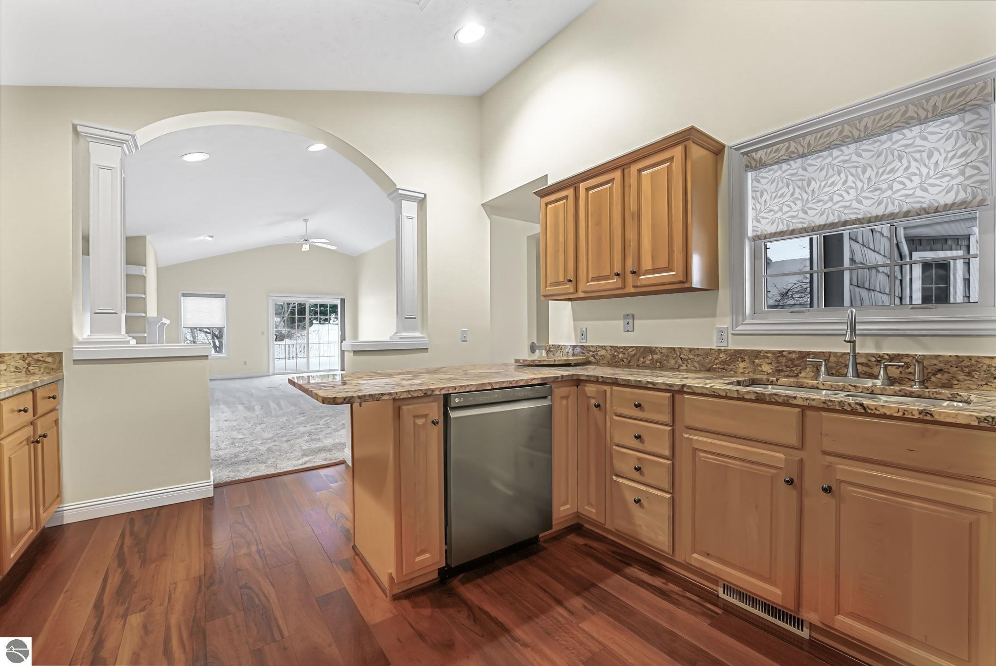 Play 18 at The Crown, then cruise home in your golf cart to this meticulously maintained 3-bed, 3-bath retreat on the 6th hole. Enjoy main-floor living with a private primary and en suite, a spacious deck perfect for sunset dinners, and a cozy den for movie nights. The lower level offers a walkout access deck with hot tub and plenty of unfinished space for storage. Just minutes from downtown Traverse City, this home blends convenience, comfort, and charm.