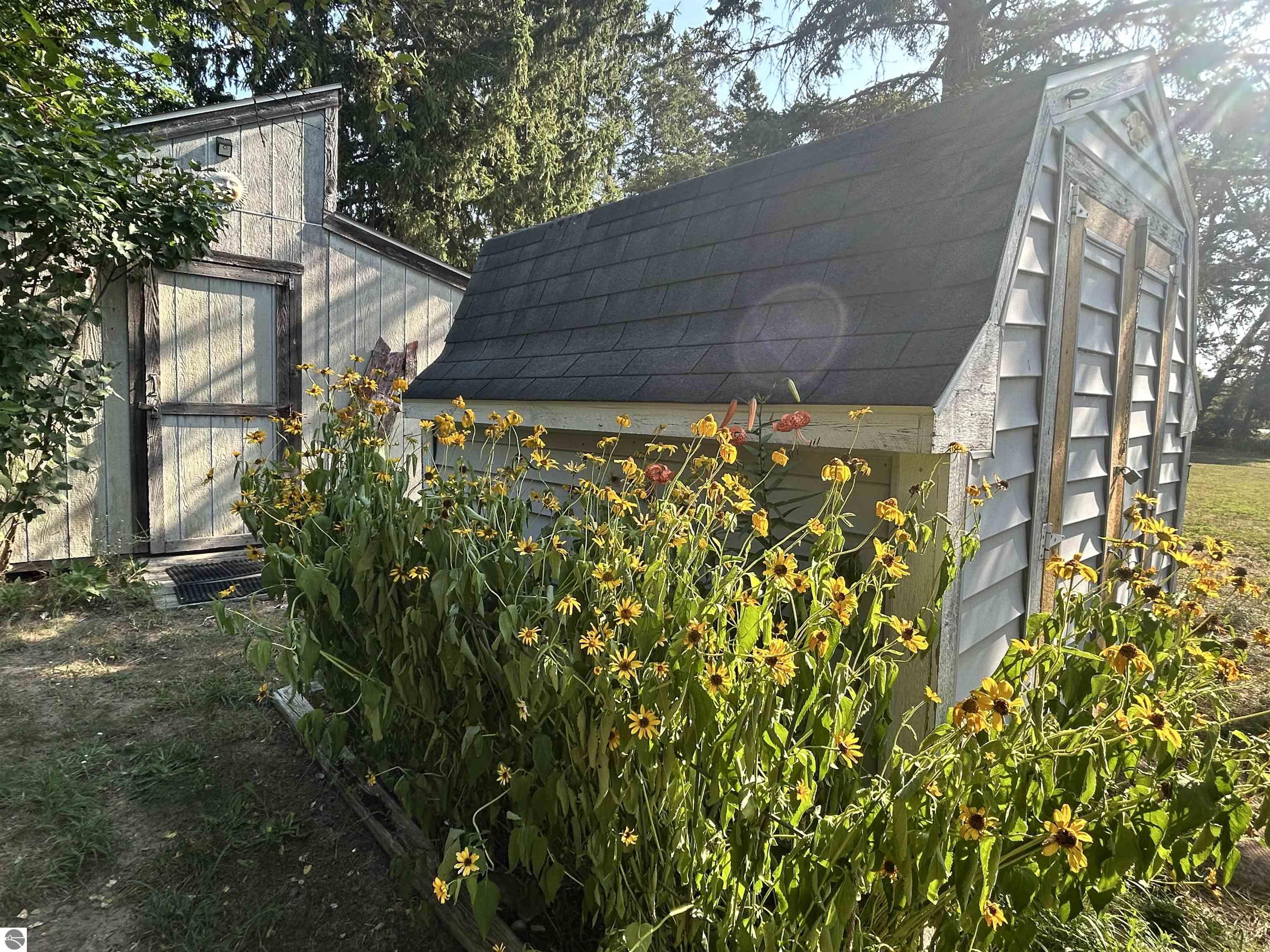 Step outside and take in the natural beauty that surrounds this property. The private backyard is framed by mature trees, creating a peaceful and secluded retreat. You’ll find an array of vibrant plantings to enjoy, including three cherry trees, a Saskatoon bush, a rose garden, dish plate hibiscus, honeysuckle, grapes, and raspberries. In addition to the privacy and delightful sights, scents, and seasonal flavors, you’ll be serenaded by birds and may even spot wildlife such as deer and foxes. Ideally located just under 10 miles from downtown Traverse City, Interlochen, Kingsley and Munson Hospital, this property offers the perfect balance of peaceful privacy and convenient access to nearby towns and amenities. Need room to tinker or create? The 12x16 workshop/shed is equipped with electrical, 220 amp, its own power box, and shelving; ready for hobbies, storage, or even some bigger projects. This 3 bedroom, 2 bath home has a split floor plan, providing for a private primary suite. The main living area open concept, kitchen offers a good amount of cupboard space, and metal roof giving peace of mind for years to come. When it’s time to relax and unwind, if not in the peaceful backyard, you’re just a 20 mins or less from Long Lake beach, Grand Traverse Bay, as well as Green and Duck Lakes in Interlochen.