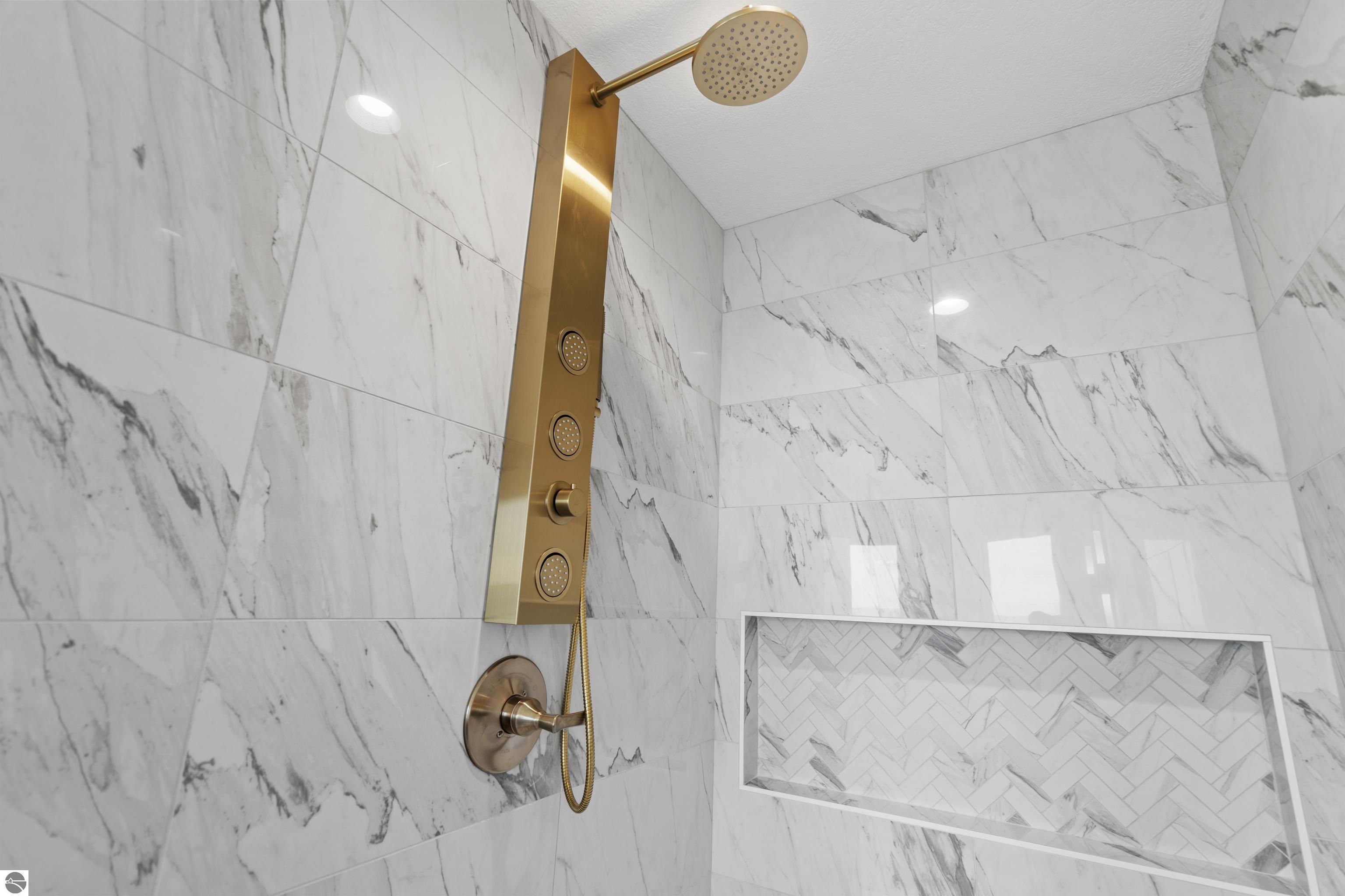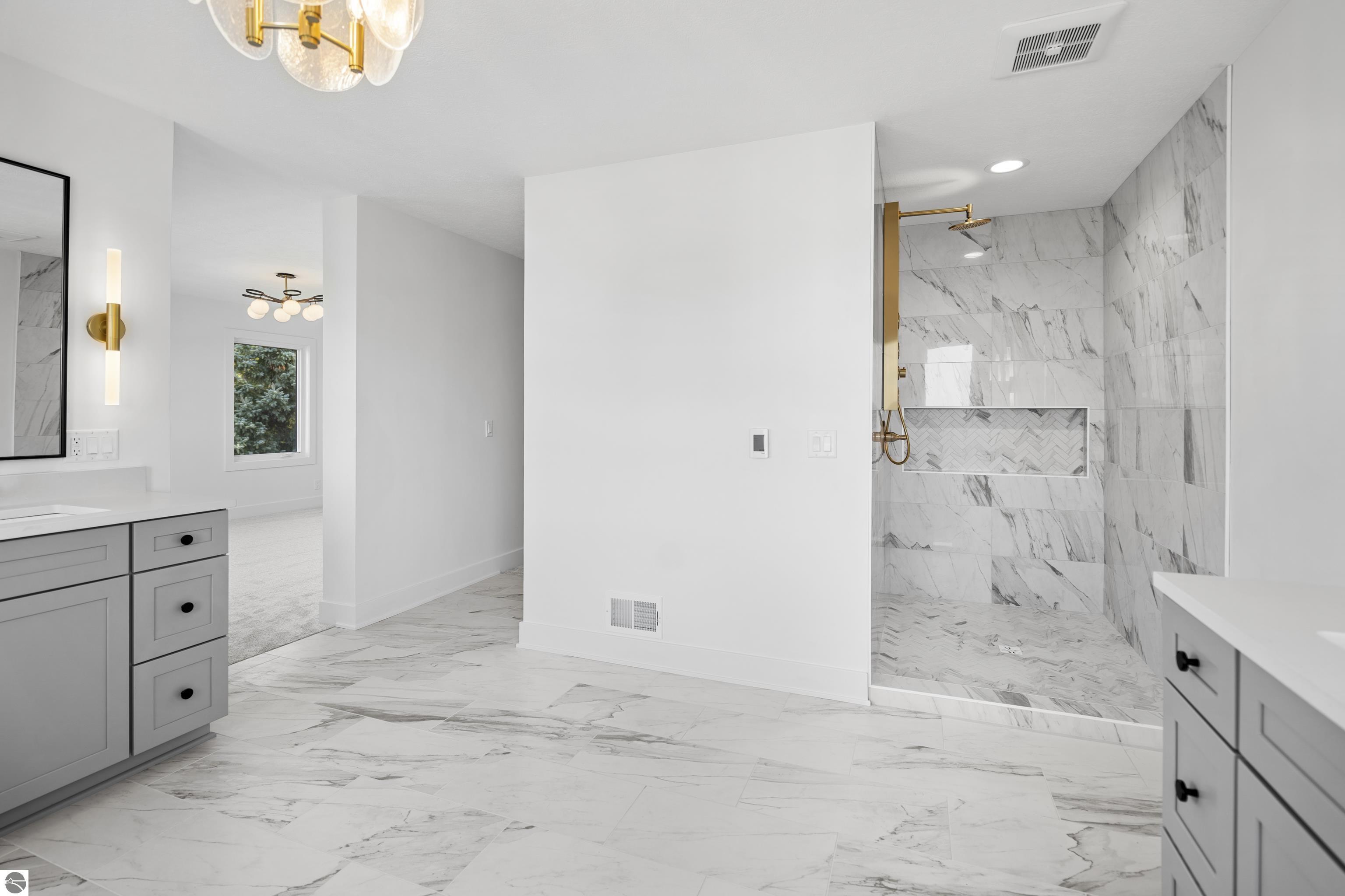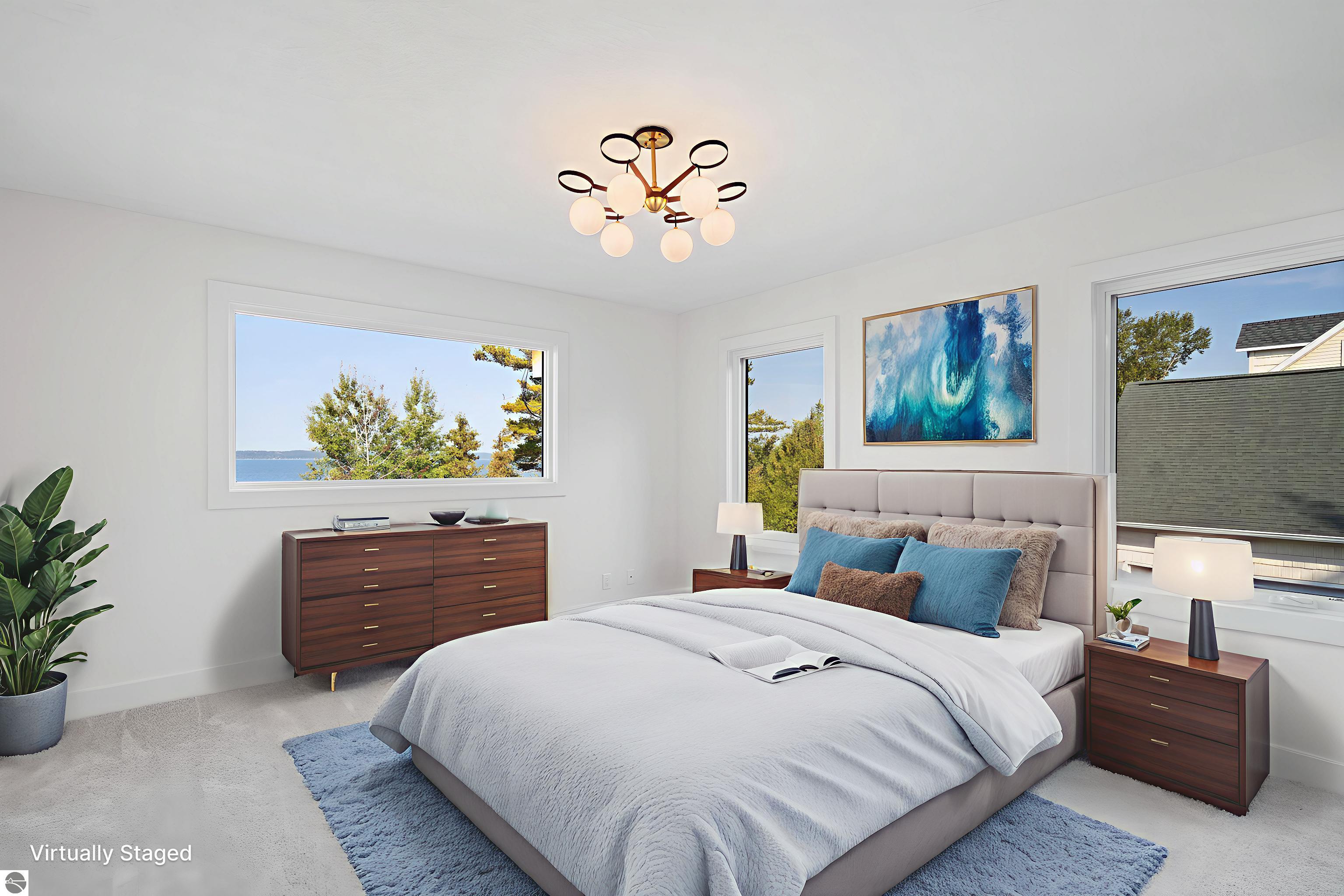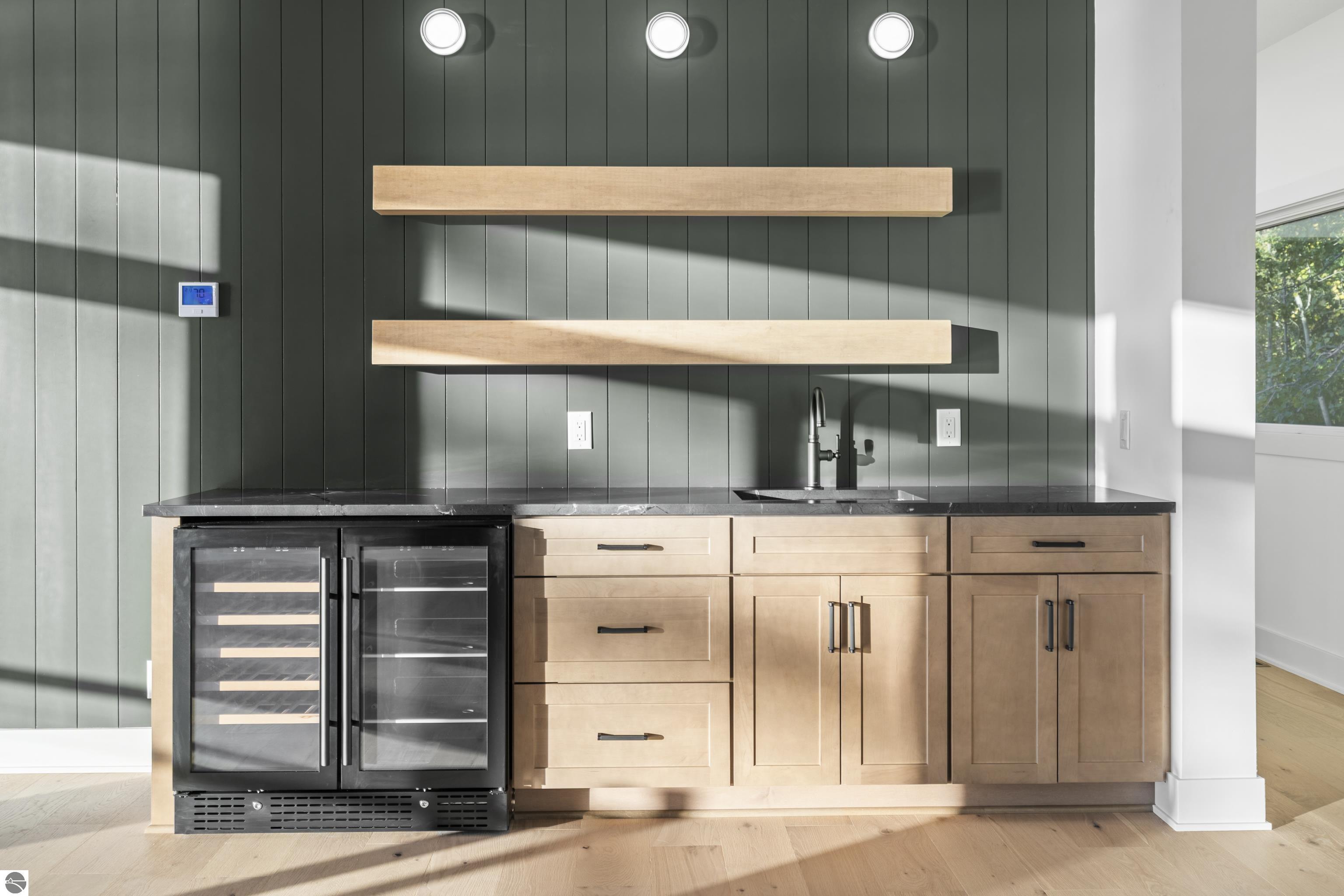 Views of West Bay from every room on the front of the house! Contemporary on Old Mission! The bay sparkles are endlessly beautiful on your extra-wide 109' private beach. And then... your first step into the home is right into the coolest foyer entry in TC! It's a masterpiece featuring a 15 ft. chandelier, which perfectly ignites the beauty from outside, while warming the interior with soft light. The staircase itself is magazine-worthy, with its handmade maple wood treads that will have LED lighting & custom-welded bannister once complete. Everything is new in this renovated home featuring 4 bedrooms, 3.5 baths & a spa-like master bedroom suite with heated floors & a soaking tub overlooking the bay. Top-quality metal roof and siding mean low maintenance for easy living. The second-floor media room is wired for surround sound, has a wet bar, shiplap wall cover, and large easterly facing windows. The room has a balcony overlooking West Bay accessible by 3 walkout sliders, while the third-story bedrooms also feature walk-out balconies, all overlooking beautiful West Bay. All the sights, sounds, and feels are here!