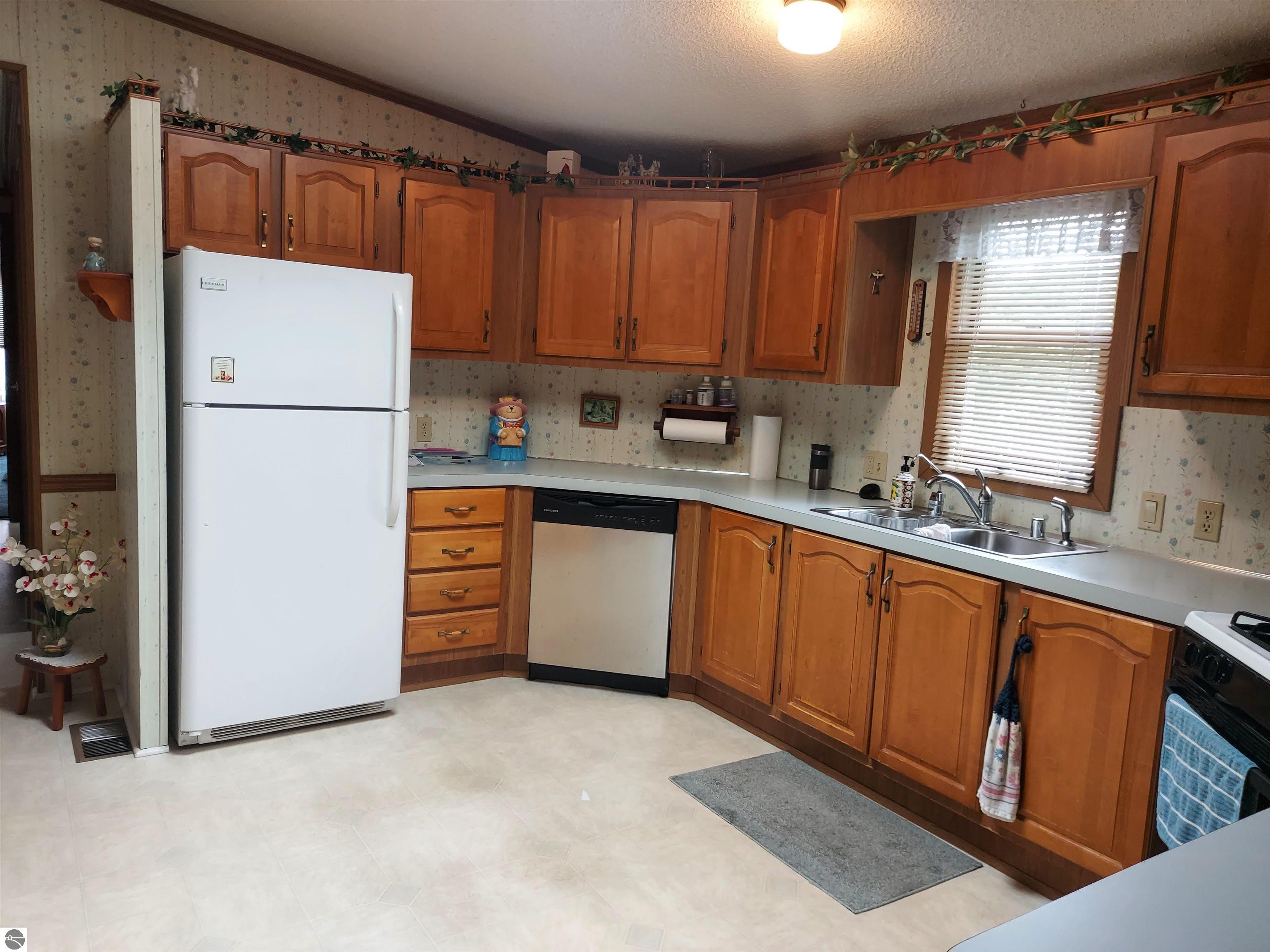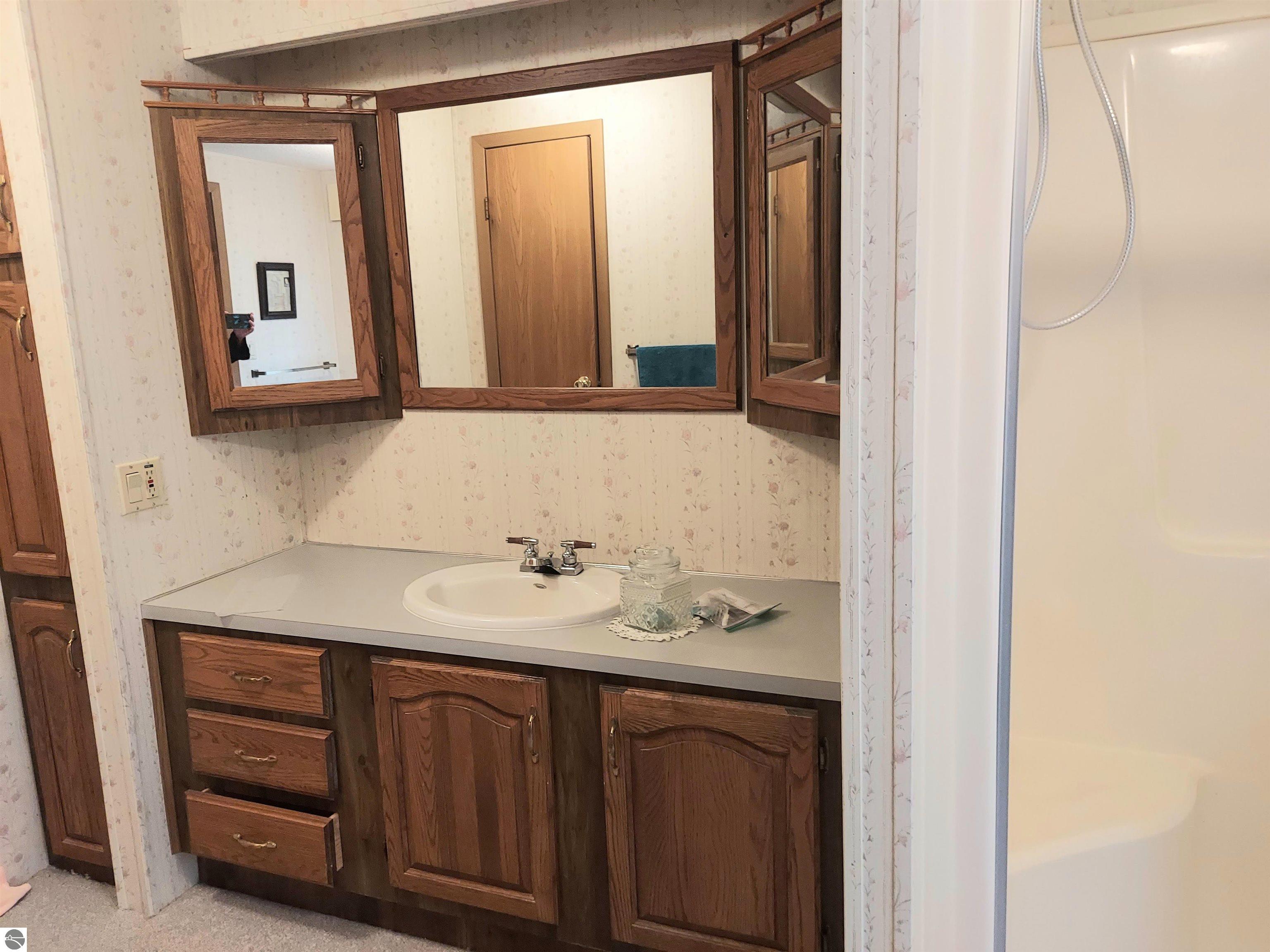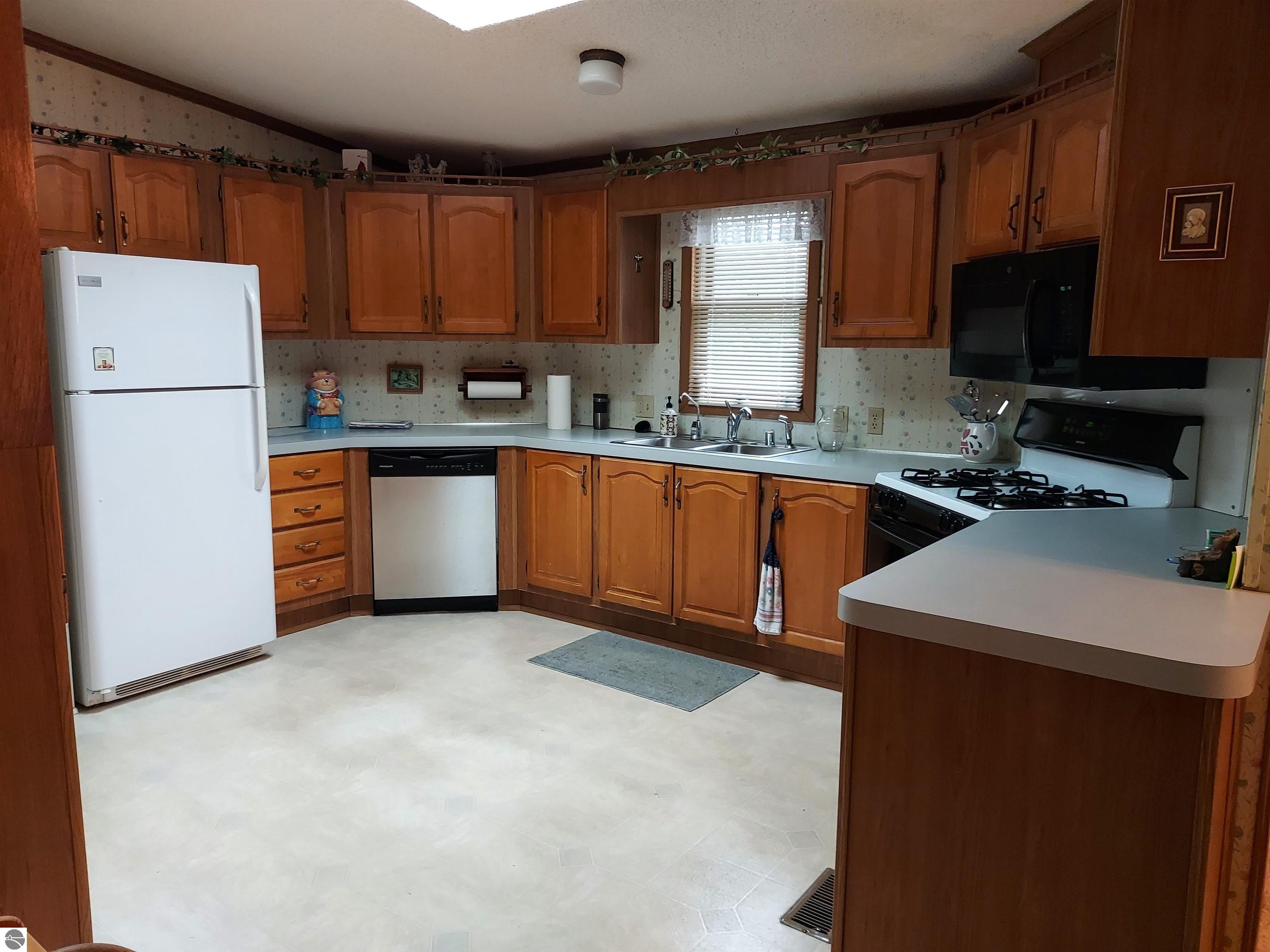 One of the sweeties homes you will find. Off set double wide, with 2 bedrooms, 2 baths built in 1991 Crystal Valley. Current monthly lot rent 800+100 for amenities. Nice large country kitchen with quality cabinets, dining room with slider that takes you to a covered back porch, overlooking a private back yard. Master bath has a large bathroom area with walking shower. Other bedrooms and full bath at the opposite end. Covered front porch with an extended roof to park your car under but it's not a full size carport. Extras: Lots of storage, skylights, sprinklers. Sq ft-rm size approx. water softener is rented .