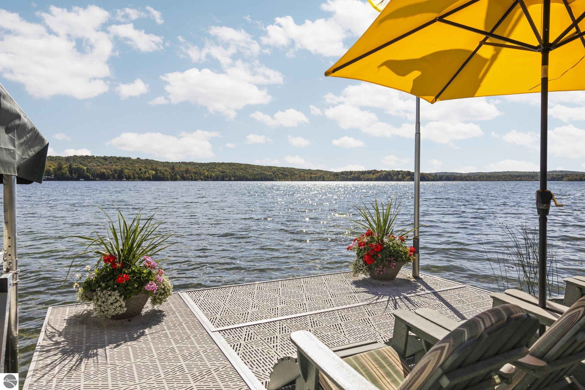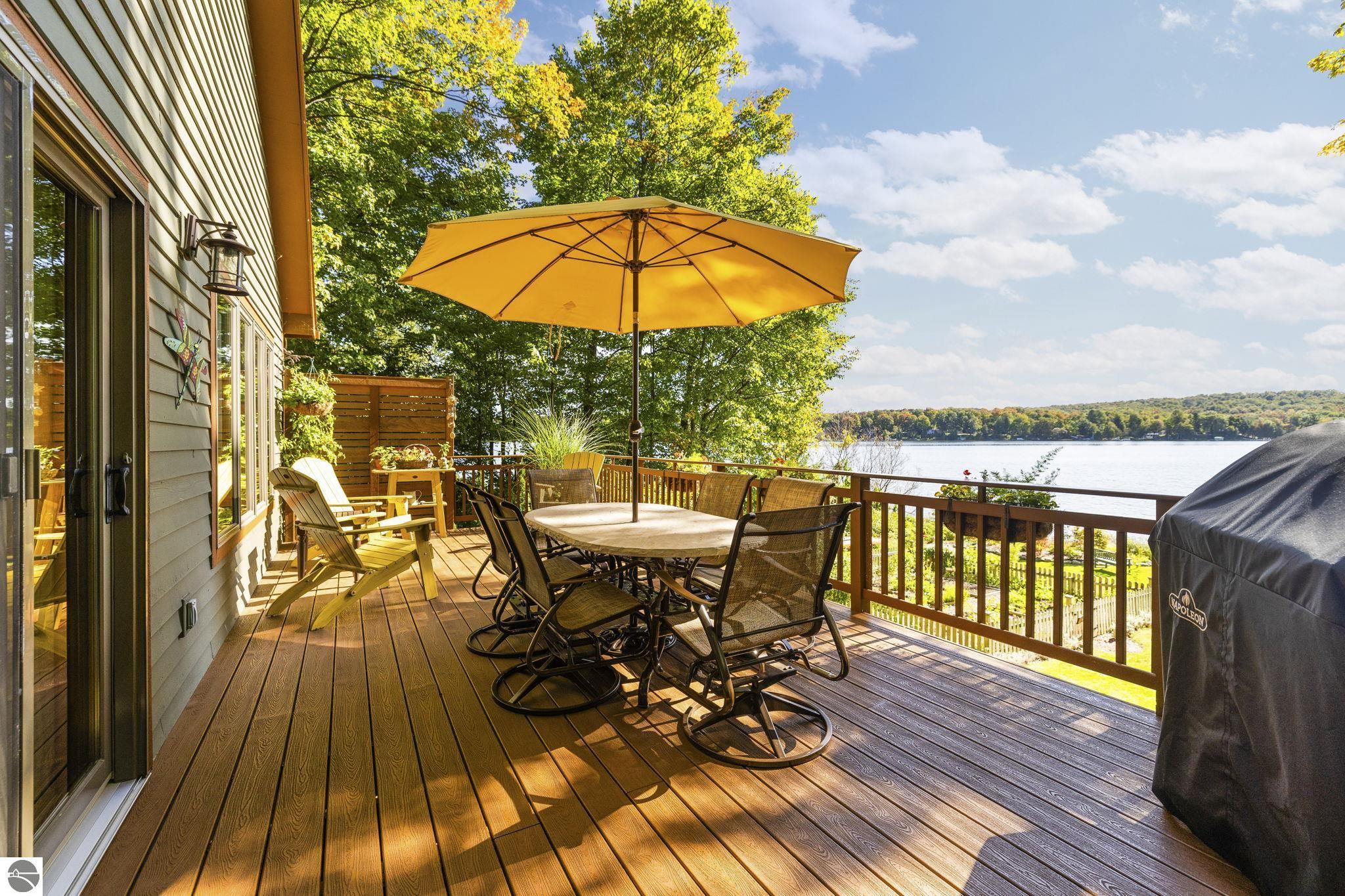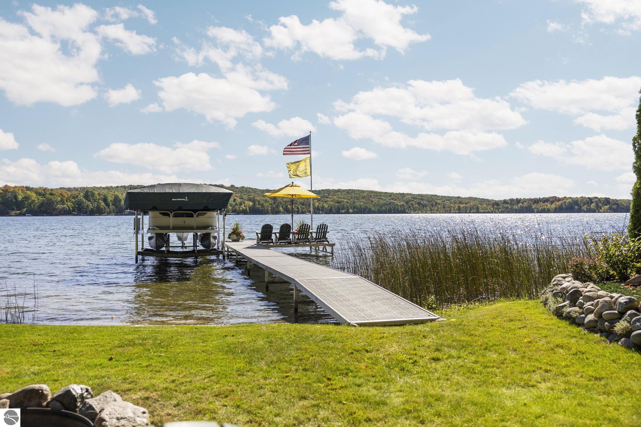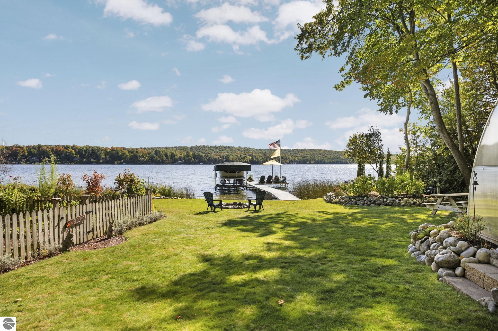 Enjoy year-round living with 90 feet of private frontage on beautiful Duck Lake. This turn-key home has been fully remodeled and carefully maintained, designed to maximize water views from the main floor and beyond. Inside, you’ll find 3 bedrooms and 3 baths, including a spacious upper-level primary suite with loft, main-level laundry, and a finished walkout lower level with family room, guest room, bath, wet bar, and storage- private access makes it perfect for guests or a potential rental. One of the property’s highlights is a stunning, custom greenhouse- a light-filled space ideal for gardening, entertaining, or simply relaxing lakeside. The deep lot features a sandy-bottom shoreline and breathtaking sunrise views. Neighborhood amenities include tennis, basketball, shuffleboard, and a covered pavilion, all just minutes from Traverse City. Dock, pontoon boat, and lift are included in the sale, making this the complete waterfront package.