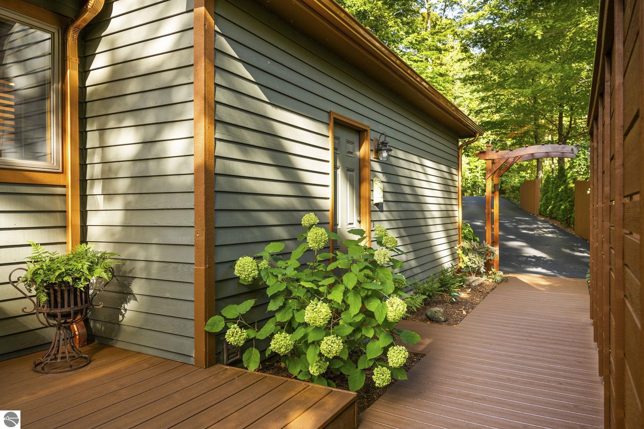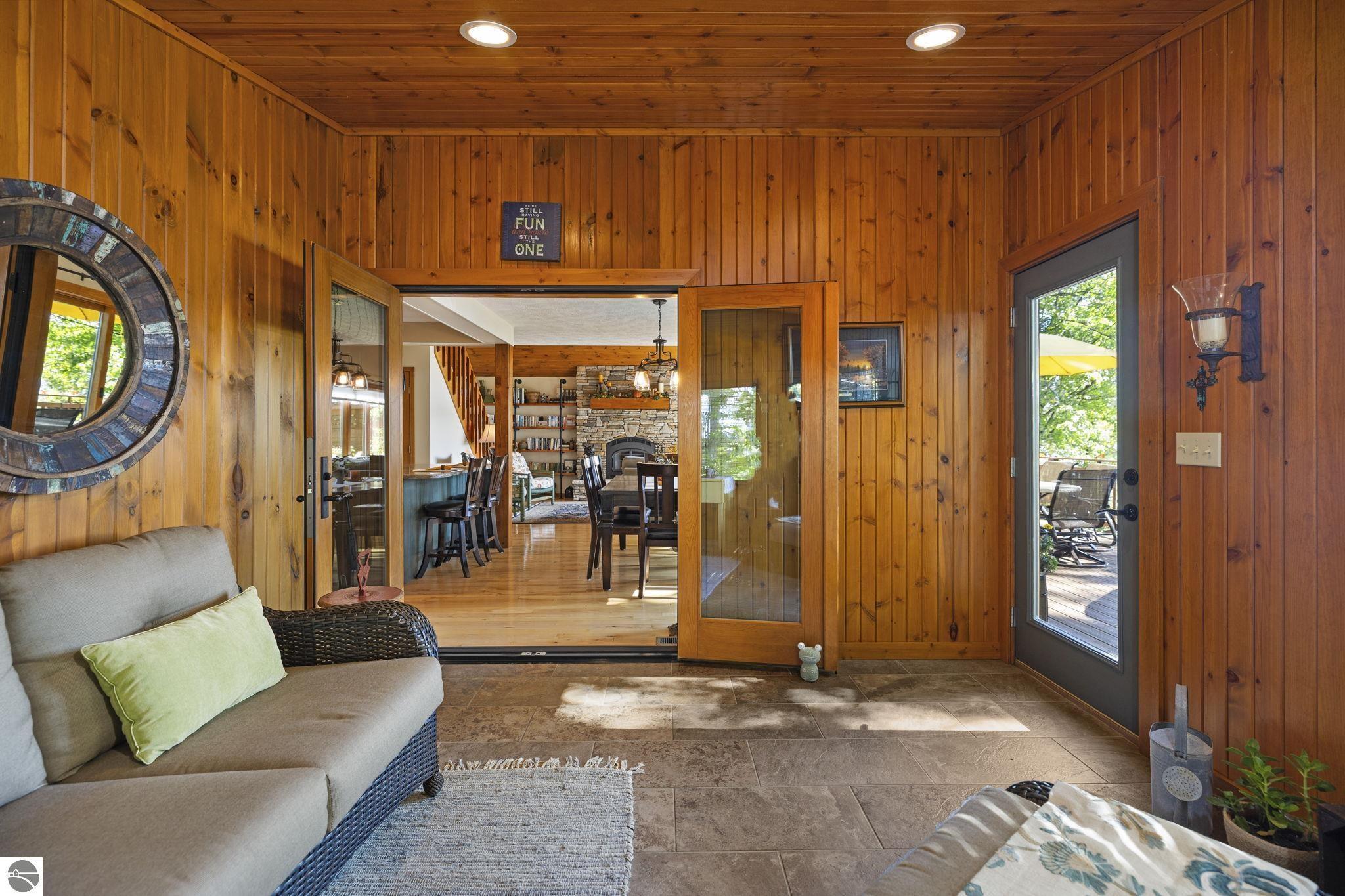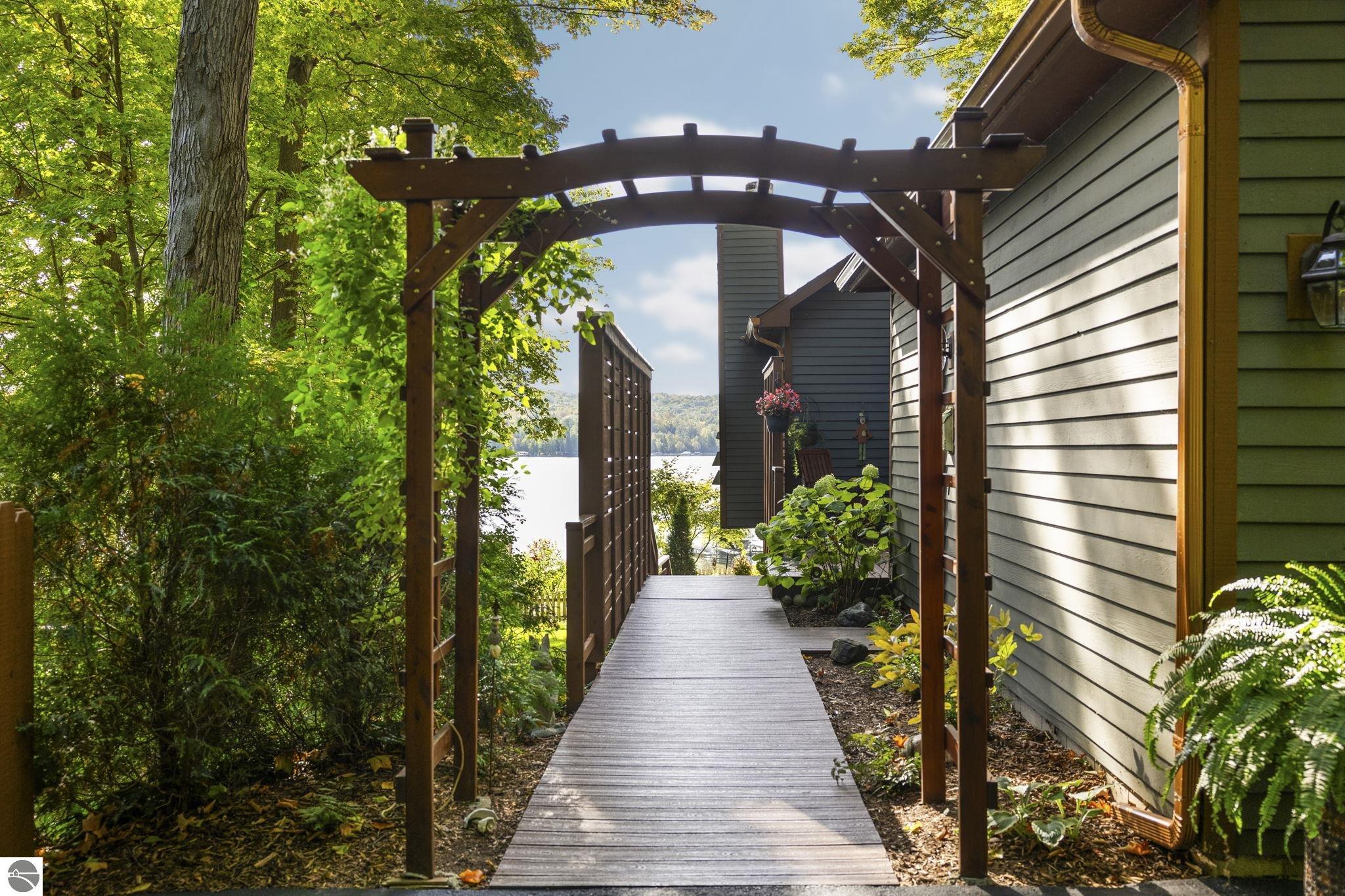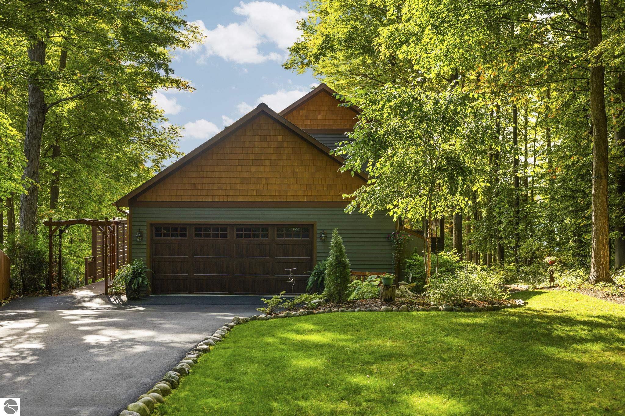 Enjoy year-round living with 90 feet of private frontage on beautiful Duck Lake. This turn-key home has been fully remodeled and carefully maintained, designed to maximize water views from the main floor and beyond. Inside, you’ll find 3 bedrooms and 3 baths, including a spacious upper-level primary suite with loft, main-level laundry, and a finished walkout lower level with family room, guest room, bath, wet bar, and storage- private access makes it perfect for guests or a potential rental. One of the property’s highlights is a stunning, custom greenhouse- a light-filled space ideal for gardening, entertaining, or simply relaxing lakeside. The deep lot features a sandy-bottom shoreline and breathtaking sunrise views. Neighborhood amenities include tennis, basketball, shuffleboard, and a covered pavilion, all just minutes from Traverse City. Dock, pontoon boat, and lift are included in the sale, making this the complete waterfront package.