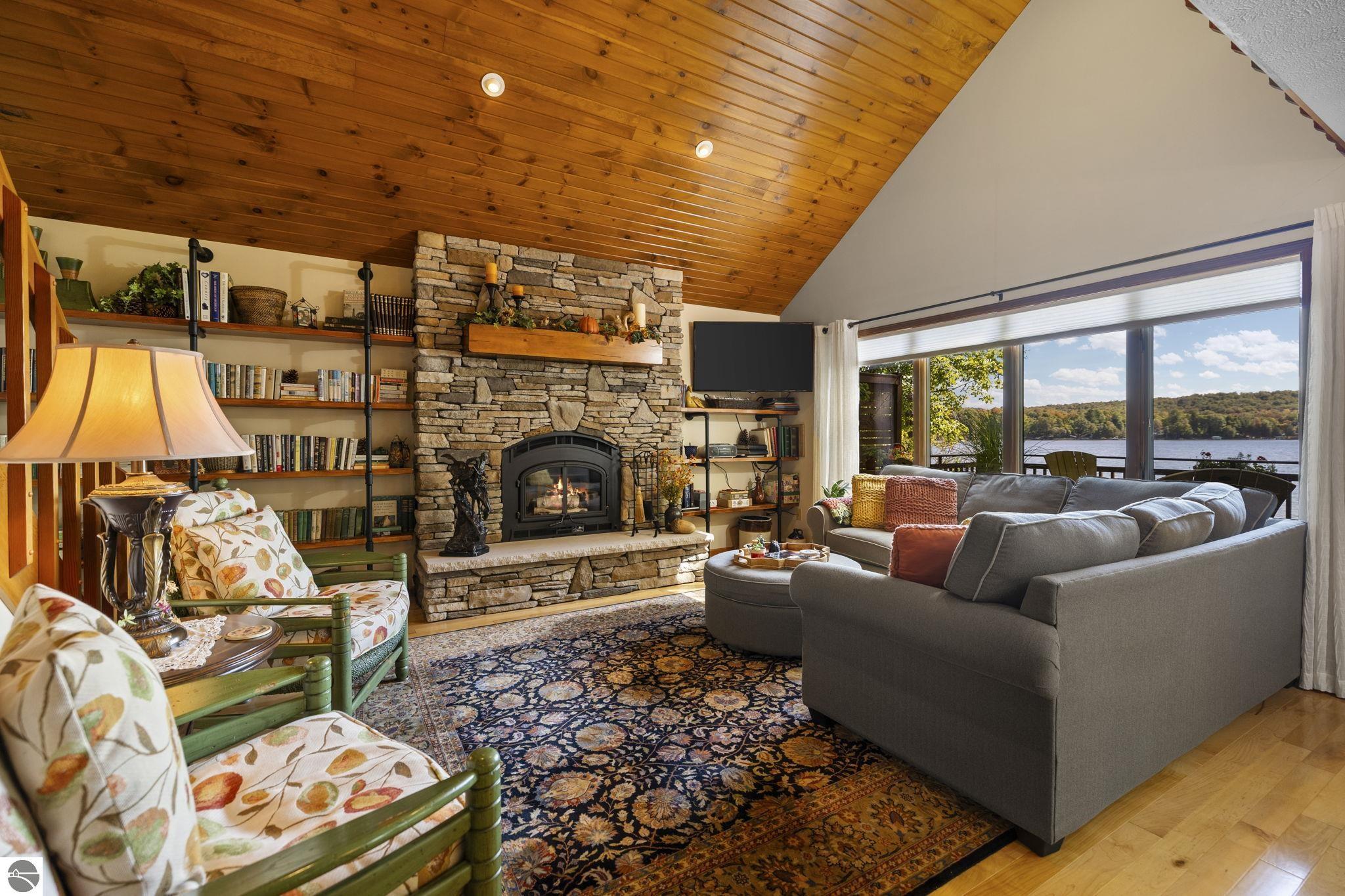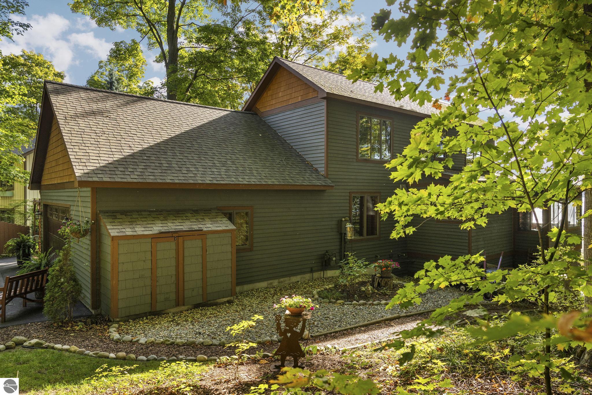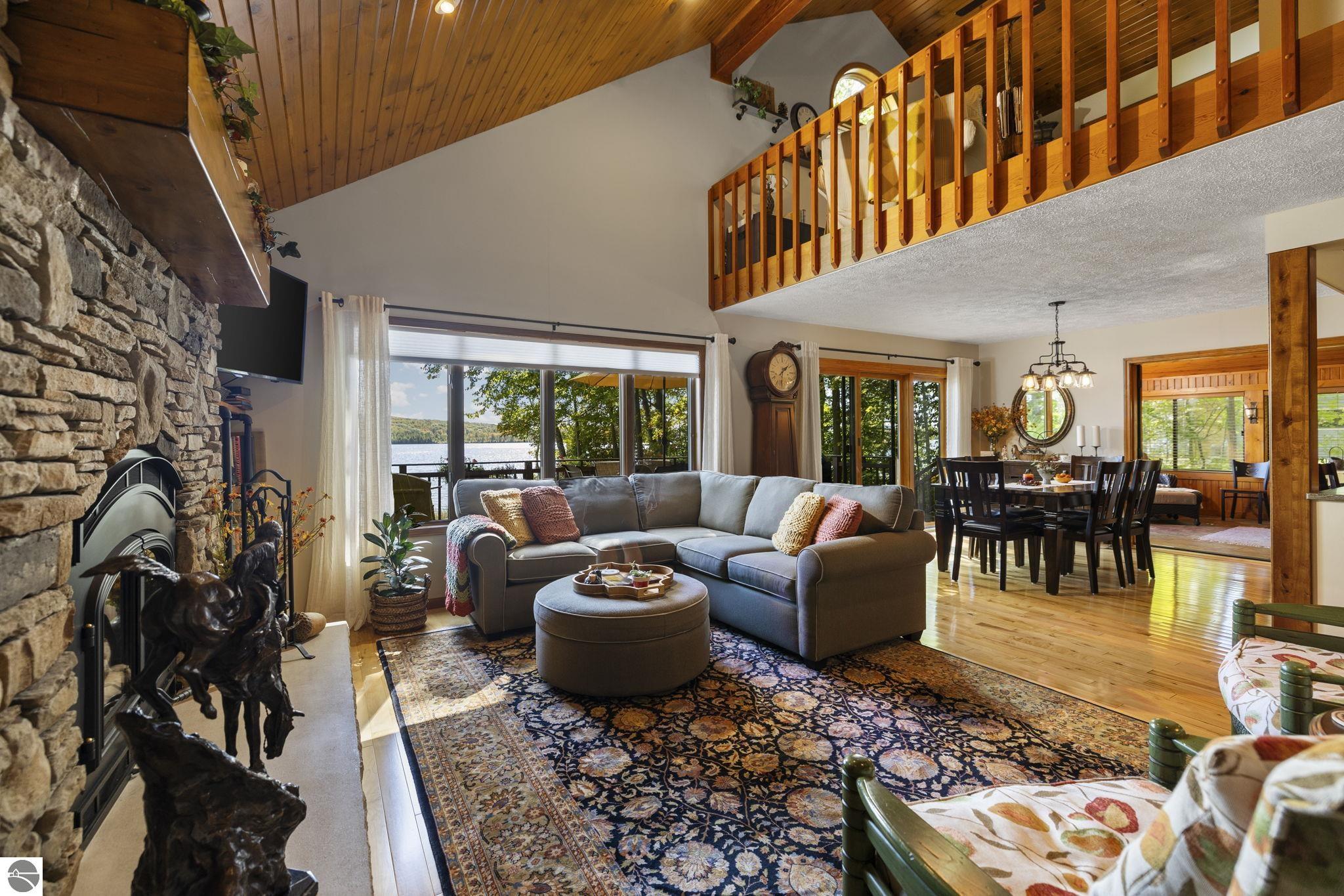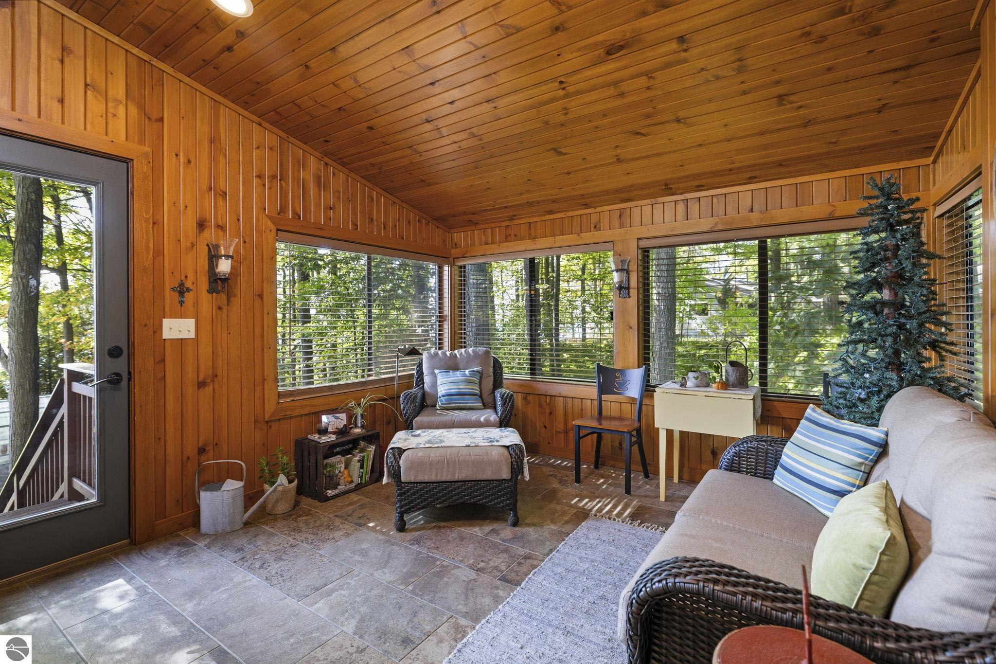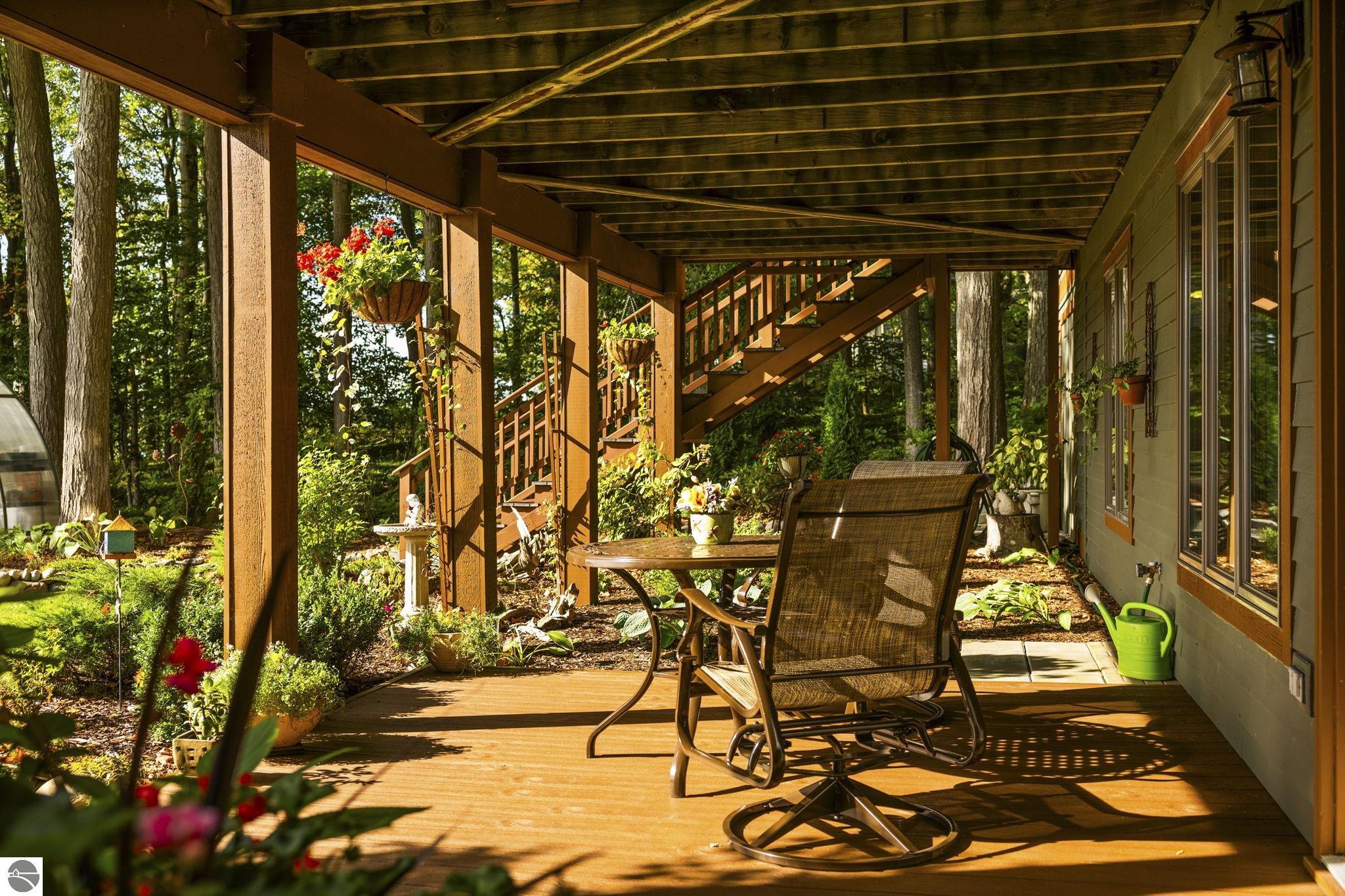Enjoy year-round living with 90 feet of private frontage on beautiful Duck Lake. This turn-key home has been fully remodeled and carefully maintained, designed to maximize water views from the main floor and beyond. Inside, you’ll find 3 bedrooms and 3 baths, including a spacious upper-level primary suite with loft, main-level laundry, and a finished walkout lower level with family room, guest room, bath, wet bar, and storage- private access makes it perfect for guests or a potential rental. One of the property’s highlights is a stunning, custom greenhouse- a light-filled space ideal for gardening, entertaining, or simply relaxing lakeside. The deep lot features a sandy-bottom shoreline and breathtaking sunrise views. Neighborhood amenities include tennis, basketball, shuffleboard, and a covered pavilion, all just minutes from Traverse City. Dock, pontoon boat, and lift are included in the sale, making this the complete waterfront package.