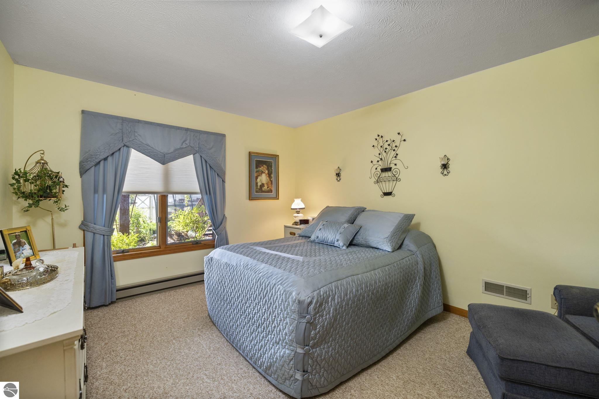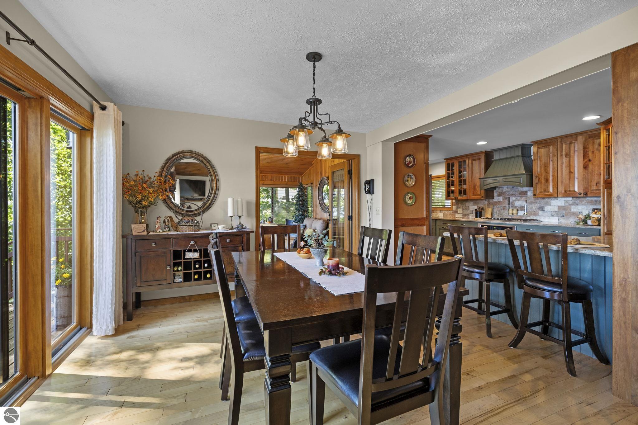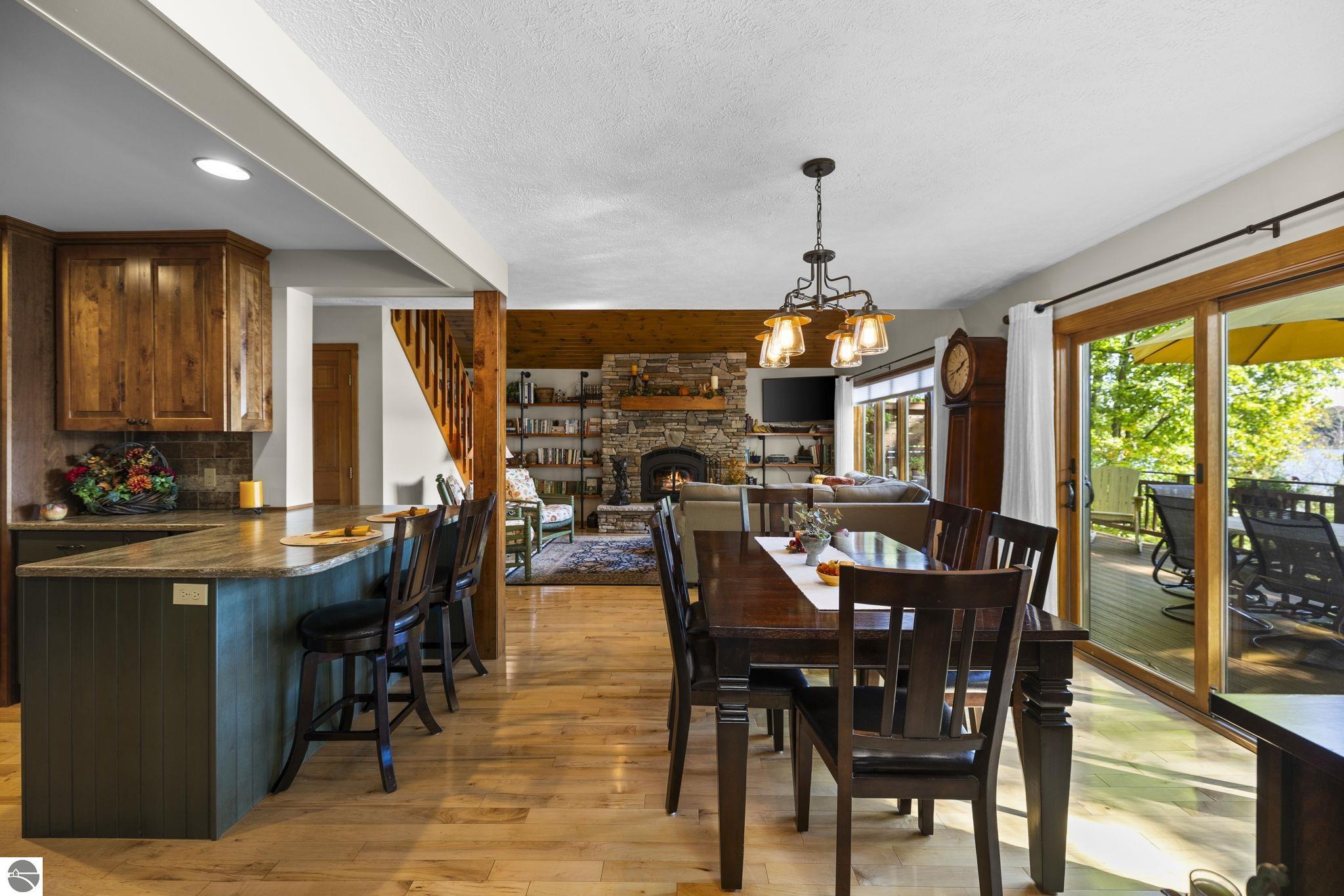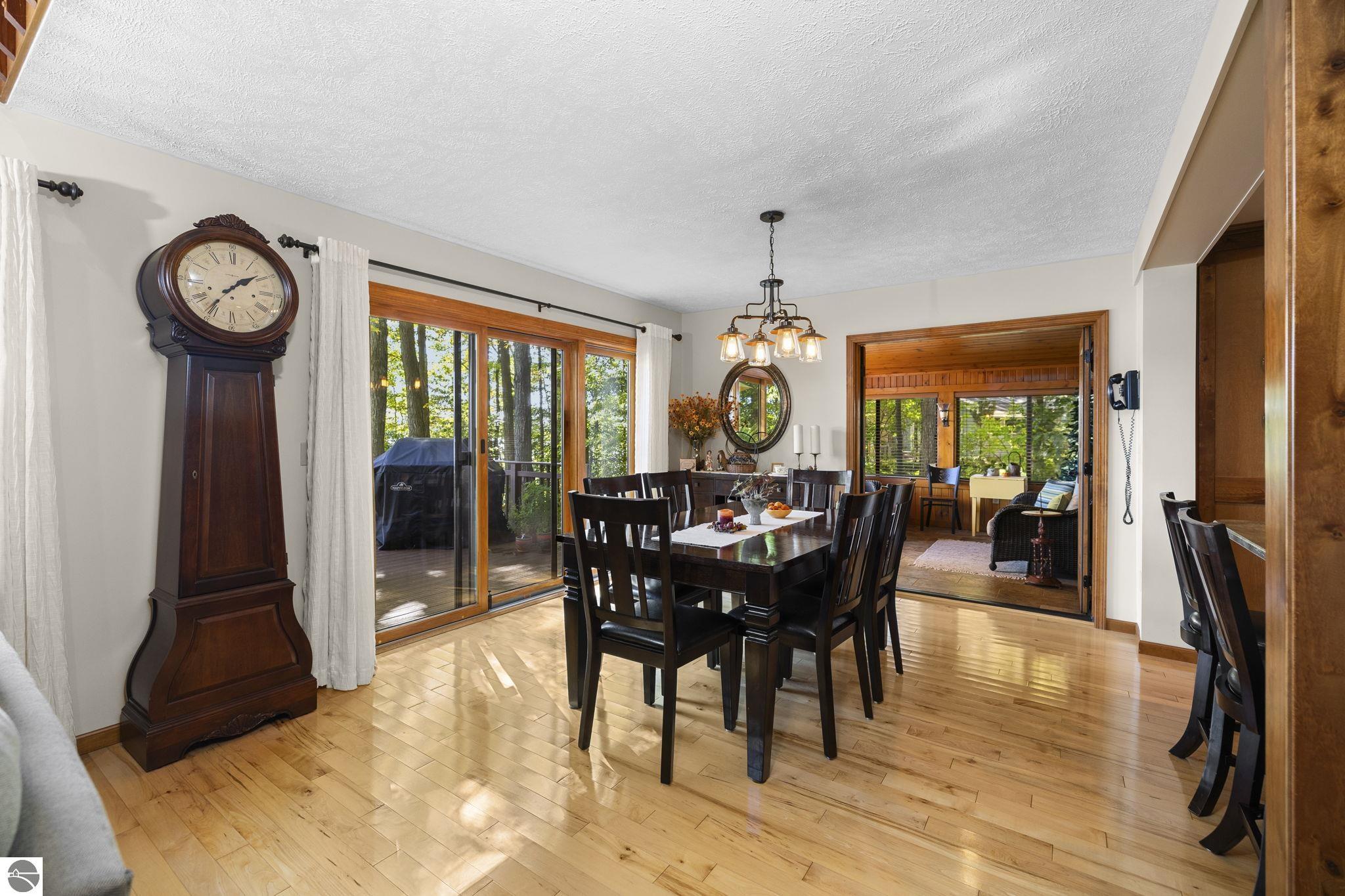 Enjoy year-round living with 90 feet of private frontage on beautiful Duck Lake. This turn-key home has been fully remodeled and carefully maintained, designed to maximize water views from the main floor and beyond. Inside, you’ll find 3 bedrooms and 3 baths, including a spacious upper-level primary suite with loft, main-level laundry, and a finished walkout lower level with family room, guest room, bath, wet bar, and storage- private access makes it perfect for guests or a potential rental. One of the property’s highlights is a stunning, custom greenhouse- a light-filled space ideal for gardening, entertaining, or simply relaxing lakeside. The deep lot features a sandy-bottom shoreline and breathtaking sunrise views. Neighborhood amenities include tennis, basketball, shuffleboard, and a covered pavilion, all just minutes from Traverse City. Dock, pontoon boat, and lift are included in the sale, making this the complete waterfront package.