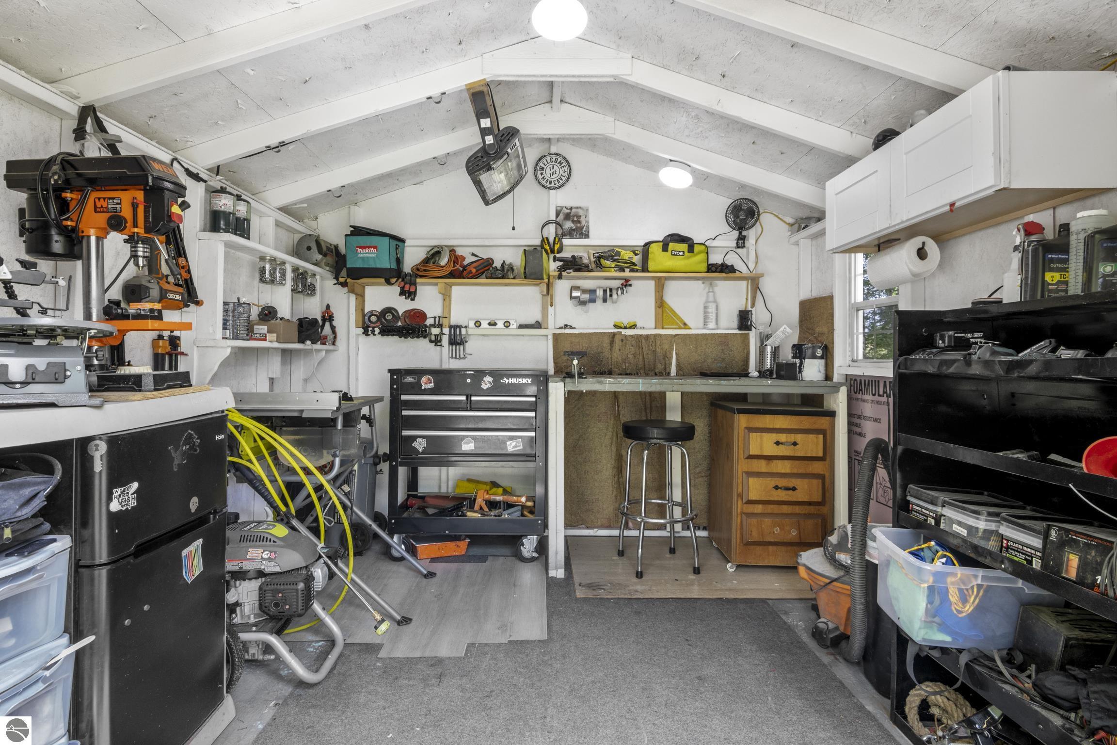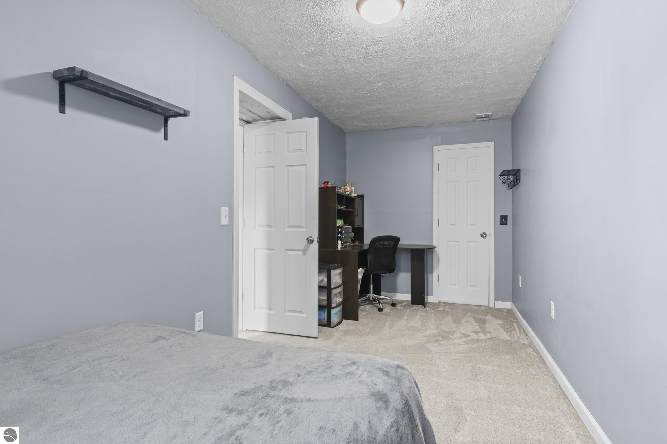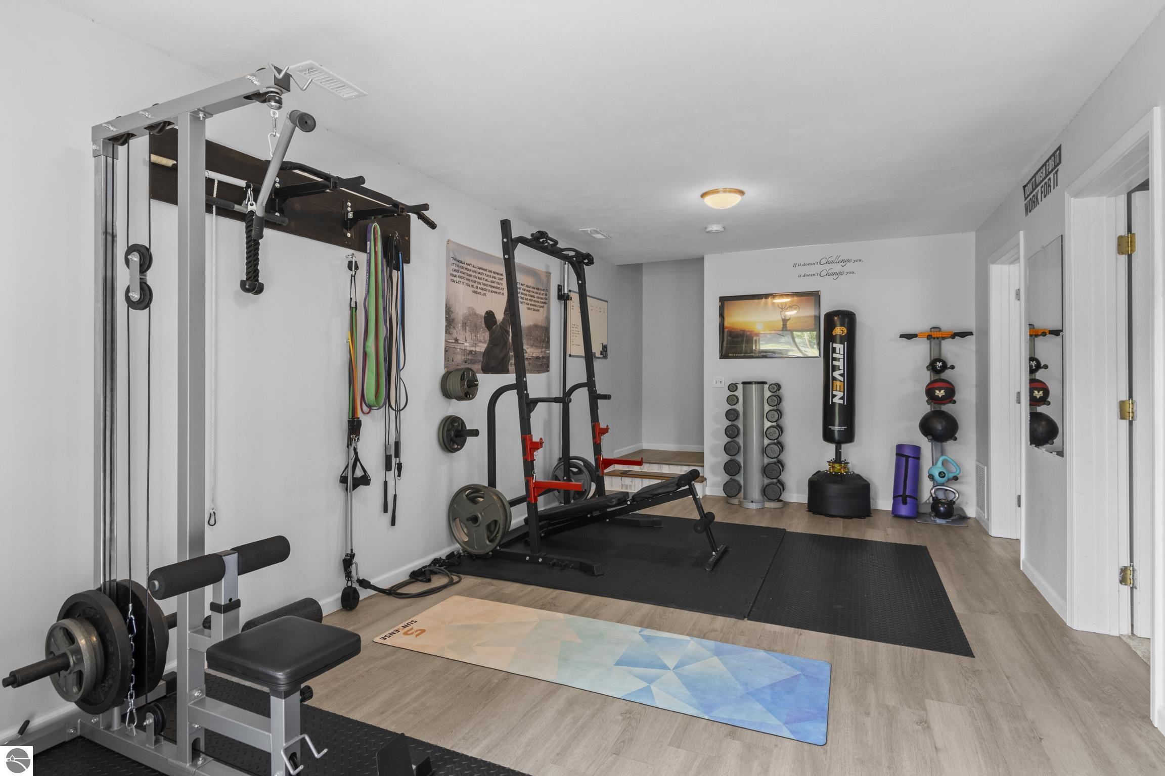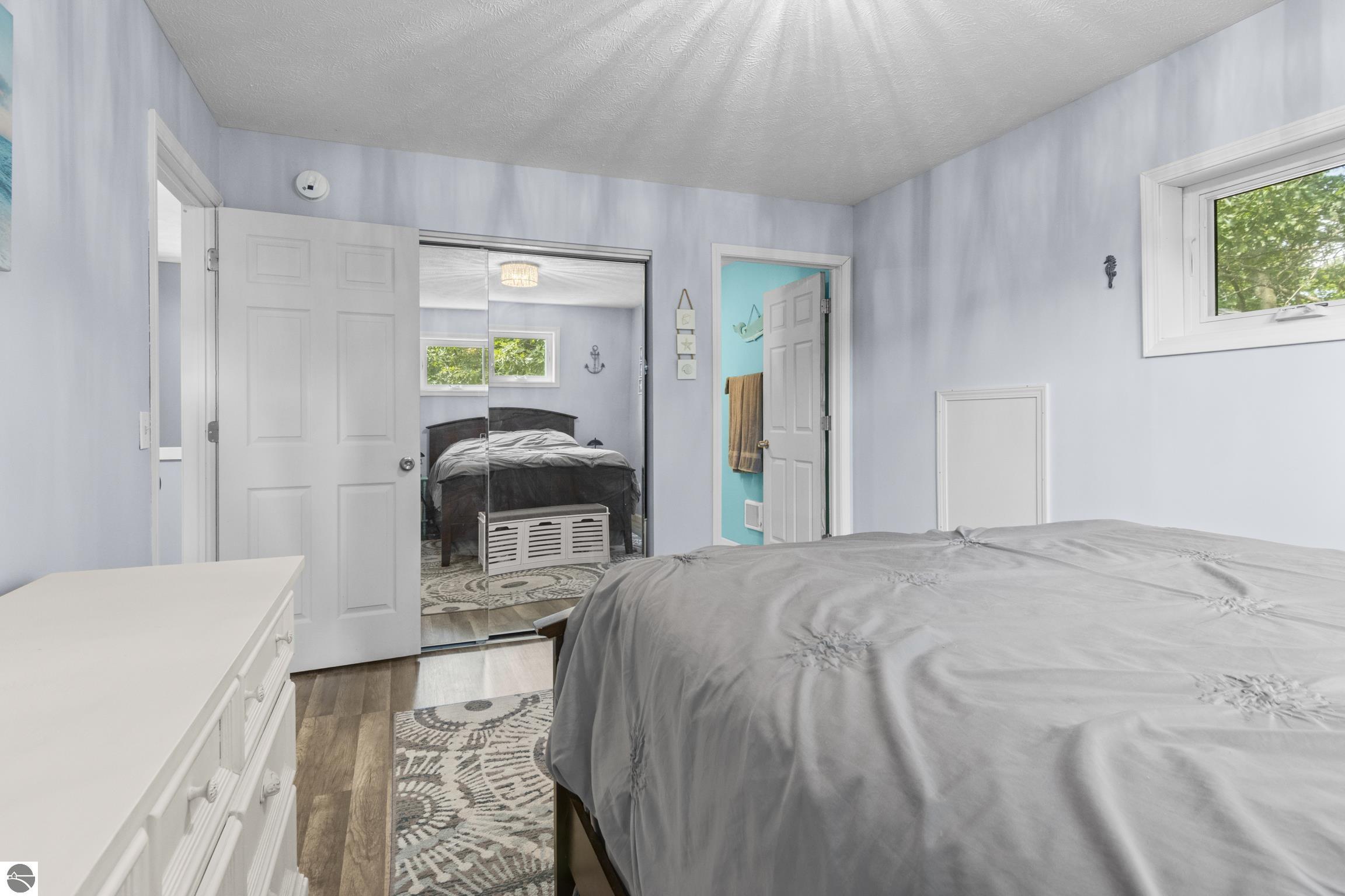 Stunning park-like setting for this fully updated 4 bedroom 2.5 bath home set on over an acre on a cul-de-sac. Updates include new roof 2024, full remodel in 2019 with new furnace, hot water heater, appliances & sliding glass doors and nearly all windows. Charming covered entry opens into a spacious living room with country side views out of all windows and flows beautifully into the dining and kitchen. Deck on the rear of the home overlooks the woods and is perfect for bbq'ing. Kitchen is fresh and clean with white cabinets, subway tile backsplash, stainless steel appliances and granite counter tops. A cooks delight! The darling powder room is tucked in under the stairs. Upstairs there are three bedrooms and a large bathroom. The lower level is a walkout with great light, the family room is currently used as workout space could also be a great place for movie night & game nights. There is addition bedroom and office as well as the laundry room and a full bath. Step outside and enjoy the garden area, fenced to keep the wildlife out of the veggies. There is an attached 2 car garage and a shed which has a full workshop. This home is an eastside gem, close to lakes, the VASA trail, the Boardman River, and just a few miles to downtown Traverse City.