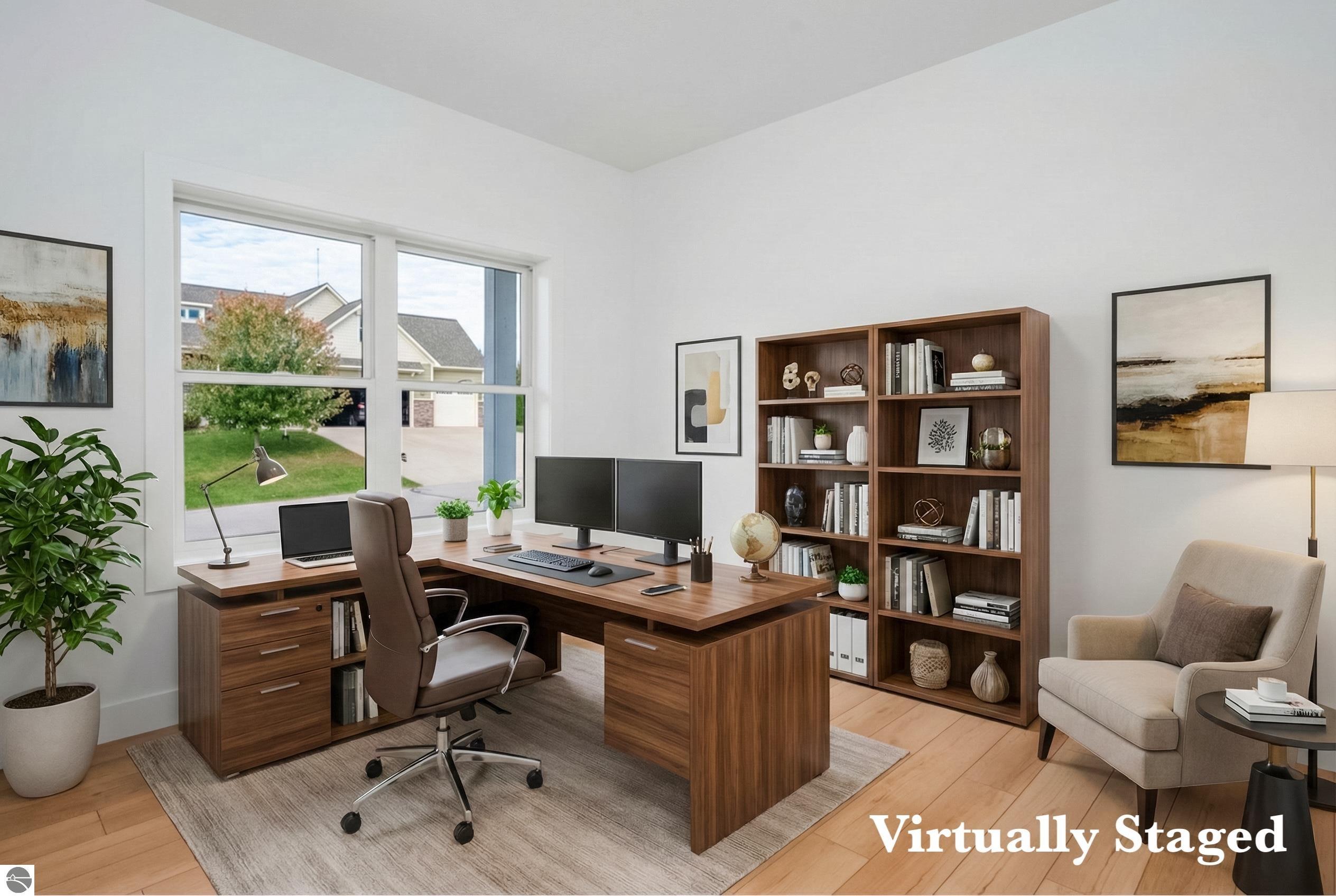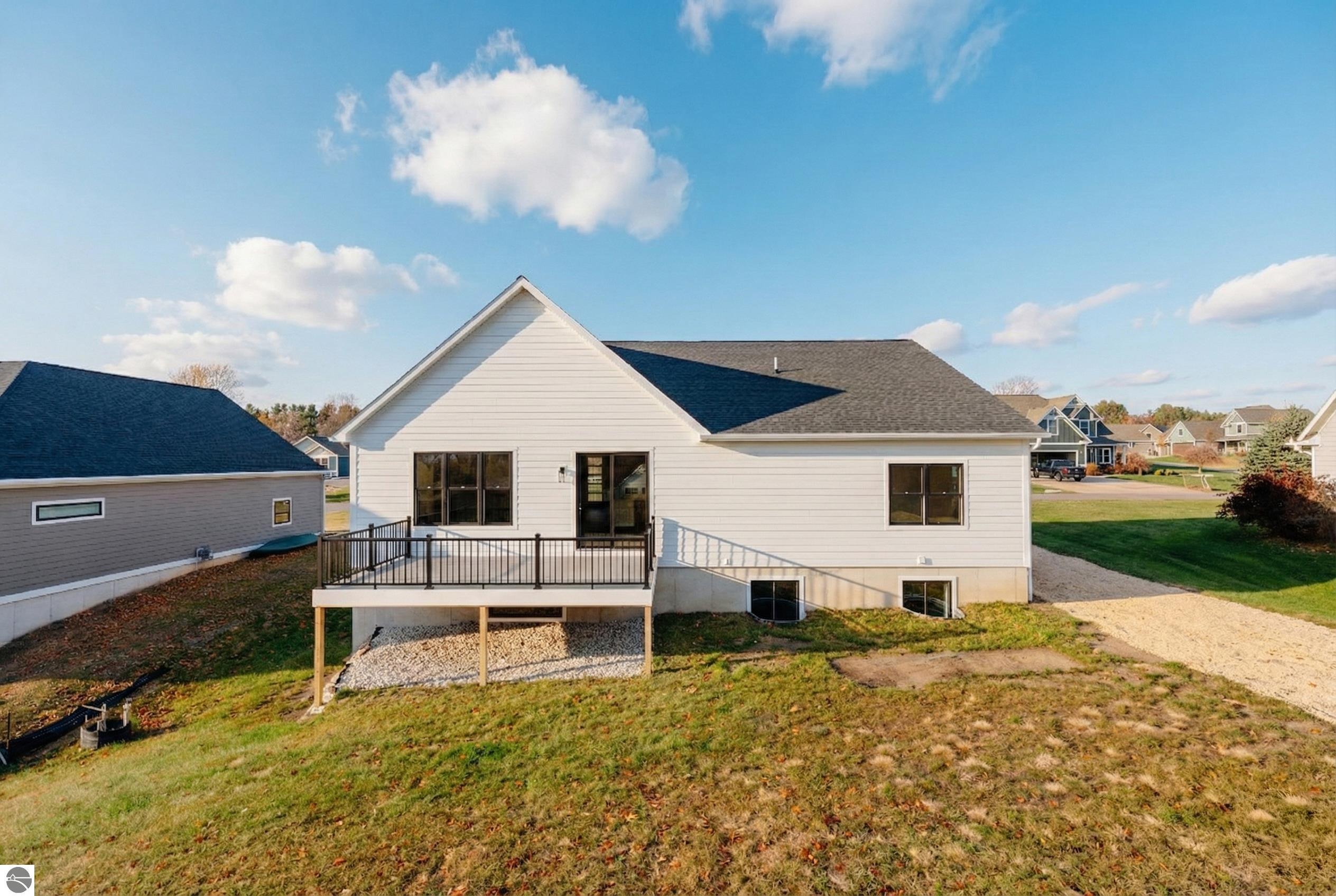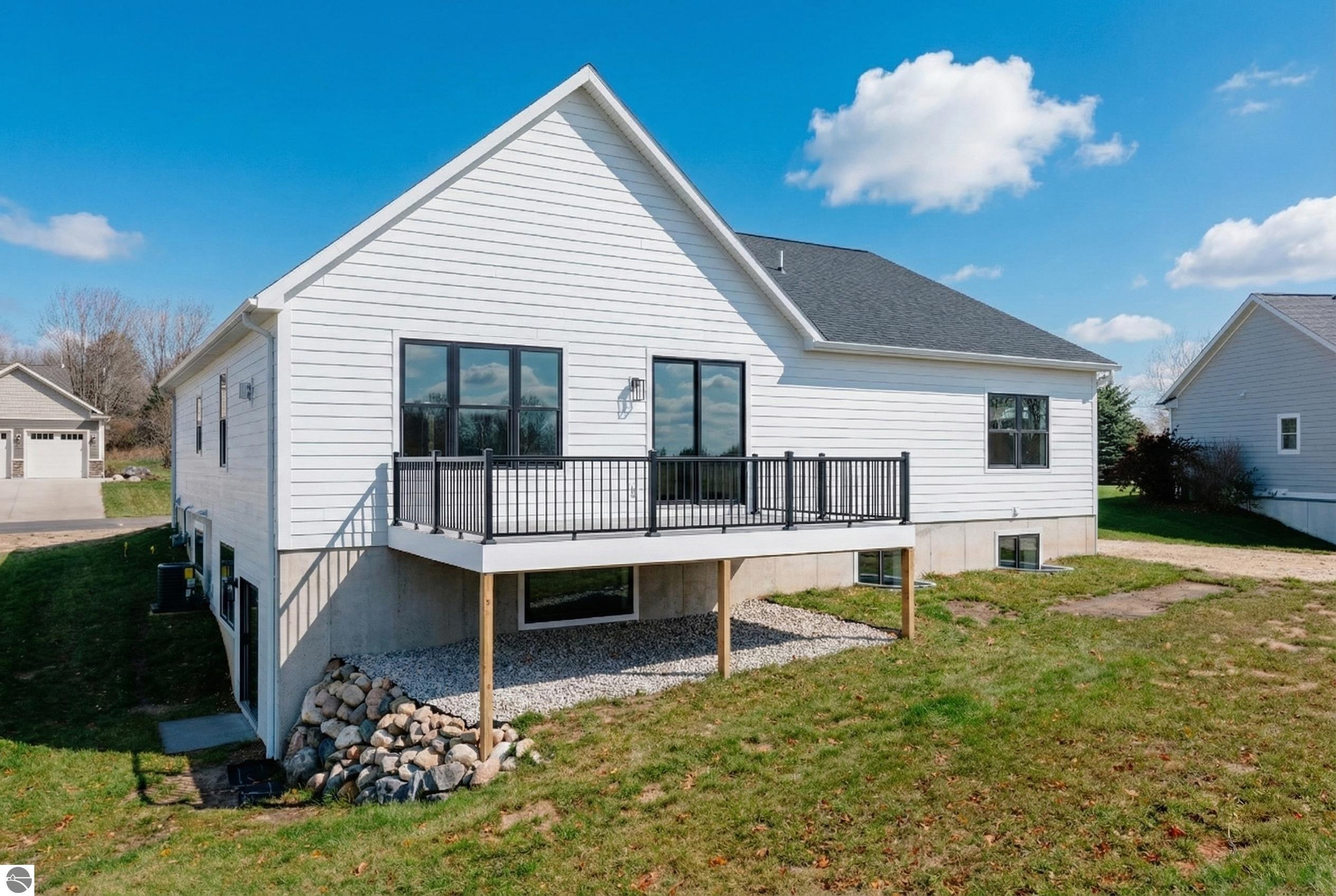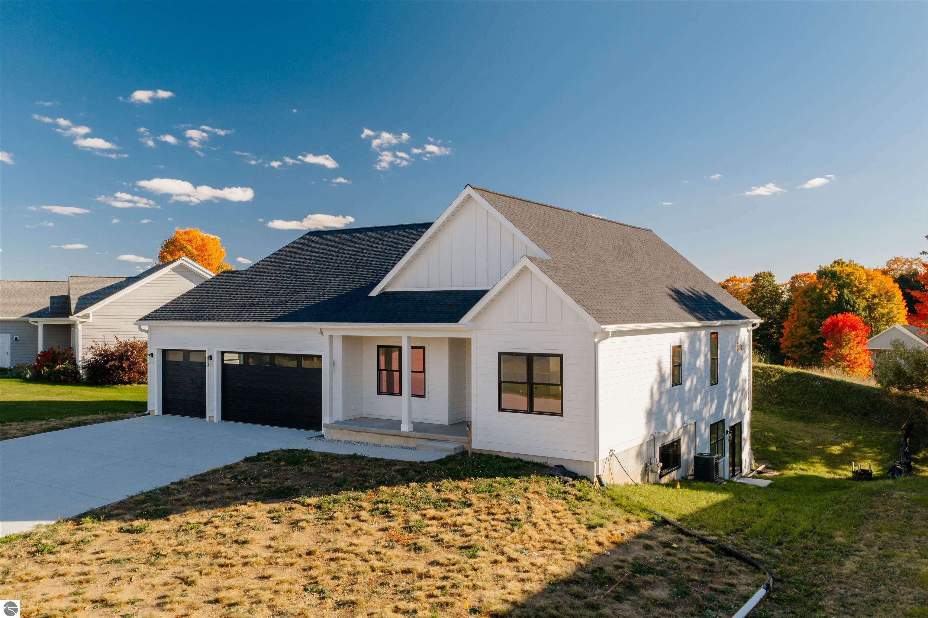 Introducing a brand new modern luxury home on the vibrant west side of Traverse City! The builder just completed this stunning 5-bedroom, 3-bathroom home, complete with a finished 3-car garage. Meticulous attention has been paid to every detail, and the curb appeal is impressive. The home features quartz counters, luxury vinyl plank floors, a shiplap fireplace and island, built-in bookcases, 8-foot doors, LP Smartside trim and siding, central air, a covered concrete front porch, and a maintenance-free composite wood deck. The main floor includes a primary ensuite with tiled floors and a tiled floor-to-ceiling shower, as well as two additional bedrooms and bath. The finished walkout lower level showcases two additional bedrooms, a spacious family room, and a full bath. Municipal water and sewer. Residents can enjoy the walking trails within the Lone Tree community, which even connect to TC West High School. You'll love this close-to-everything location that's just a few miles from downtown!