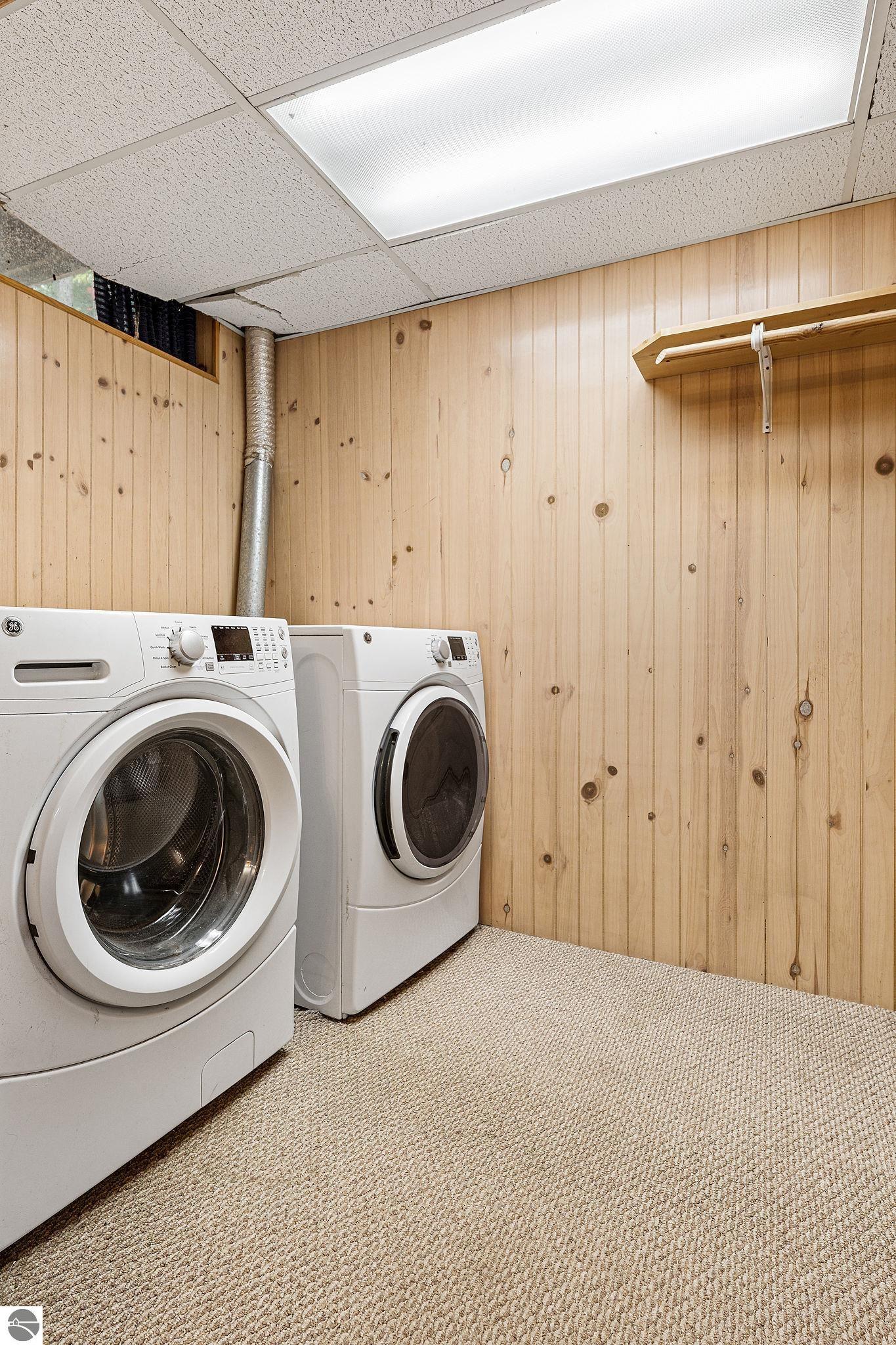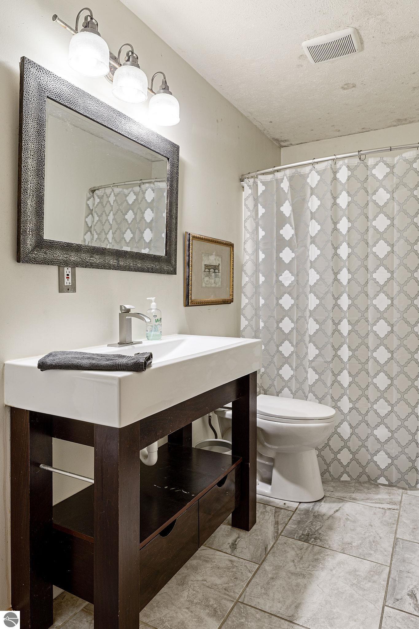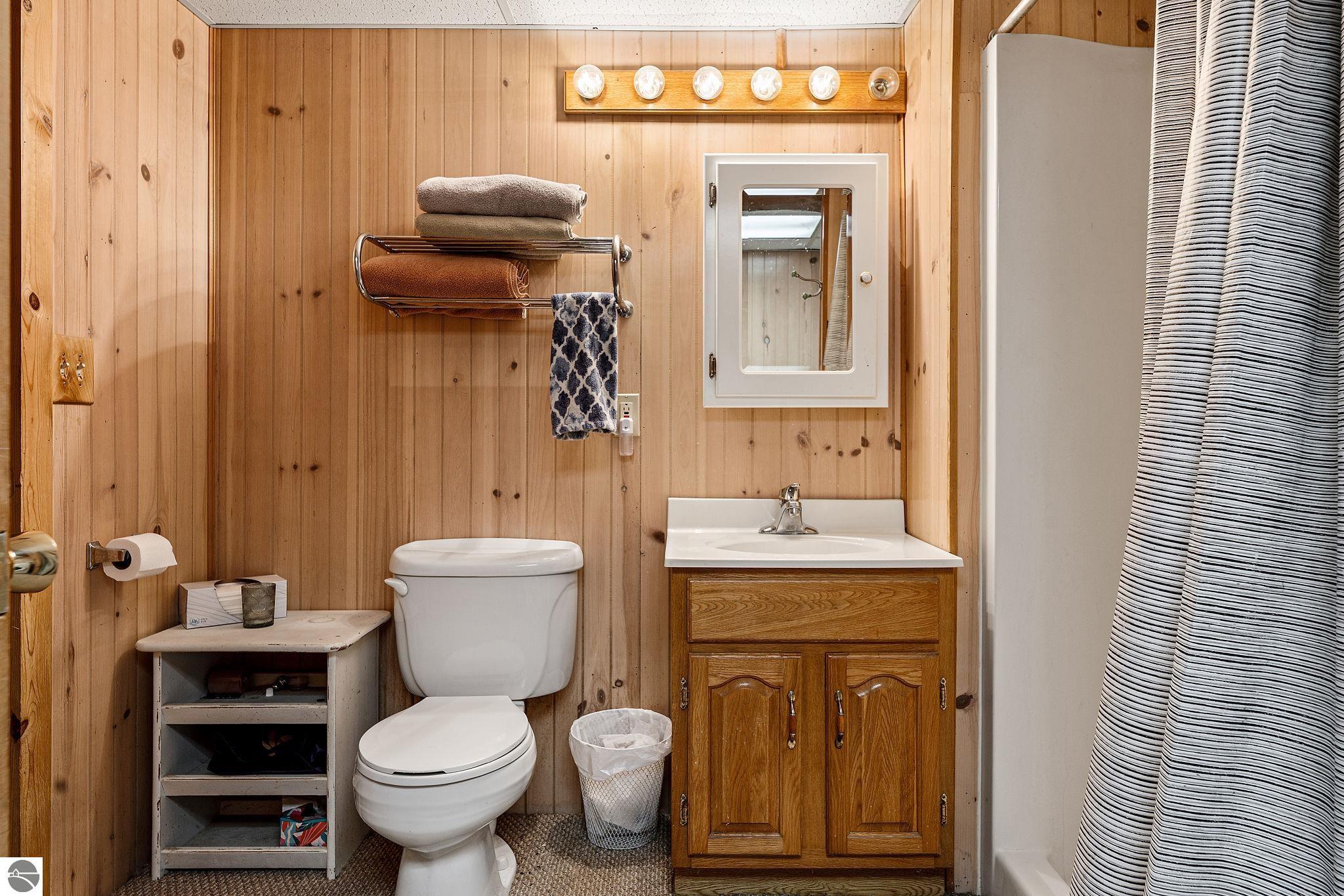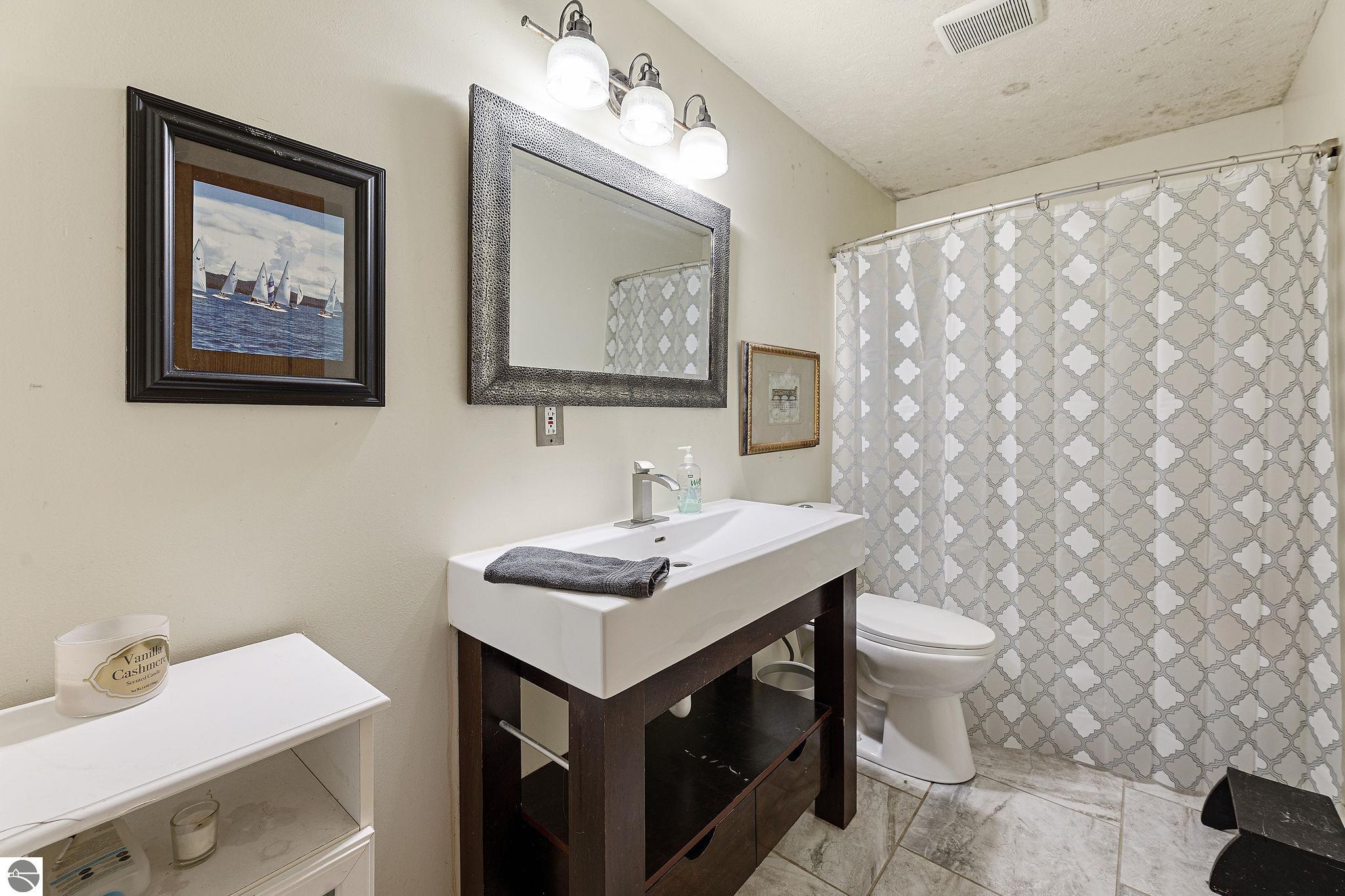 Experience classic Up North living in this custom full-scribed log home offering beautiful views of Big Glen Lake. The main level features hardwood floors, a natural-burning stone masonry fireplace, two bedrooms, and a full bath — all wrapped in warm knotty pine. A spacious lofted master bedroom provides additional privacy and comfort. The walkout lower level is fully self-contained and ideal for guests or use as an in-law suite, complete with its own kitchen, bar, bathroom, washer and dryer, and a second natural-burning stone fireplace. This flexible layout allows multiple uses — enjoy the entire home as a vacation retreat, or live on the main and upper levels while offering the lower level as a rental opportunity. Expansive multi-level decking extends the living space outdoors, perfect for entertaining or relaxing while taking in the natural wooded setting and lake views, Home is being sold in as - is condition. Rustic character and practical functionality come together in a location close to Big Glen Lake access and year-round recreation — making this a standout property in one of northern Michigan’s most desirable areas. Seller is a licensed Real Estate agent in the State of Michigan.