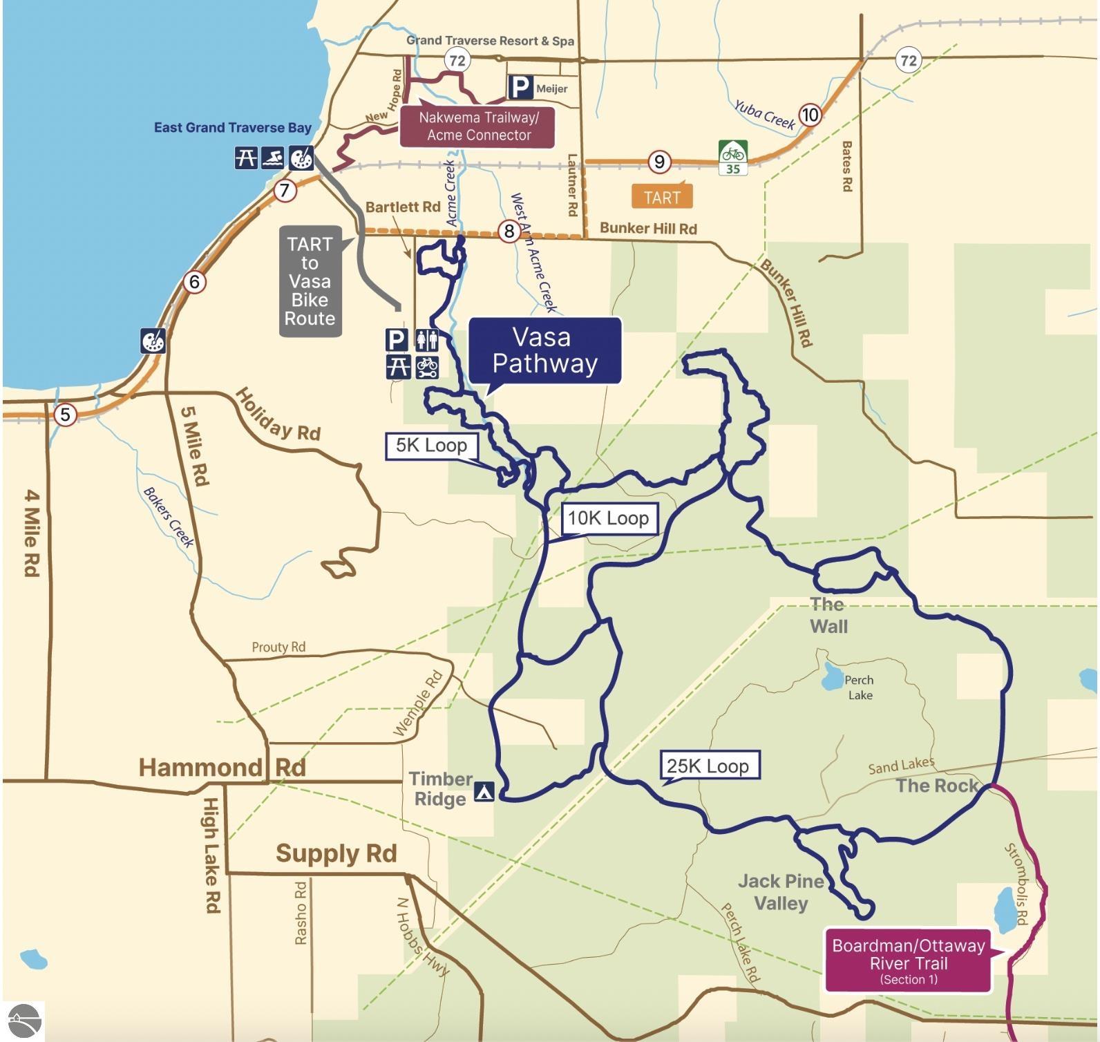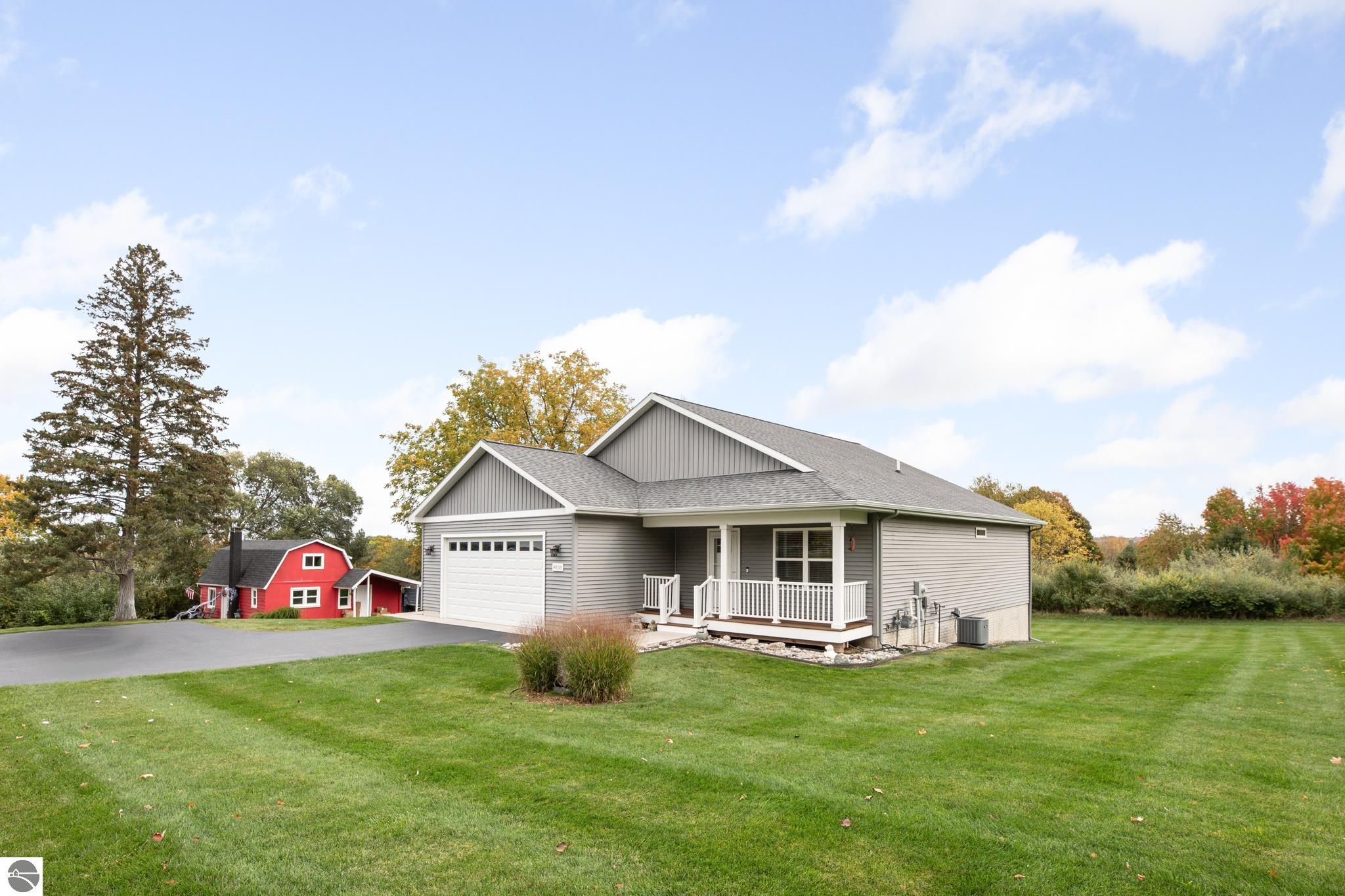 If you're an outdoor recreation minded buyer, looking for the perfect location to get outside and enjoy life, you'll love this like new home and property located adjacent to the northern part of the Vasa Pathway Trail. The backyard east boundary line provides direct access to the Vasa Trail that's enjoyed by many on a year around basis. This convenient ranch plan is slightly elevated above the back yard, and provides a panoramic, east facing perspective that captures spectacular sunrises and moonrises over a lush wooded natural area with pastoral countryside views beyond. Built in 2019, this immaculate home is move-in ready, featuring some newer appliances, spacious primary ensuite with a new 5' step in shower, double sink vanity, two other main level large bedrooms that share the second full bath, a generously sized kitchen that provides space for multiple home chefs to create memorable culinary delights. Step out onto the elevated east side deck to enjoy morning coffee with the neighborhood wild birds, or wait until later when it's happy hour or you're ready to fire up the grill. The full unfinished, walkout basement provides a blank pallet to create a spacious family room, exercise area, studio, home theater, or bedroom, is plumbed for a third full bath, and has an additional laundry hookup already installed should there be a need to create a multi-generational household. Very well maintained inside and out, with regular HVAC service, lawn care (and underground irrigation), with possession to be offered at closing. You'll enjoy the proximity to the "east side" amenities, Grand Traverse Resort for golf and tennis, East Grand Traverse Bay or multiple inland lakes, the Boardman River, nearby Meijer store, Elk Rapids, farm markets, Flint Field/Horse Shows by the Bay, and so much more! We're making this great home available for viewing until November 4 at 4:00, when highest and best offers will need to be submitted, & will be responded to within 24 to 48 hours