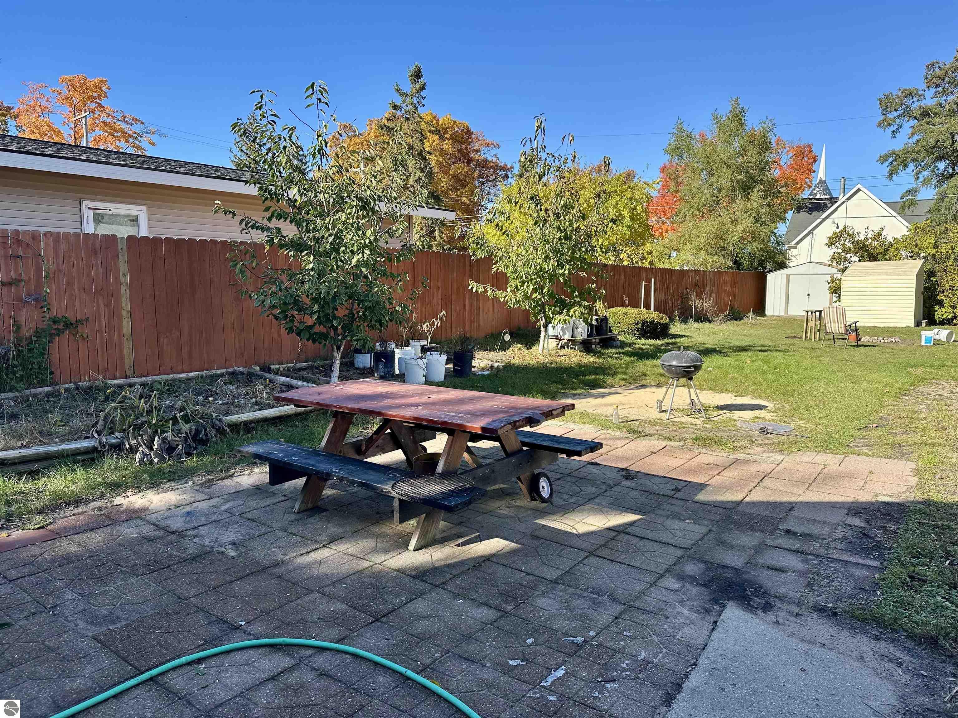 DEAL ALERT! Adorable Bungalow located in beautiful downtown Traverse City with 40x14 garage, shed, and great fenced backyard. This home had an electrical fire in 2010 from a faulty GFI plug and was taken to the studs resulting in a basically new home in 2011. At time of remodel the side exterior porch was added to the interior of the home! Hardwood floors await you! The great room is perfect for open living combining dining and living space. Two bedrooms, one bath, and central air in this very prime location. Who needs a car when you live this close to EVERYTHING! Beaches, shopping, restaurants! Grab this for your slice of TC! This home has a new stove, dryer, and toilet replaced in 2025, plus new paint in 2 areas of home. Kitchen has full size refrigerator and freezer! Invisible dog fence installed and comes with 2 collars and probes. City water and sewer and seller has had roto-rooter do maintenance line cleaning yearly. Immediate possession. Home was just professionally cleaned.