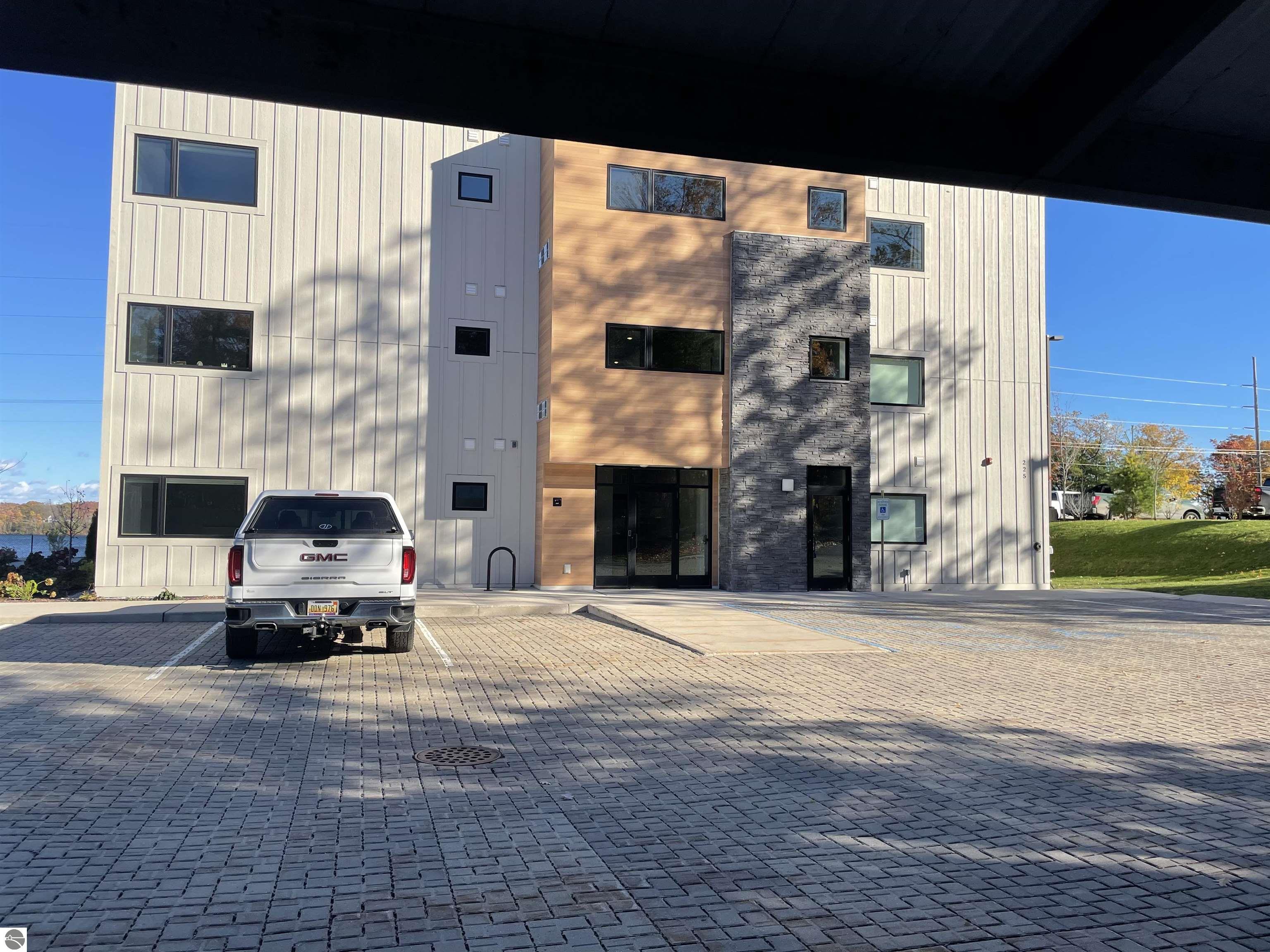 Warm and cozy ground floor condo with a fabulous sunrise views across Boardman Lake! Discover this boutique condo complex nestled into a serene downtown setting on the Boardman Lake Loop TART trail. This beauty is particularly appealing for people who want to be in town and love nature. Surrounded by green space, C-1 owners can bypass the formal front entrance by utilizing their private side door. Multiple pets allowed, take a walk or ride on the 4.2 miles non-motorized paved trail which links to the entire TART Trails system extending from Suttons Bay to Williamsburg. Do you prefer people watching or tracking migrating ducks on the lake? The large picture windows and wrap-around covered patio are going to be your favorite features! Indoors, a comfortable, open floor plan is enhanced by 9' high ceilings, a fireplace, large energy-efficient windows, wide hallways, quality finishes and high-end appliances. Generous storage, and spacious rooms are finished in pleasant neutral tones. Work from home with confidence! Soundproofing is built into the floors, walls and ceilings in this impressively built, like-new complex. Unit 1-C is a ground level, barrier-free, living space attractive for the use of strollers, mobility assist devices or wheeling a bicycle in from the out-of-doors. Additional lifestyle comforts include the gated and lit private patio, built-in patio door blinds, high-end gas fireplace with remote, under cabinet accent lighting, motion-detector lighting in the protected carport and utility hallway, and wall mounted lockboxes. The building is served by an indoor mail center, an elevator and clean wide utility stairs. Low maintenance. Reasonable HOA fees. Easy living and fresh air overlooking a serene lake in town, Traverse City. Long and short term rentals (STR) permitted by deed. Only 1.4 miles to Clinch Marina on West Bay. 8 minutes from Cherry Capital Airport (TVC). Call for a tour today!