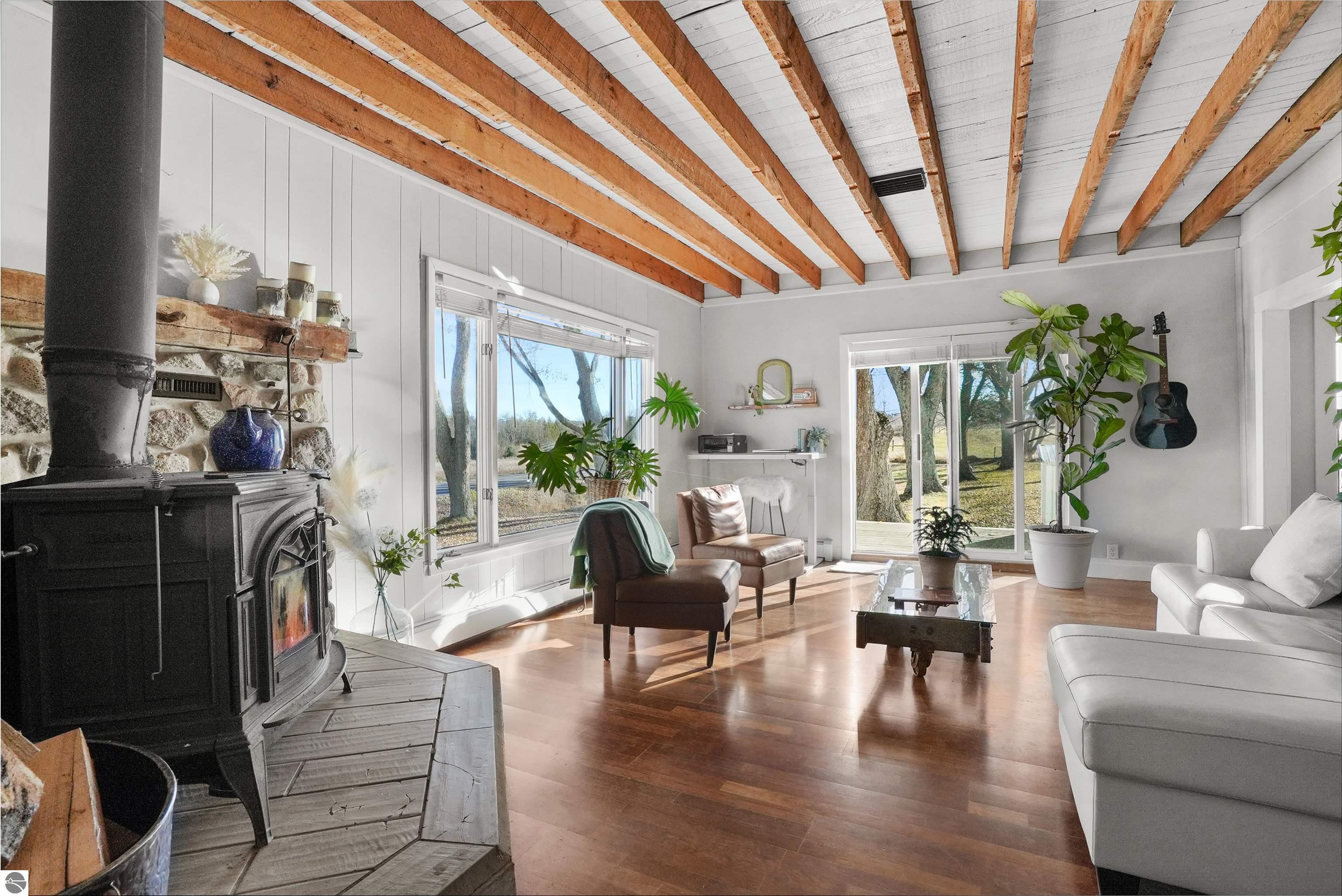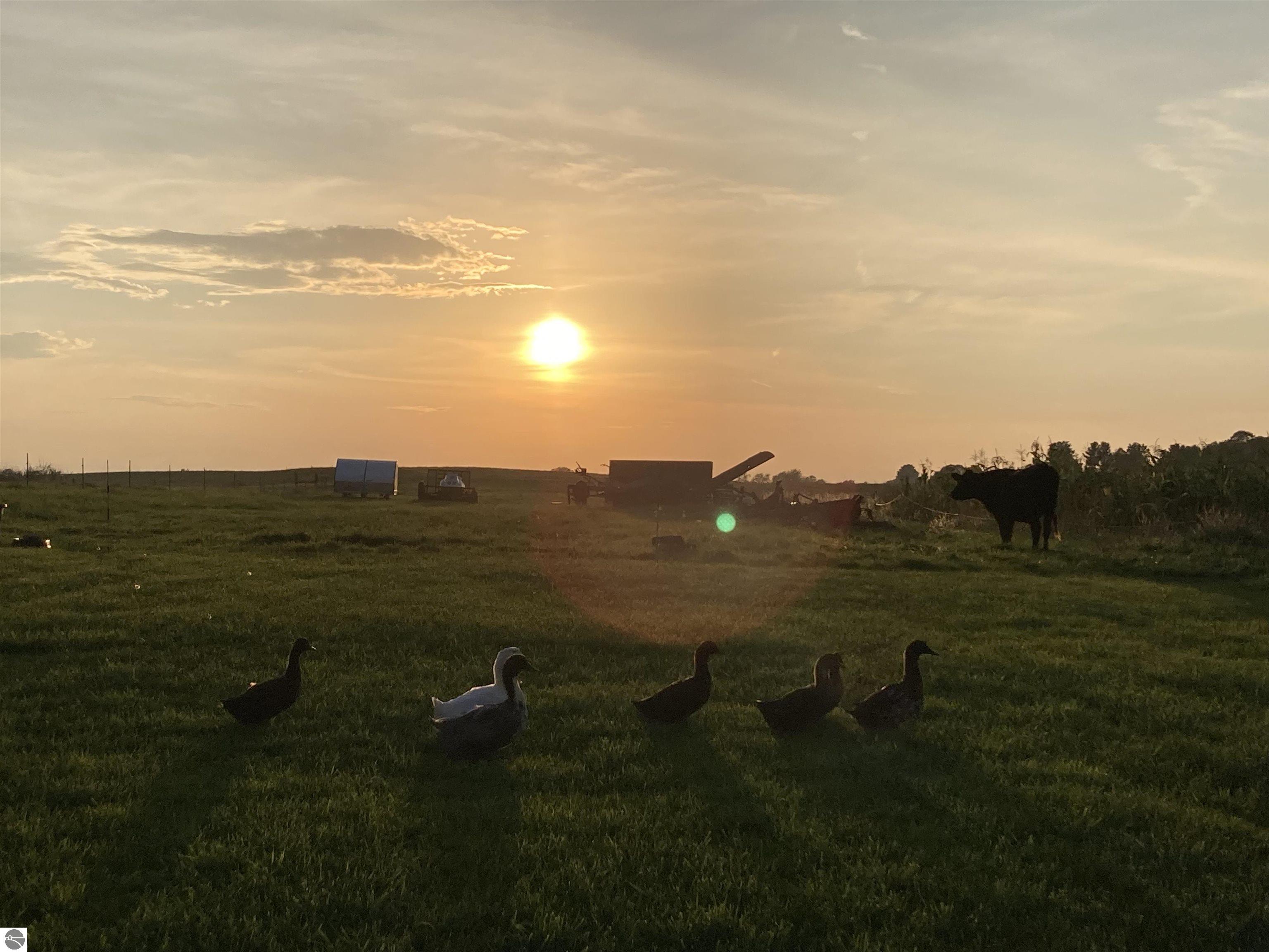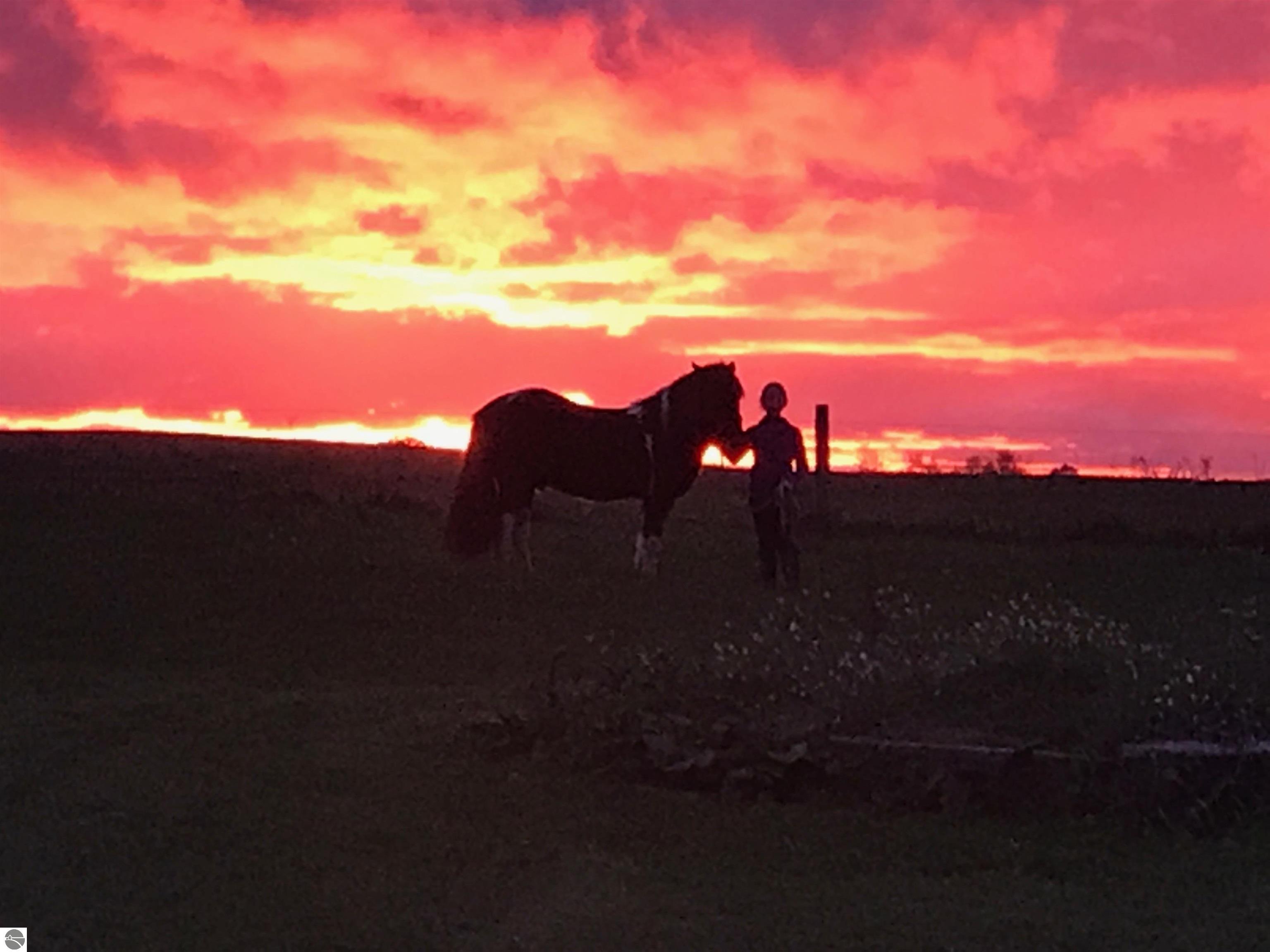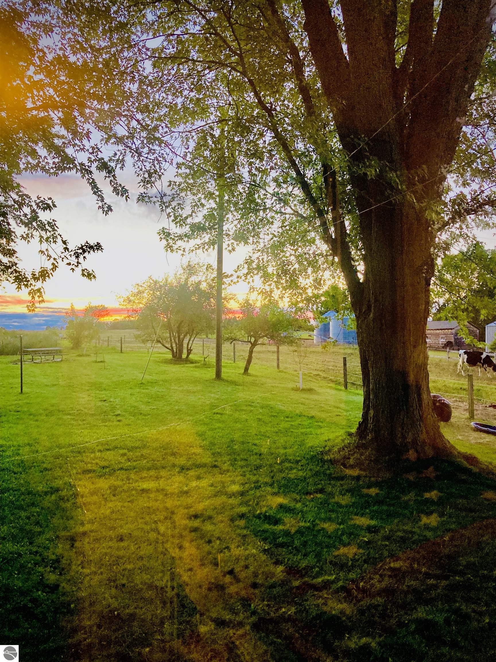 Welcome to Silver Leaf Farm, a rare gem offering peaceful country living minutes from Traverse City, the perfect blend of rural charm & modern convenience. Located on a paved road w/high-speed internet, this homestead is ideal for those seeking a hobby farm, sustainable living w/out sacrificing proximity to town. Nestled beneath a canopy of majestic century-old maple trees, the home enjoys natural shade, cool summer breezes, & the sweet soundtrack of bird singing all season long. Enjoy spectacular sunrises over rolling green pastures, breathtaking sunsets across your expansive countryside views; this truly is a place to relax, restore, and step back in time with nature all around you. The property is thoughtfully developed for equestrian & homestead living. The beautifully renovated barn (2018) features a new roof, walls, added windows, box stalls, reinforced steel cabling for long-term structural integrity,& French drain system. 3 fenced pastures provide rotational grazing, & a 10.5-acre hayfield sits on rich, fertile soil. The garage barn received new barn doors in 2016.A spring-fed pond, excavated & deepened(2022), offers 1/8–1/4 acre of sparkling water & is approximately 10 ft deep; a peaceful spot for relaxation and wildlife watching. Infrastructure improvements include new drain field (2019), new drain tile & additional yard drainage(2023).Gardeners & nature lovers will delight in the original rose garden, flourishing perennial beds,& abundant edibles: strawberries, rhubarb, blackberries, & heirloom grape vines climbing a charming pergola. Fruit trees- apple, peach,& pear- dot the property, & a hand-pump well adds timeless charm & practicality to the garden. Miscellaneous perennials surround the barns, bringing vibrant color throughout the seasons. With natural shade from towering maples and fresh air, the home remarkably cool in summer .If you’ve been dreaming of a homestead lifestyle in a prime location, Silver Leaf Farm offers it all!