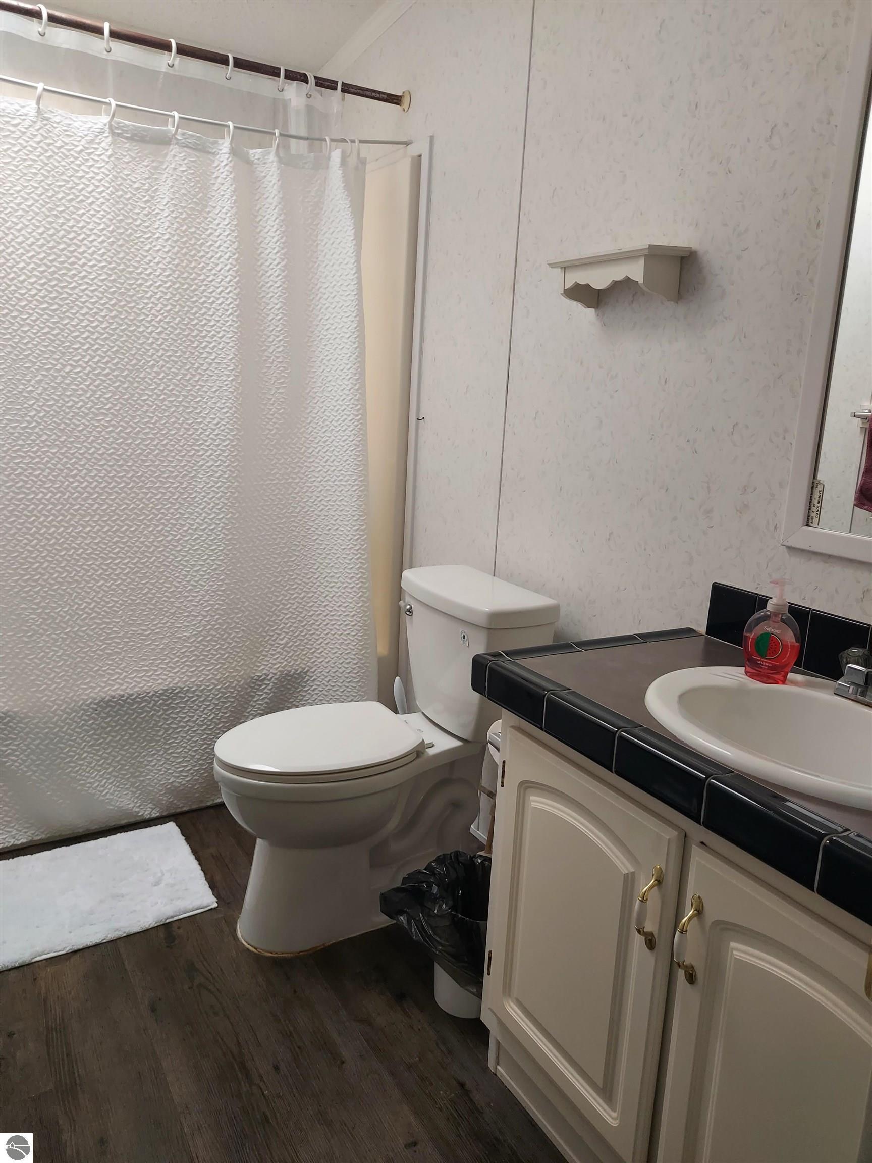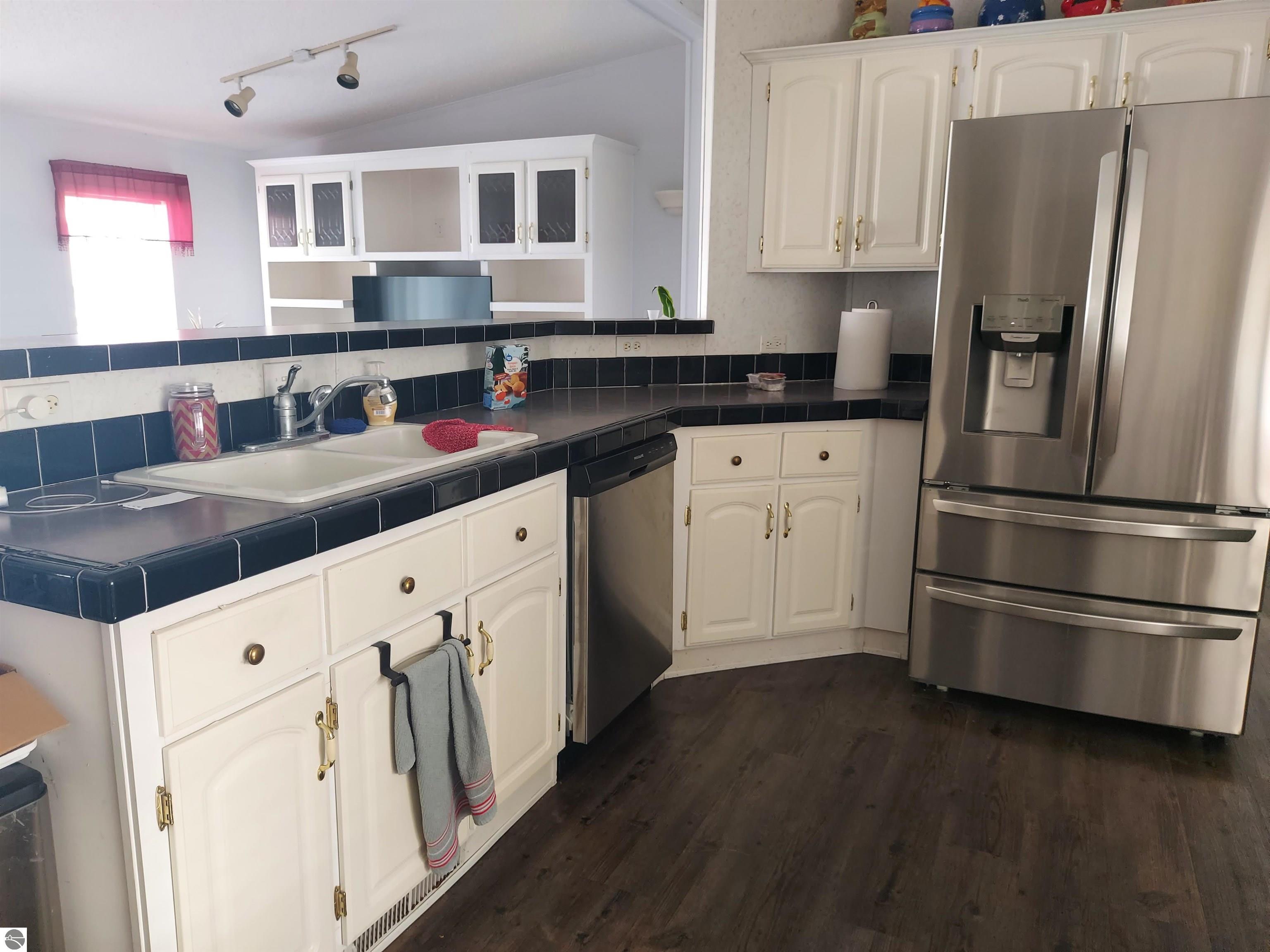 Backing up to the woods offering plenty of privacy, enjoy nature from your covered side deck. Inside you will see a very spacious home with a cooks dream kitchen that opens up to the living room along with a dining nook. French door leads you to the family room, formal dining room, 2 bedrooms and full bath at the opposite end from the master suite. Plenty of storage area, walkin closets, skylights. Furnace-Central air-Hotwater heater updatd. Seller is in the process of packing, photos will be updated. Located in Kings Court where you will pay a monthly lot rent currently base $806 includes trash water $44-charter-$80 pets extra.