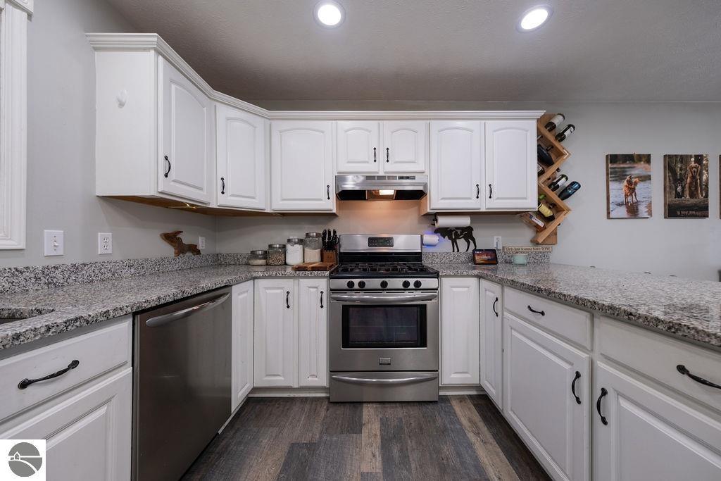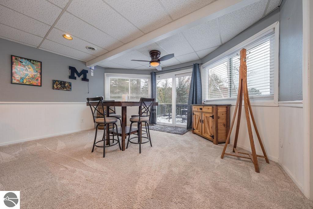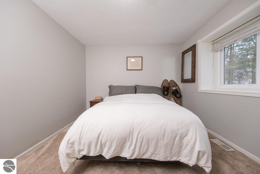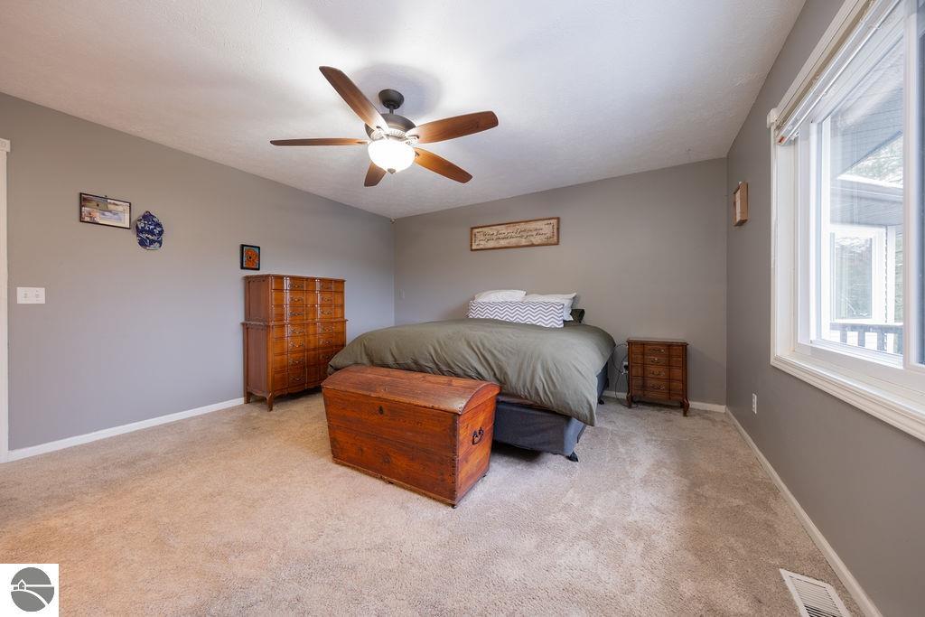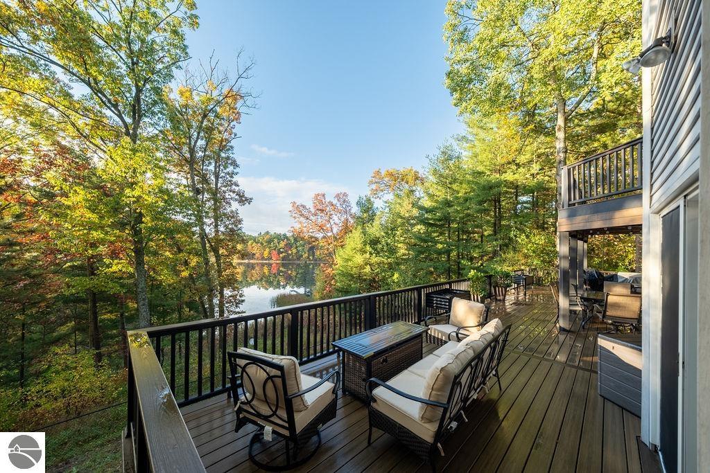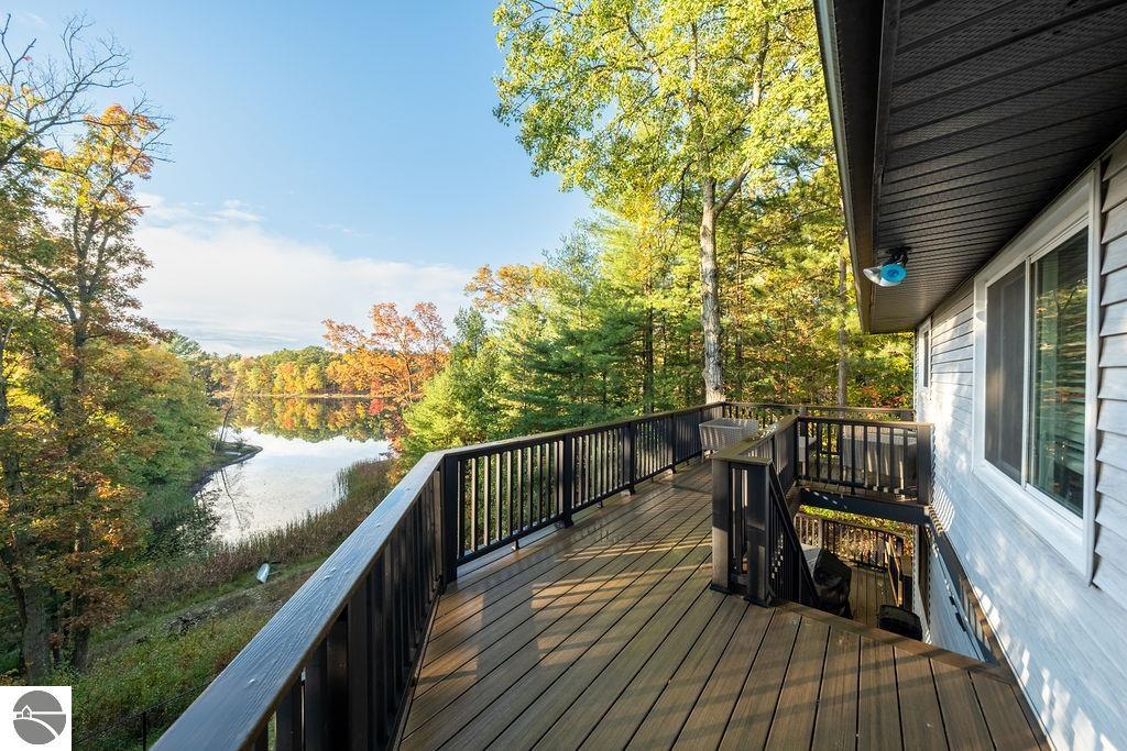 Enjoy peaceful lakefront living with 125 feet of private frontage on beautiful Tibbets Lake. This updated 4 bedroom, 2.5 bath home offers an elevated setting with year-round lake views and mature trees providing natural privacy. The new 1,200 sq ft., multi-level, Trex deck is the perfect spot to relax or entertain while taking in the scenery. Extensive updates include a new roof (2020, 10-year warranty), all new windows (2023), furnace and A/C with humidifier (2025), gutters (2022), refrigerator (2024), and washer/dryer (2020). Inside, you’ll find granite kitchen countertops, a gas fireplace, and updated guest rooms and bath. A path leads down to the private waterfront and dock, ideal for kayaking, paddle-boarding, or fishing on the lake. You'll love becoming a regular at Peegeo’s, a local favorite that is walking distance from the house. Pickleball at Grace Macdonald Park is just around the corner. This move-in-ready home blends modern comfort with outdoor lakefront living, an easy drive from downtown Traverse City.