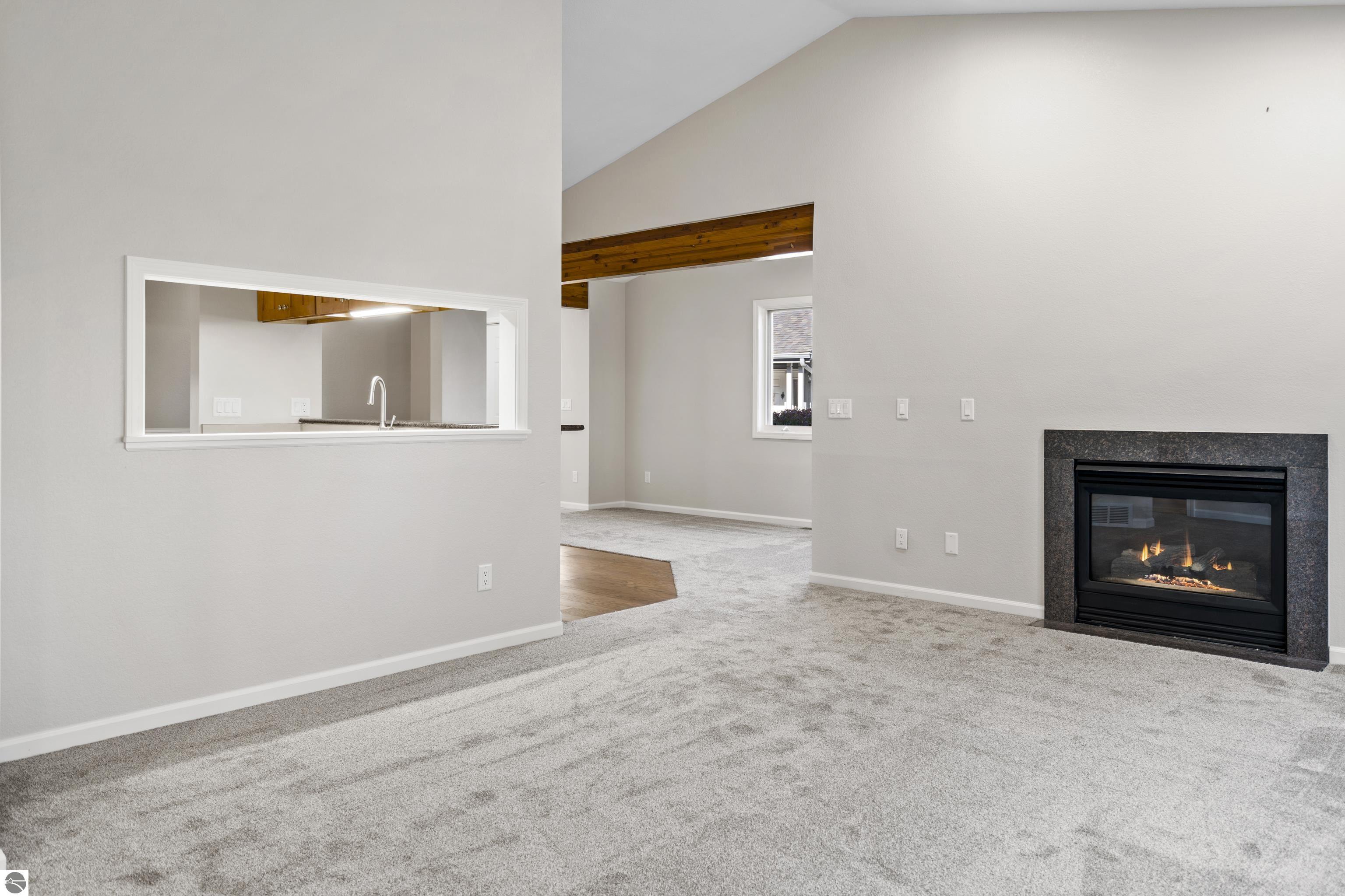 Welcome to this beautifully updated Turn-Key 2-bedroom, 2-bath condo in the highly sought-after Country Club Woods community of Traverse City. Offering just under 1,500 sq ft of finished living space and a blank canvas in the unfinished lower level, this light-filled home sits in a peaceful, private setting overlooking mature trees and the GOLF-COURSE—providing a rare blend of convenience and tranquility. Step inside to find fresh updates throughout, including all new interior paint, carpeting, appliances, lighting, and more. The spacious living room (15'x14') features vaulted ceilings, large windows that frame the scenic outdoor views, and a cozy gas fireplace perfect for Northern Michigan evenings. Sliding doors open to a generous balcony (31' x 22') that extends your living space outdoors. The kitchen is bright and functional with abundant cabinet storage, updated appliances, new lighting, and a serving window that keeps the floor plan open and connected. The main level includes a comfortable primary suite (23' x 14'), a guest bedroom (12' x 14'), a second full bath, and main-floor laundry. The walkout lower patio is ideal for relaxing, grilling, or enjoying the peaceful natural surroundings. An attached 2-car garage (23' x 23') adds convenience, while low-maintenance living lets you enjoy all that this desirable location has to offer. Situated minutes from shopping, dining, healthcare, and just a short drive to downtown Traverse City, beaches, and recreational trails—this condo offers the perfect balance of comfort and lifestyle.