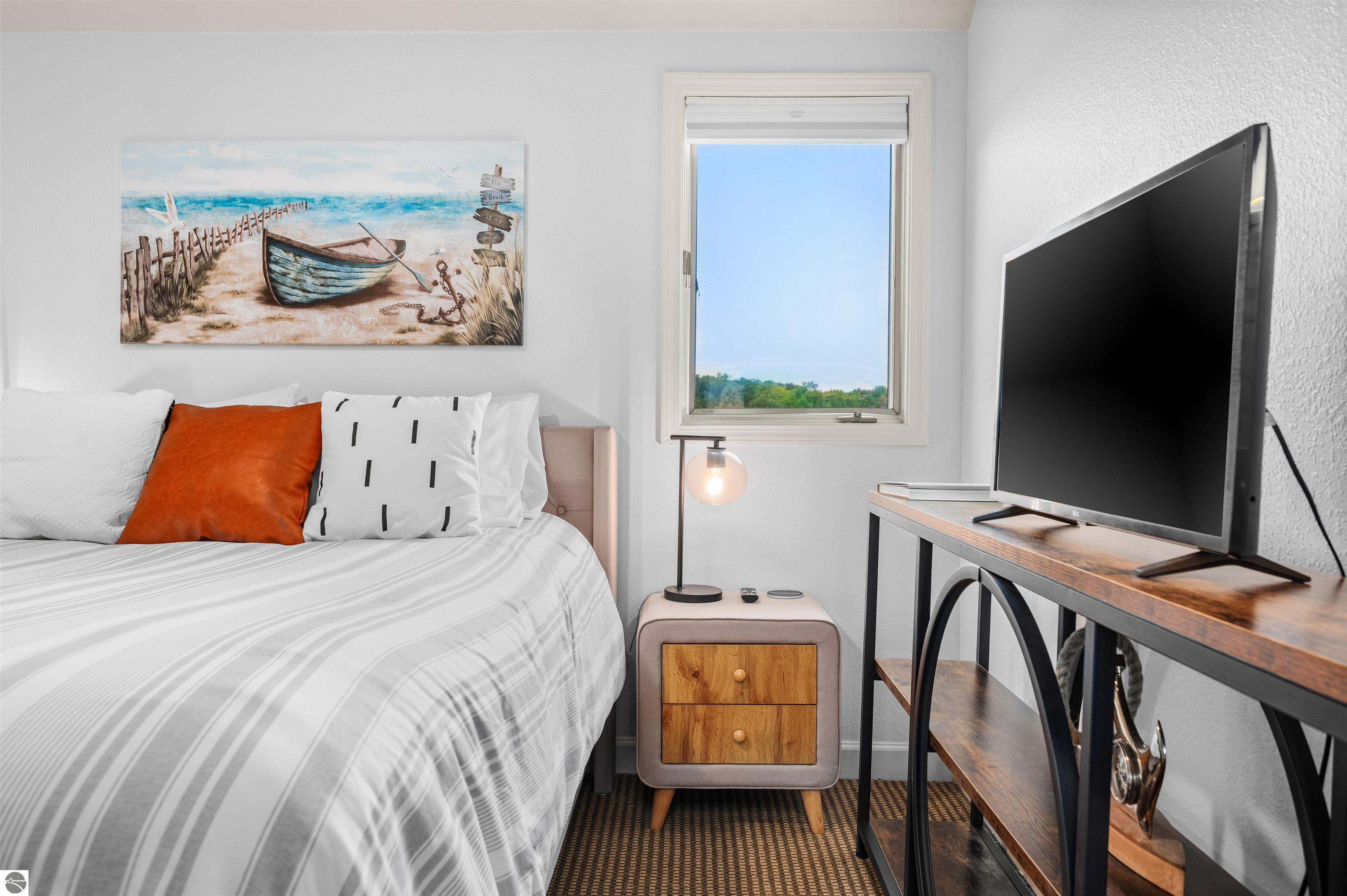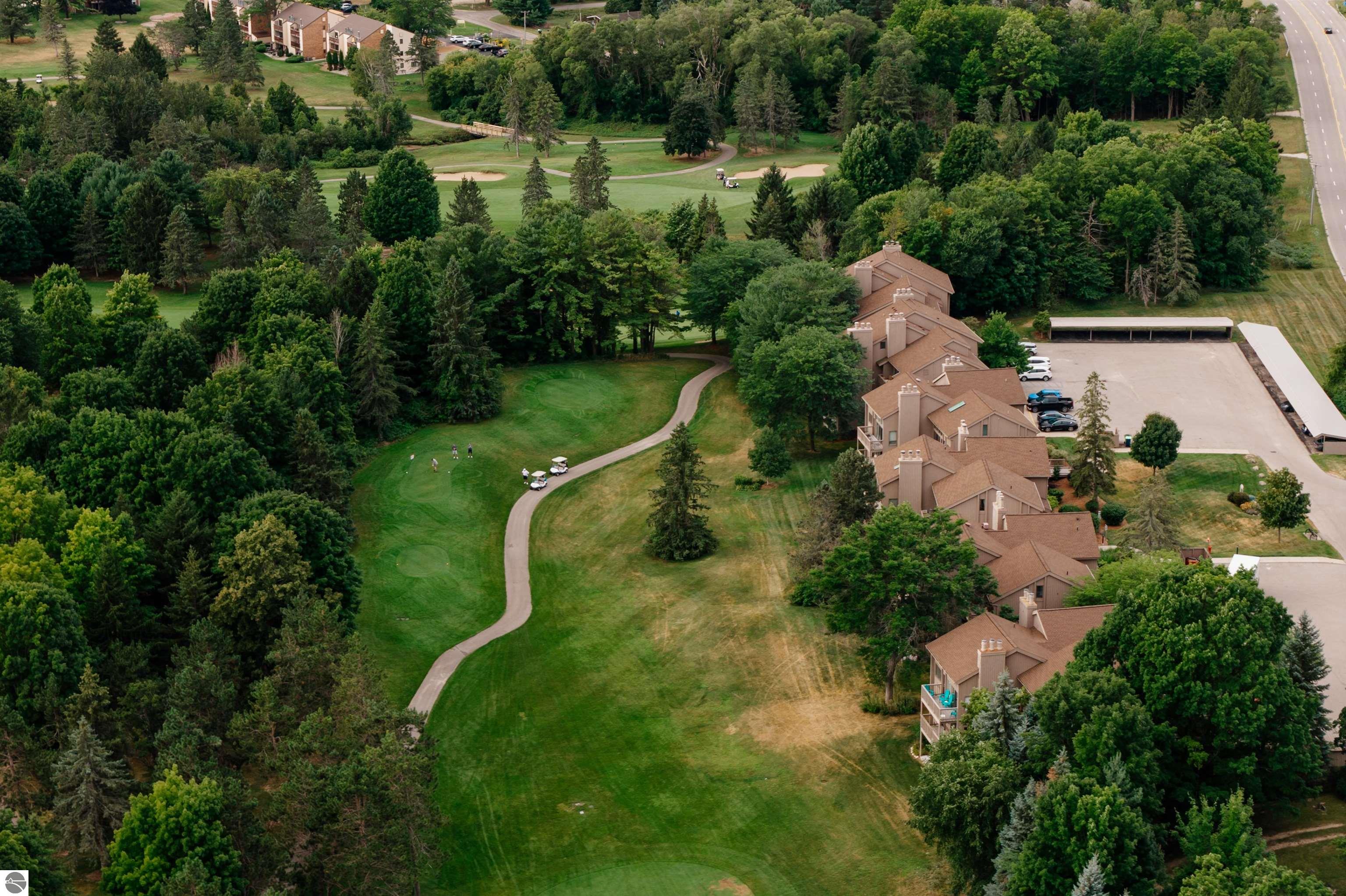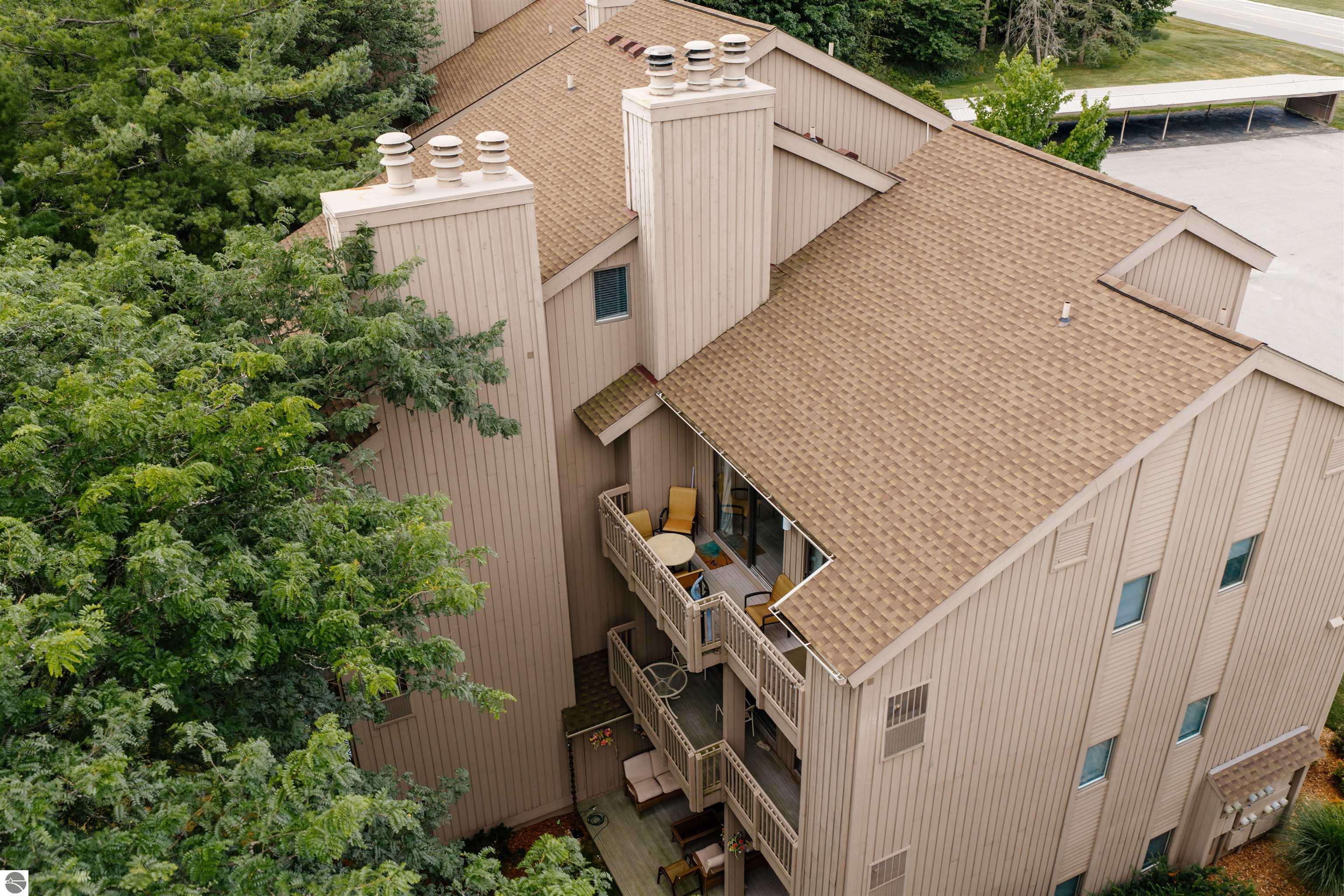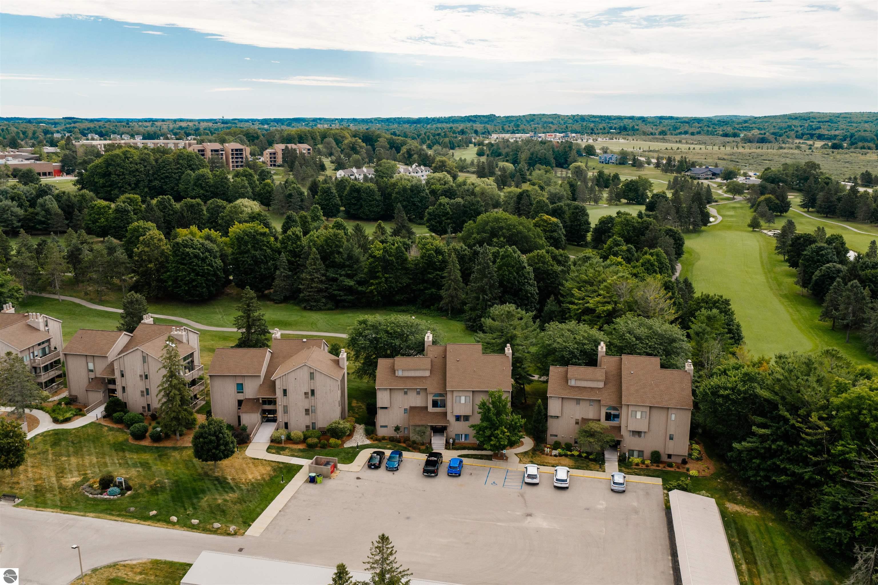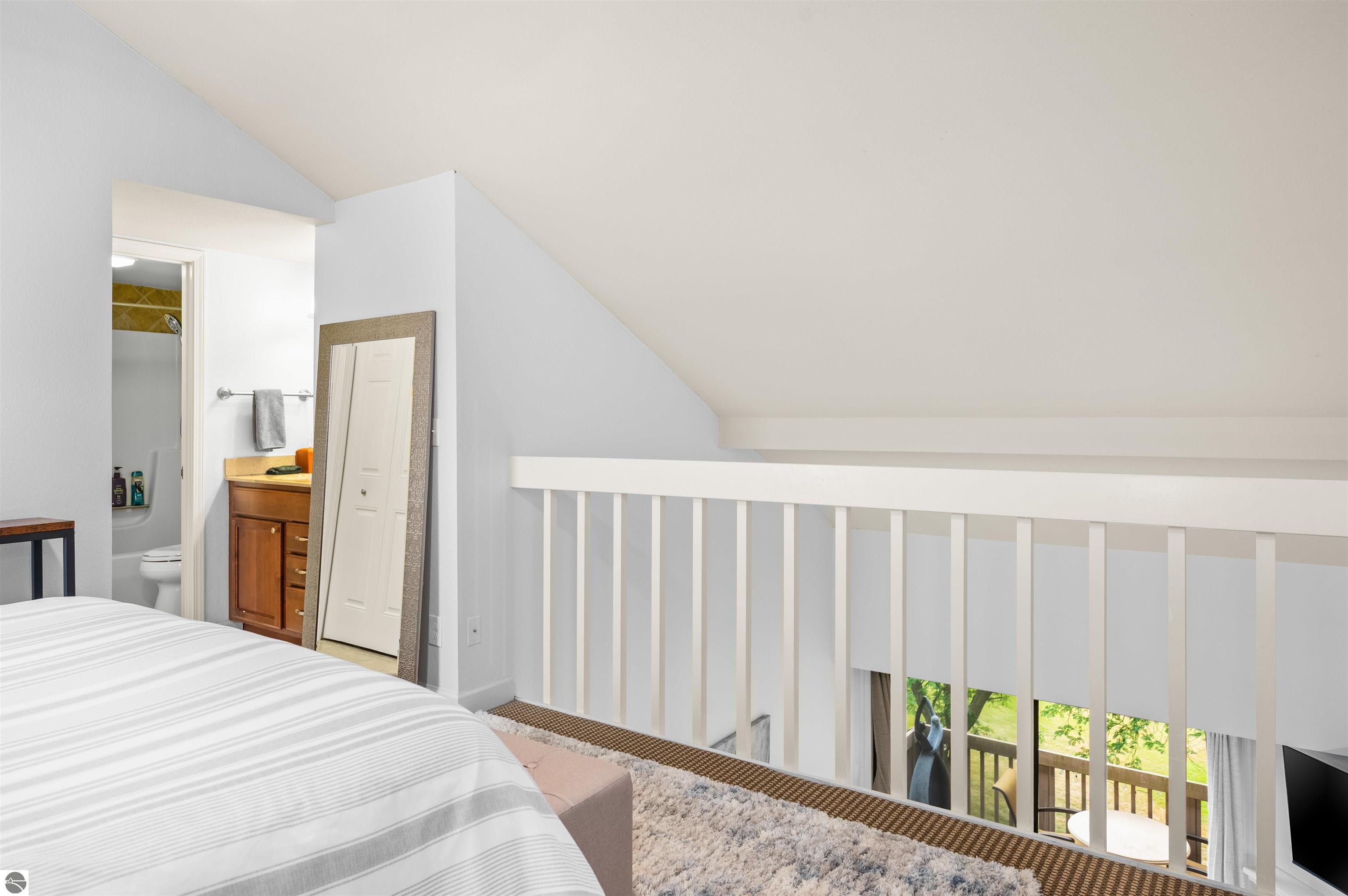 Perched above the third tee of Spruce Run Golf Course, this top-floor condo offers peaceful views, vaulted ceilings, and no upstairs neighbors—just quiet comfort in a scenic setting. The lofted second bedroom adds charm and flexibility, while the main living space opens to a private balcony through both the living room and primary suite. The condo itself has seen several thoughtful updates, including quartz kitchen countertops, a new backsplash, and fresh professional interior paint. Brand new sliding doors are already scheduled to be installed. One rare bonus: in-unit laundry, which only a handful of Golfview buildings include. This property also has a solid track record as a short-term rental and could easily continue to serve as a "guest-favorite" successful Airbnb. Whether you’re looking for a turn-key investment or a low-maintenance Up North getaway, this one just feels like the right fit.