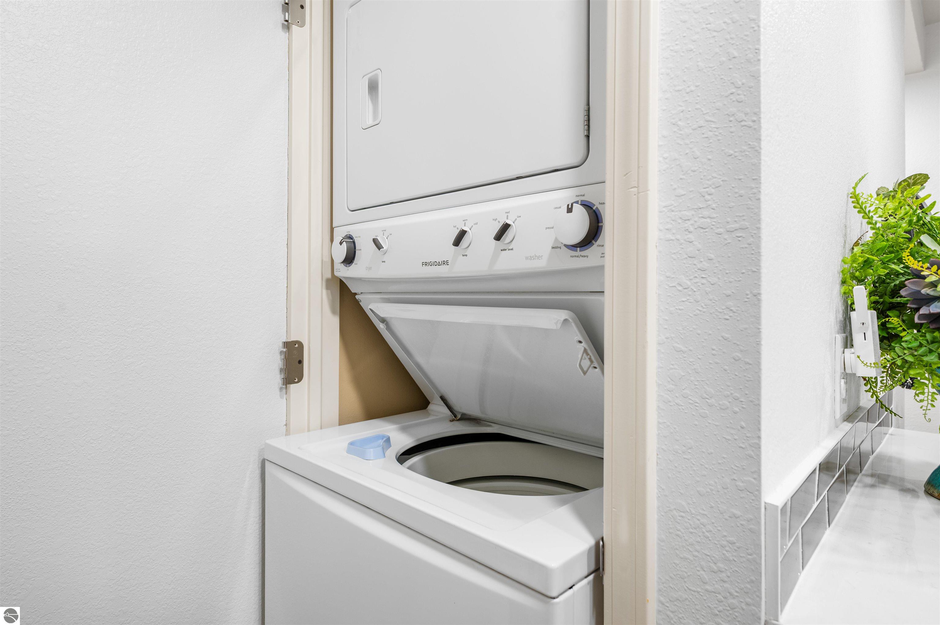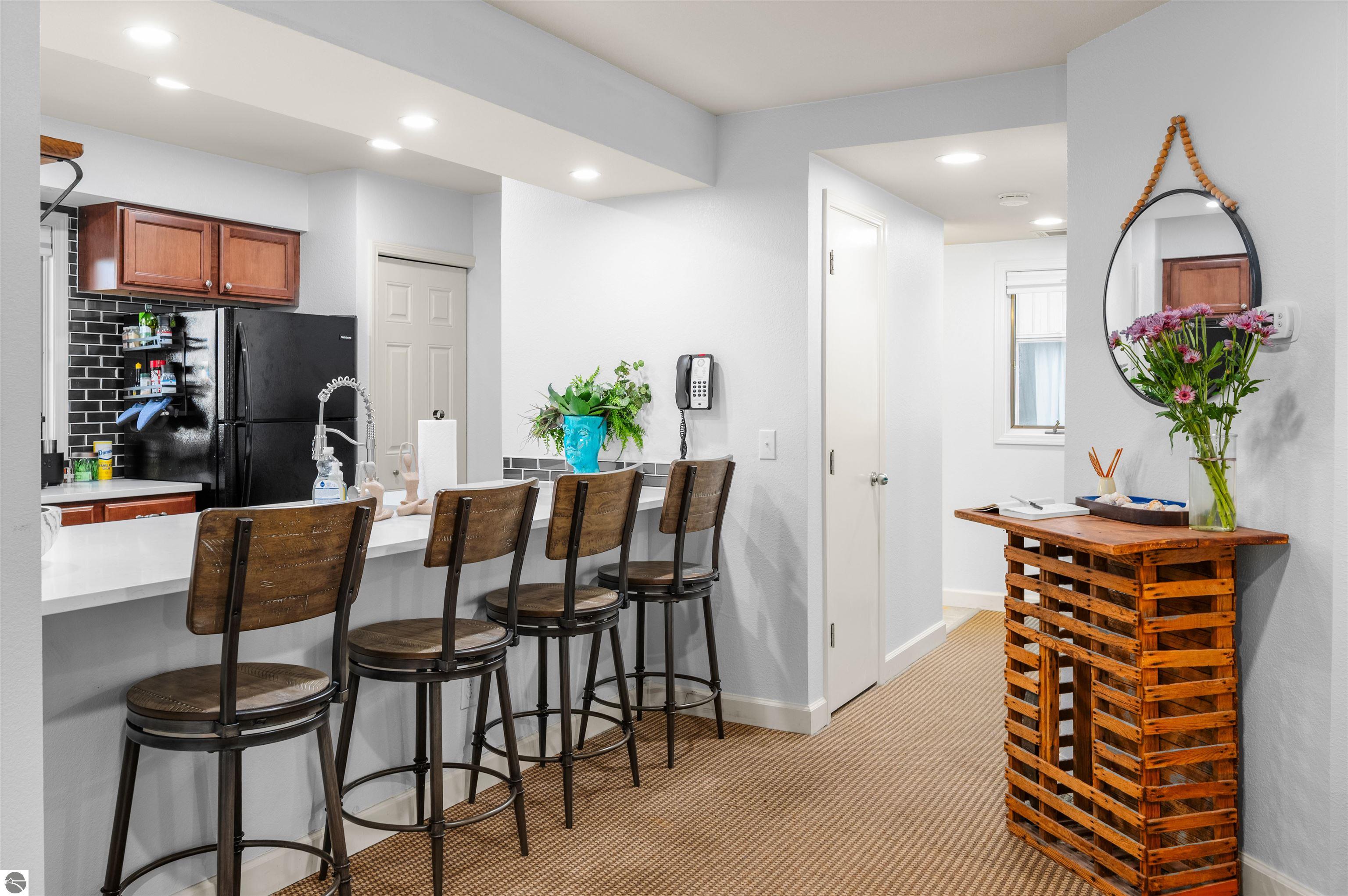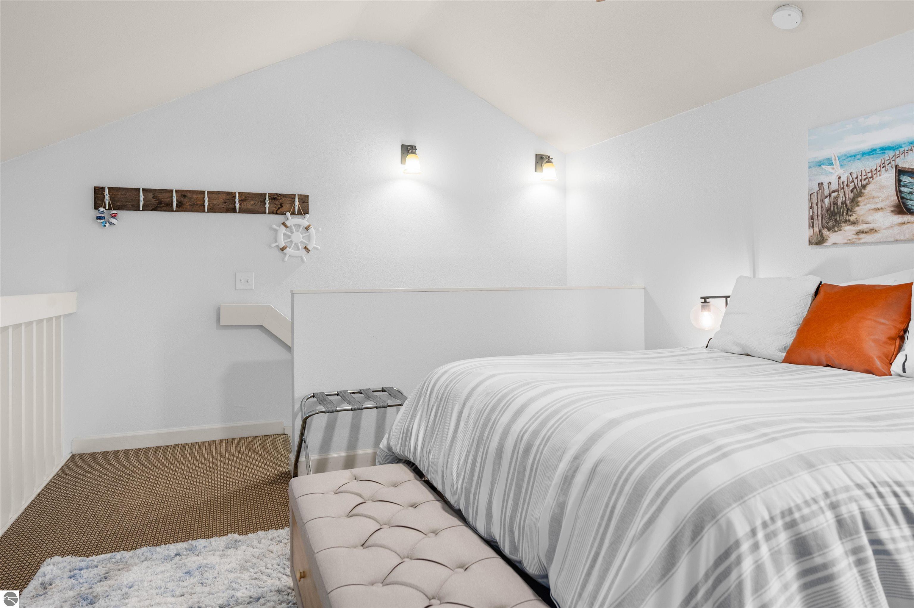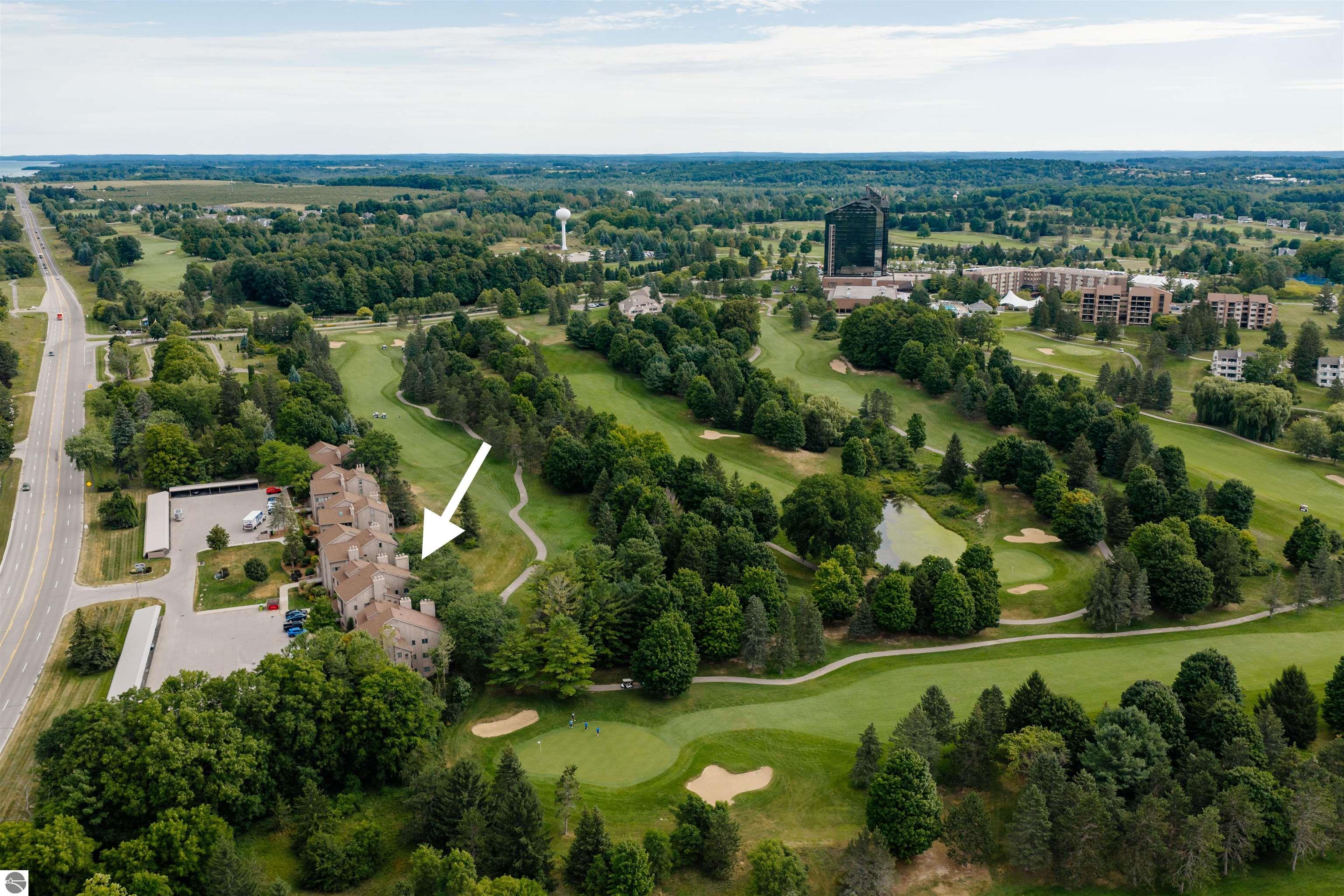 Perched above the third tee of Spruce Run Golf Course, this top-floor condo offers peaceful views, vaulted ceilings, and no upstairs neighbors—just quiet comfort in a scenic setting. The lofted second bedroom adds charm and flexibility, while the main living space opens to a private balcony through both the living room and primary suite. The condo itself has seen several thoughtful updates, including quartz kitchen countertops, a new backsplash, and fresh professional interior paint. Brand new sliding doors are already scheduled to be installed. One rare bonus: in-unit laundry, which only a handful of Golfview buildings include. This property also has a solid track record as a short-term rental and could easily continue to serve as a "guest-favorite" successful Airbnb. Whether you’re looking for a turn-key investment or a low-maintenance Up North getaway, this one just feels like the right fit.