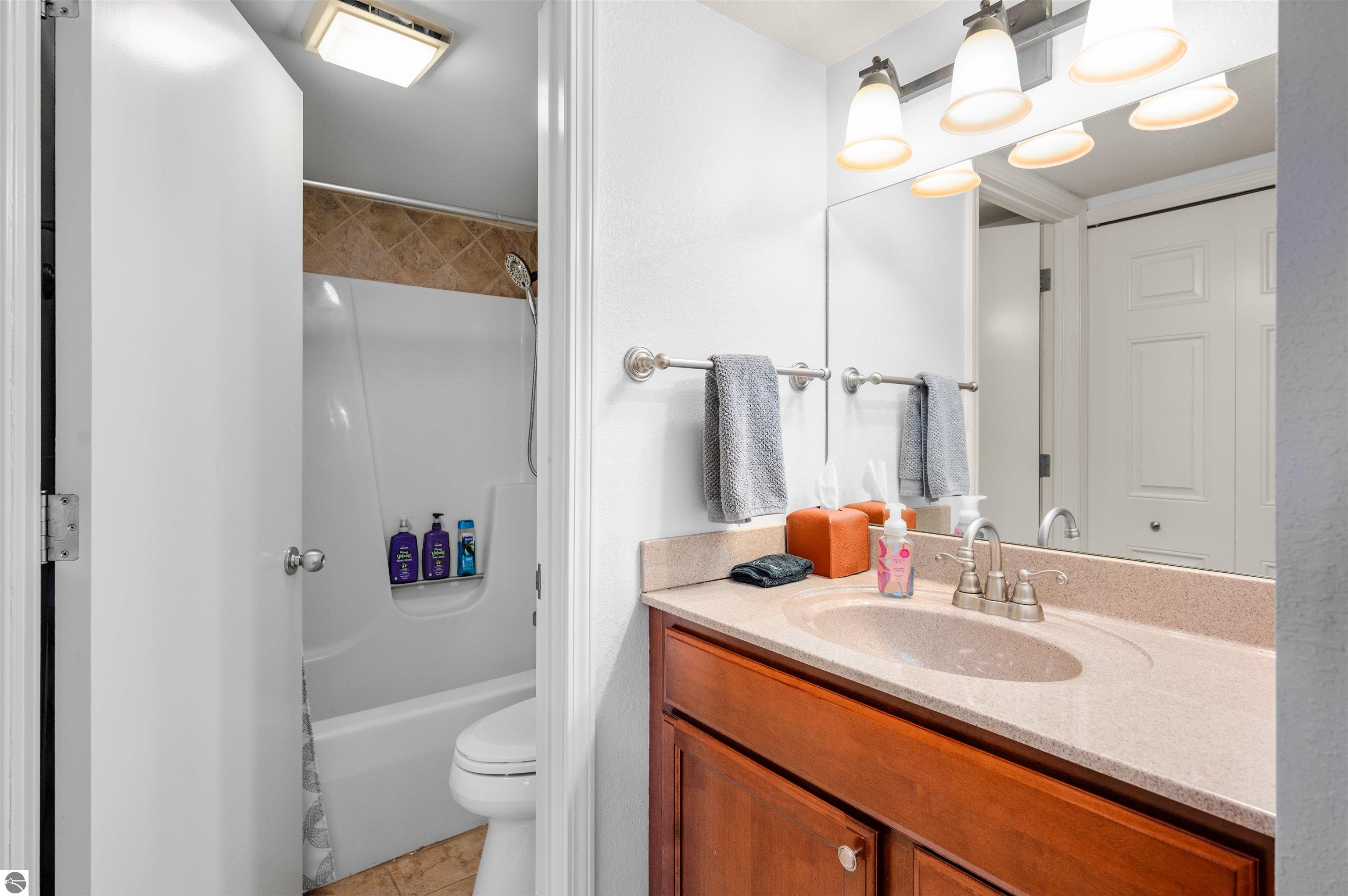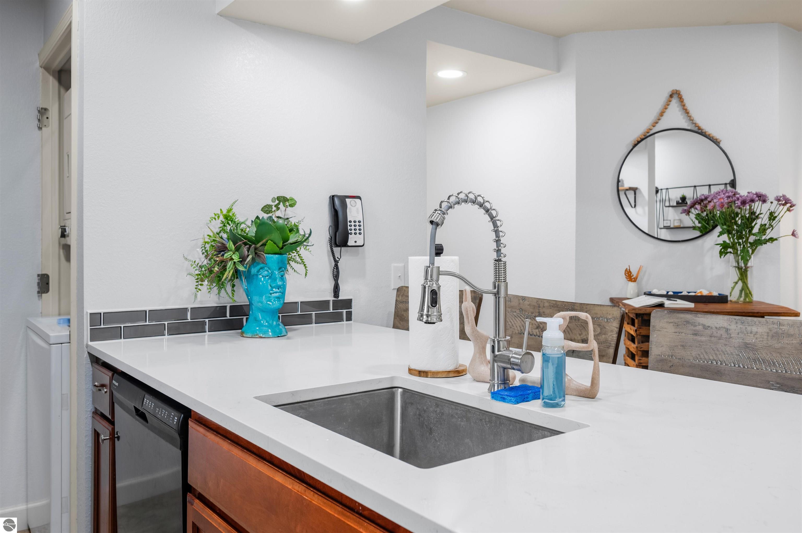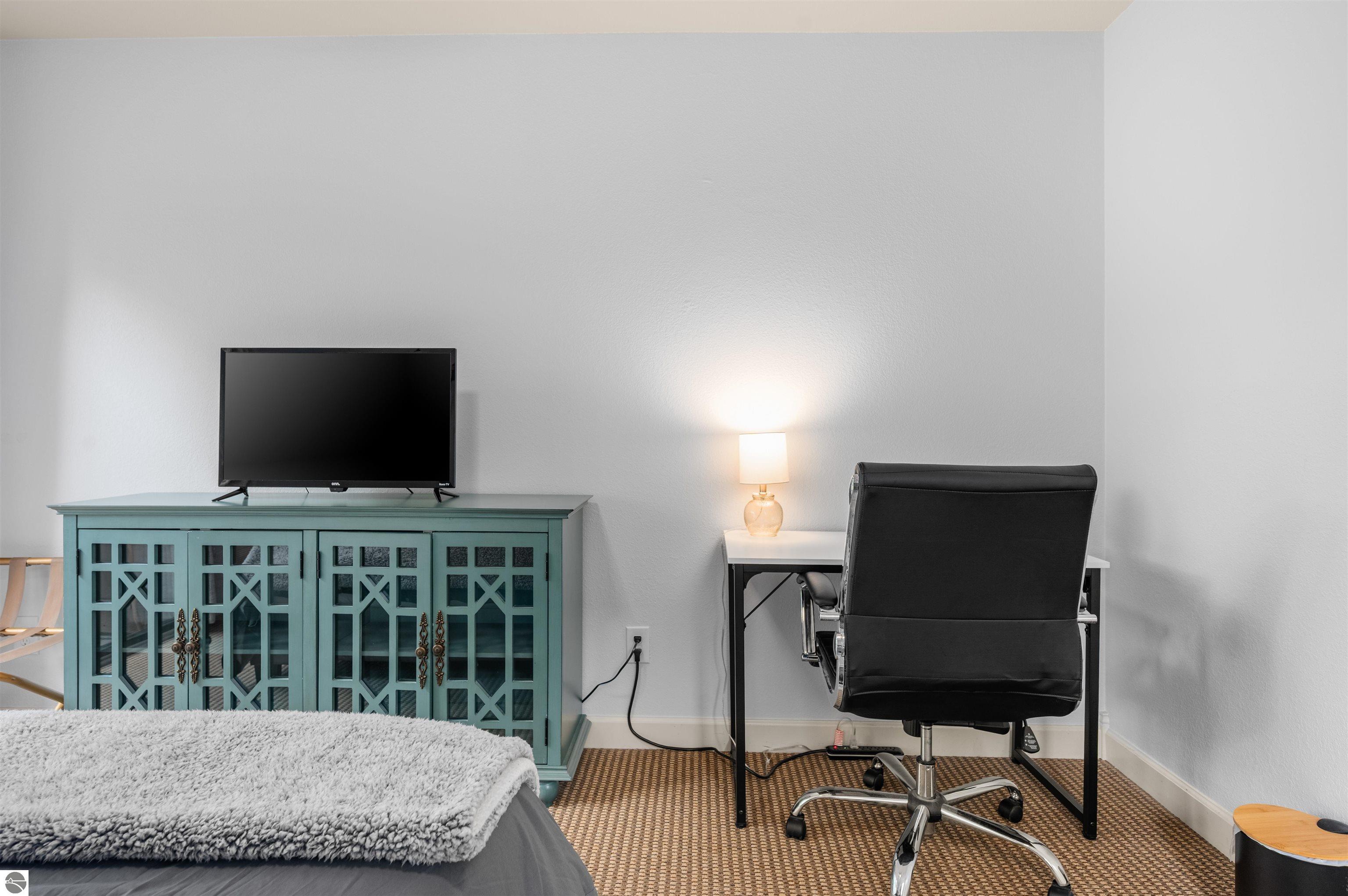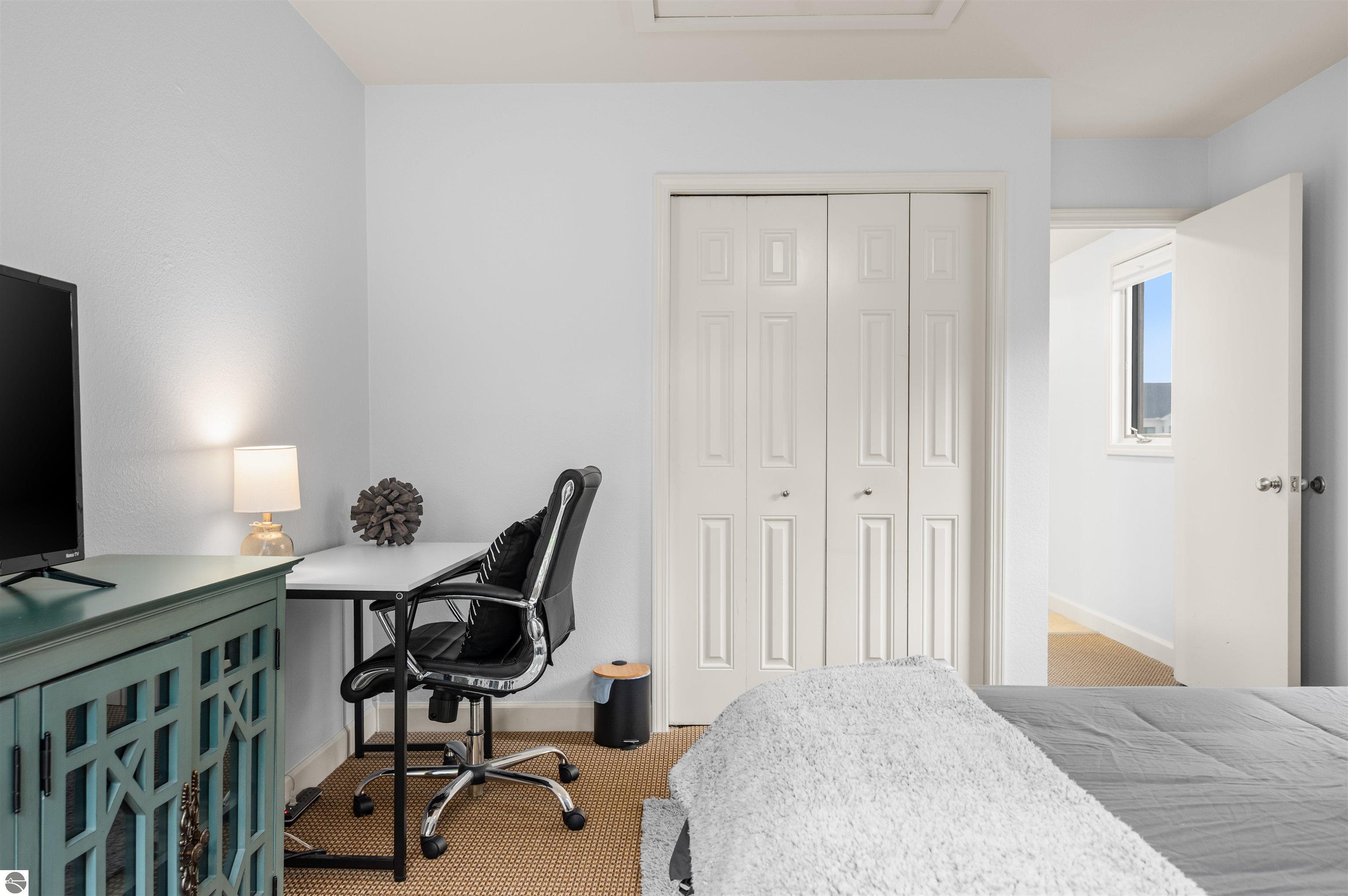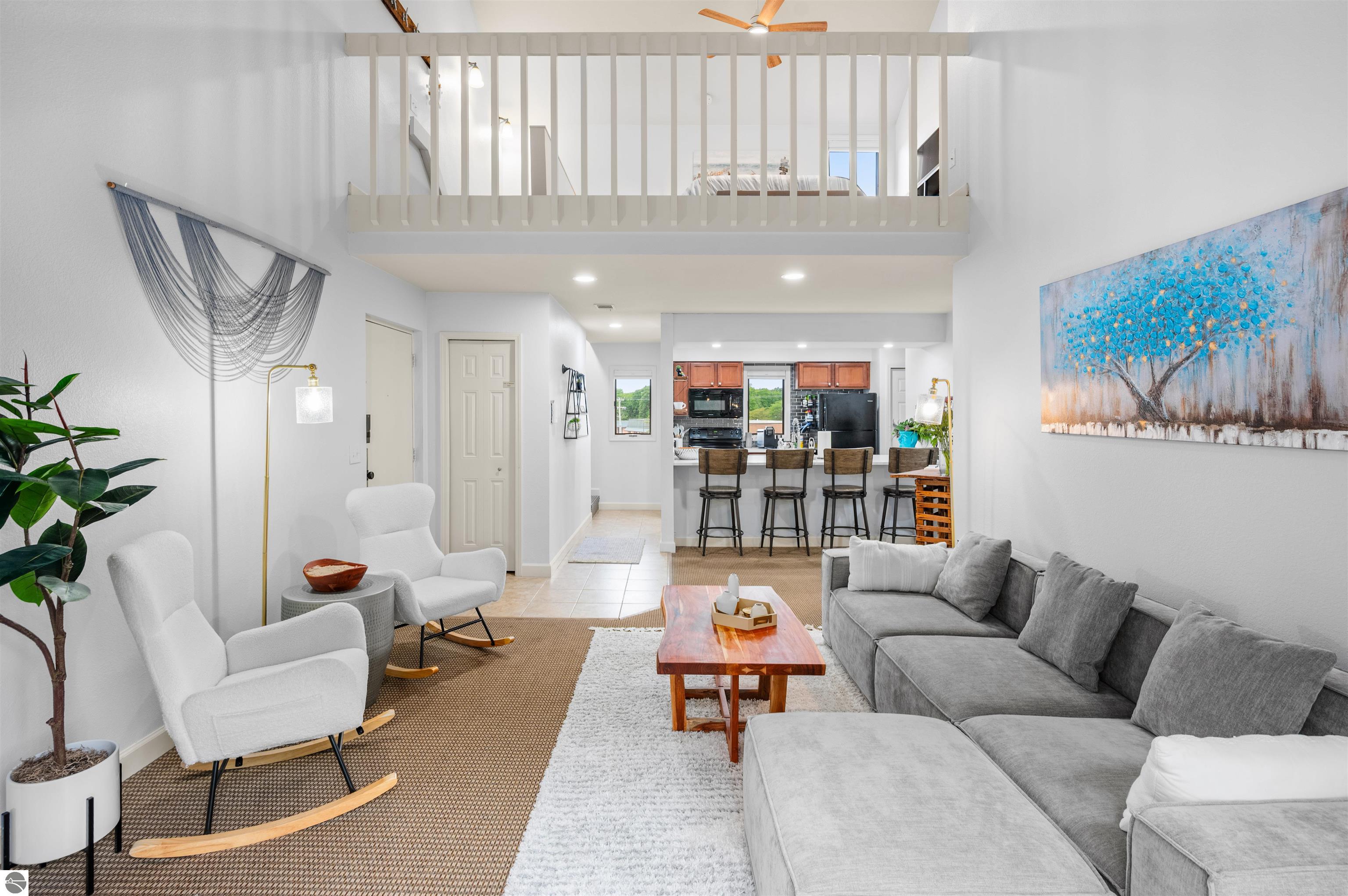 Perched above the third tee of Spruce Run Golf Course, this top-floor condo offers peaceful views, vaulted ceilings, and no upstairs neighbors—just quiet comfort in a scenic setting. The lofted second bedroom adds charm and flexibility, while the main living space opens to a private balcony through both the living room and primary suite. The condo itself has seen several thoughtful updates, including quartz kitchen countertops, a new backsplash, and fresh professional interior paint. Brand new sliding doors are already scheduled to be installed. One rare bonus: in-unit laundry, which only a handful of Golfview buildings include. This property also has a solid track record as a short-term rental and could easily continue to serve as a "guest-favorite" successful Airbnb. Whether you’re looking for a turn-key investment or a low-maintenance Up North getaway, this one just feels like the right fit.