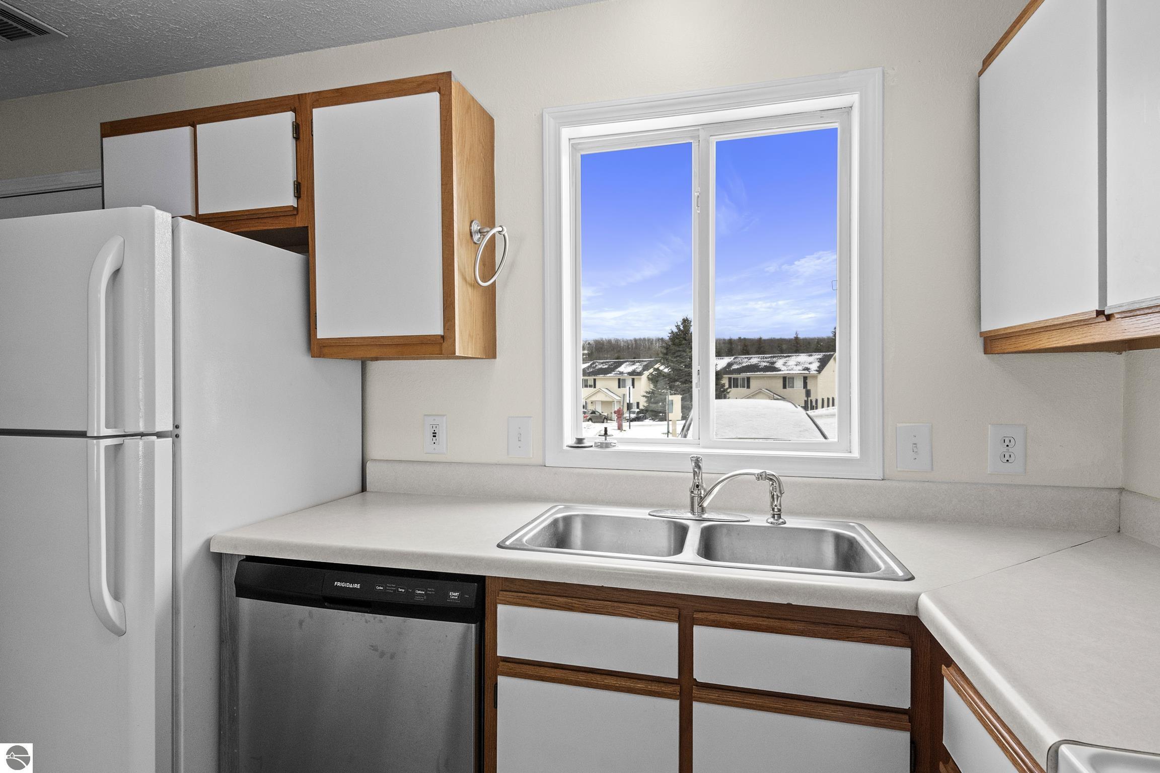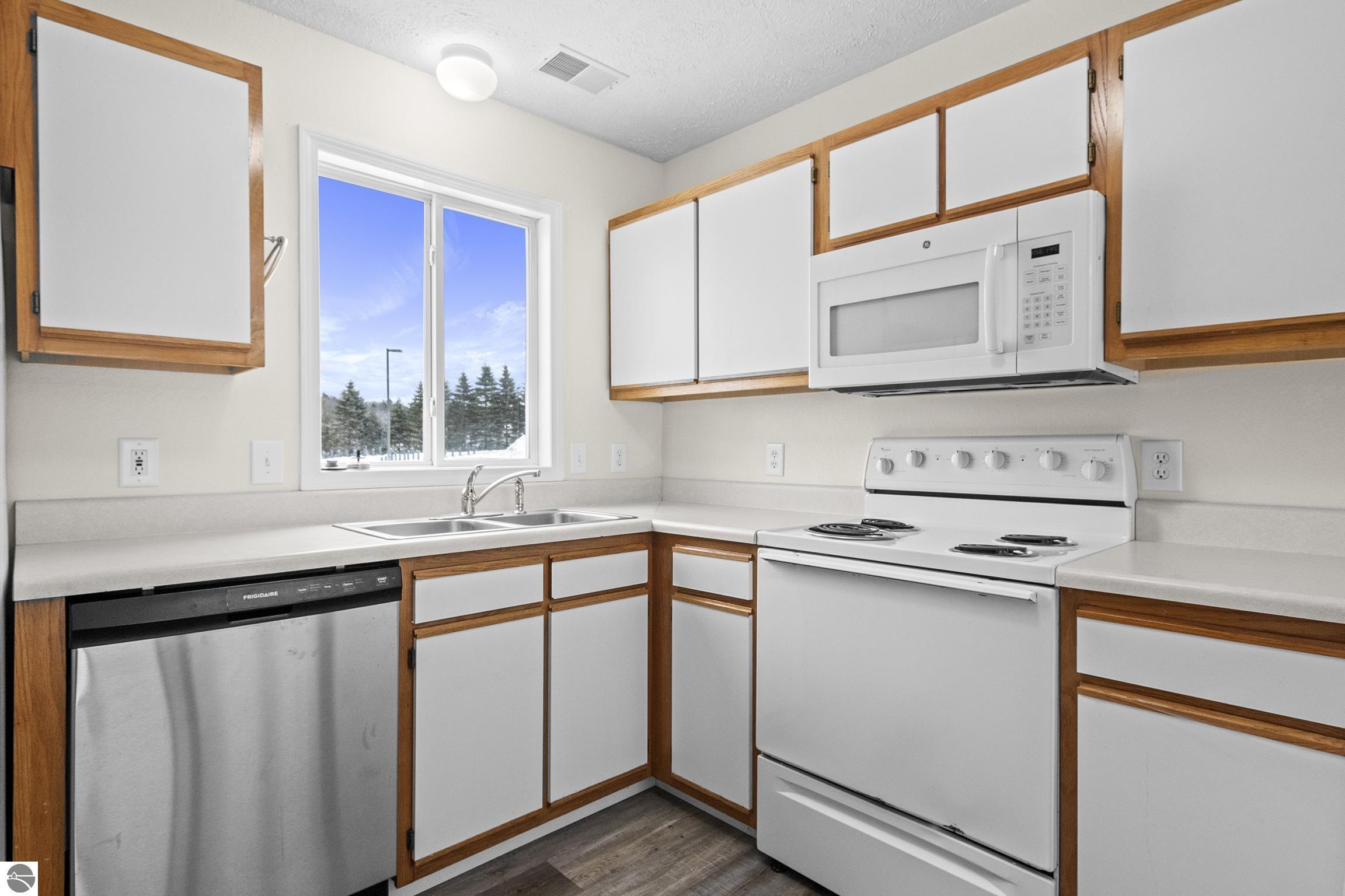 Affordable living just 15 minutes to Traverse City and minutes to the TART Trail, Mt. Holiday's skiing zip lining, tubing and restaurant, mountain biking, and trail hiking. With a beautiful wooded view out the back slider, you will want to relax on the private patio in all seasons. The open floor plan lets in loads of natural light. The bright kitchen overlooks a large living room and dining area. This floor plan offers a half bath on the main floor and main floor laundry - such convenient living! Enjoy two large bedrooms, huge closets and an oversize full bath on the second floor. Low association dues and utility costs and virtually no maintenance make this unit the perfect starter home, second home or investment. Take a look soon so you don't miss the opportunity to own a piece of Traverse City!