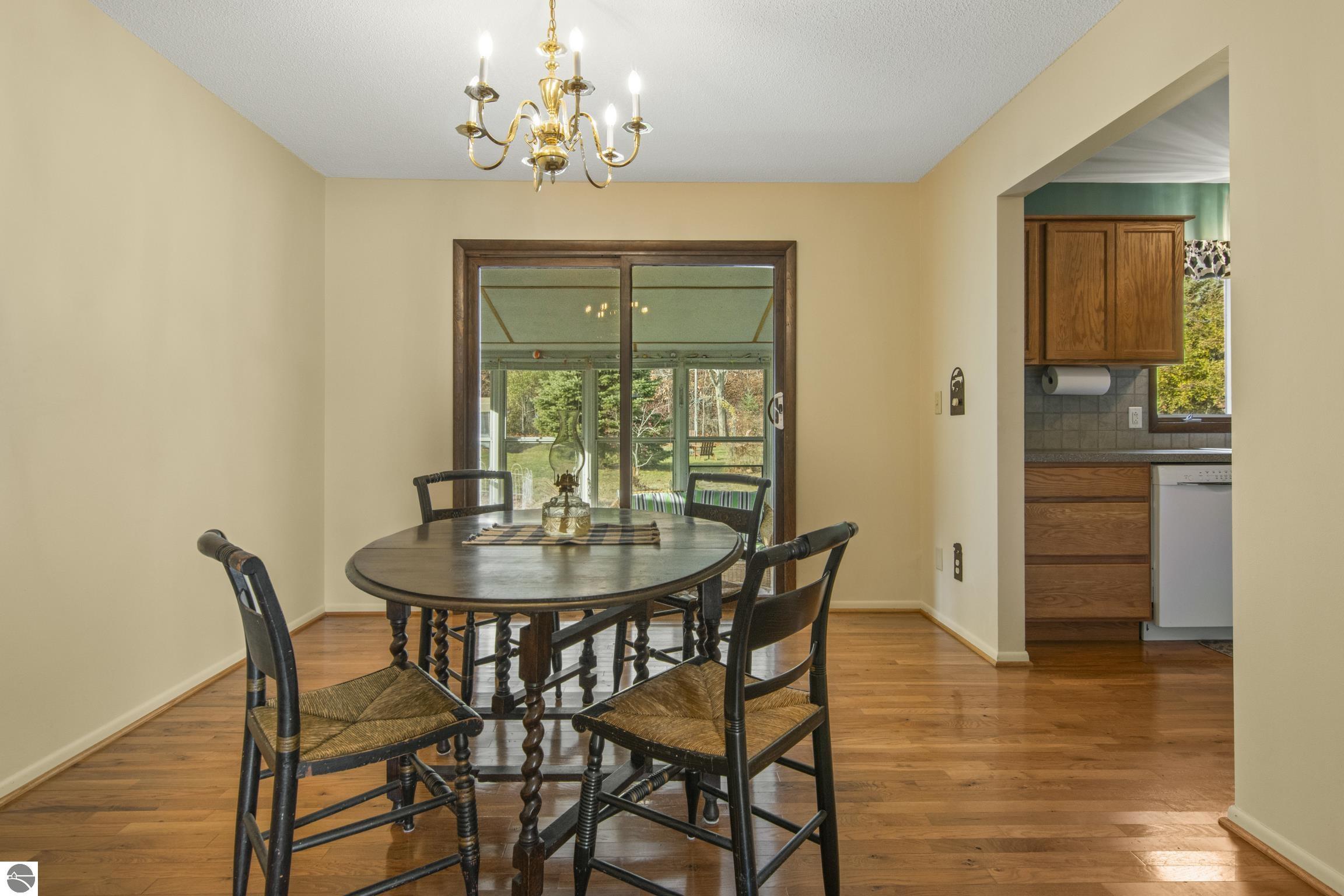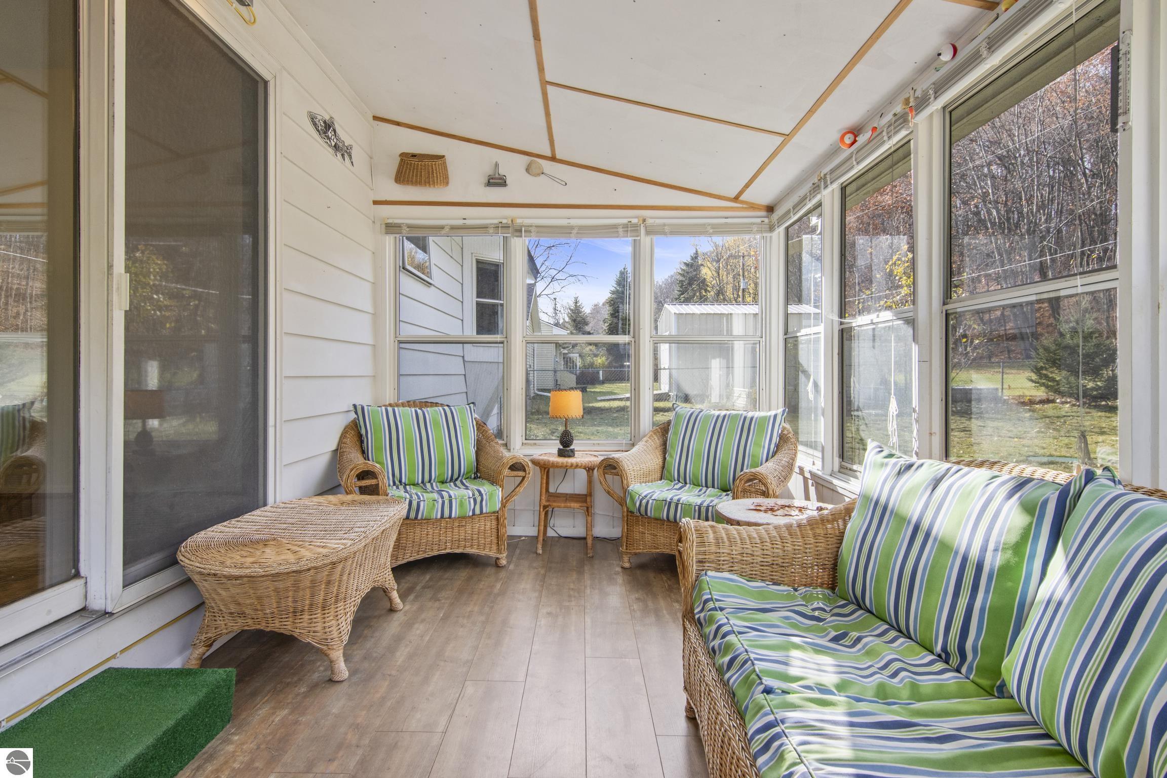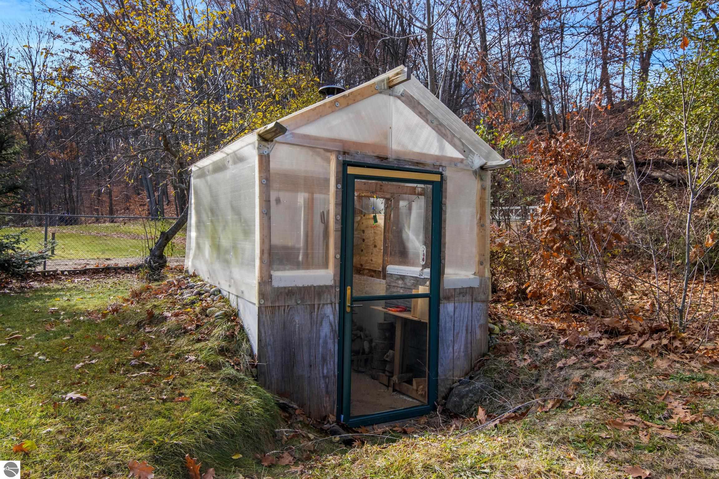 Grand Traverse Bay views, blooming gardens, and a peaceful location set the stage for this Up` North home. Whether it's a weekend retreat or everyday living, you'll feel welcome from the moment you arrive. Perfectly positioned between Traverse City and Suttons Bay, this well-cared-for home blends comfort and charm. While it carries the character of its era, it has been faithfully maintained. Oversized main-level windows brighten the space with views of the bay, setting a warm tone throughout the home. The partially finished lower level adds versatile space for a rec room or could be finished into a family room. A convenient half bath completes the area. Just off the main living area, an enclosed porch begins the transition between indoors and out—a quiet perch to enjoy morning coffee, read a book on rainy days, or watch the seasons change. Step outside, and the property takes on a magic of its own. The backyard has been transformed into a garden sanctuary, boasting flowering and fruit trees, perennials, and a dedicated garden area. A low-maintenance natural lawn makes upkeep simple, giving you more time to enjoy the space. A 10x10 heated greenhouse is ready for the gardener—or the one who longs to become one. And if gardening isn’t your passion, the yard is just as enjoyable for evening bonfires, yard games, or simple relaxation. For added convenience, the porch furniture and outdoor furnishings can remain with the home. Practical updates offer peace of mind, including a new septic field installed in 2021 and a whole-house generator for when storms roll in. For beach lovers, Boughey Park is just a half mile away—perfect for swimming, building sandcastles, or enjoying a picnic. And when adventure calls, you’re moments from wineries, breweries, beaches, hiking and biking on the TART Trail, and all the dining, shopping, and local flavor that Traverse City has to offer. Whether it’s a retreat, a place to grow, or your next chapter, this home is ready for new memories.