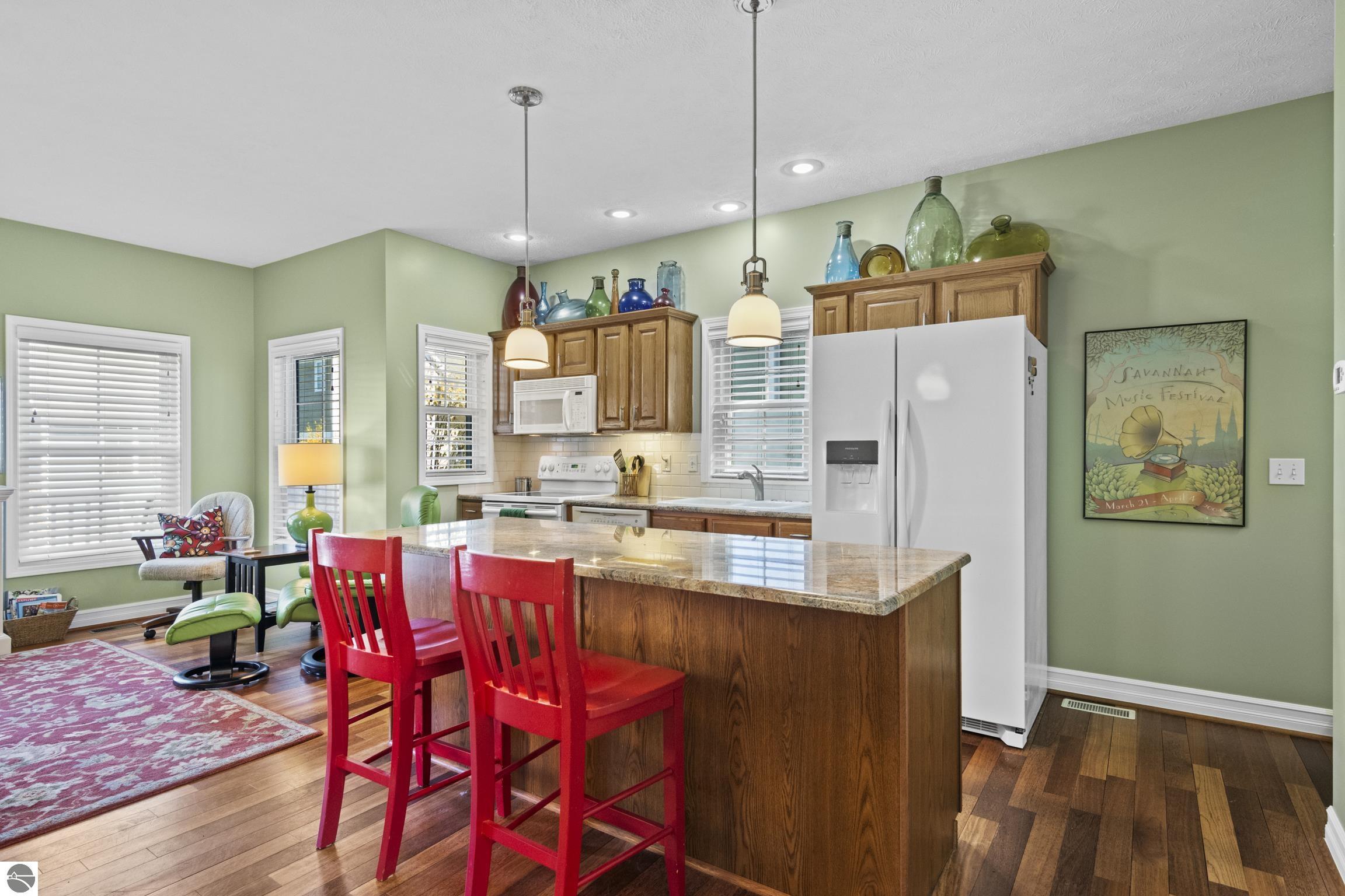 Delightfully appointed condo in the heart of downtown Traverse City. All the things that make TC so delightful are right outside your door - yet there's an element of quiet and privacy to this setting. Inside, feel the grace of granite counters, wood floors, well thought out spaces that easily host work and play - and a heated garage. Outside, kayak the Boardman River from your shared dock or stroll to nearby shops, restaurants, events and beaches. Oh - and you're only a block from the Boardman Lake loop trail for biking, walking and running. Whether you use this as your big-city retreat, your winter refuge from rural settings or your year round perch, you will absolutely love this spot!