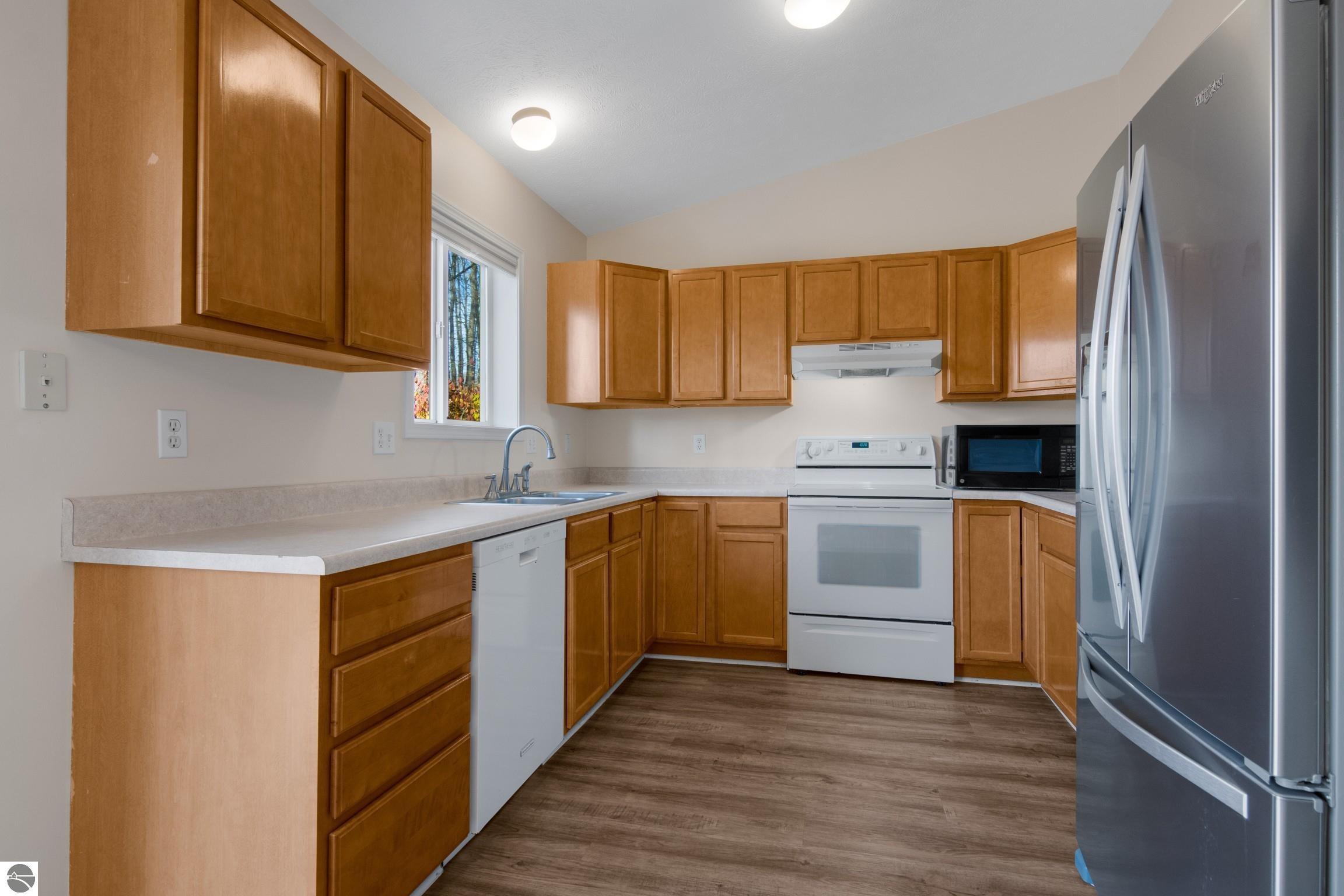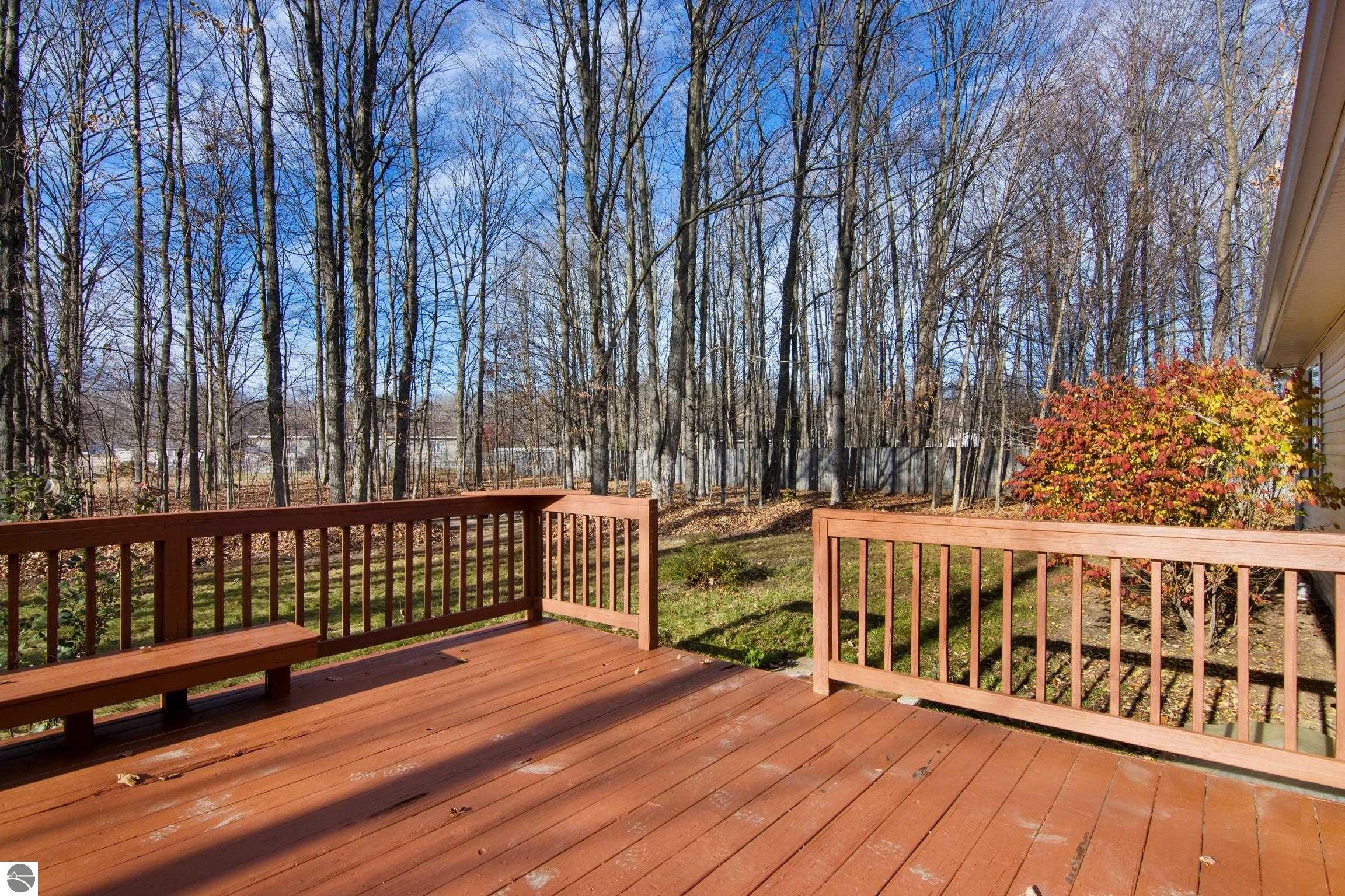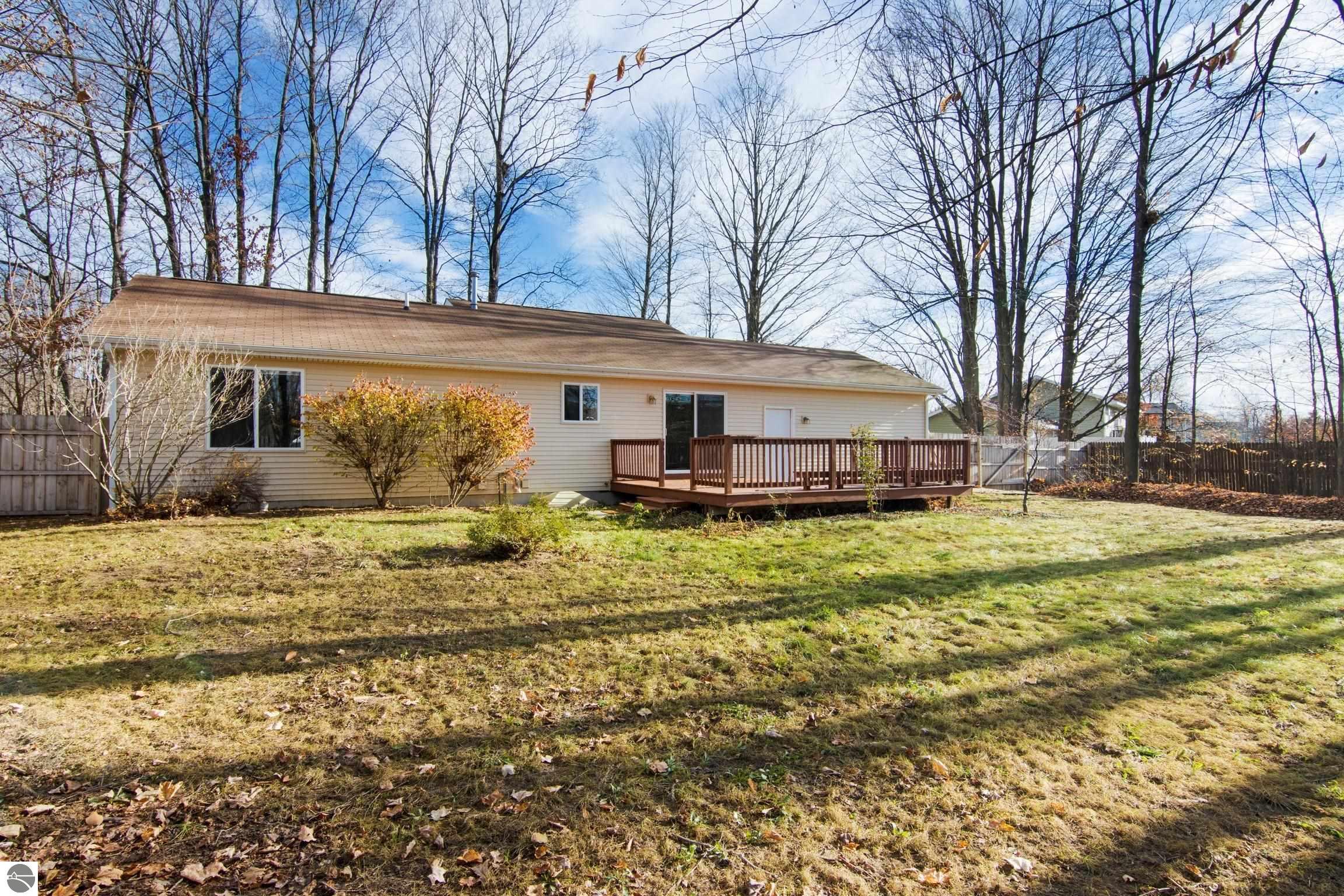 Welcome home to this charming and cozy 4 bedroom, 2 bathroom home that has been recently updated and is move in ready! This home is located within minutes of beautiful Traverse City and Interlochen, set in the privacy of a peaceful neighborhood. The upstairs is open and features all your main level living: Kitchen, dining room, living room, laundry area, main bedrooms and bathrooms. The downstairs is fully finished with a large entertainment area, private spacious bedroom and bonus room that would make a great office or home gym. This delightful home features a spacious wooded backyard that is fully fenced in and has been lovingly tended to with dedicated garden beds, raspberry and blueberry bushes, fruit trees and grape vines. The backyard features a charming deck overlooking this oasis and large outdoor fire pit for making memories.