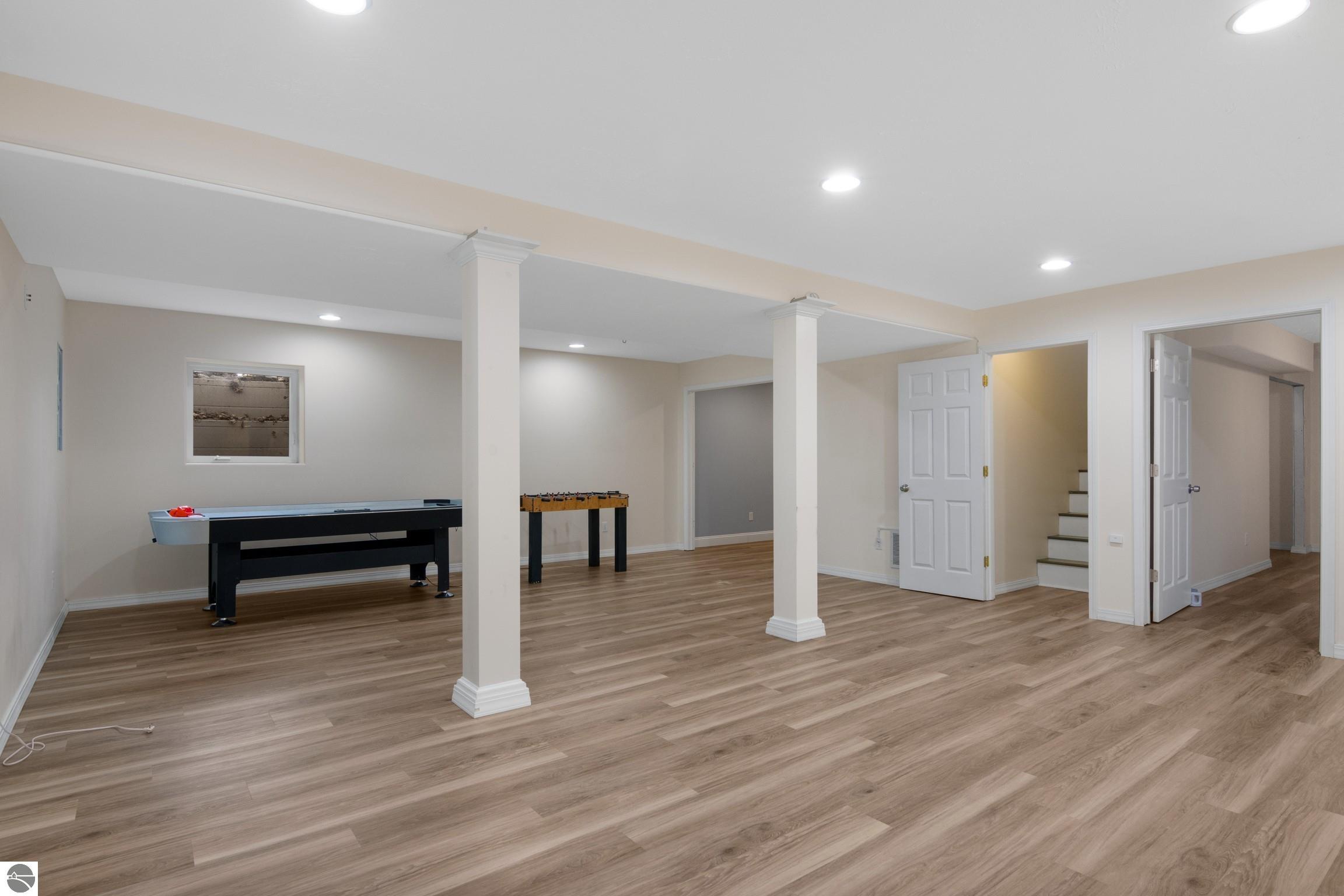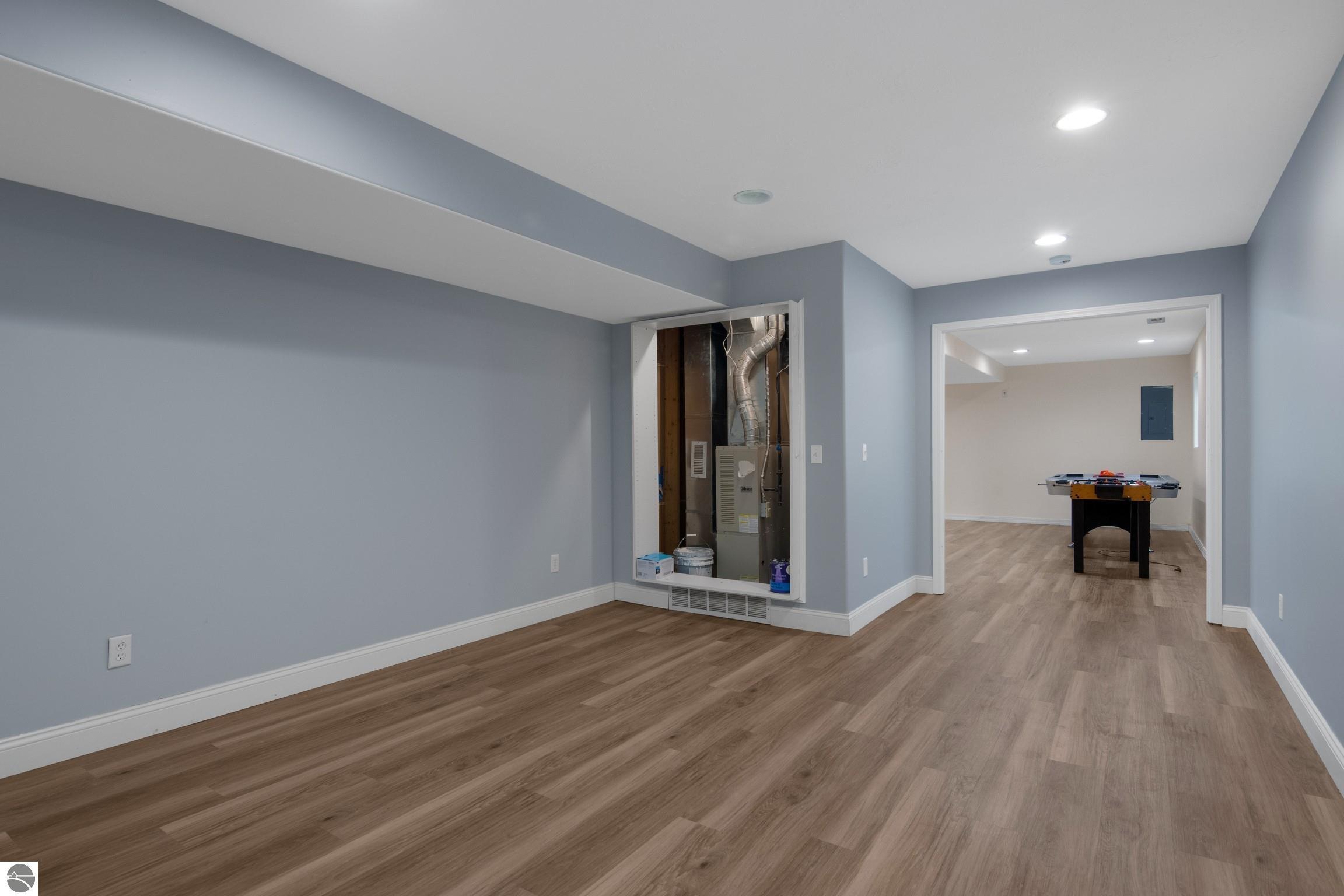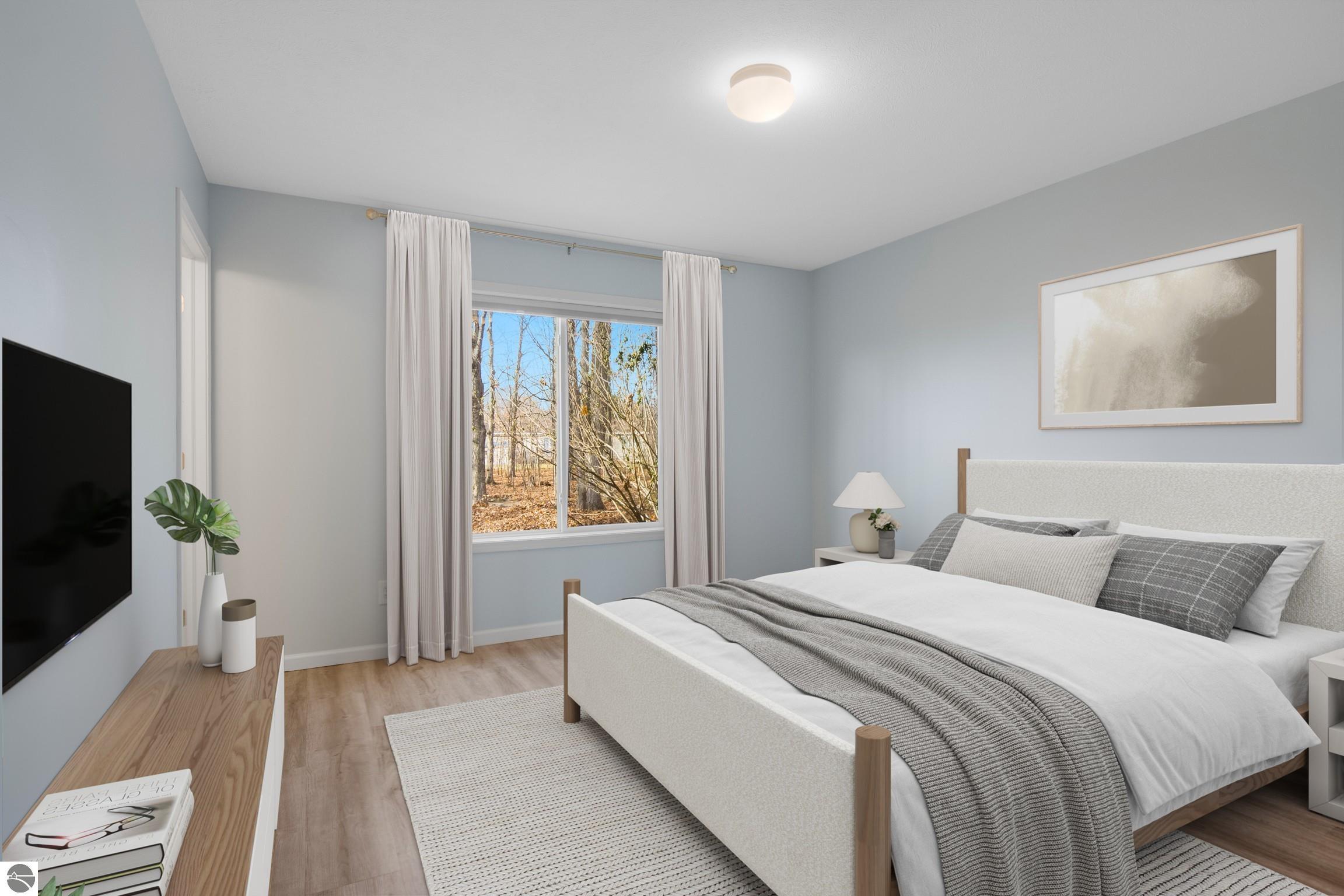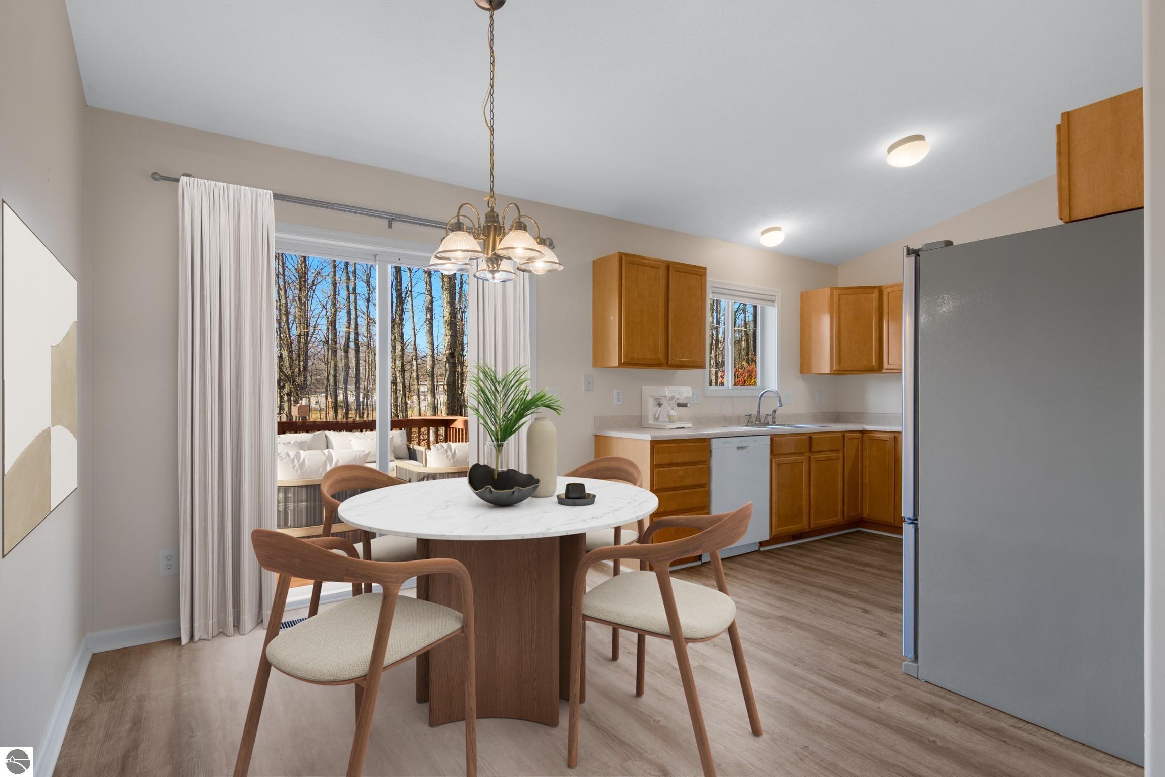 Welcome home to this charming and cozy 4 bedroom, 2 bathroom home that has been recently updated and is move in ready! This home is located within minutes of beautiful Traverse City and Interlochen, set in the privacy of a peaceful neighborhood. The upstairs is open and features all your main level living: Kitchen, dining room, living room, laundry area, main bedrooms and bathrooms. The downstairs is fully finished with a large entertainment area, private spacious bedroom and bonus room that would make a great office or home gym. This delightful home features a spacious wooded backyard that is fully fenced in and has been lovingly tended to with dedicated garden beds, raspberry and blueberry bushes, fruit trees and grape vines. The backyard features a charming deck overlooking this oasis and large outdoor fire pit for making memories.