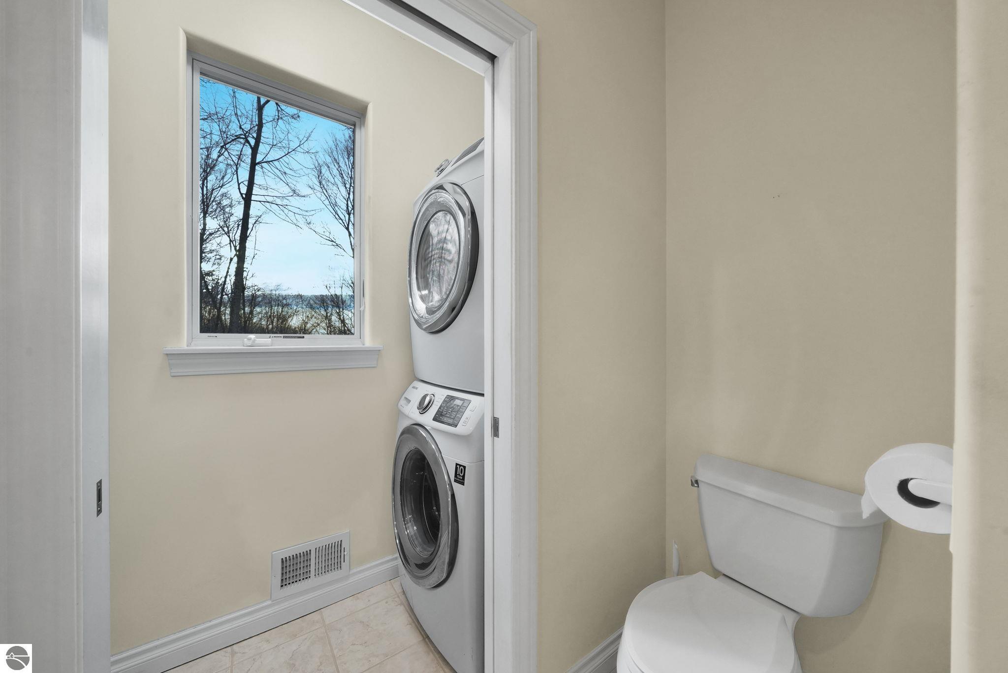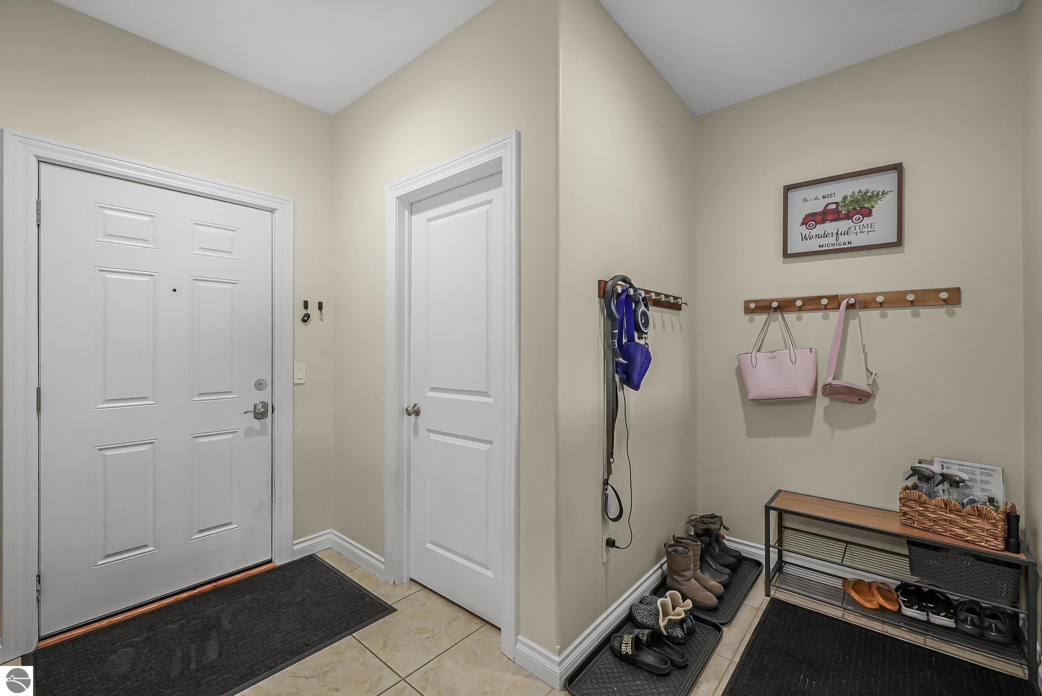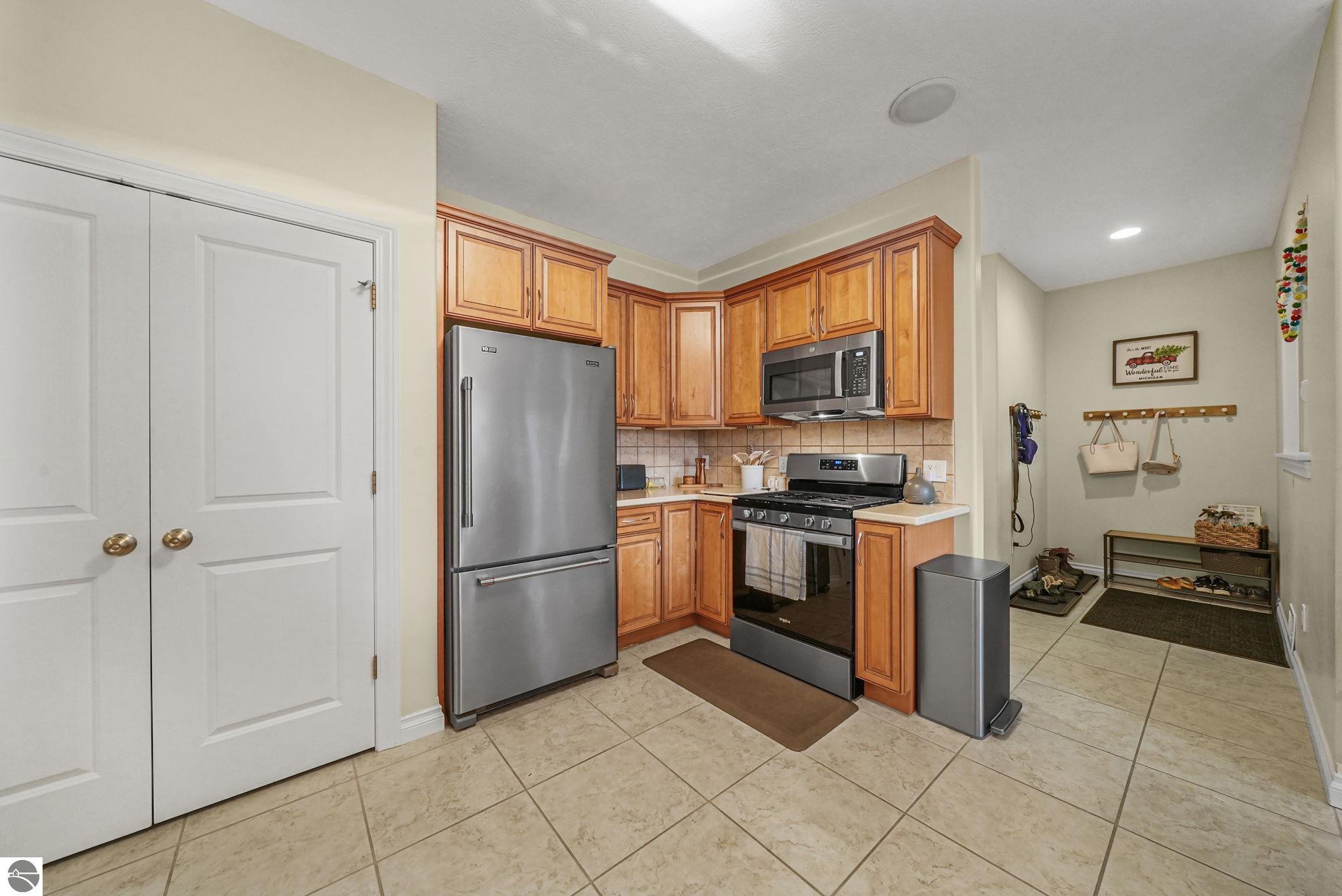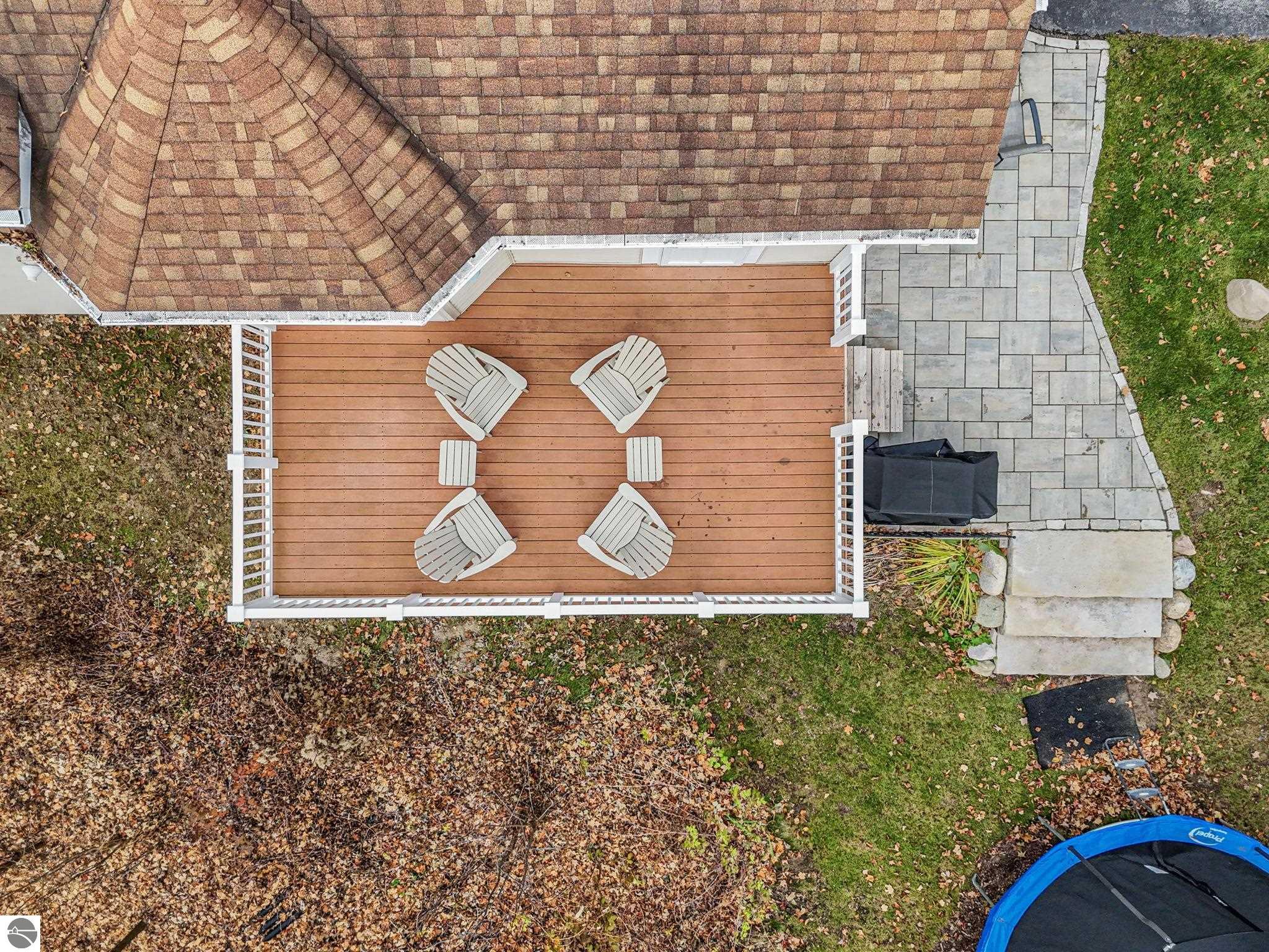 Welcome to this spacious home on a quiet cul-de-sac just 7 miles from downtown Traverse City. Surrounded by hardwoods and evergreens, this home offers a peaceful, park-like setting with irrigation and beautiful landscaping. Inside, a covered porch opens to an inviting living room and office area that flows into an open kitchen, dining room, sunroom, and deck overlooking the large yard. The main-floor bedroom features a large primary ensuite with laundry, plus a second bedroom and full bath. The bright lower-level walkout includes a living area, third bedroom, full bath, and abundant storage with room to expand. Meticulously maintained and truly turn-key. Complete with a newer water heater and appliances replaced within the last few years. Custom features include 11-foot ceilings, Anderson windows, reverse osmosis, water softener, whole-house surround sound, and a natural gas fireplace. A rare find in the highly sought-after South Creek Subdivision.