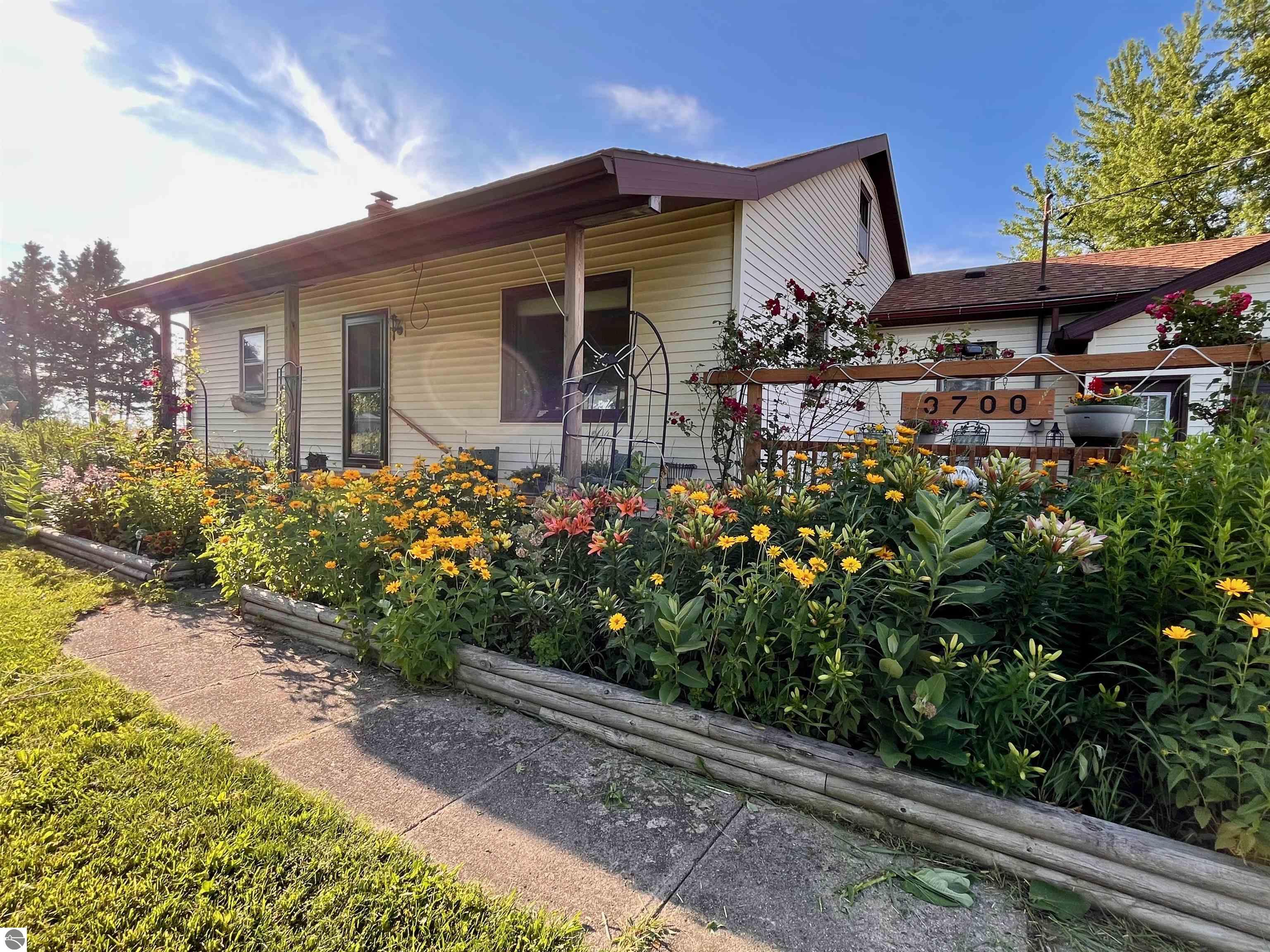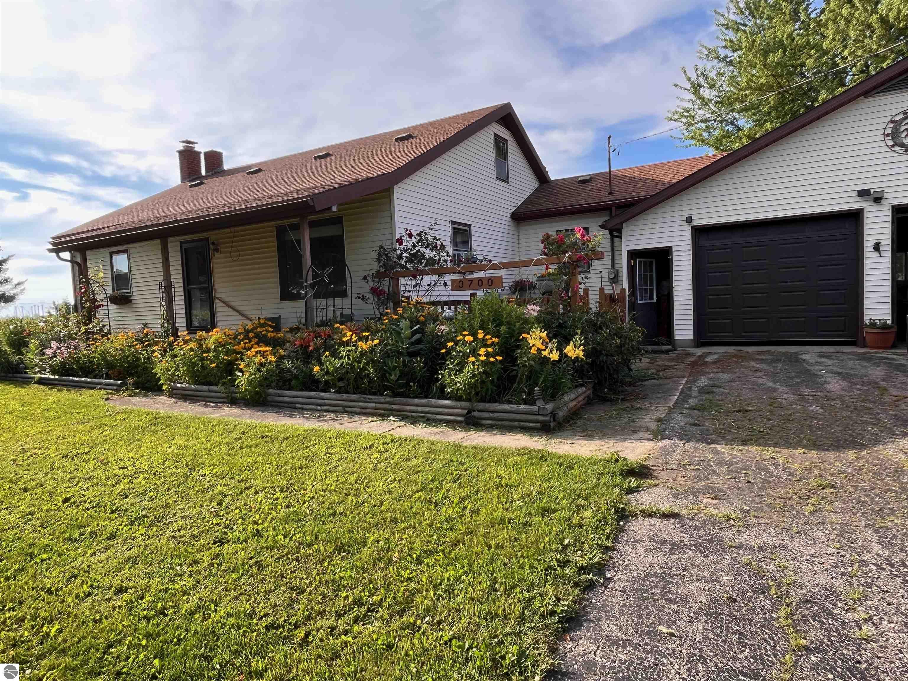 This property offers a solid home on 5 acres of land only 10 minutes from Kingsley and 20 minutes from Traverse City. The 5 bedroom, 2.5 bathroom home has a full basement with egress windows, a canning room, and lots of space. On the main floor, there is laundry/mudroom, living room, kitchen with new appliances, two bedrooms and full bath. Upstairs has three bedrooms and a full bath. The two car garage has extra room for storage and a workshop, and there is a large detached pole barn for all your tools and toys. The new deer blind is included, and there is a shed that can be turned into a playhouse, workroom, or chicken coop. Plenty of space in the yard for gardening, chickens, and more, with apple and peach trees, mauggie plant, Gooseberry bushes, black raspberries, rhubarb plants, Concord grape vines and numerous perennials. This property is a gem!