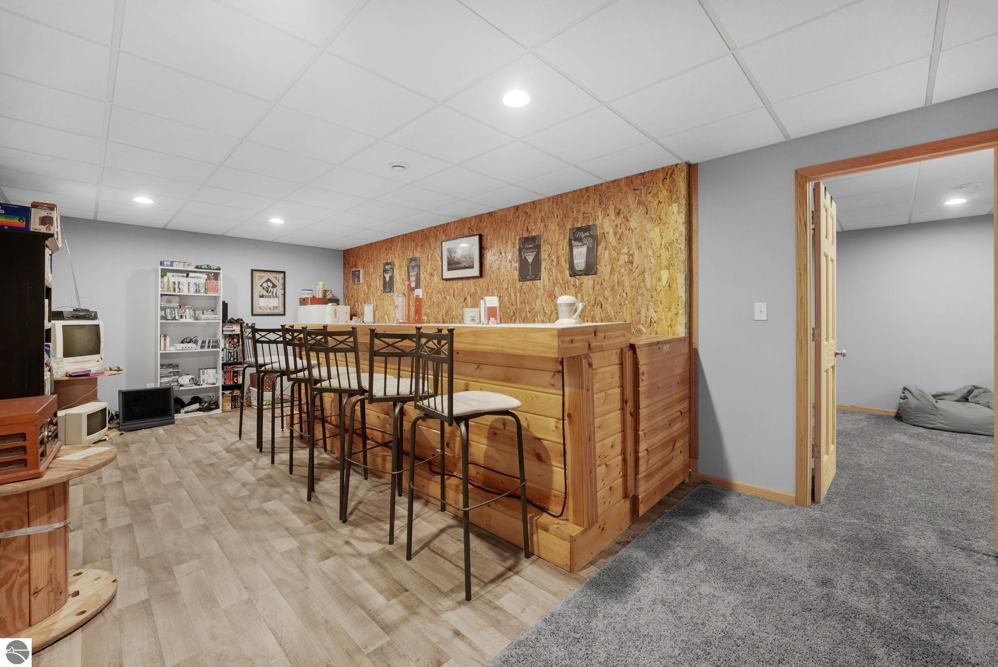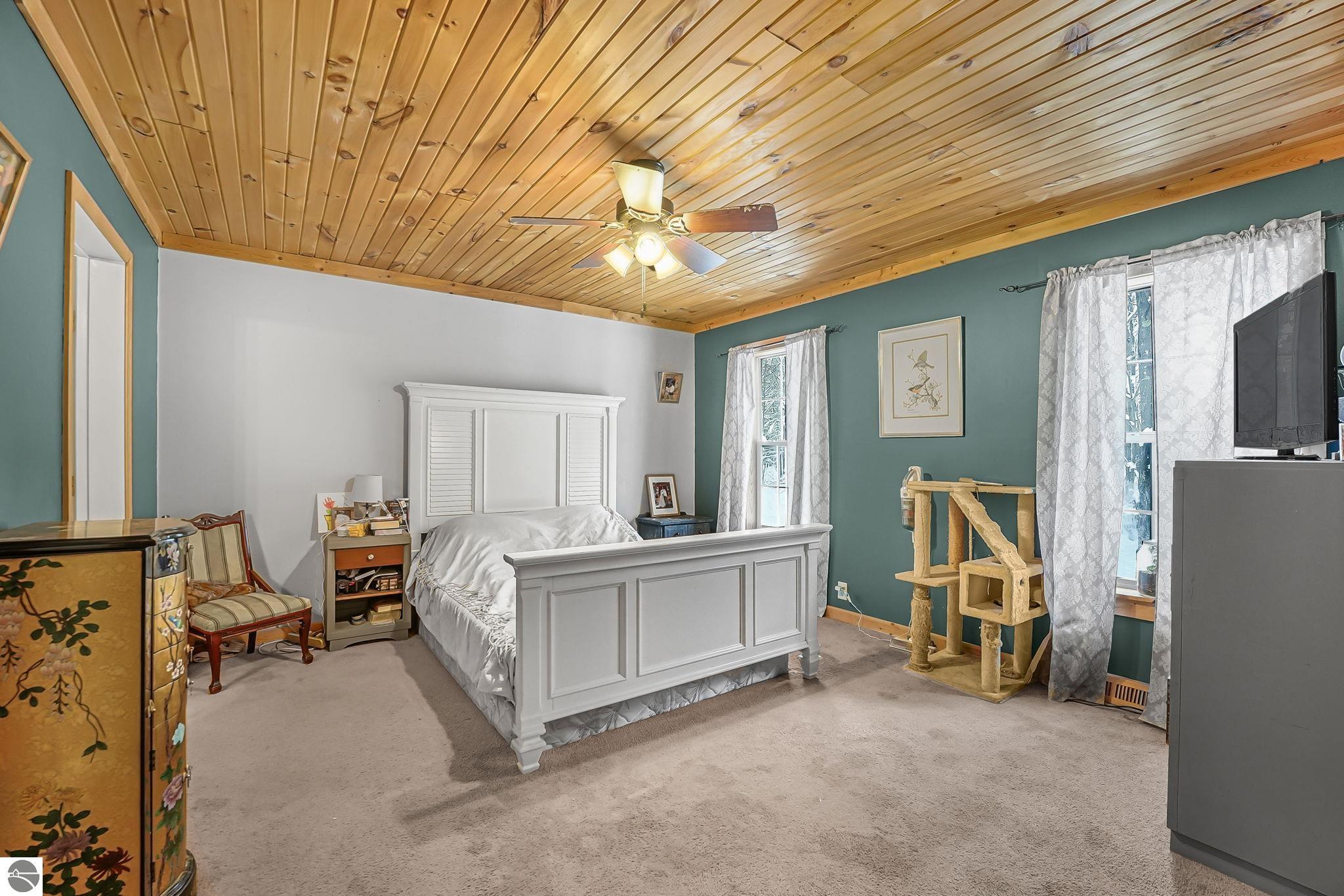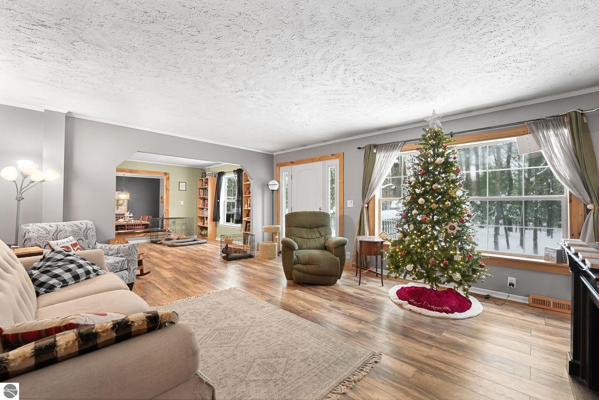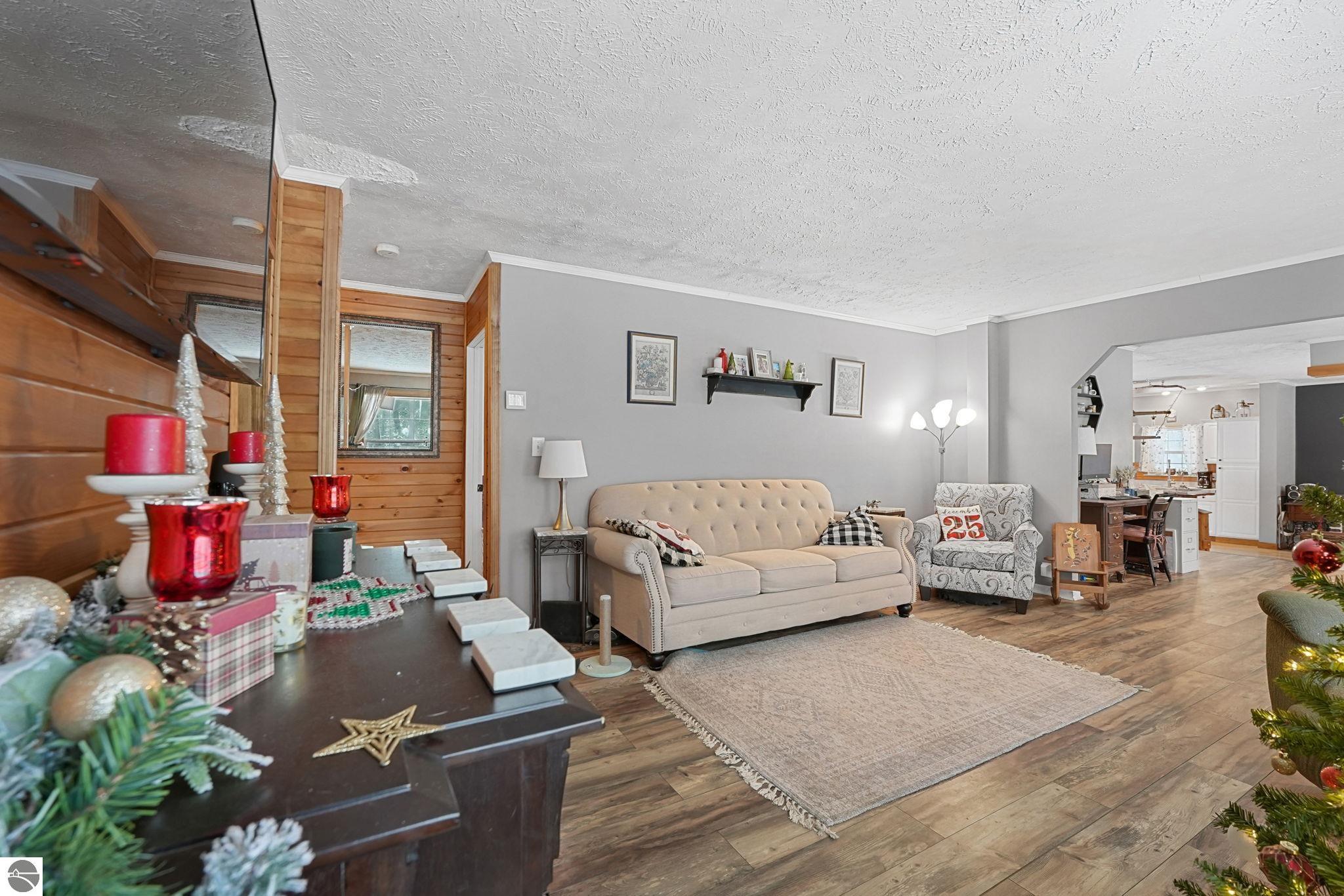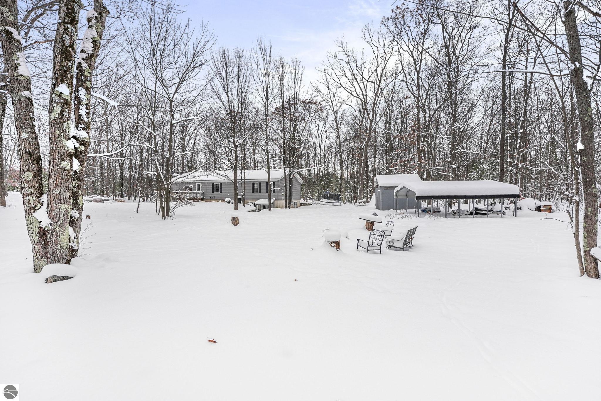 Discover peaceful living on 6.04 private, beautifully wooded acres just minutes from the Village of Interlochen and an easy drive to Traverse City. This quality built ranch offers spacious main-floor living and an impressive 1,400 sq ft. lower level that nearly doubles the home’s living space. The lower level features a large family room, bar/entertainment area, abundant storage, and two non-conforming bedrooms. The luxurious main-floor primary suite includes a generous master bath, while the dramatic island kitchen and dining area showcase stylish bamboo hardwood flooring. A convenient main-floor laundry/mudroom adds to the home’s thoughtful design. Enjoy the outdoors with two decks, lovely landscaping, and extensive perennial gardens. Efficient and flexible heating options include a wood-burning furnace that can heat the entire home economically, along with a propane furnace and a heat pump—use any or all to suit your needs. Built as a high-end manufactured home, this residence features a 5/12 roof pitch, 8' interior sidewalls, full drywall, a custom kitchen, upgraded flooring and light fixtures, and detailed craftsmanship throughout. A solid, attractive home that truly feels stick-built—ready to welcome its next owner.