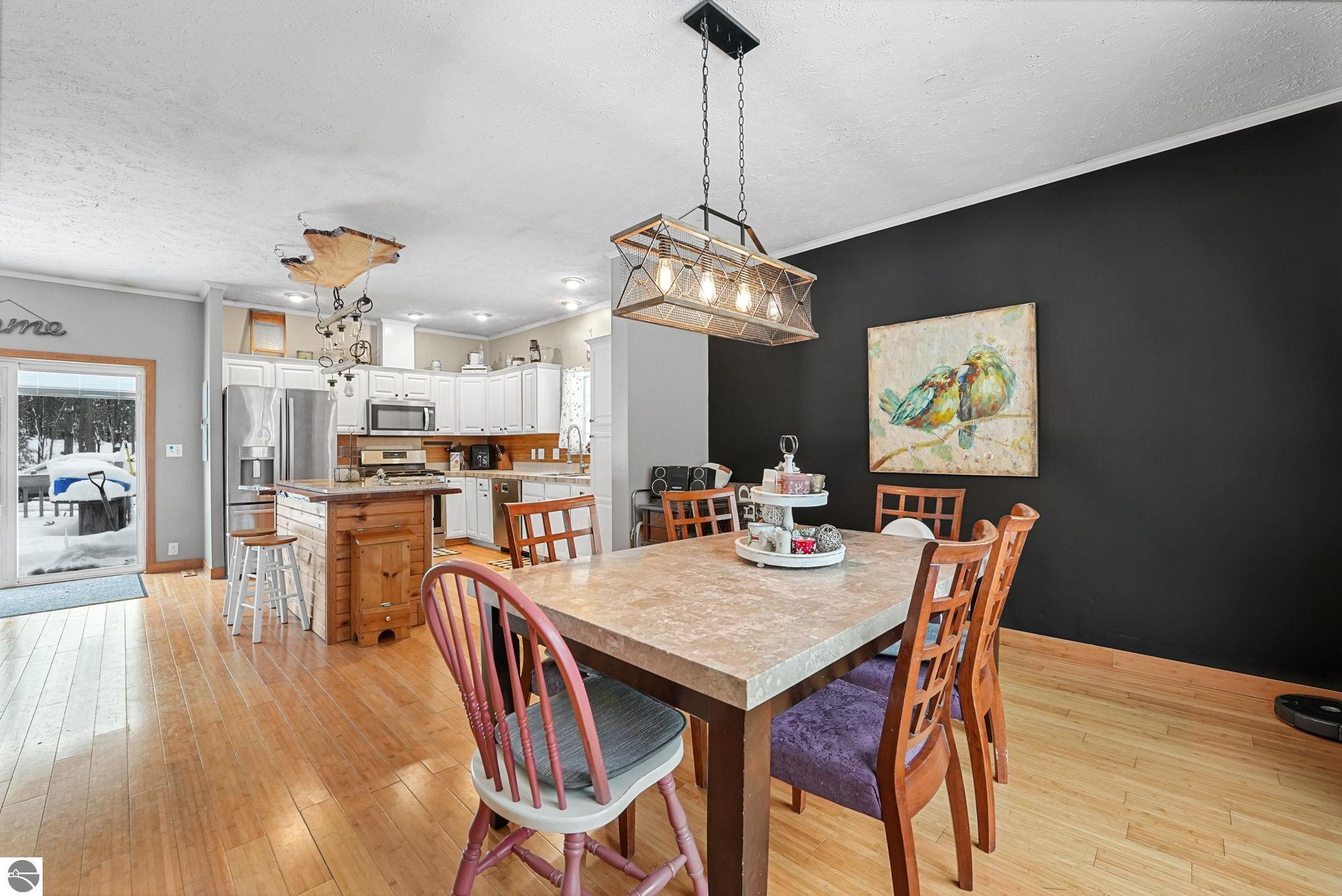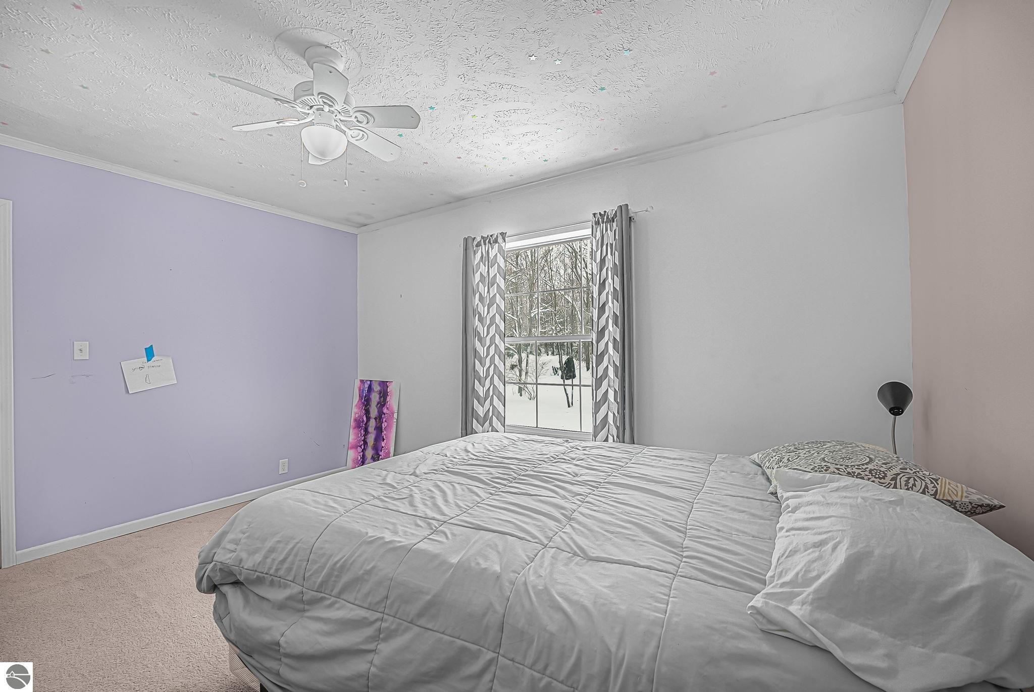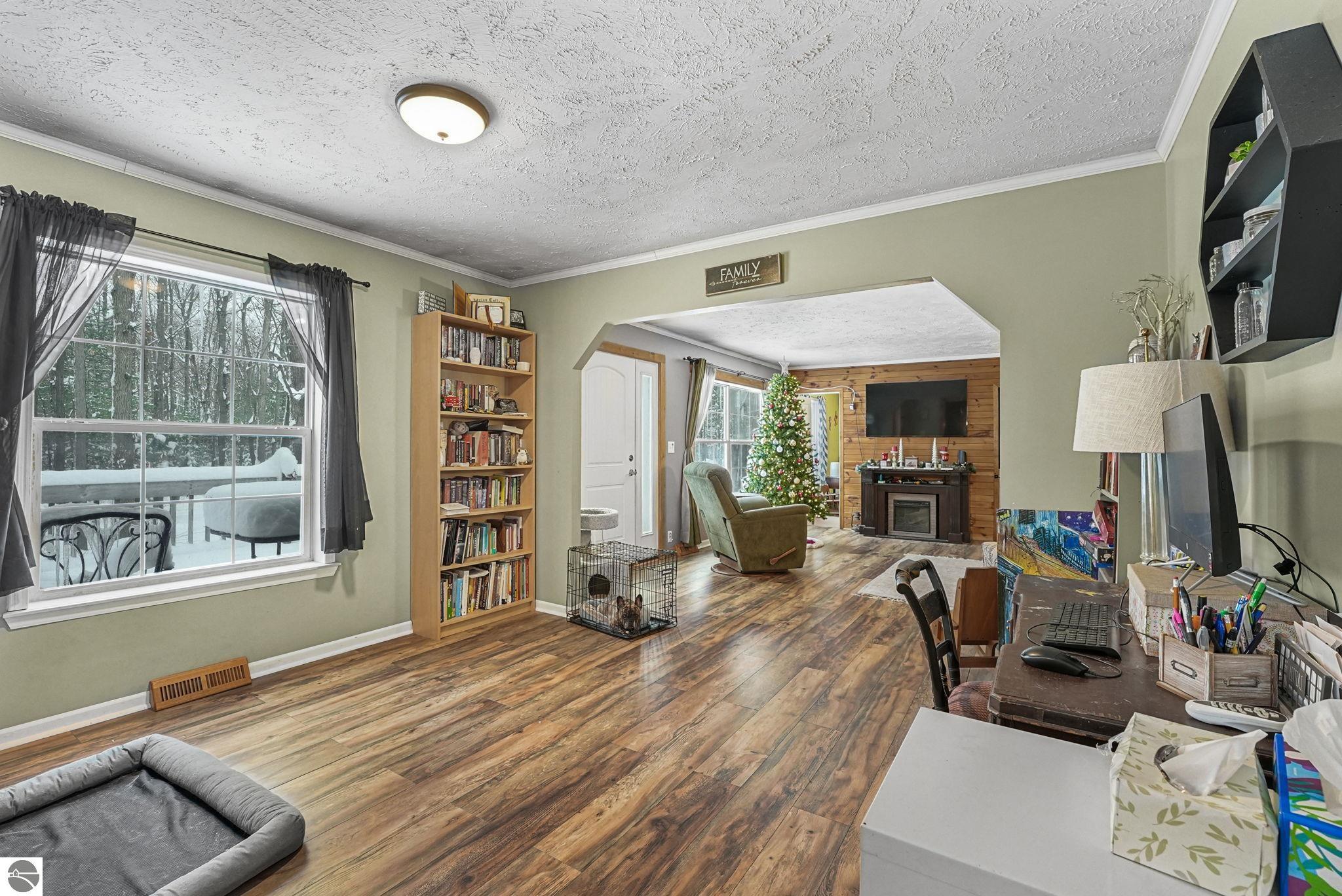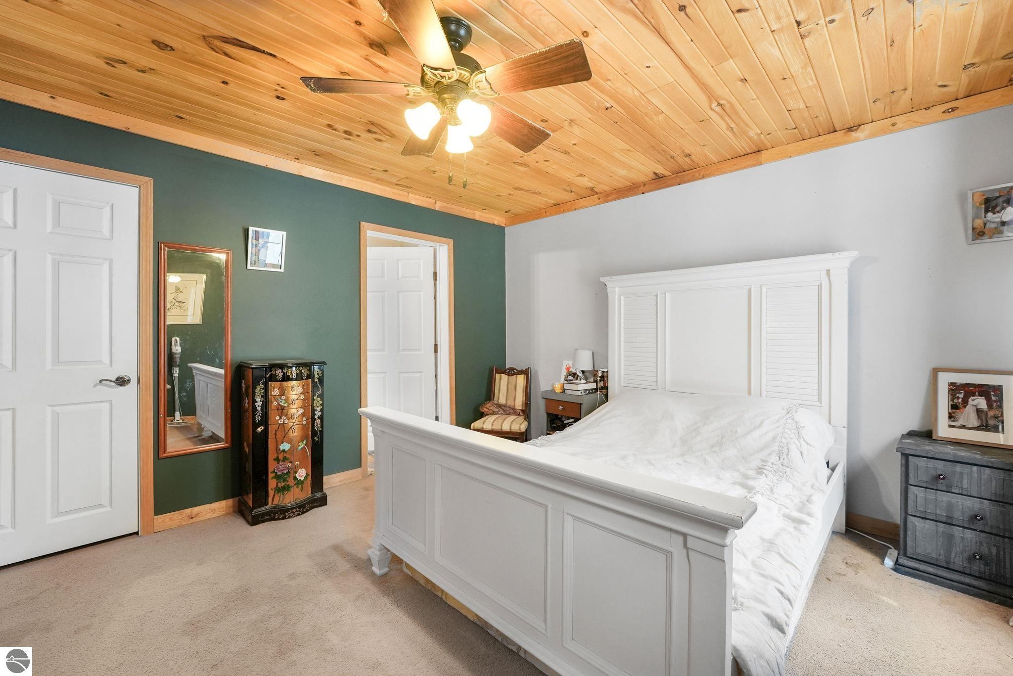 Discover peaceful living on 6.04 private, beautifully wooded acres just minutes from the Village of Interlochen and an easy drive to Traverse City. This quality built ranch offers spacious main-floor living and an impressive 1,400 sq ft. lower level that nearly doubles the home’s living space. The lower level features a large family room, bar/entertainment area, abundant storage, and two non-conforming bedrooms. The luxurious main-floor primary suite includes a generous master bath, while the dramatic island kitchen and dining area showcase stylish bamboo hardwood flooring. A convenient main-floor laundry/mudroom adds to the home’s thoughtful design. Enjoy the outdoors with two decks, lovely landscaping, and extensive perennial gardens. Efficient and flexible heating options include a wood-burning furnace that can heat the entire home economically, along with a propane furnace and a heat pump—use any or all to suit your needs. Built as a high-end manufactured home, this residence features a 5/12 roof pitch, 8' interior sidewalls, full drywall, a custom kitchen, upgraded flooring and light fixtures, and detailed craftsmanship throughout. A solid, attractive home that truly feels stick-built—ready to welcome its next owner.
