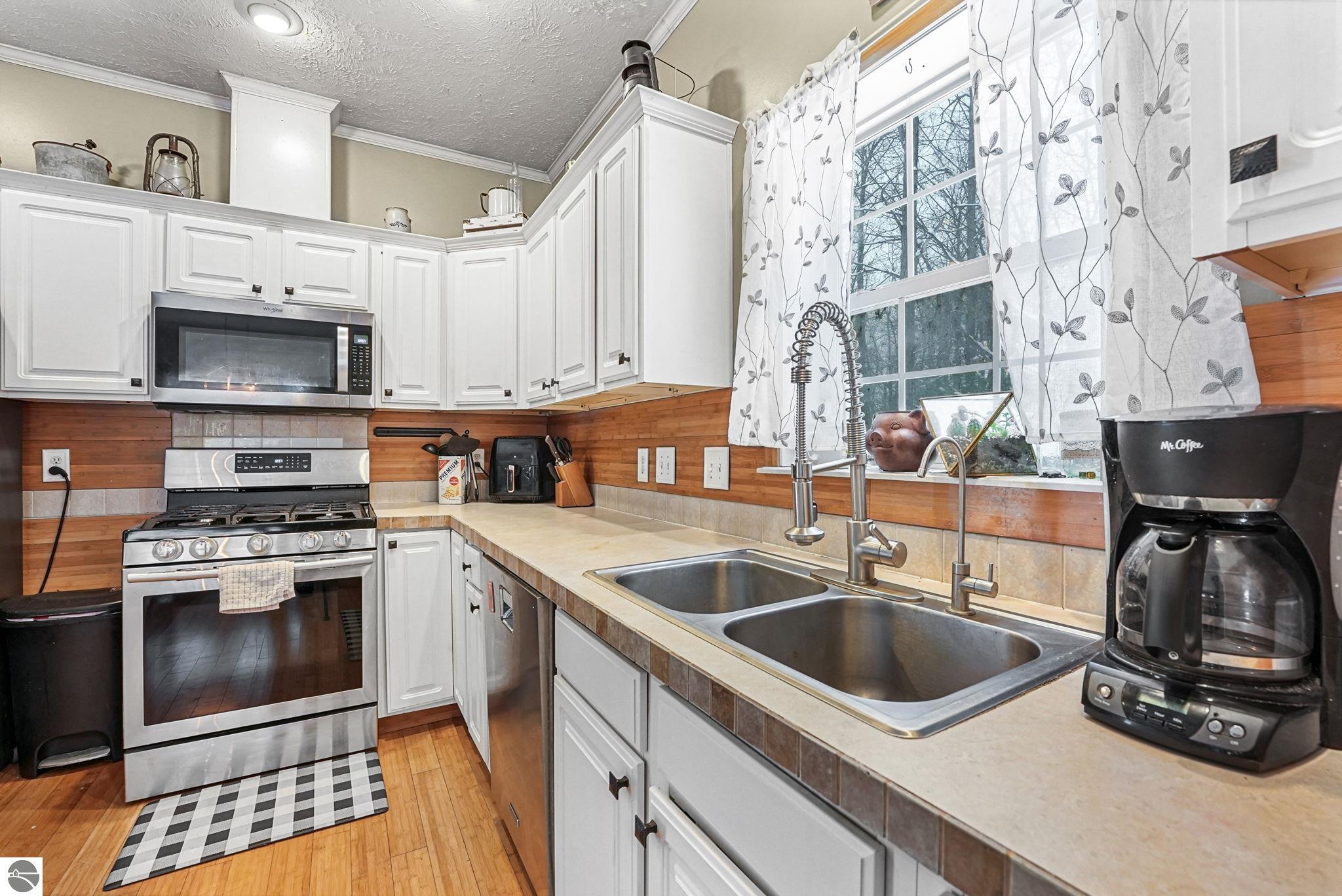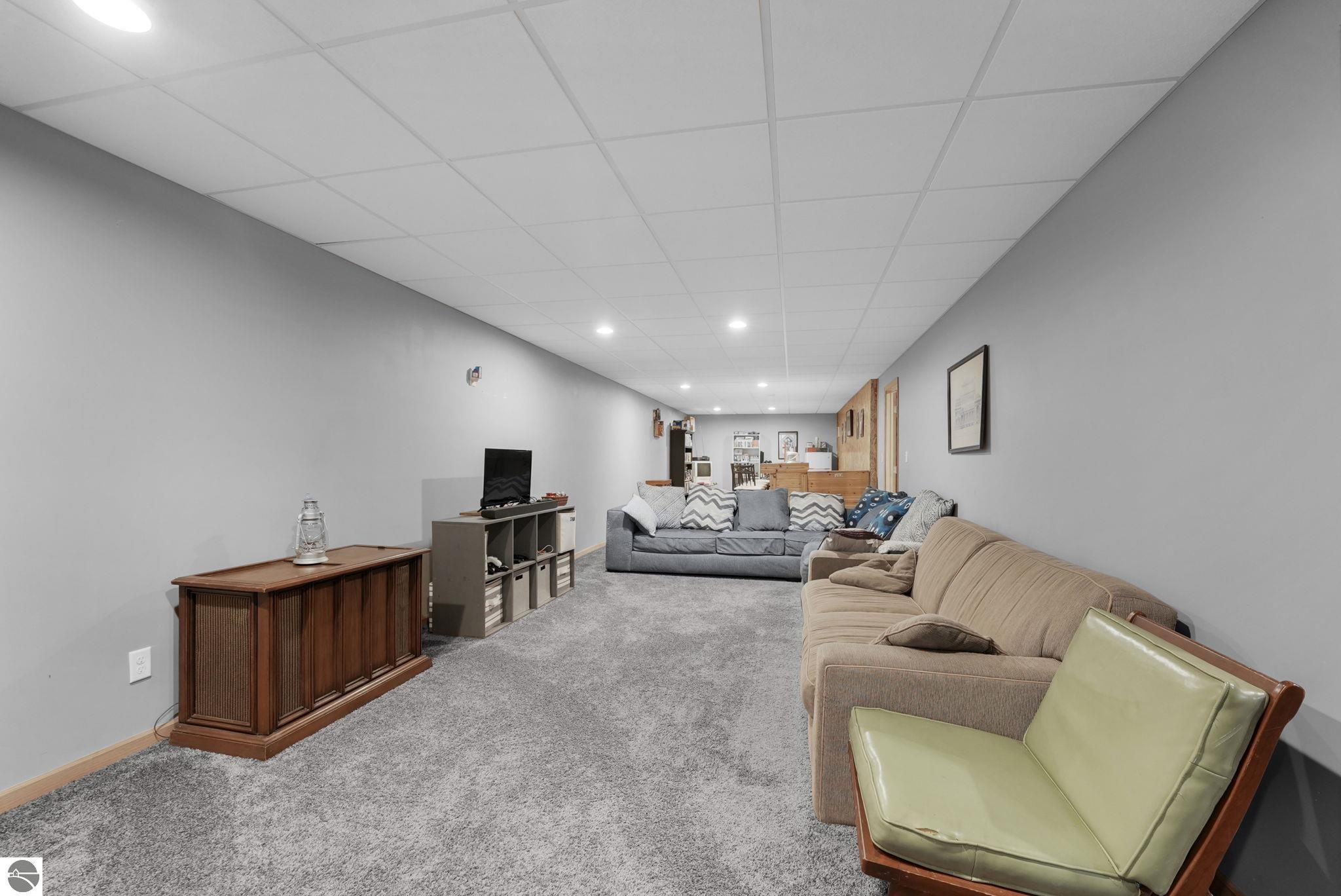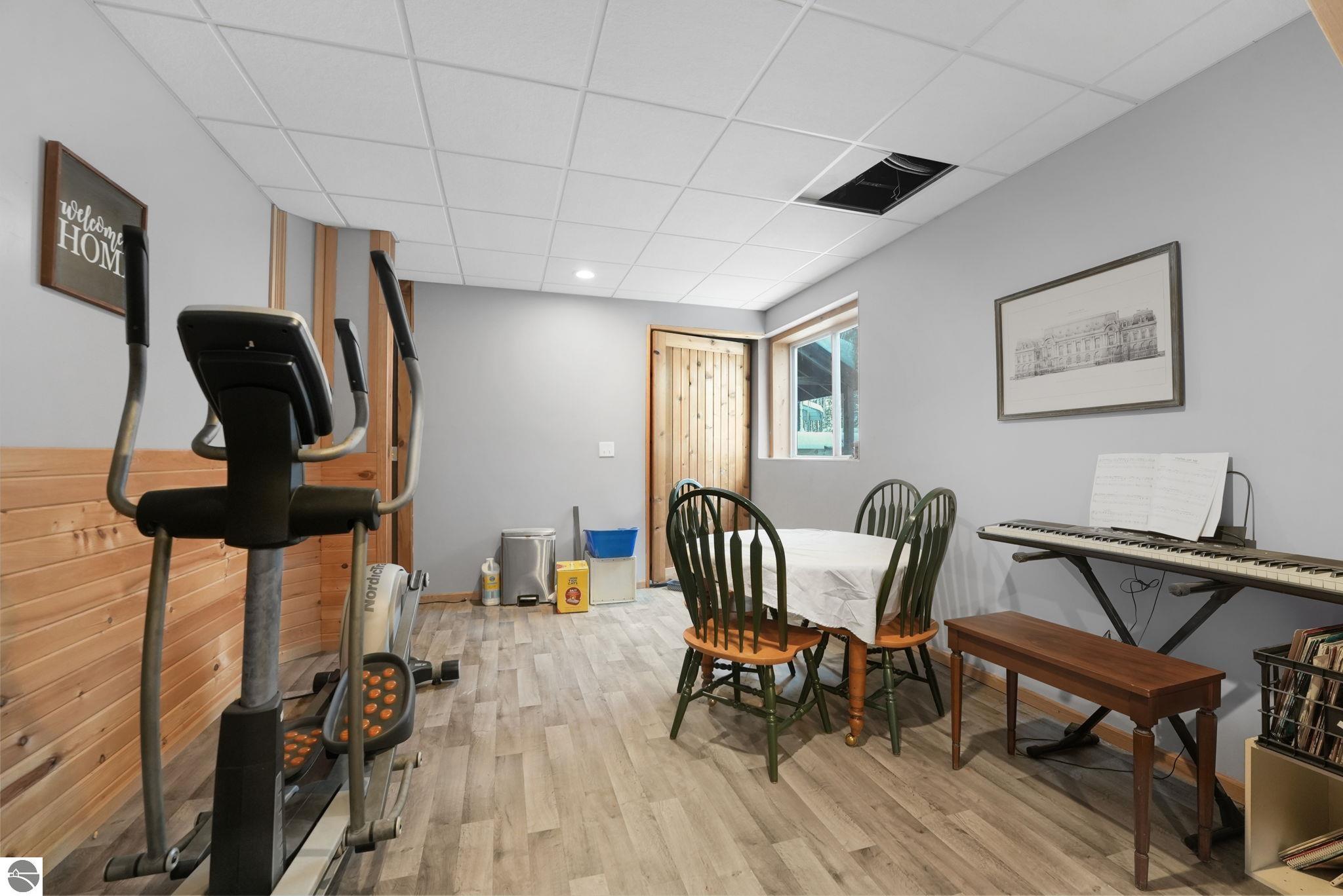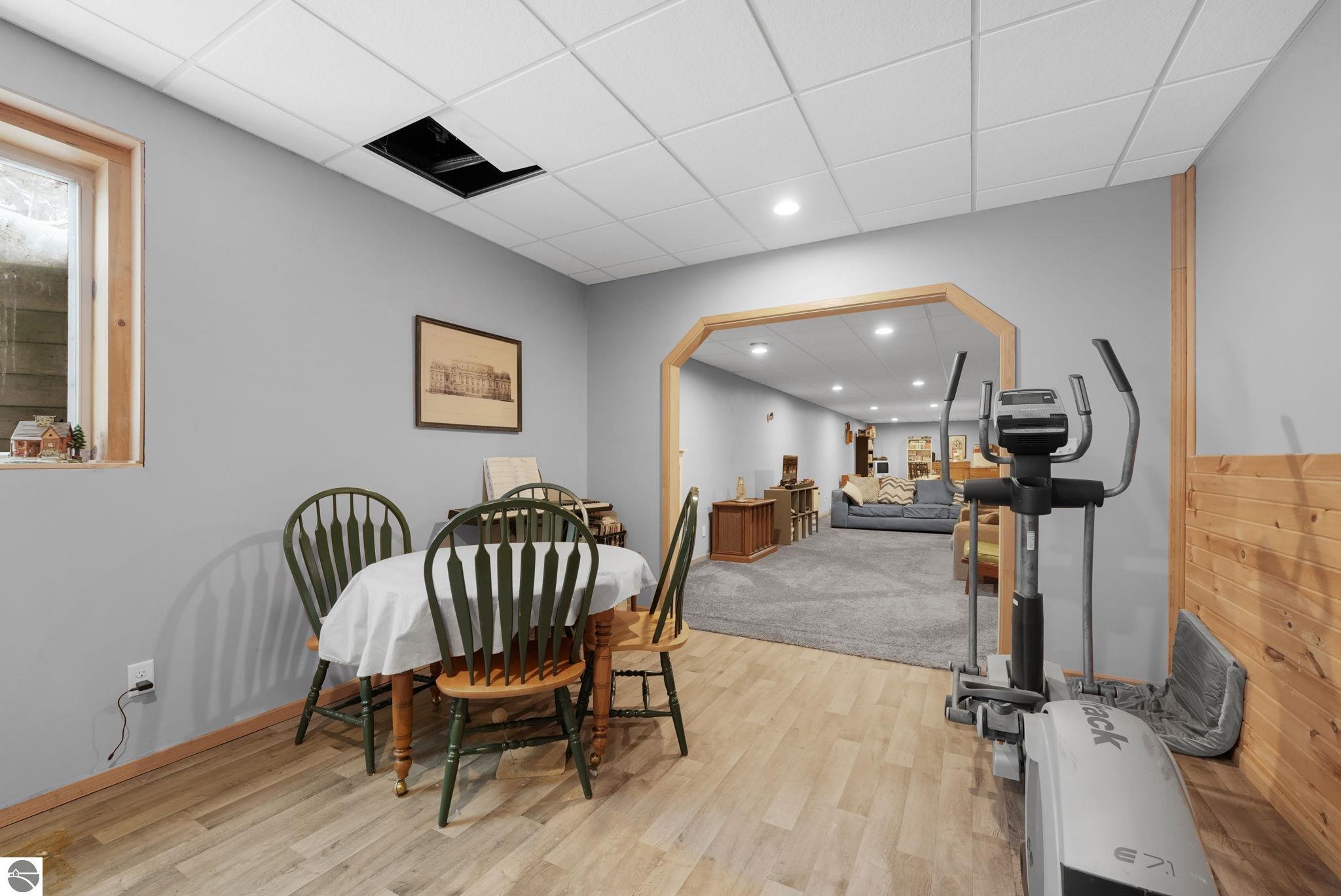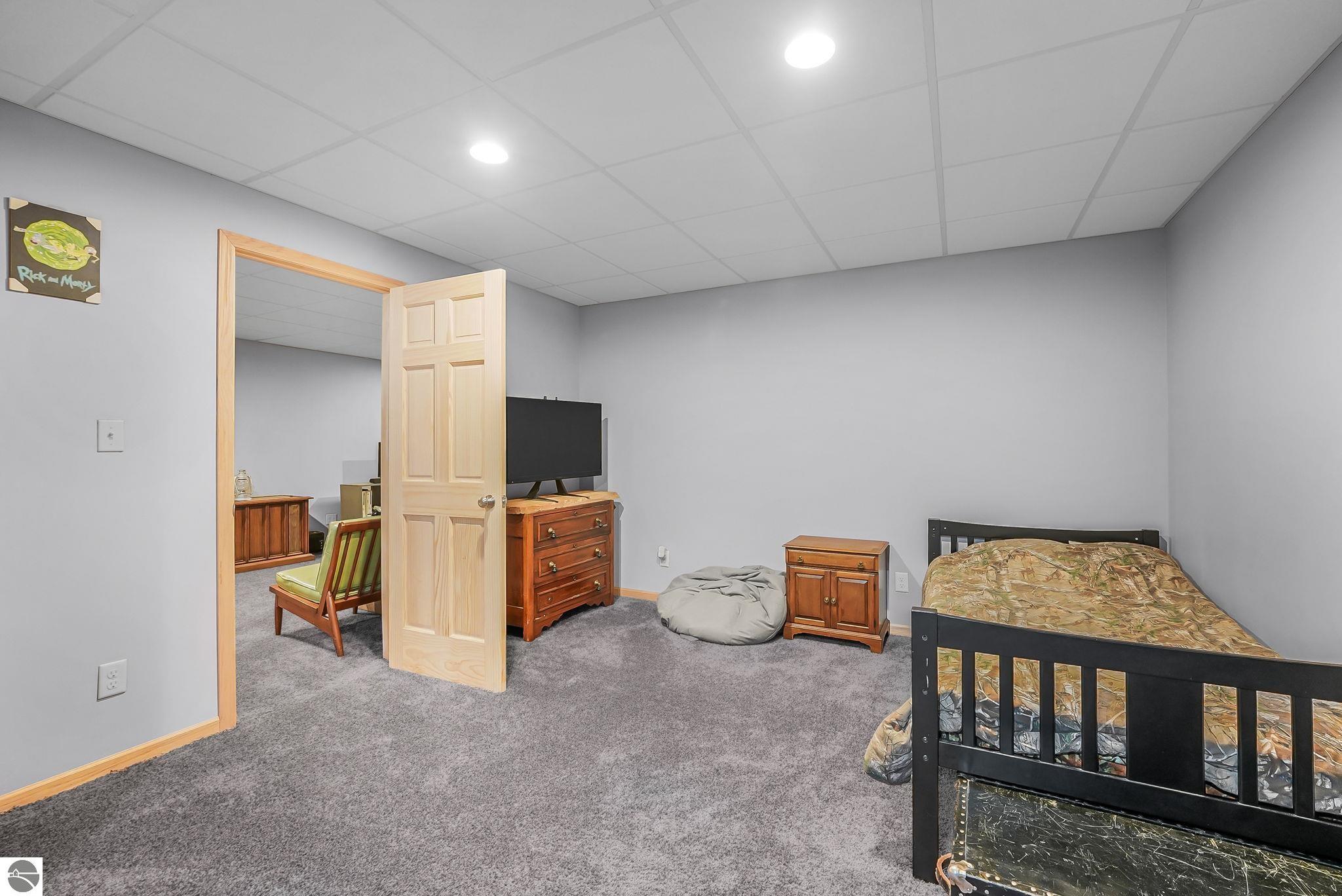 Discover peaceful living on 6.04 private, beautifully wooded acres just minutes from the Village of Interlochen and an easy drive to Traverse City. This quality built ranch offers spacious main-floor living and an impressive 1,400 sq ft. lower level that nearly doubles the home’s living space. The lower level features a large family room, bar/entertainment area, abundant storage, and two non-conforming bedrooms. The luxurious main-floor primary suite includes a generous master bath, while the dramatic island kitchen and dining area showcase stylish bamboo hardwood flooring. A convenient main-floor laundry/mudroom adds to the home’s thoughtful design. Enjoy the outdoors with two decks, lovely landscaping, and extensive perennial gardens. Efficient and flexible heating options include a wood-burning furnace that can heat the entire home economically, along with a propane furnace and a heat pump—use any or all to suit your needs. Built as a high-end manufactured home, this residence features a 5/12 roof pitch, 8' interior sidewalls, full drywall, a custom kitchen, upgraded flooring and light fixtures, and detailed craftsmanship throughout. A solid, attractive home that truly feels stick-built—ready to welcome its next owner.