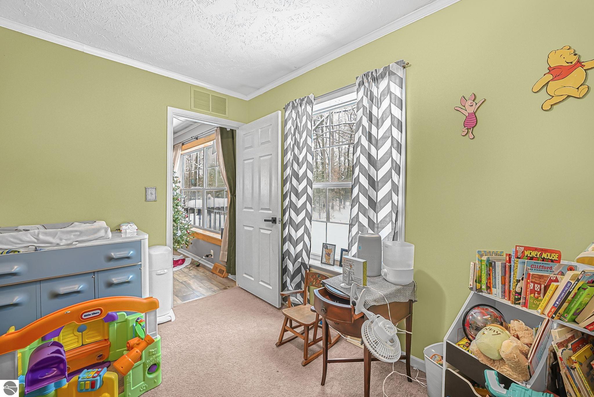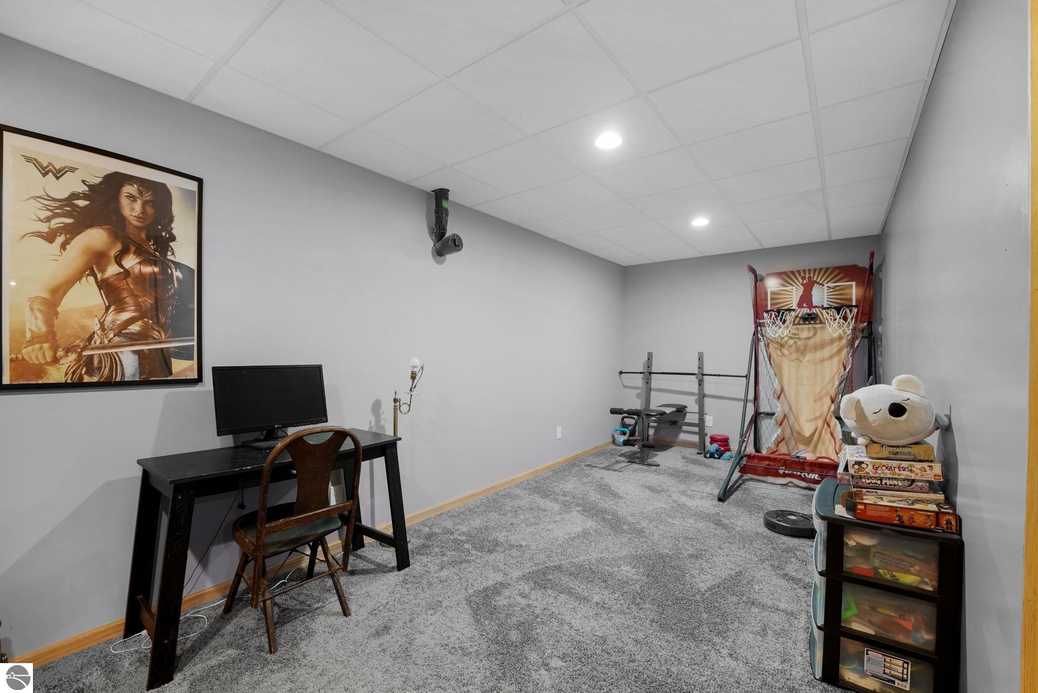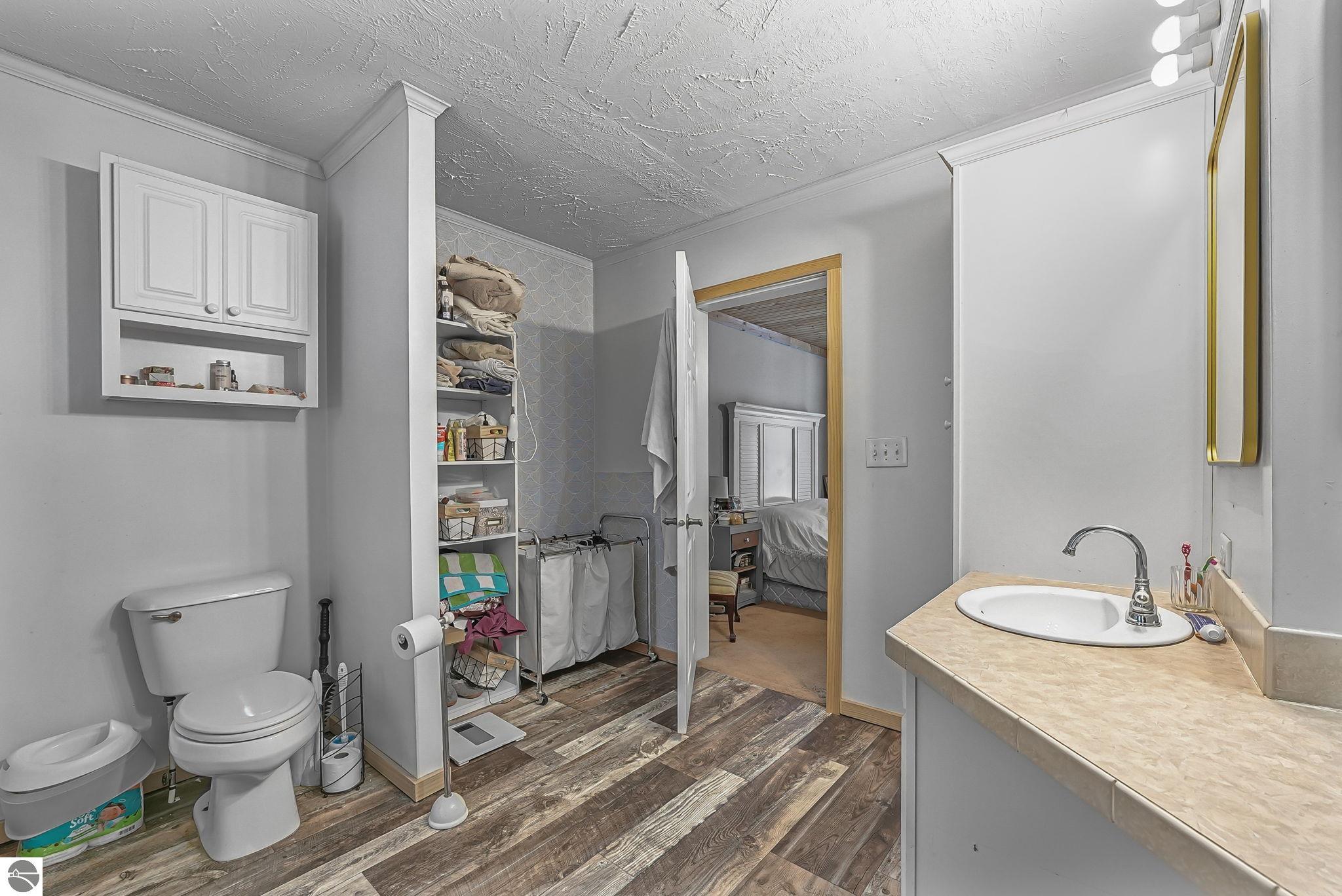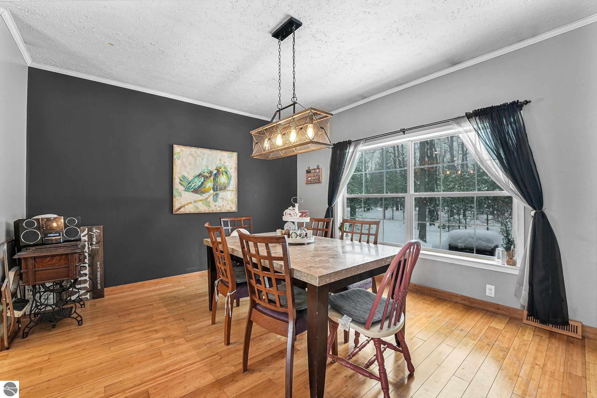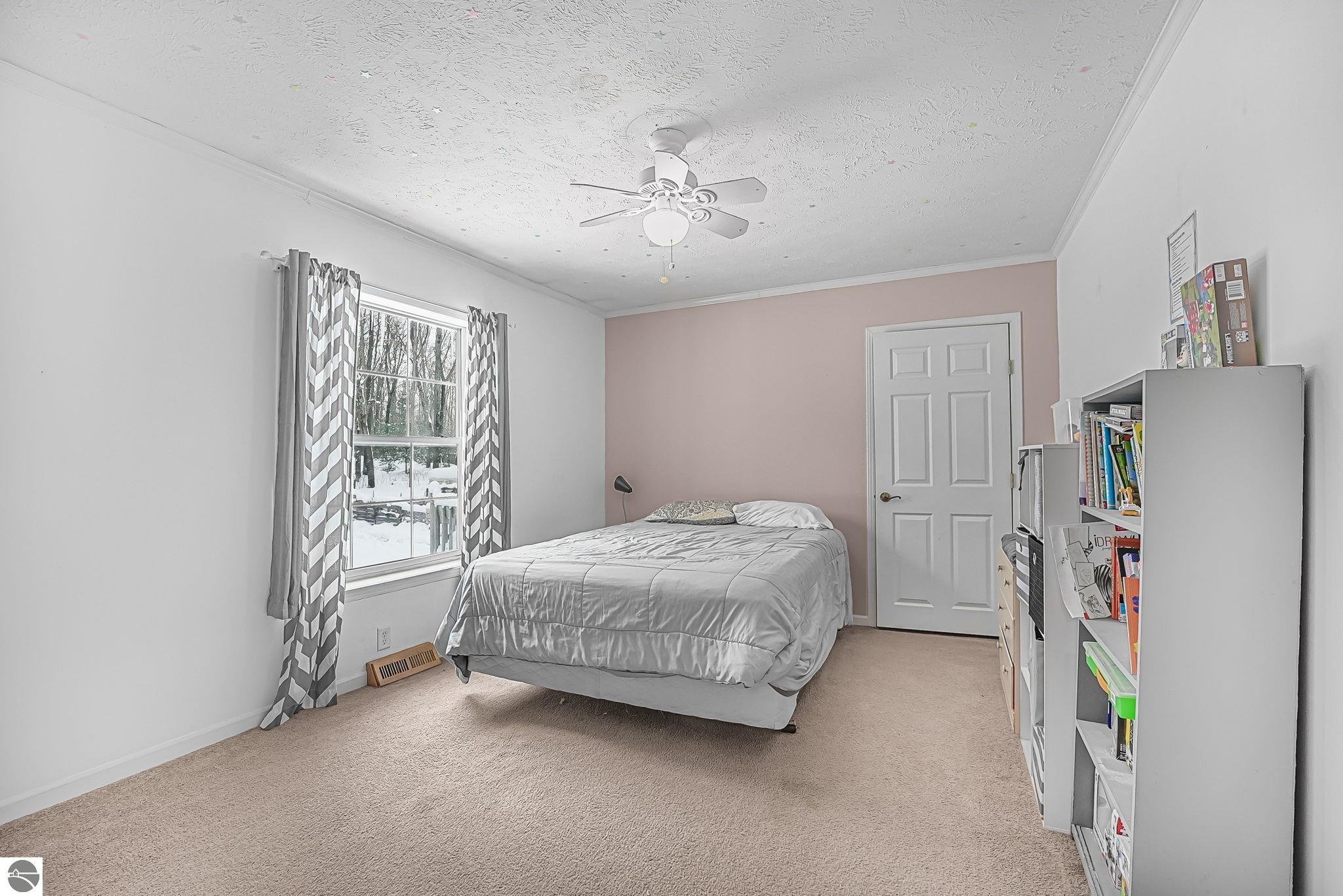 Discover peaceful living on 6.04 private, beautifully wooded acres just minutes from the Village of Interlochen and an easy drive to Traverse City. This quality built ranch offers spacious main-floor living and an impressive 1,400 sq ft. lower level that nearly doubles the home’s living space. The lower level features a large family room, bar/entertainment area, abundant storage, and two non-conforming bedrooms. The luxurious main-floor primary suite includes a generous master bath, while the dramatic island kitchen and dining area showcase stylish bamboo hardwood flooring. A convenient main-floor laundry/mudroom adds to the home’s thoughtful design. Enjoy the outdoors with two decks, lovely landscaping, and extensive perennial gardens. Efficient and flexible heating options include a wood-burning furnace that can heat the entire home economically, along with a propane furnace and a heat pump—use any or all to suit your needs. Built as a high-end manufactured home, this residence features a 5/12 roof pitch, 8' interior sidewalls, full drywall, a custom kitchen, upgraded flooring and light fixtures, and detailed craftsmanship throughout. A solid, attractive home that truly feels stick-built—ready to welcome its next owner.