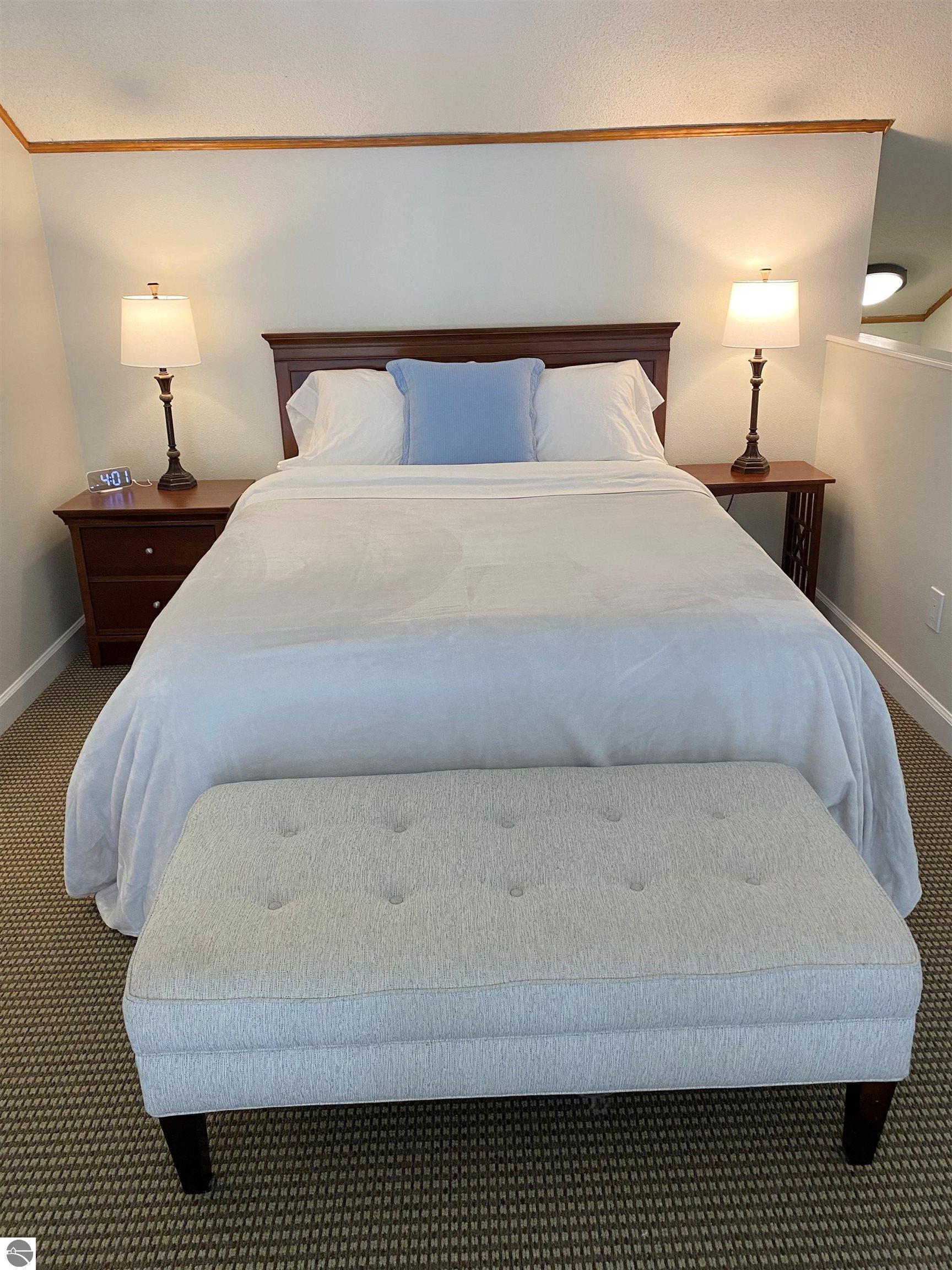 Welcome to the ideal Northern Michigan getaway! This 3 bedroom, 2 bath condo is located next to the Grand Traverse Resort & Spa with views of the Spruce Run Golf Course. This fully furnished condo has an excellent rental history, sleeps 8 and has everything you need for a comfortable and relaxing stay for your guests. Located on the top floor of the building, this freshly painted condo features vaulted ceilings on the main level, wood burning fireplace, new light fixtures (2024) new laundry room (2025), and new furnace (2025). Whether you're using this as your personal retreat or adding to your rental portfolio, this unit is ready for you!