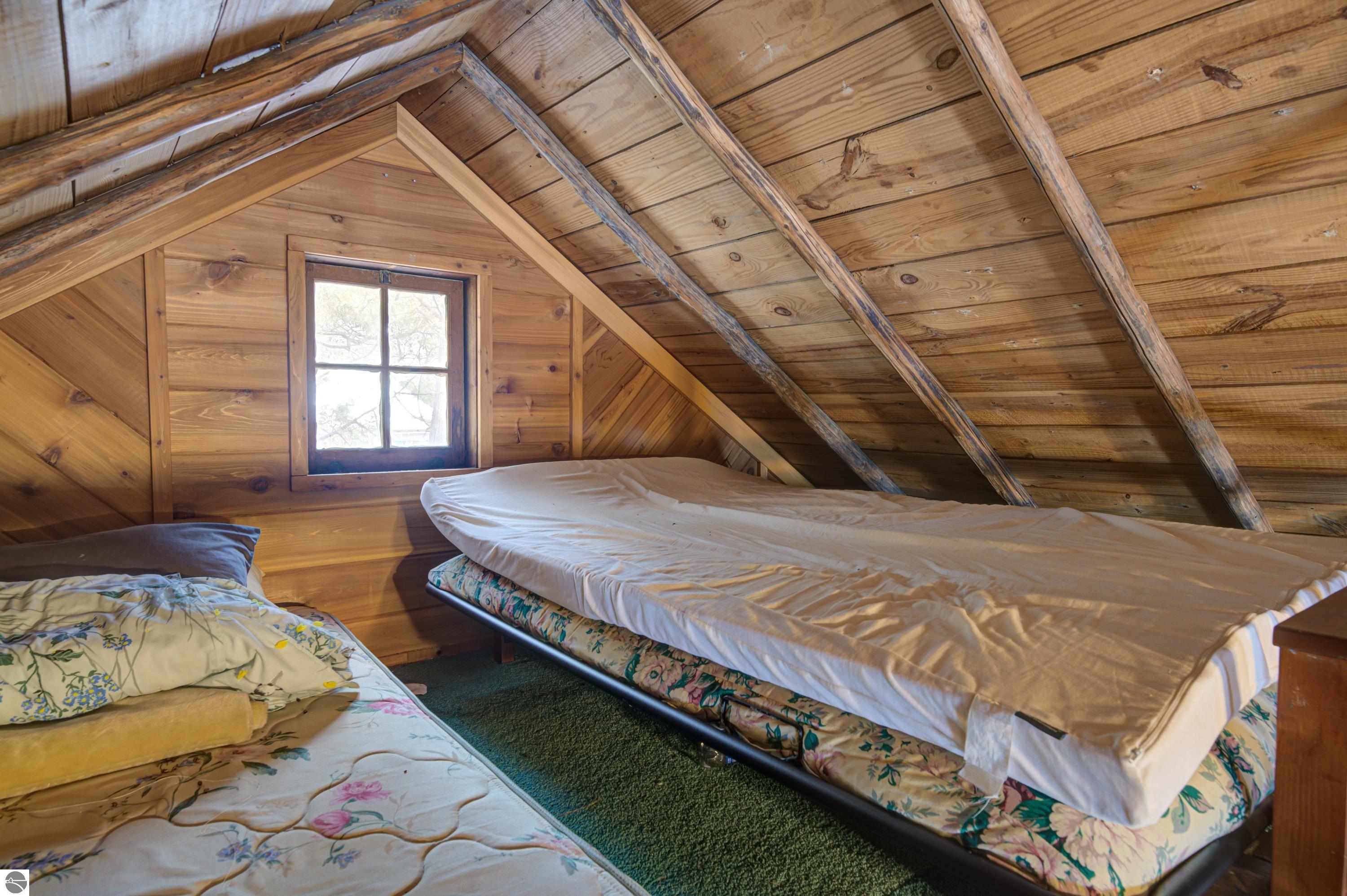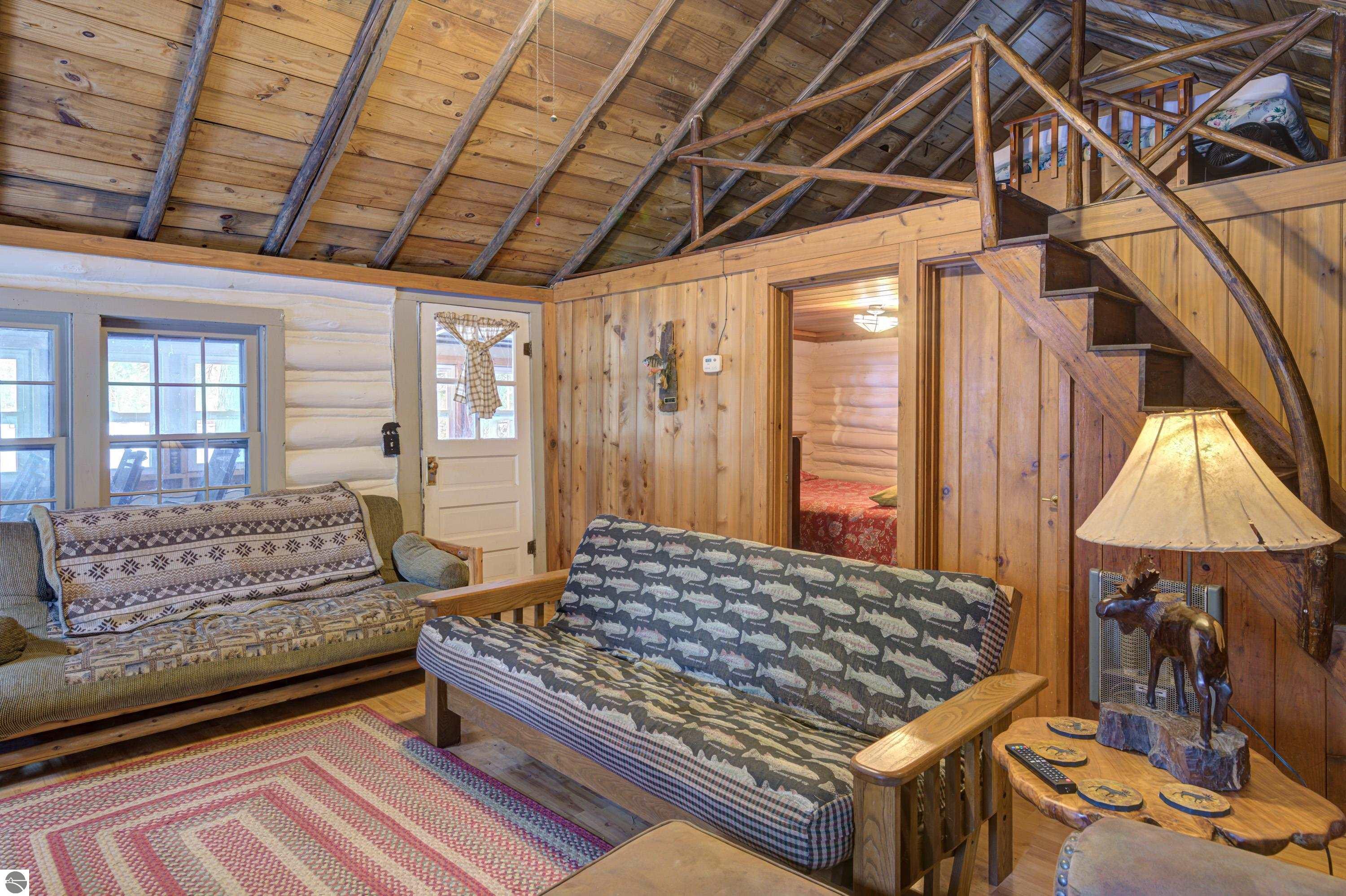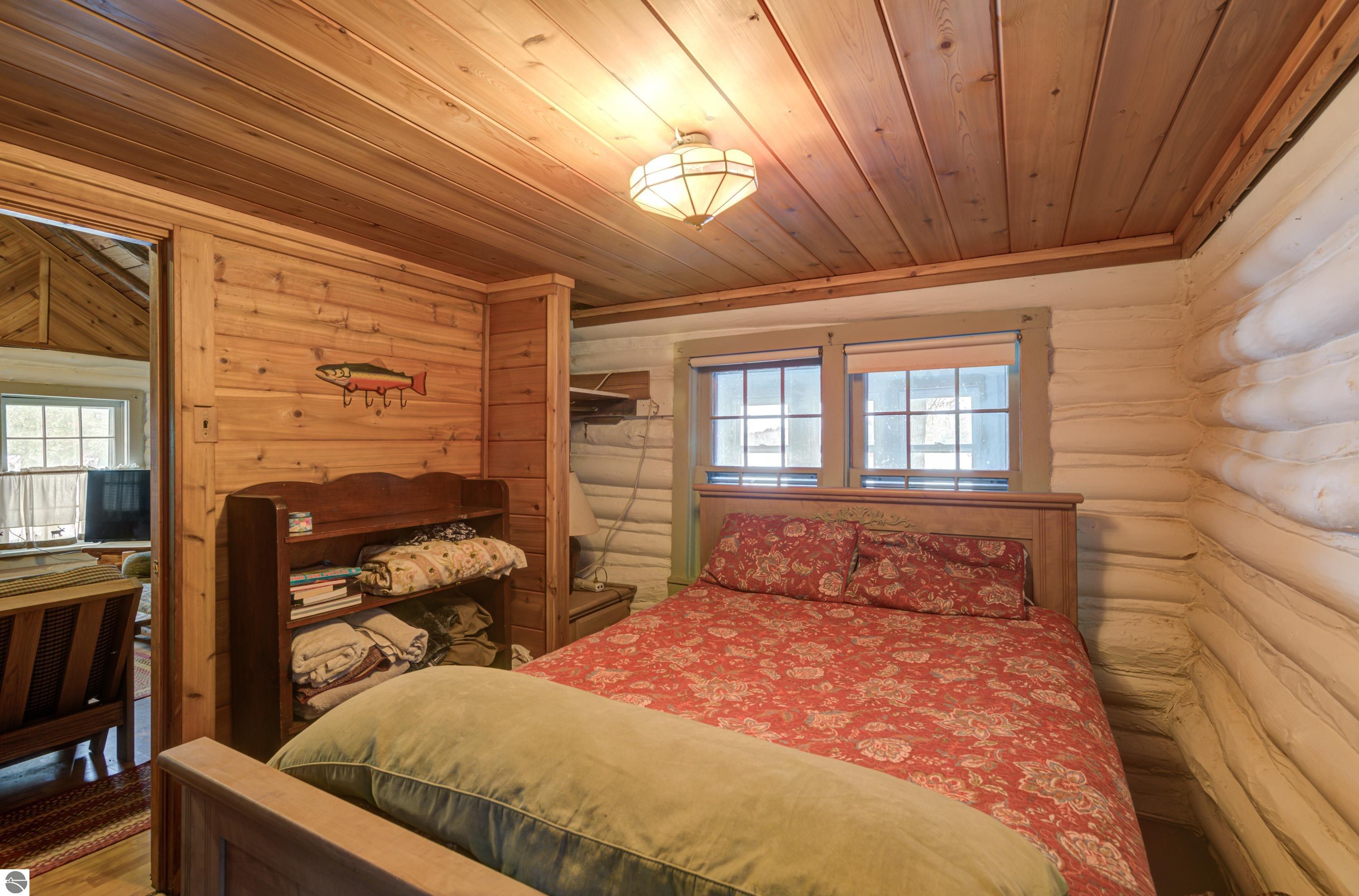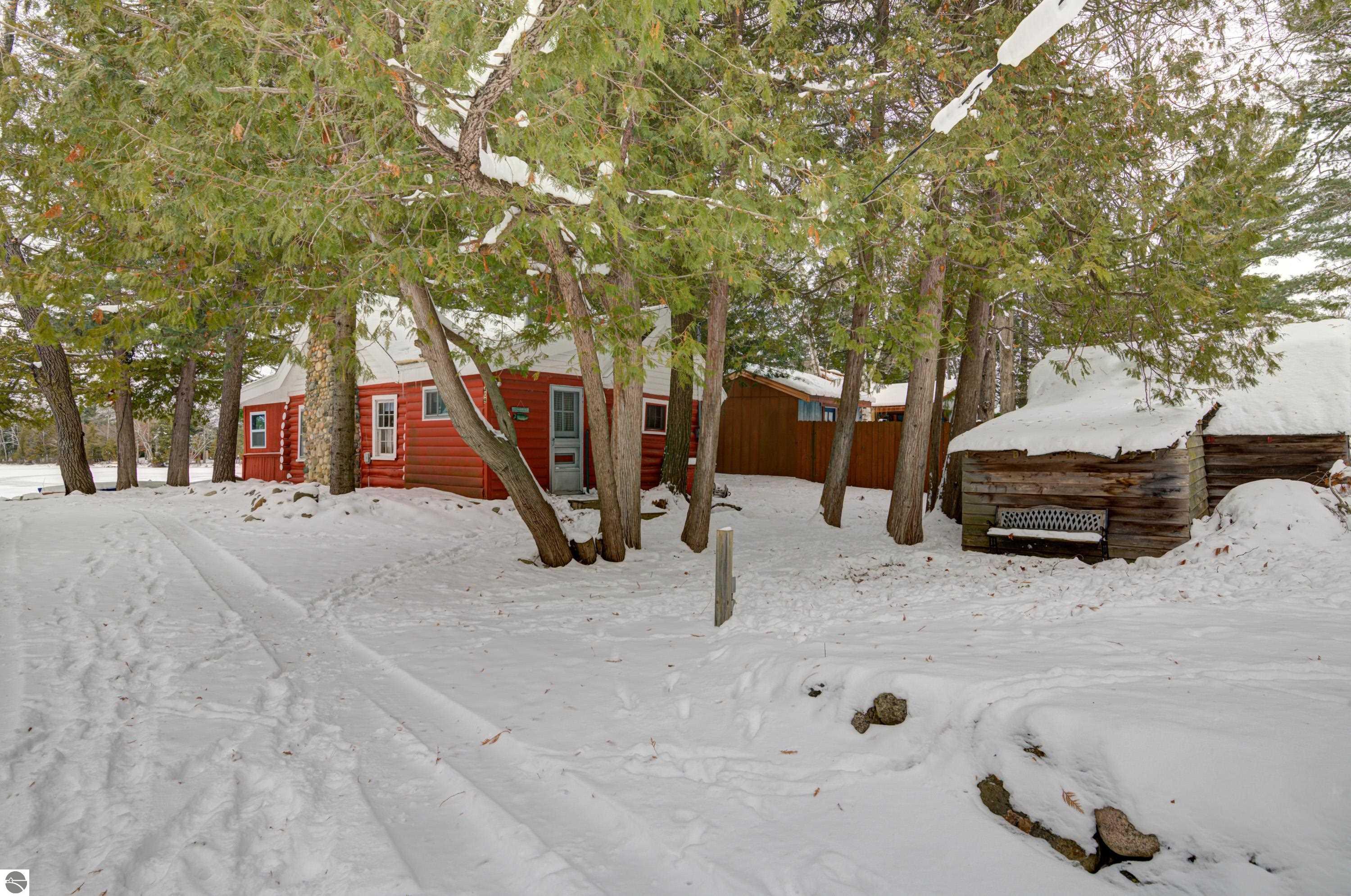 Adorable 2 bedroom cottage with 65' of private, direct waterfront on the Bass Lake that is located between Grand Traverse County's Long Lake and Silver Lake. A lovely, tranquil setting and the cottage is within 30' of the water itself. Hard bottom and there's some beach sand there too. Beautiful views of the lake and islands. Great fishing with bass (duh), pike, perch and there's some walleye there too. If you're unfamiliar with Bass Lake you really need to check it out. It is a very underrated all sports lake. Natural gas, Spectrum for internet/cable TV, private well, septic system, wood burning fireplace (currently capped but does work), screened in porch, small storage shed. All furnishings included (dock negotiable). 2nd bedroom is nonconforming (it's a loft). Cost for snow plowing runs approximately $100-$150 per year.