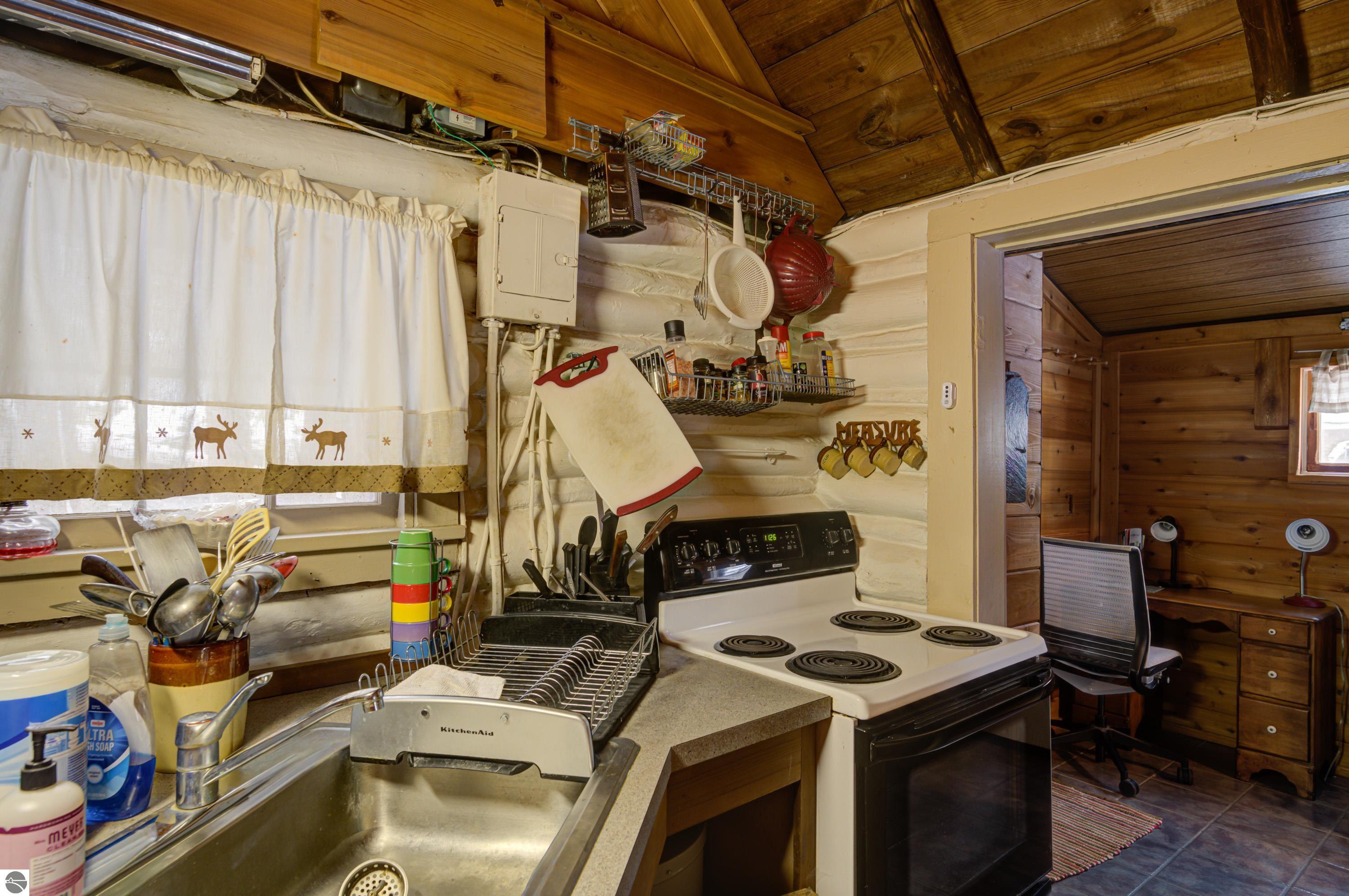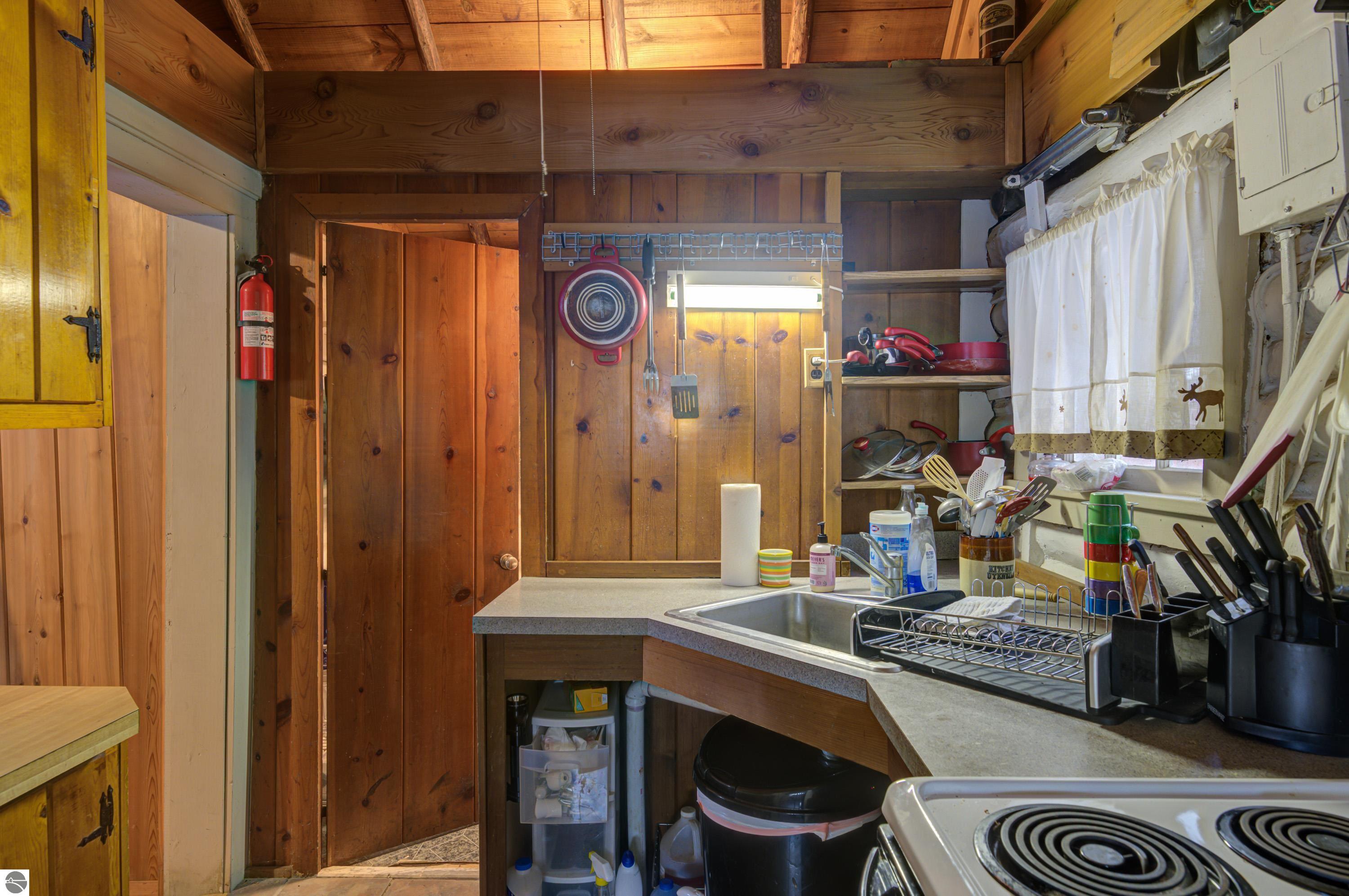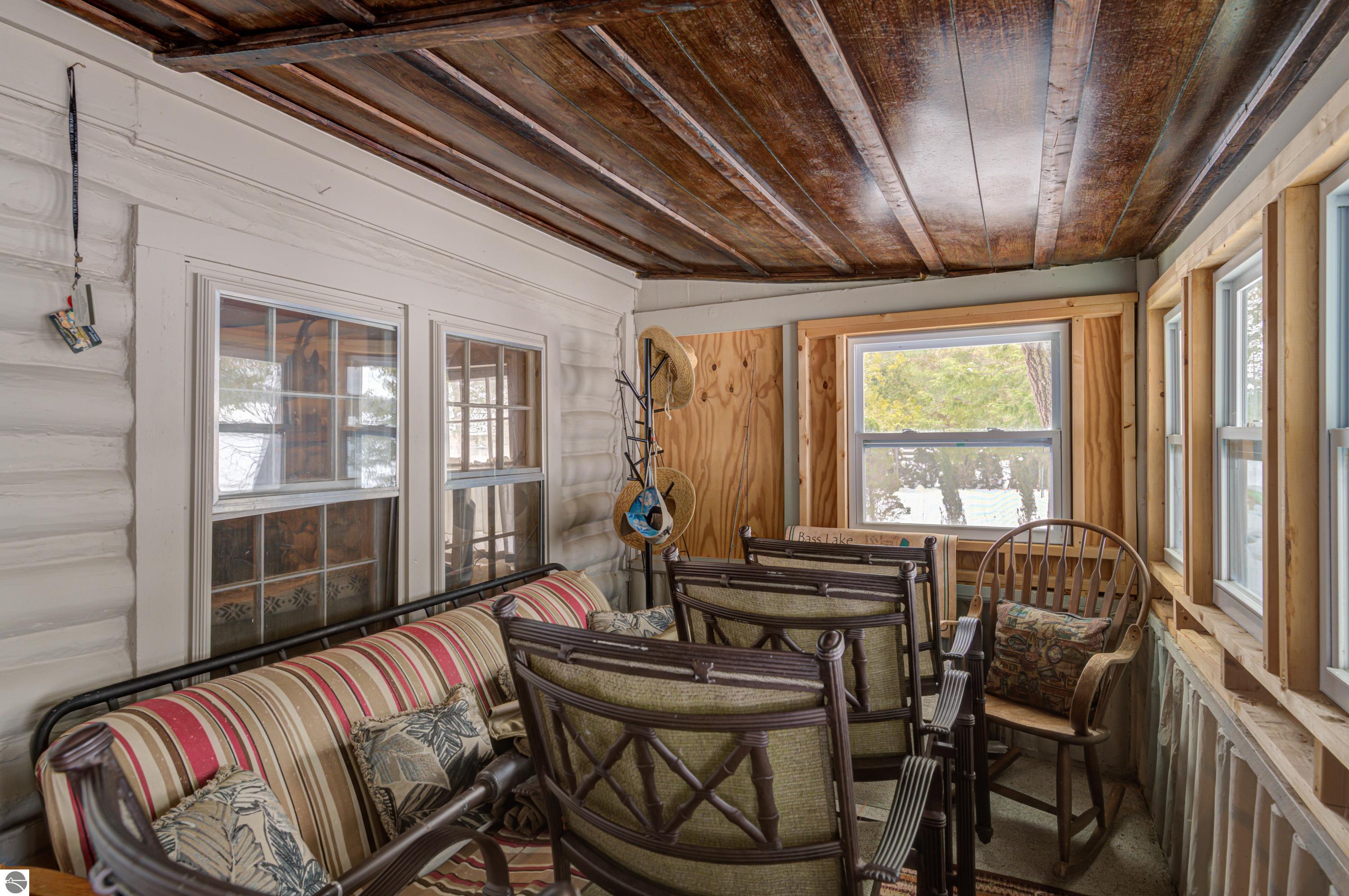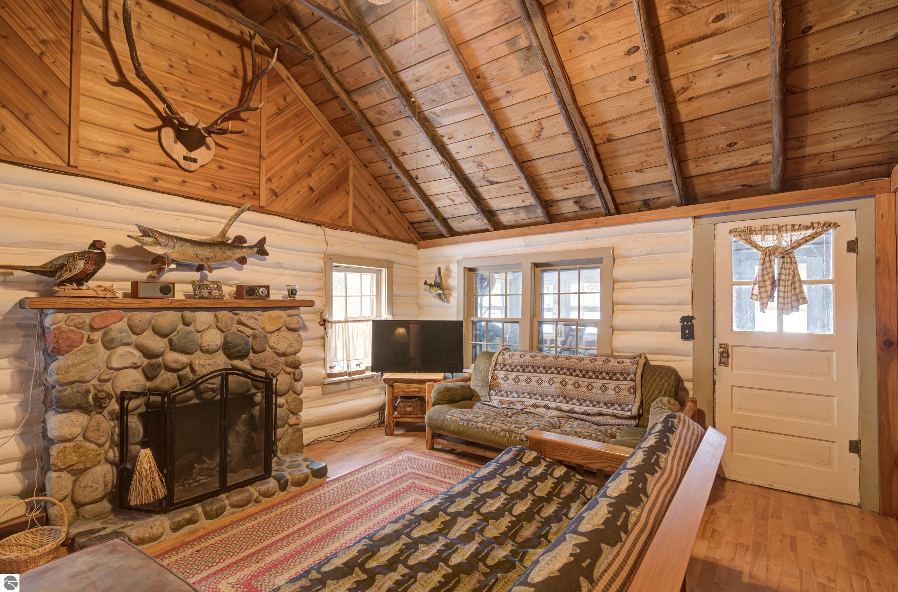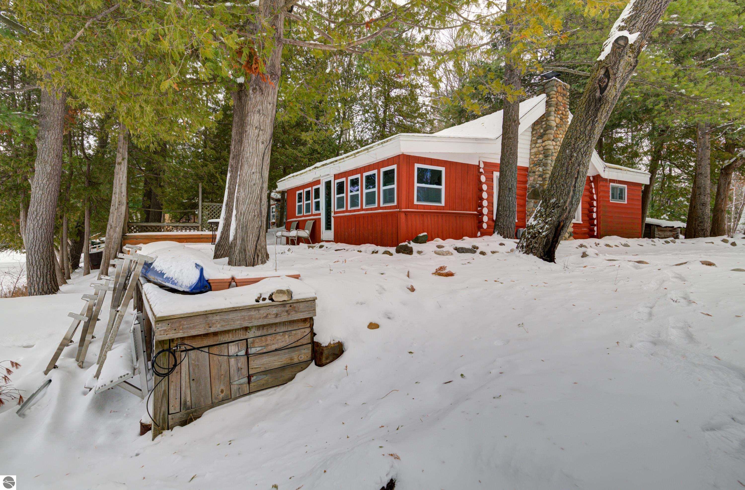 Adorable 2 bedroom cottage with 65' of private, direct waterfront on the Bass Lake that is located between Grand Traverse County's Long Lake and Silver Lake. A lovely, tranquil setting and the cottage is within 30' of the water itself. Hard bottom and there's some beach sand there too. Beautiful views of the lake and islands. Great fishing with bass (duh), pike, perch and there's some walleye there too. If you're unfamiliar with Bass Lake you really need to check it out. It is a very underrated all sports lake. Natural gas, Spectrum for internet/cable TV, private well, septic system, wood burning fireplace (currently capped but does work), screened in porch, small storage shed. All furnishings included (dock negotiable). 2nd bedroom is nonconforming (it's a loft). Cost for snow plowing runs approximately $100-$150 per year.