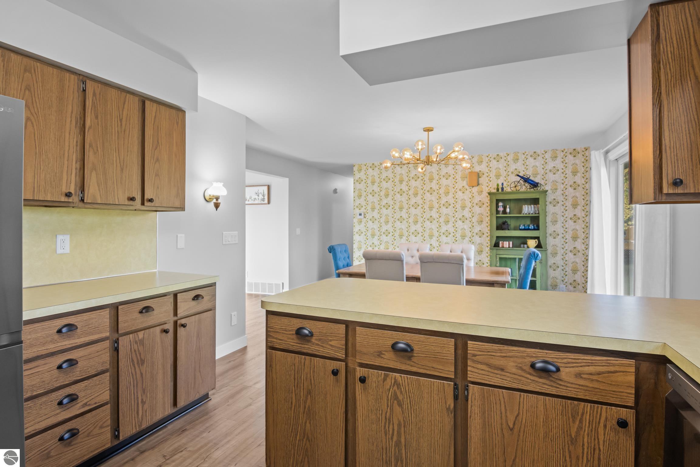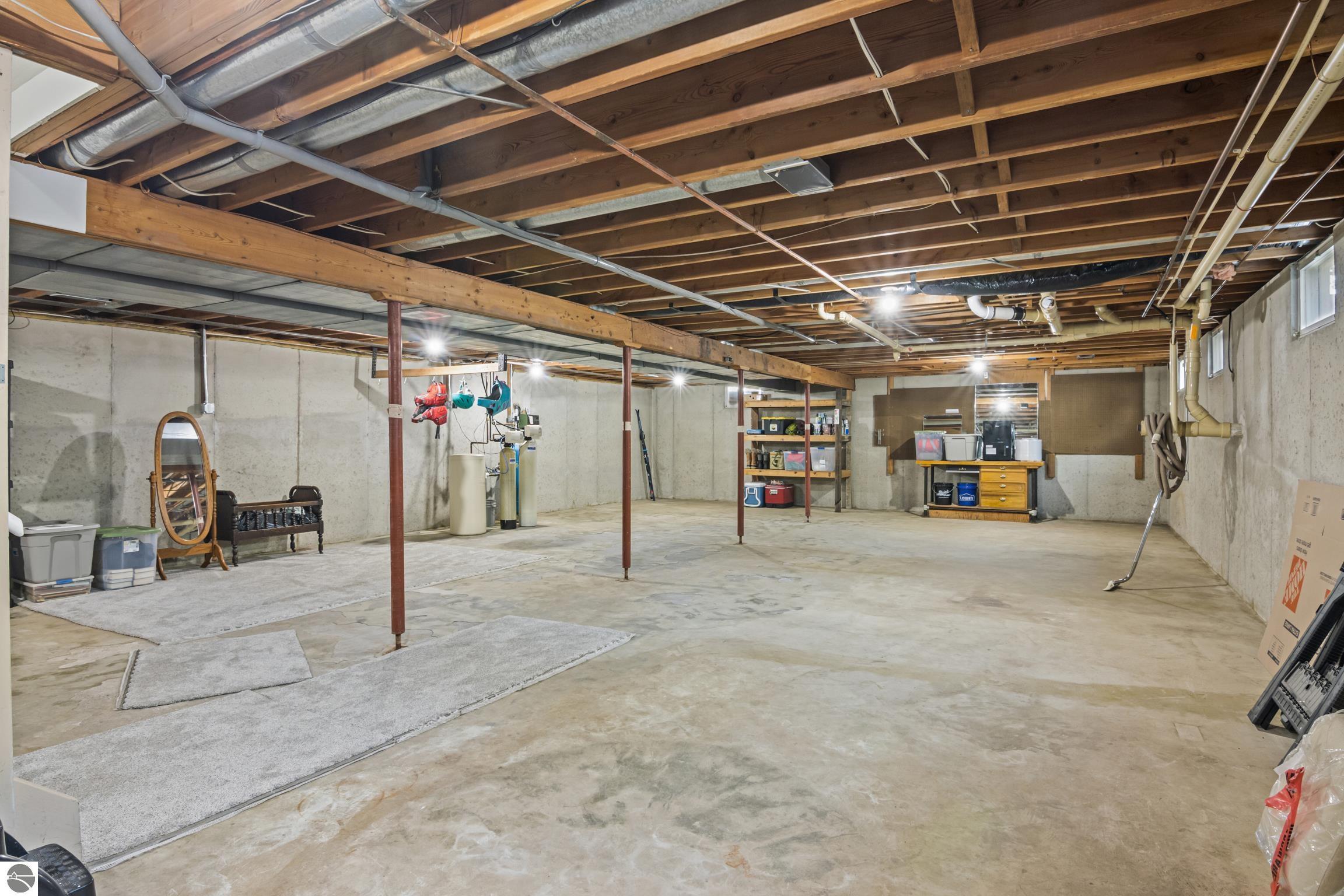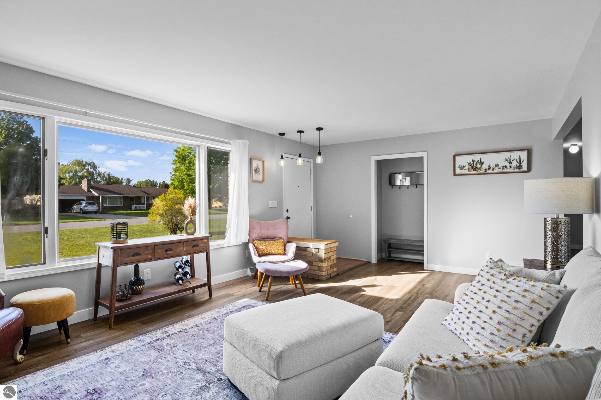 Discover the comfort and convenience of this spacious 3-bedroom, 2-bath ranch home offering over 1,700 sq. ft. of main-floor living. Enjoy room to unwind in the cozy living room featuring a classic wood-burning fireplace, or stretch out in the expansive gathering room with a sliding door offering access to the backyard, perfect for entertaining or everyday living. All three bedrooms are generously sized, with the primary suite offering its own private bath. Outside, you'll appreciate the oversized garage plus a 12' x 10' workshop/storage area. The unfinished basement provides endless possibilities—continue the expansion or enjoy abundant storage. Ideally located close to shopping, dining, and vibrant downtown Traverse City, this home offers both space and convenience.
