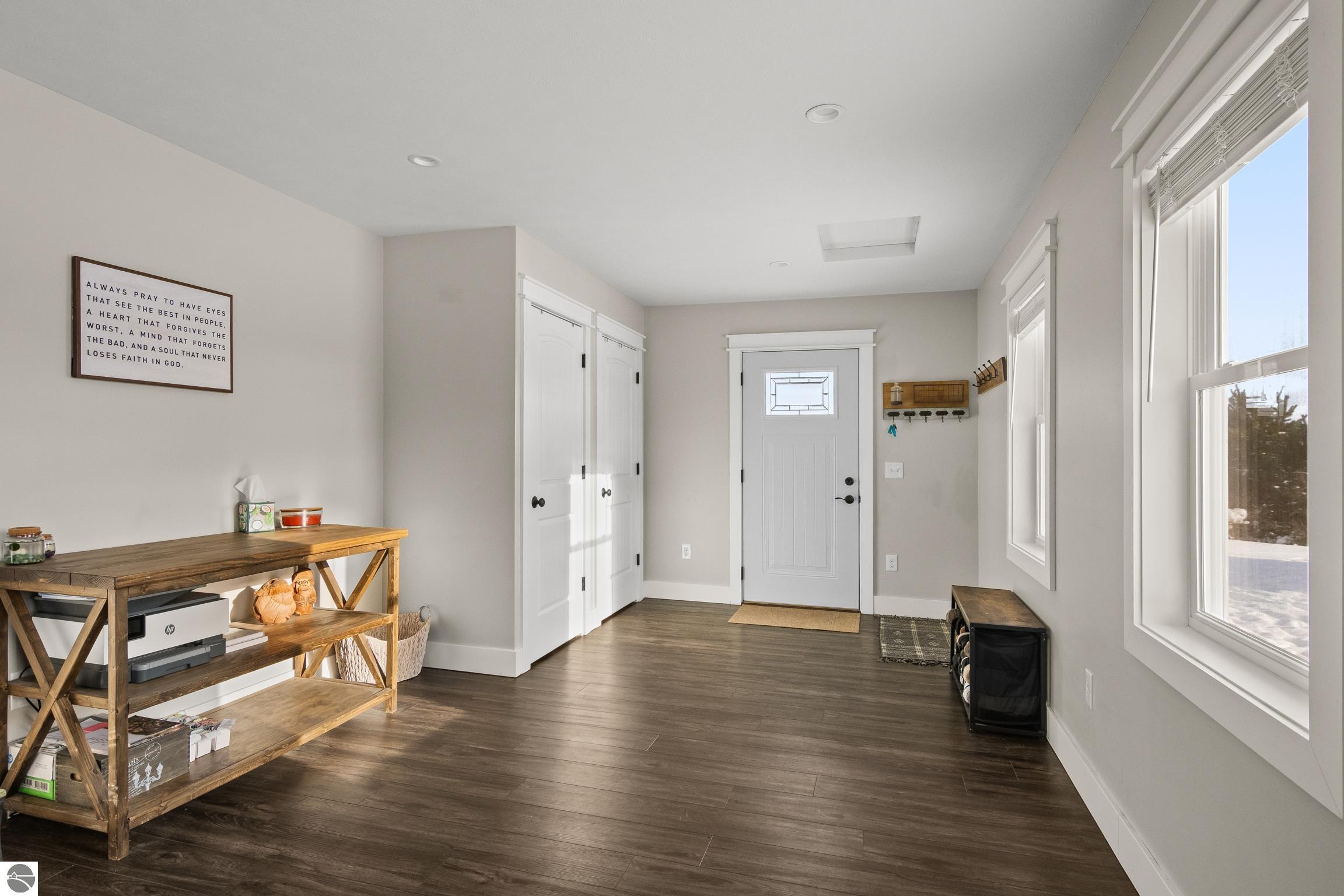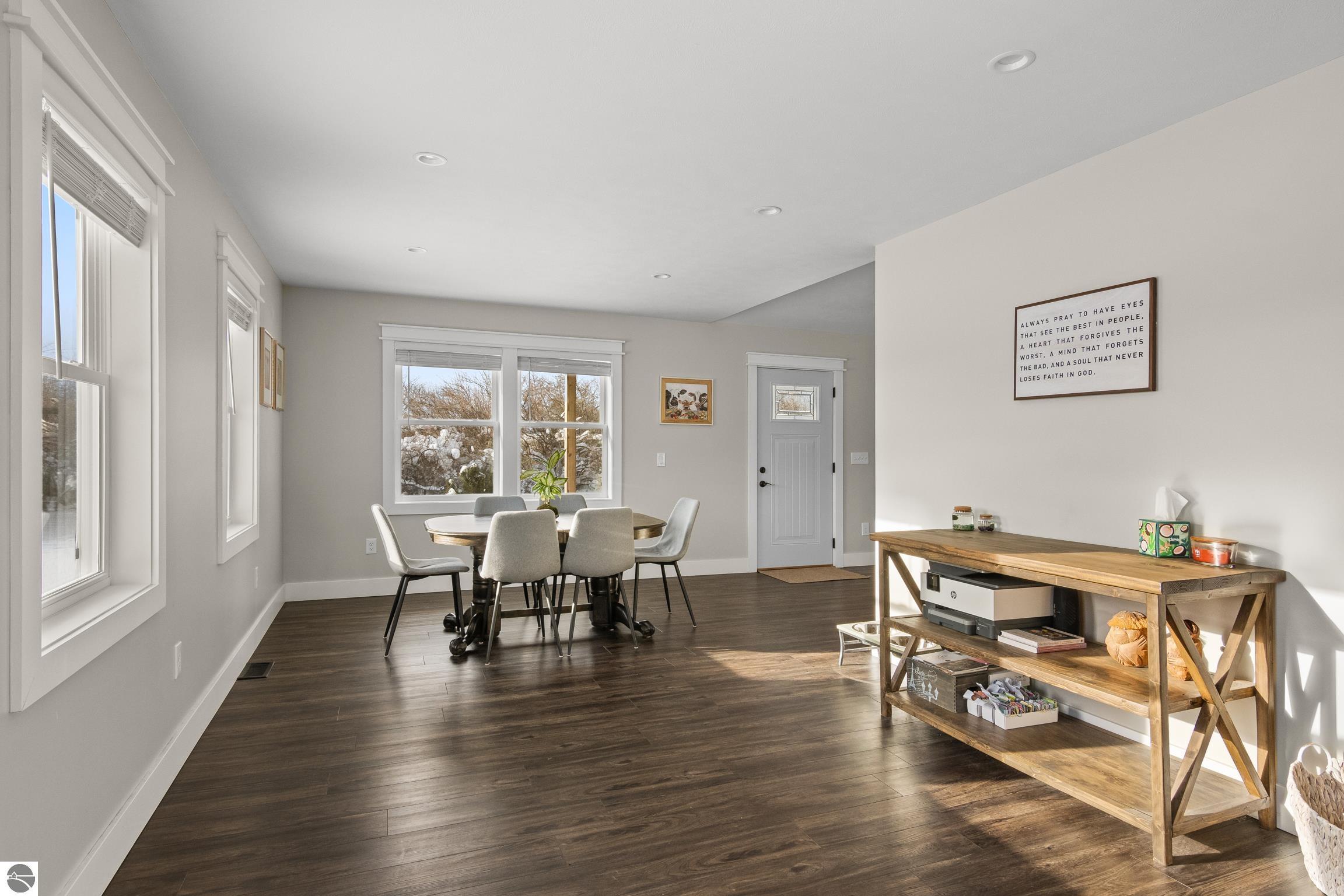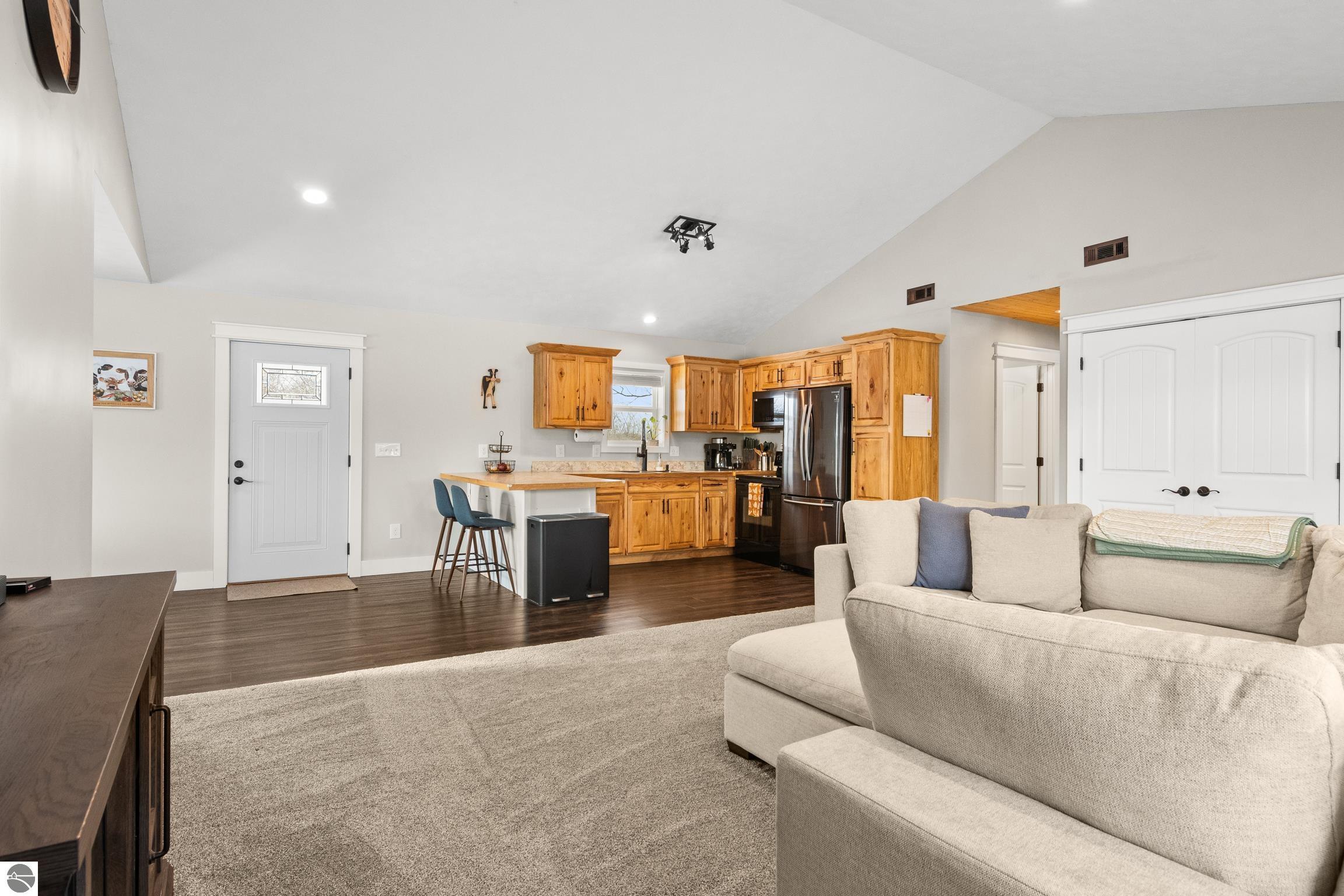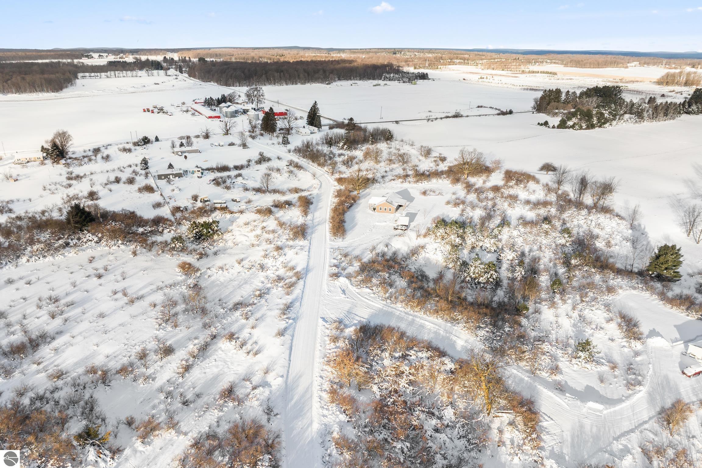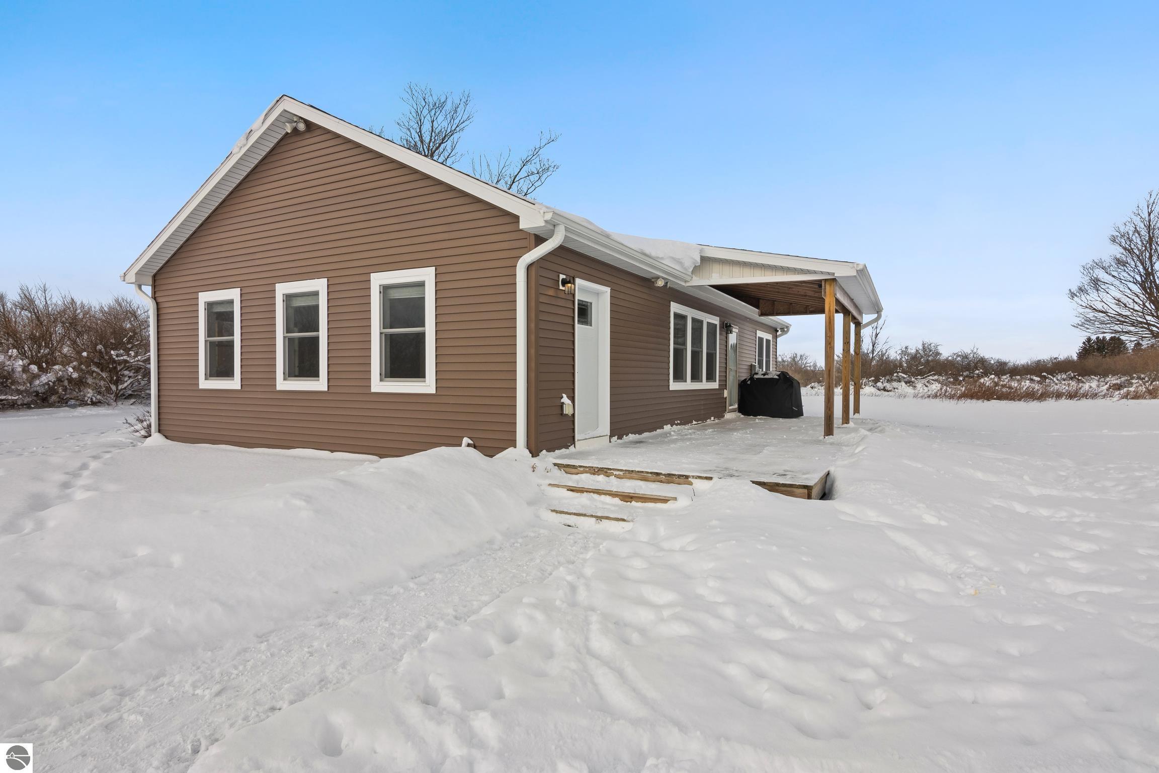 Discover this charming newer-build ranch home set in a peaceful country setting yet close to Traverse City and all of the amenities.. Thoughtfully designed with an open floor plan, the home is filled with natural light that enhances its warm and inviting feel. The living spaces flow easily, creating a comfortable layout ideal for everyday living. Enjoy your morning coffee or unwind in the evenings on the covered front and back porches—perfect spots to take in the surrounding tranquility. Lovingly cared for, this 2-bedroom, 1-bath home offers low-maintenance living with all the benefits of a serene rural location and the convenience of being close to town. Move-in ready and full of charm, and with acreage providing opportunities to grow!!